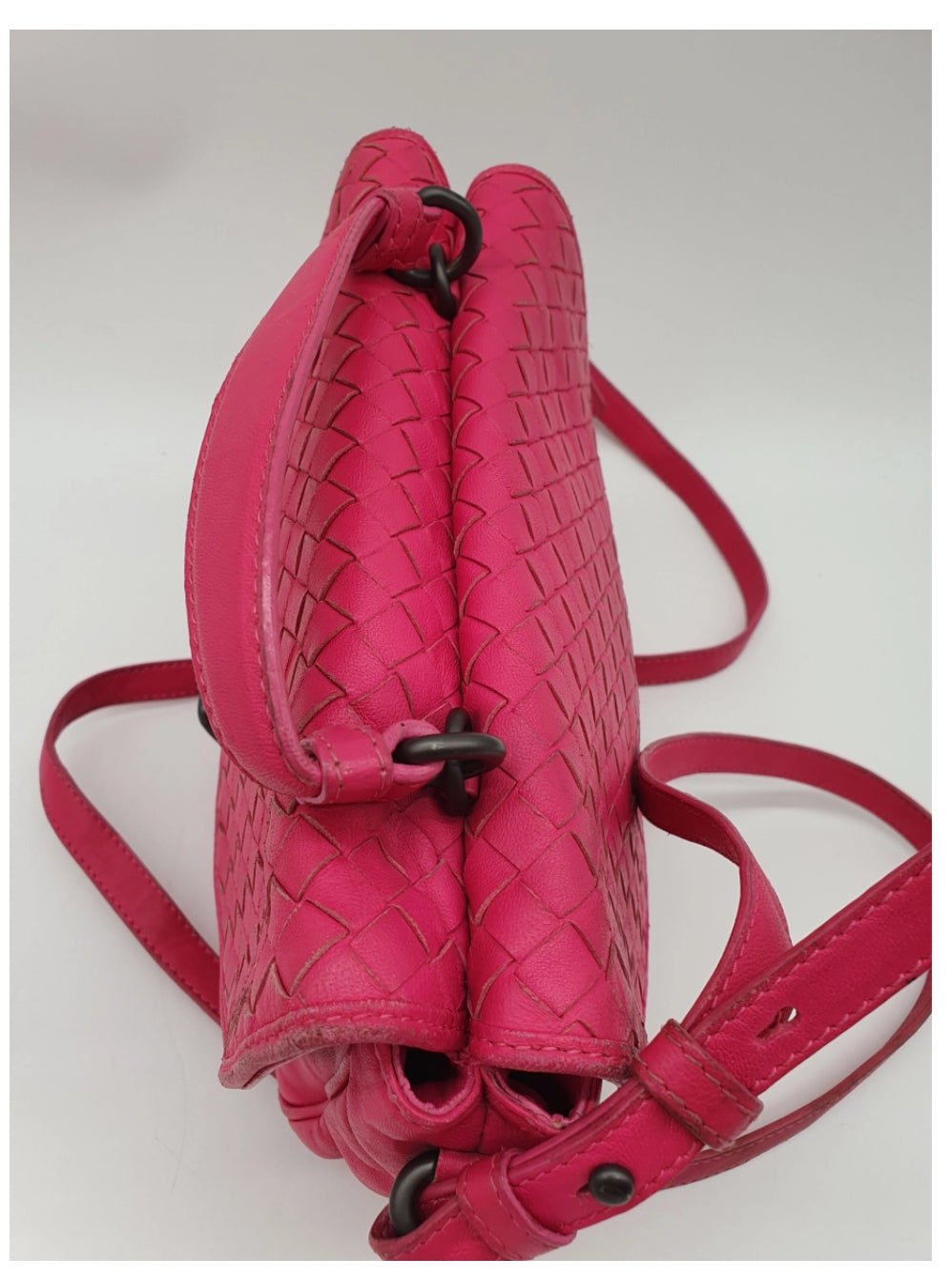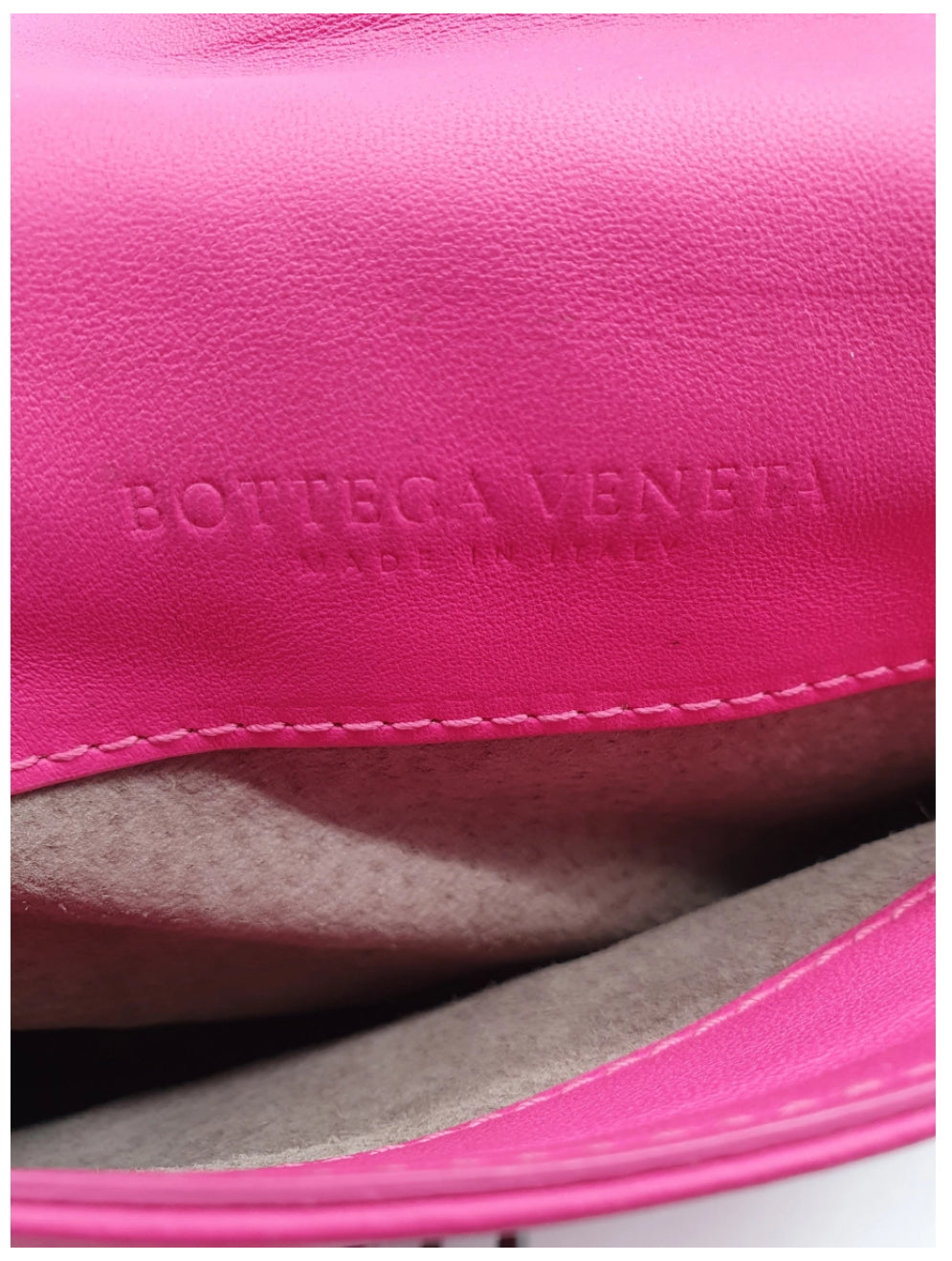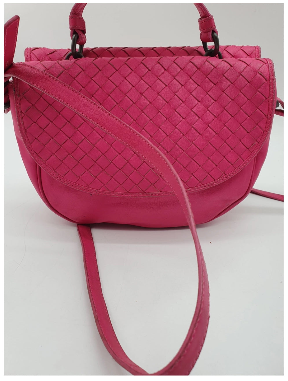 Brand:Bottega Veneta Model:top handle woven bag Exterior material:leather Exterior colour:pink Print:plain Interior material:suede Closure:flap Hardware tone: Type:top handle and crossbody...