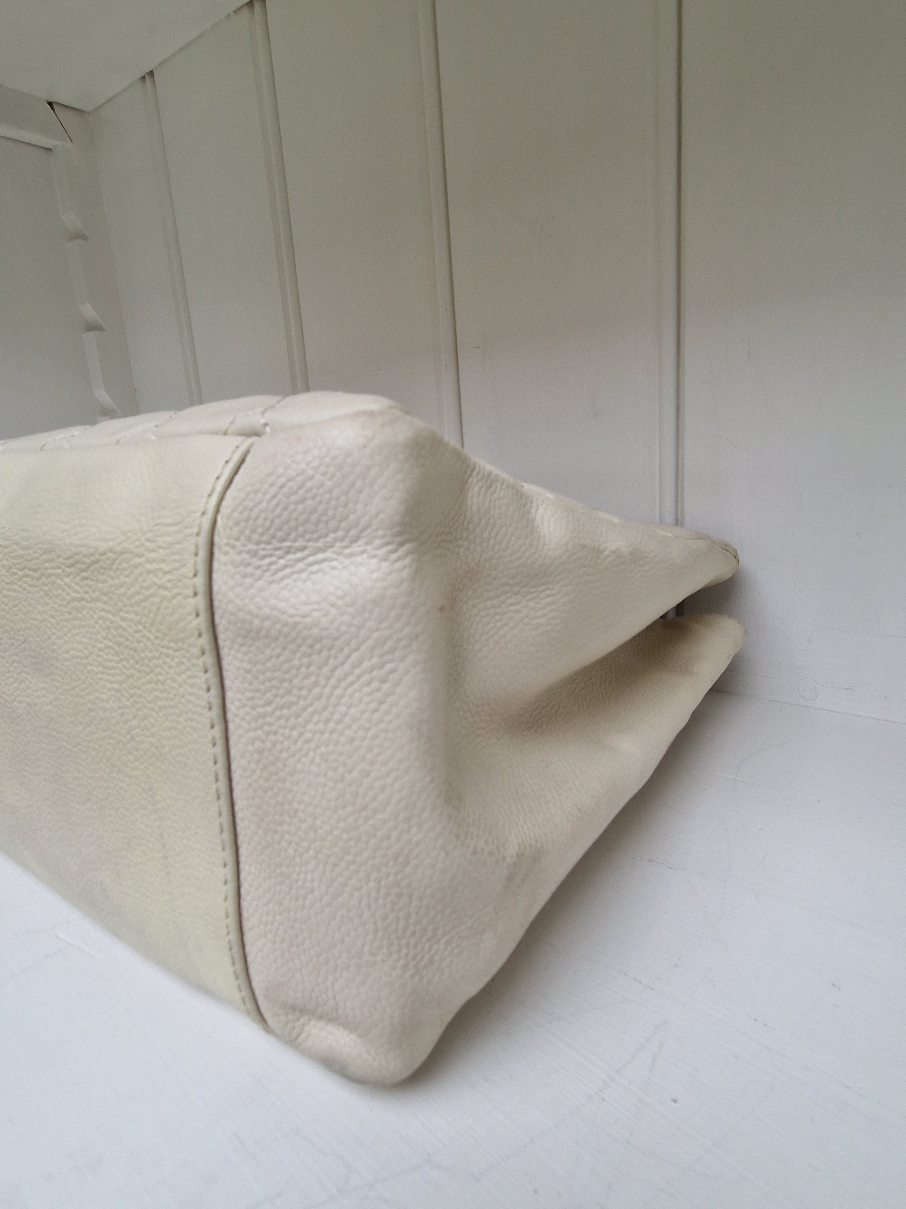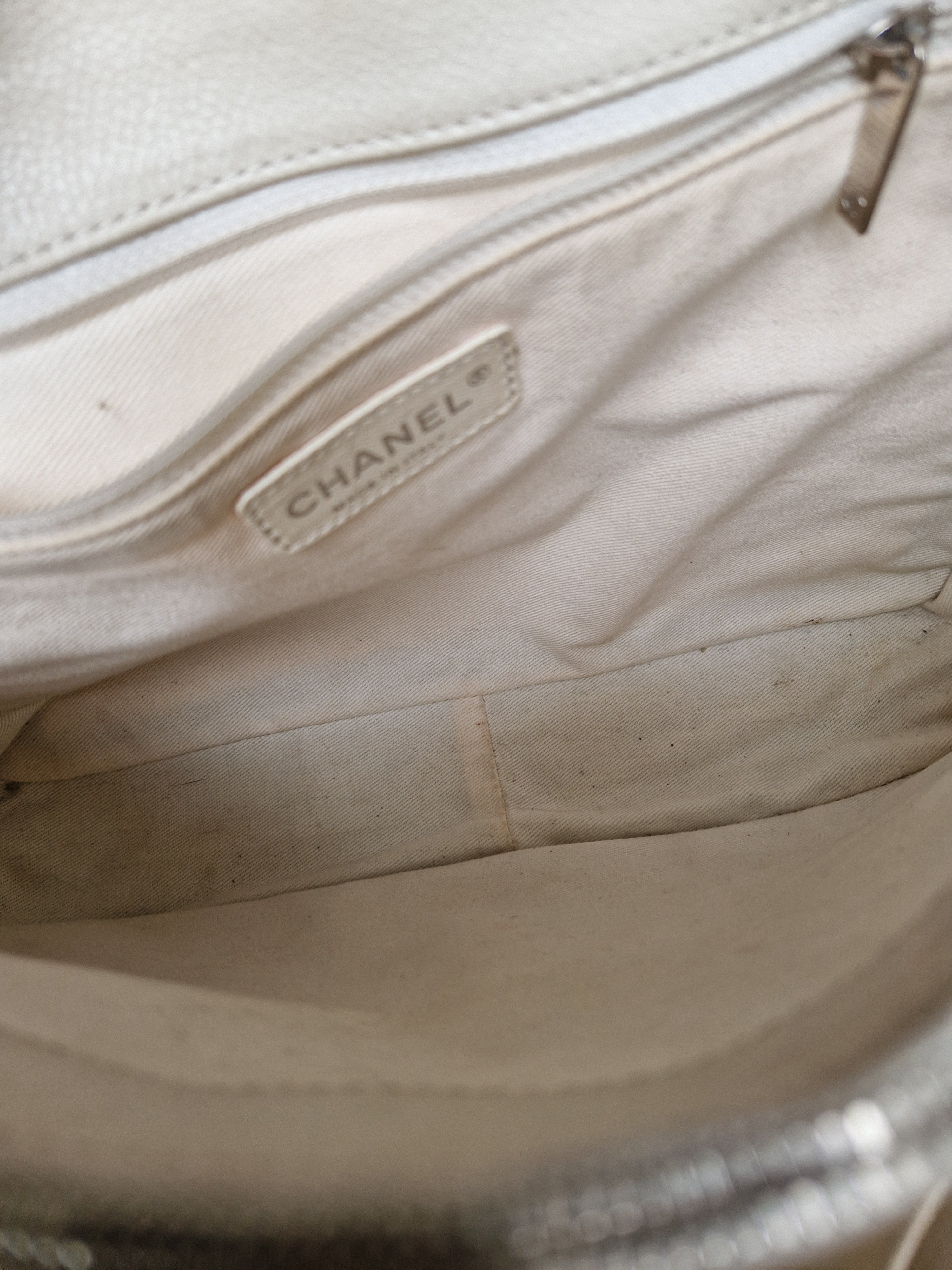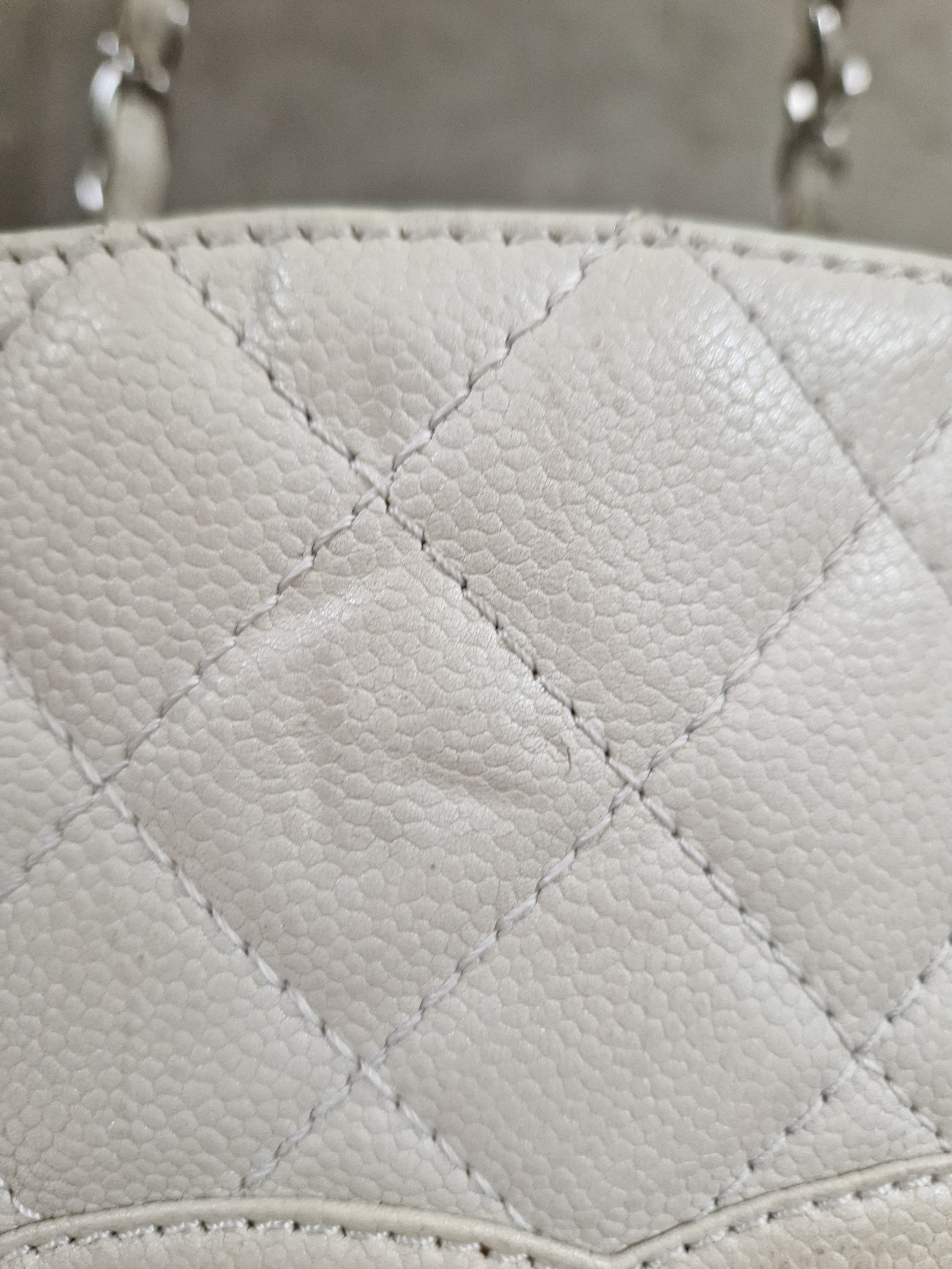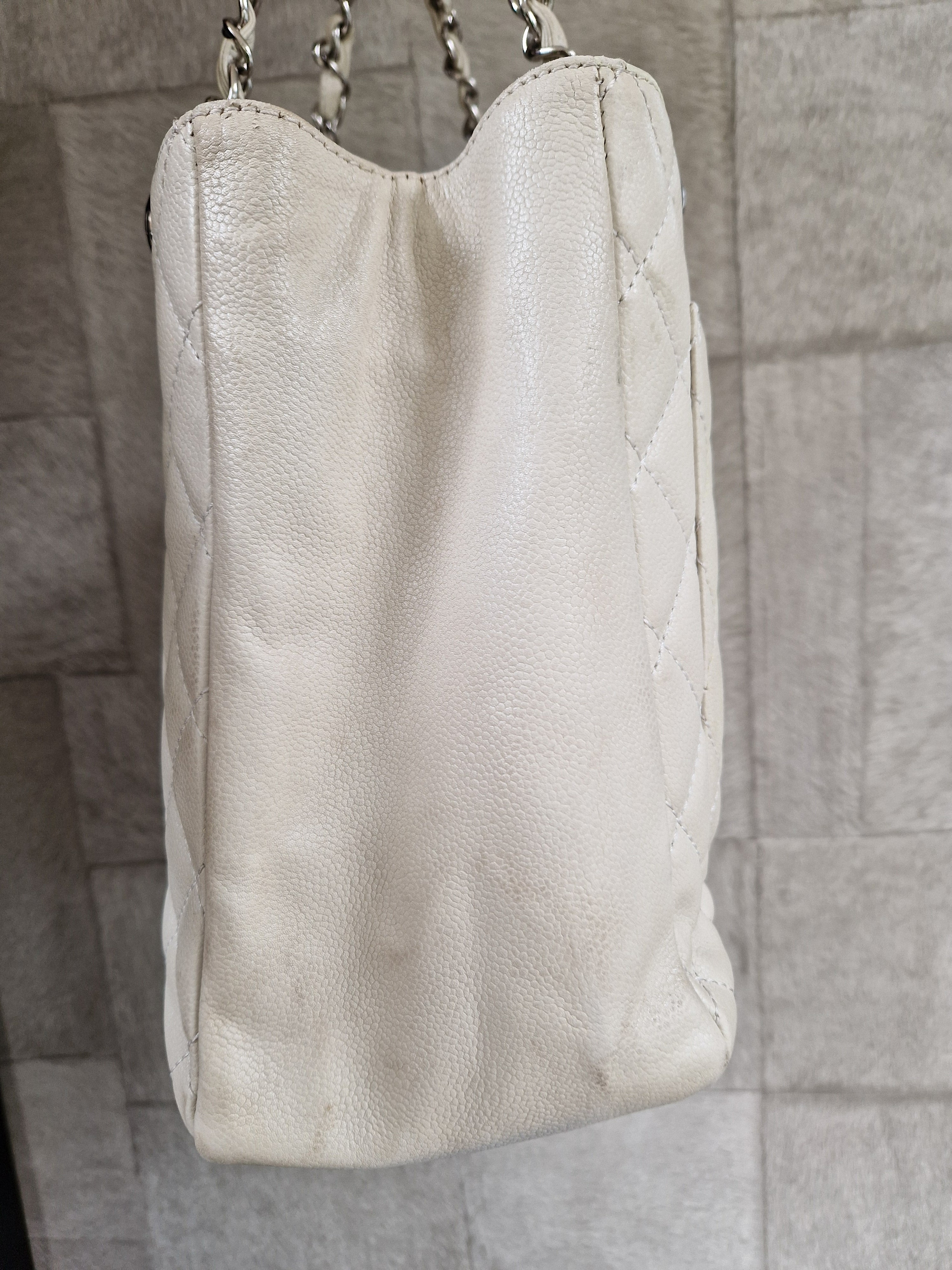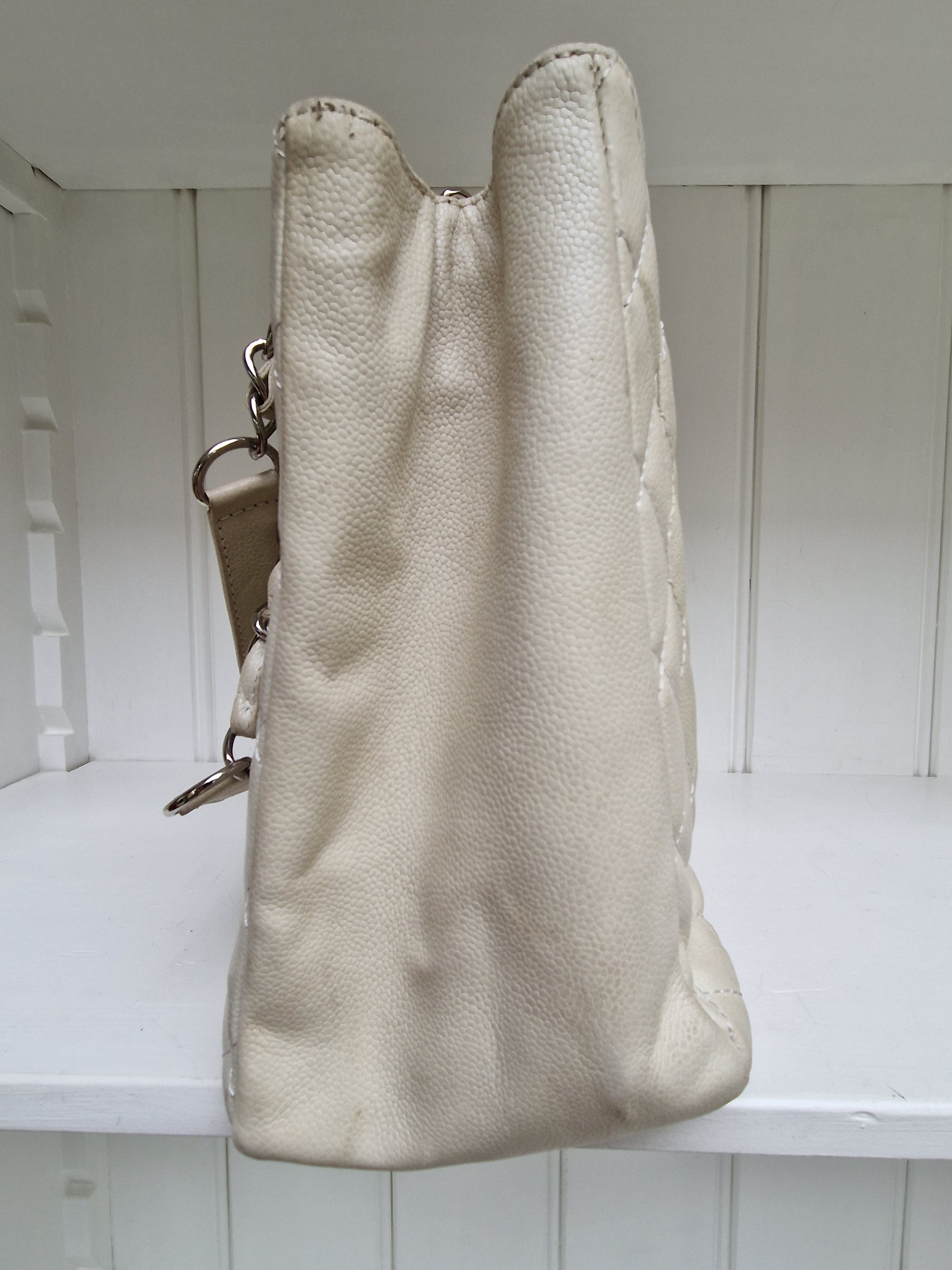 Brand:Chanel Model:GST tote Exterior material:Cavier Exterior colour:white Print:plain Interior material:fabric Closure:middle zipper Hardware tone:silver Type:shoulder bag Accessories: Features:features a double...