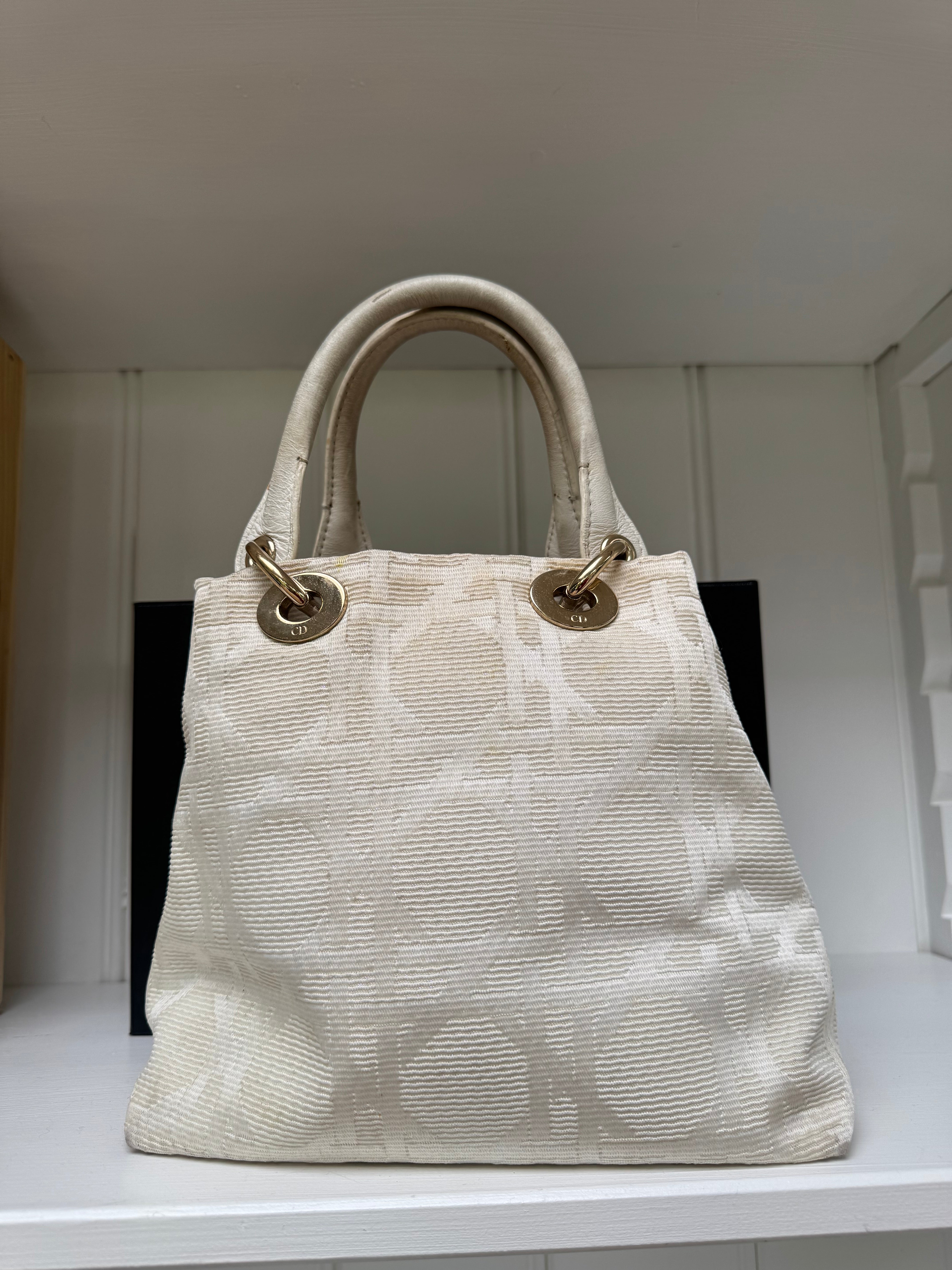 A refined blend of elegance and everyday luxury, this Christian Dior top handle bag is crafted in cream-tone monogram canvas... Read more Read more