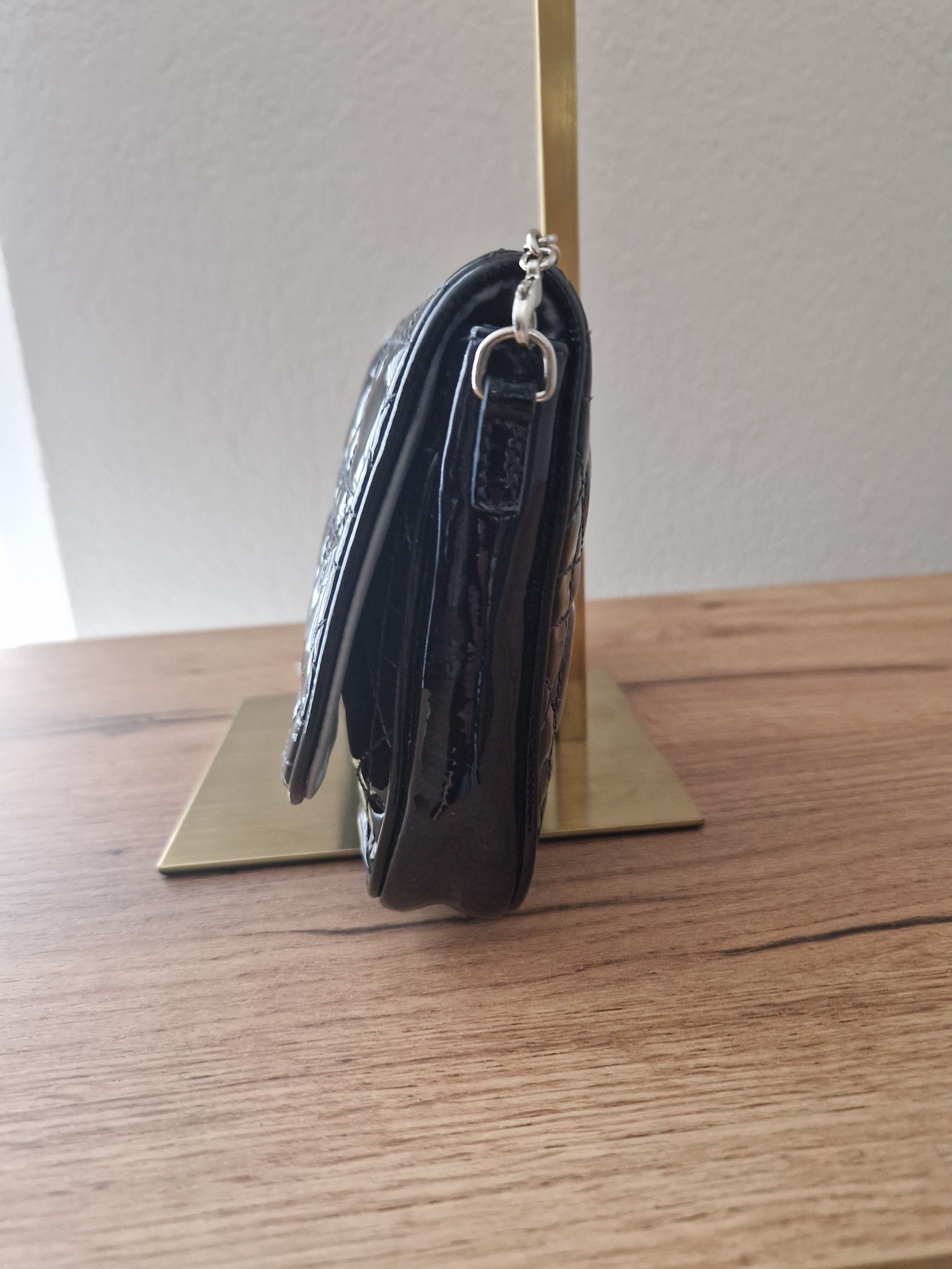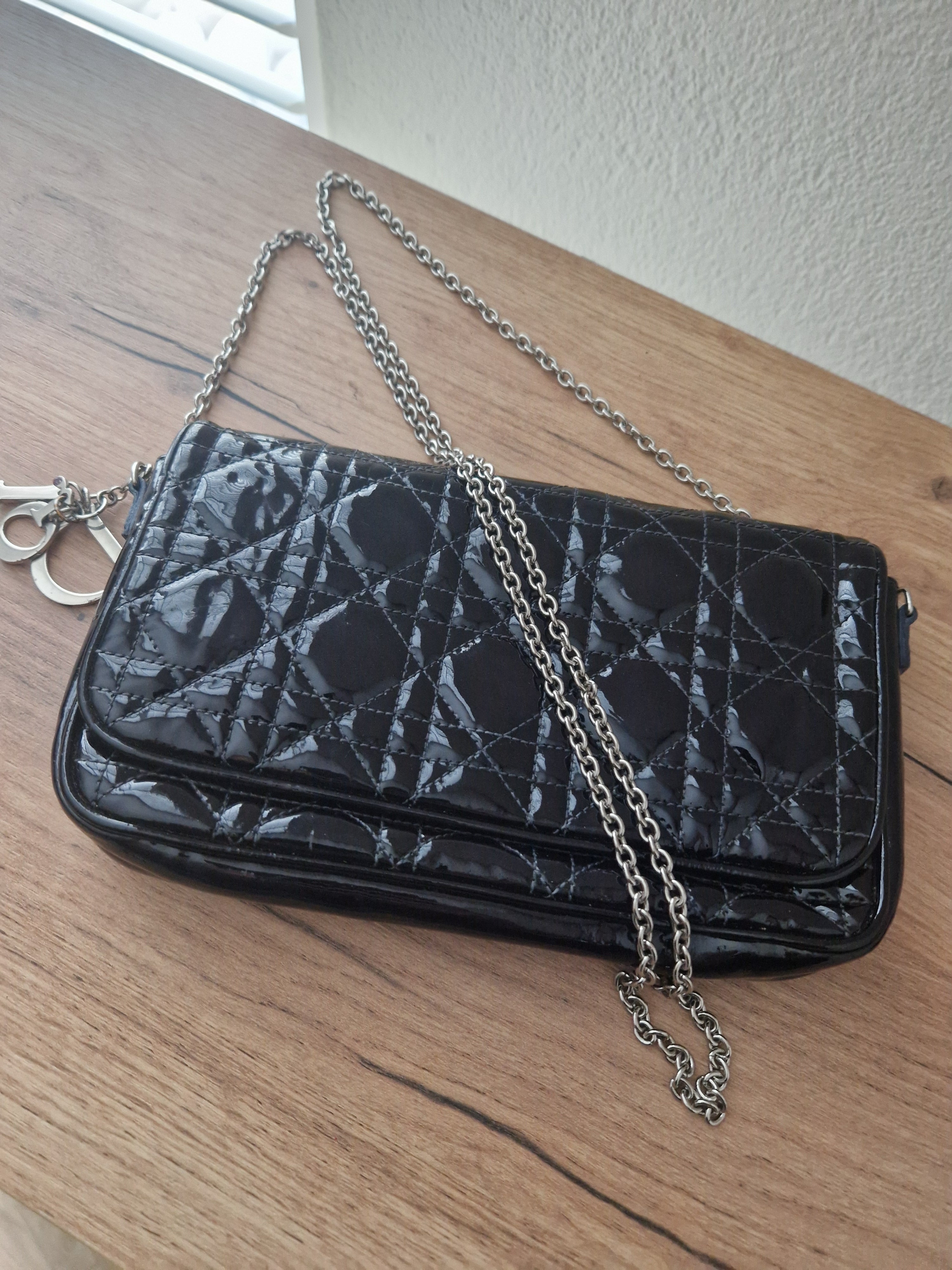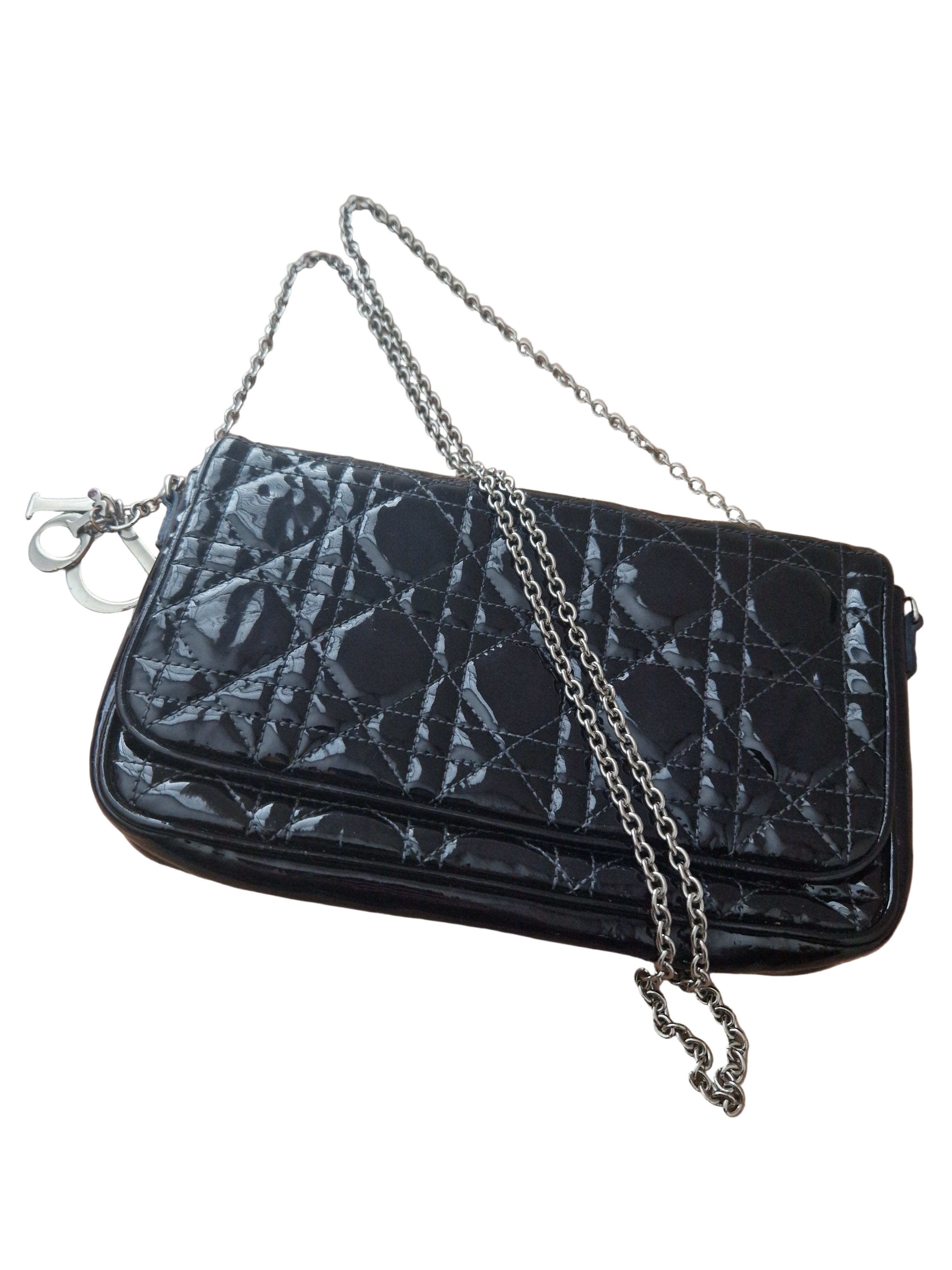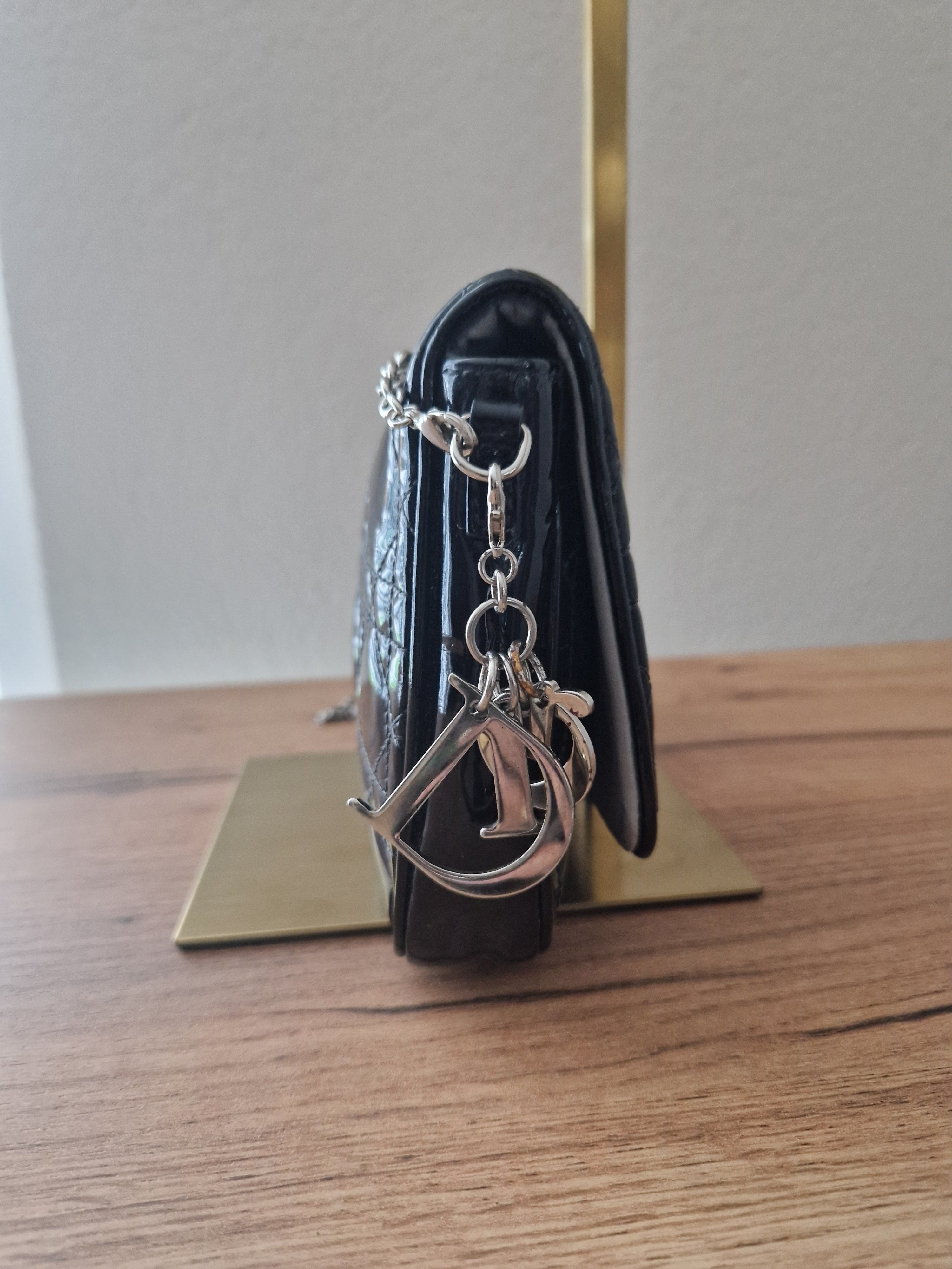 Brand:Dior Model:miss Dior Exterior material:patent leather Exterior colour:black Print:plain Interior material:leather Closure:magnetic snap Hardware tone:silver Type:crossbody Accessories:Dior tassel Features: Serial...