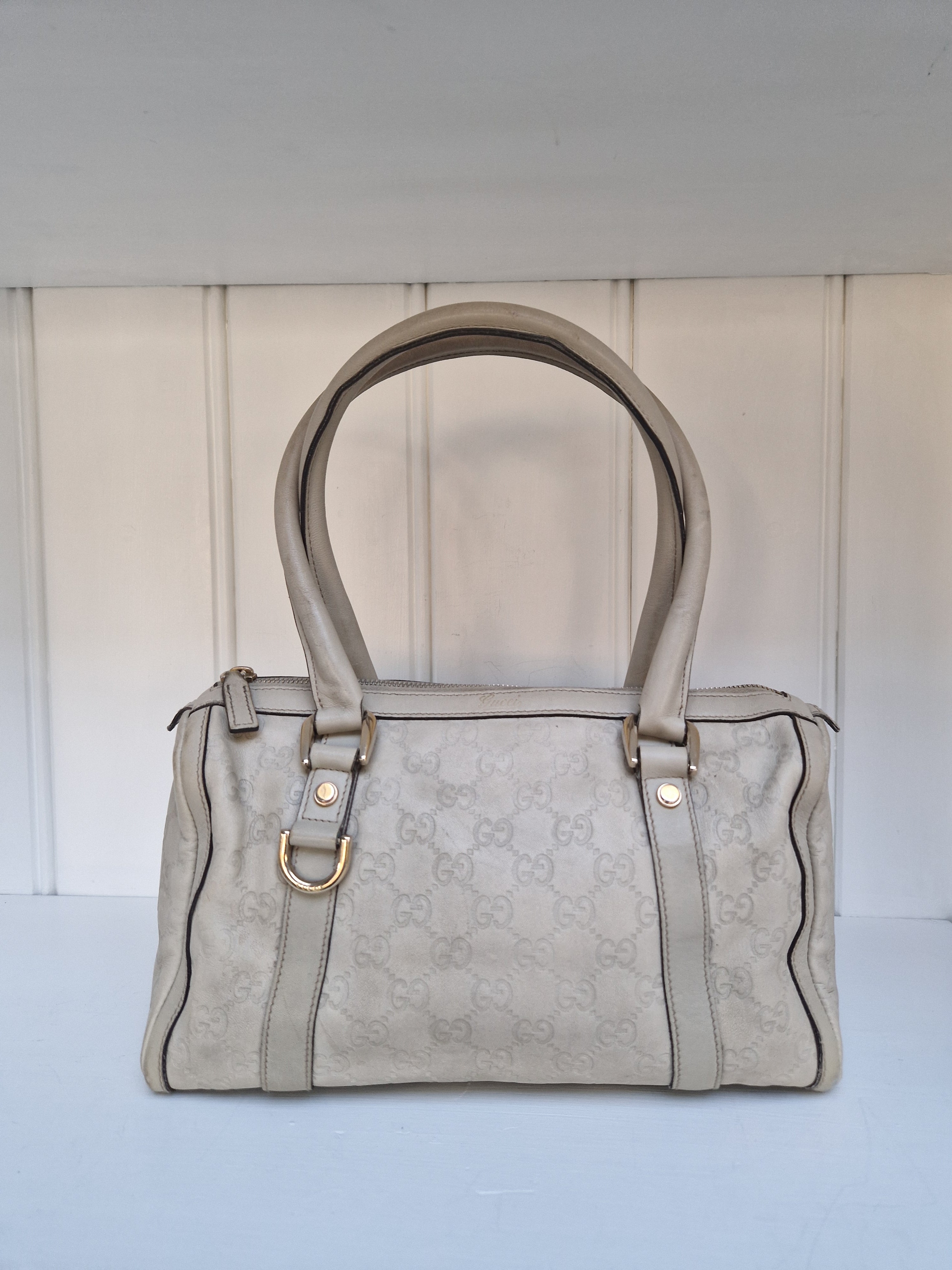 Product form Gucci D ring leather bag $447.00Excl. VAT Gucci GG D ring Monogram Leather Boston Bag Ivory An elegant Gucci GG monogram Boston bag, crafted... Read more Read more 1 in stock Show extra info for delivery time Add to cart This item is a deferred, subscription, or recurring purchase. By continuing, I agree to the cancellation policy and authorize you to charge my payment method at the prices, frequency and dates listed on this page until my order is fulfilled or I cancel, if permitted. Reviews 0 reviews Share with your friends Share WhatsApp Deel Tweet Pin it Messenger Email