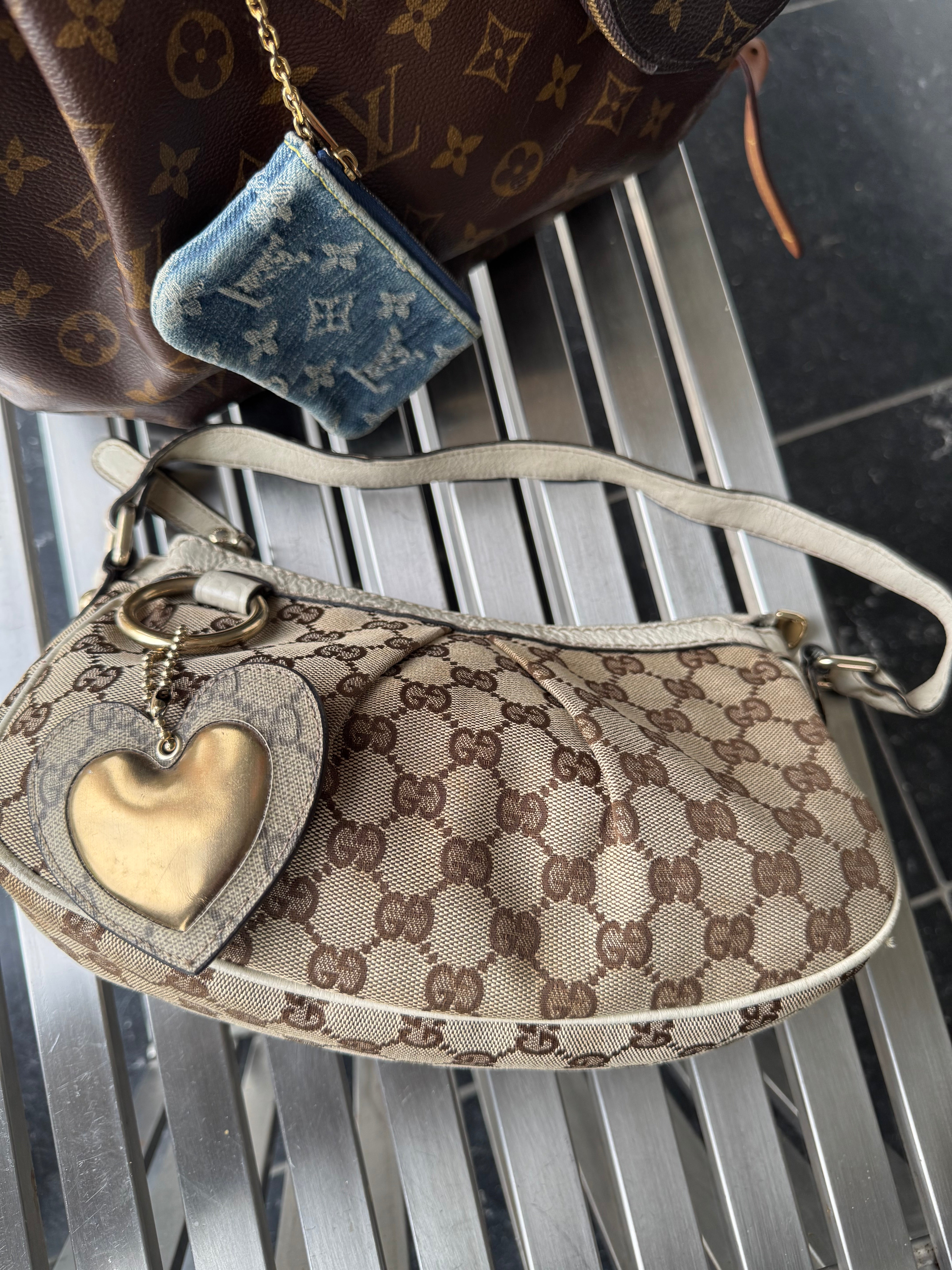Product form Gucci GG Canvas Shoulder Bag with Heart Charm $447.00Excl. VAT Timeless elegance meets playful sophistication in this iconic Gucci GG Canvas shoulder bag. Crafted from the Maison’s signature beige and... Read more Read more 1 in stock Show extra info for delivery time Add to cart This item is a deferred, subscription, or recurring purchase. By continuing, I agree to the cancellation policy and authorize you to charge my payment method at the prices, frequency and dates listed on this page until my order is fulfilled or I cancel, if permitted. Reviews 0 reviews Share with your friends Share WhatsApp Deel Tweet Pin it Messenger Email