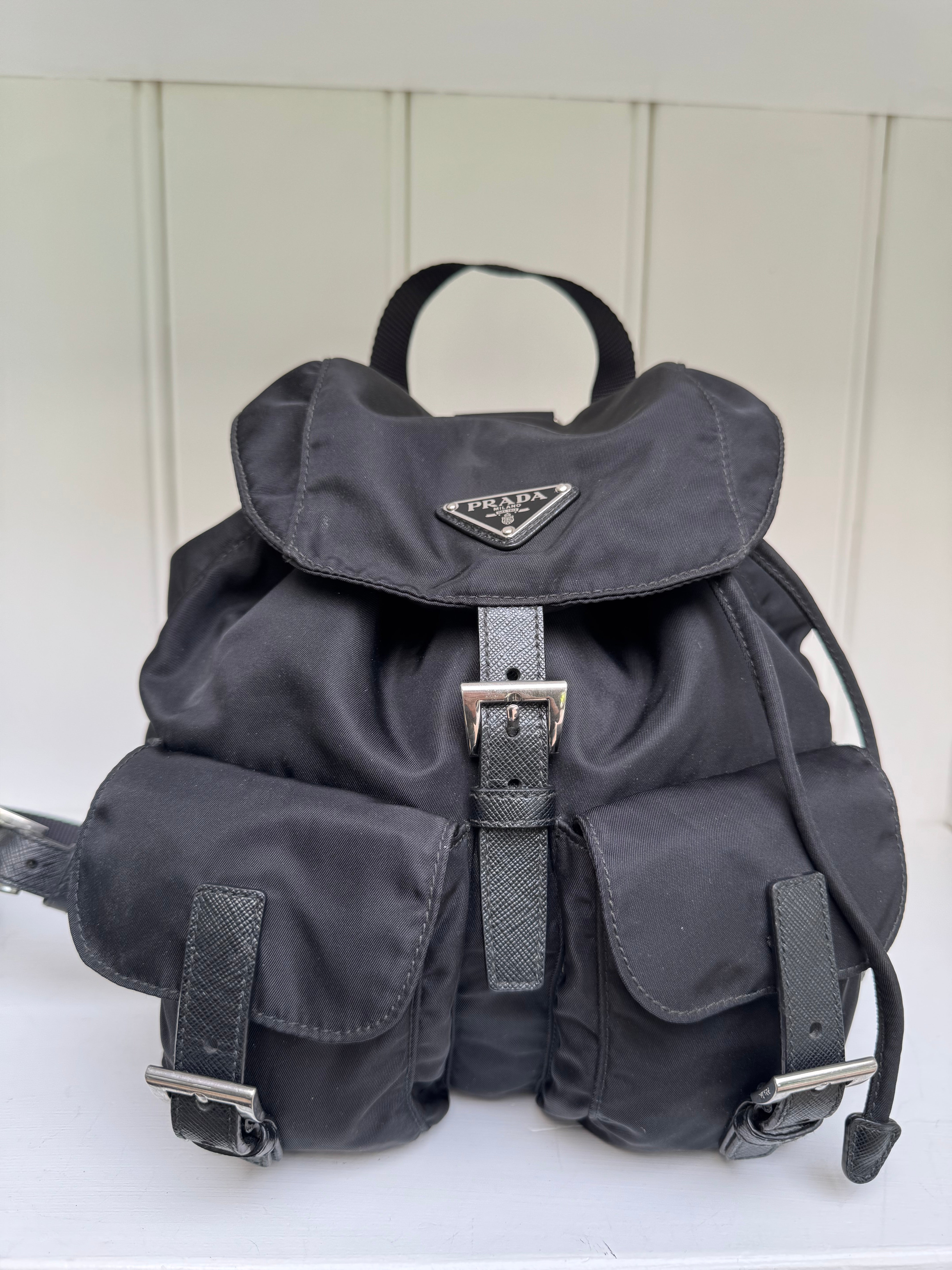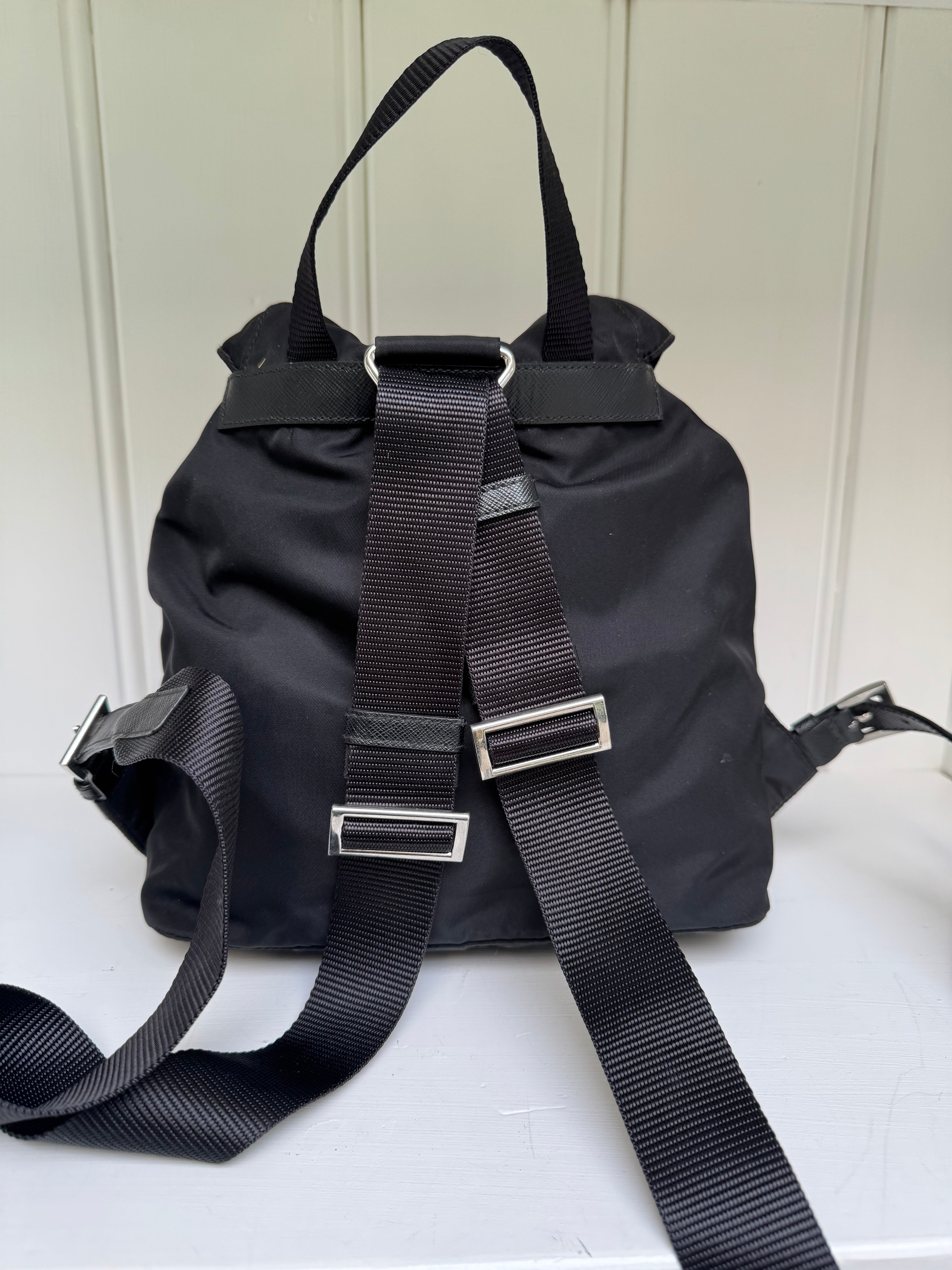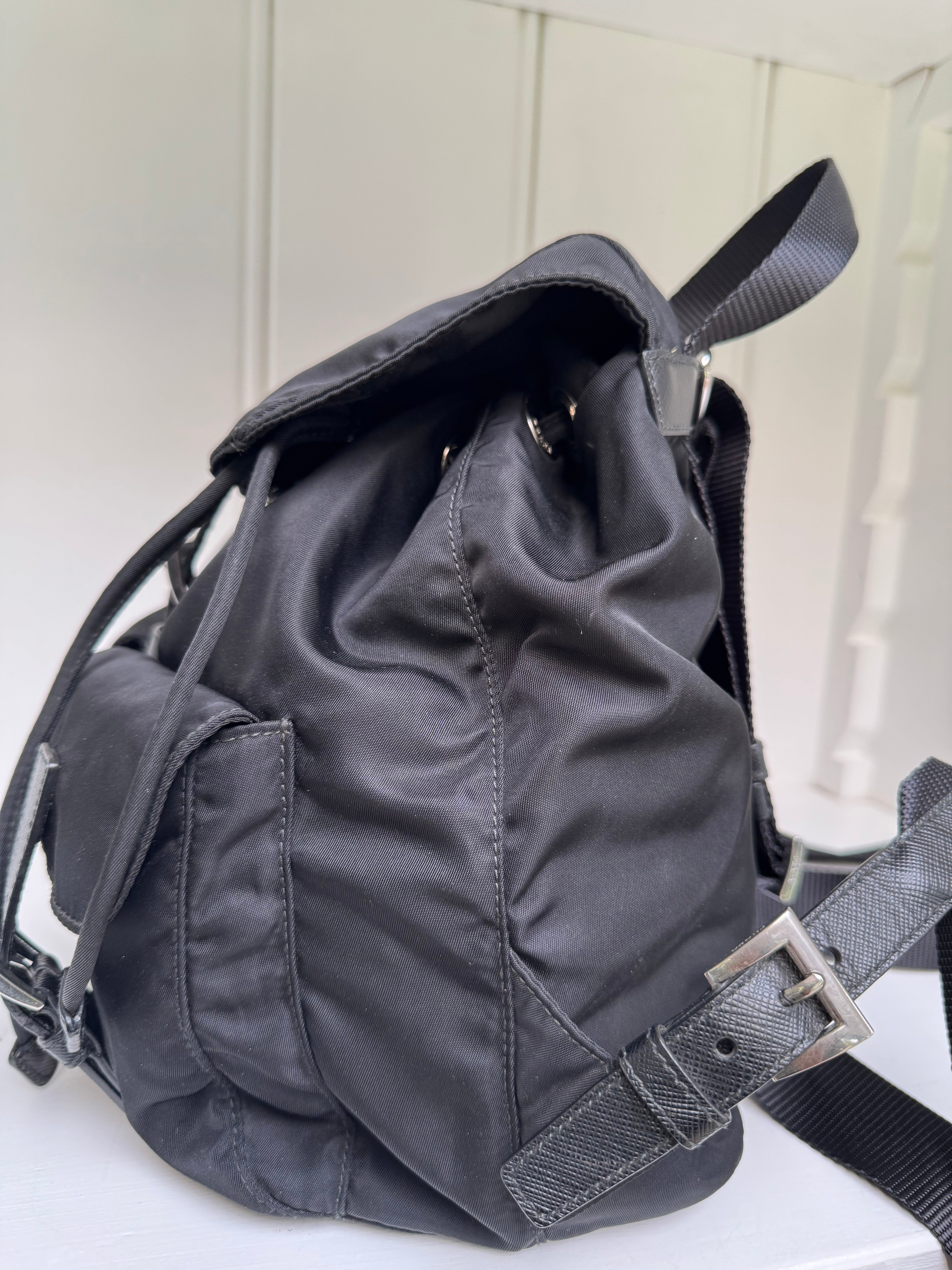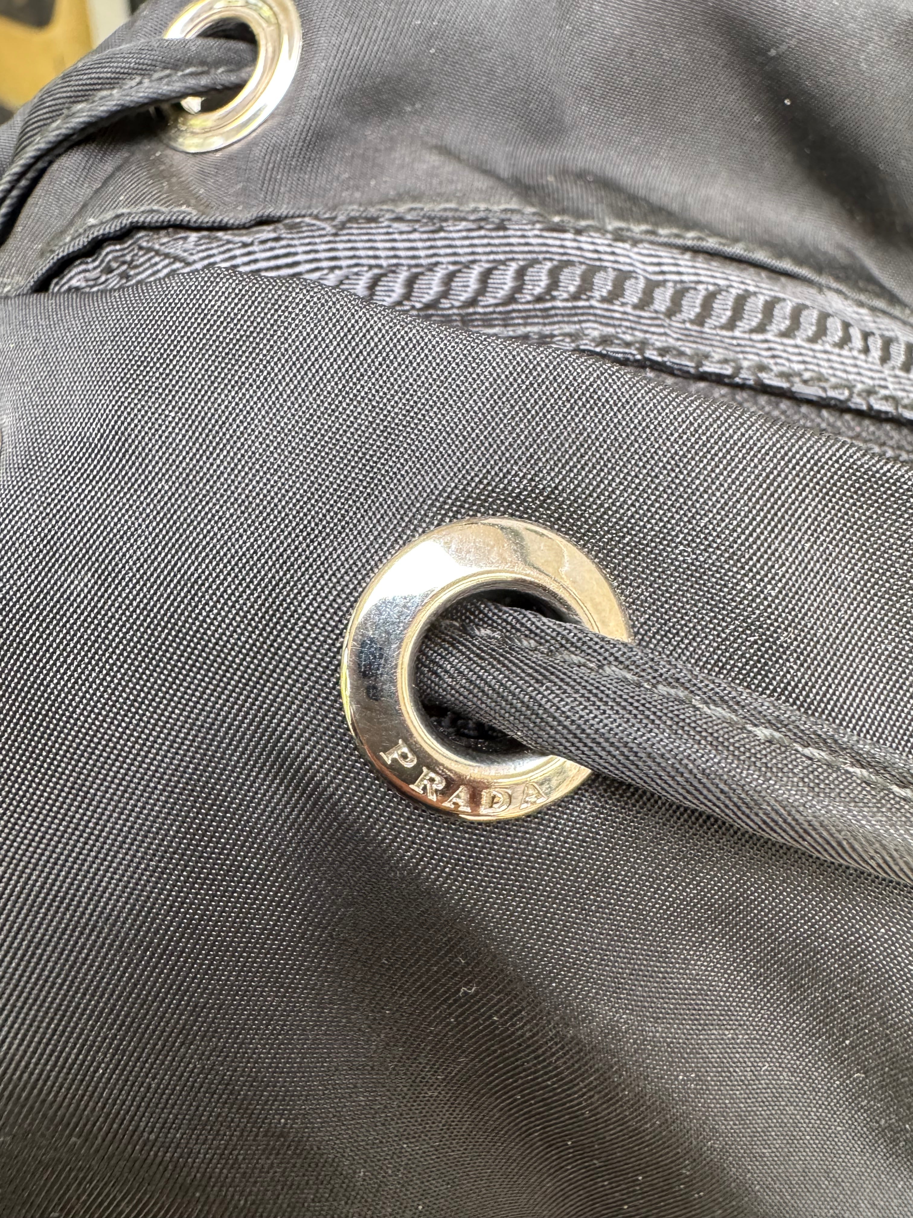 Brand:Prada Model:nylon backpack Exterior material:nylon Exterior colour:black Print:plain Interior material:nylon Closure:drawstring Hardware tone:silver Type:backpack Accessories: Features: Serial number:present Condition:very good...