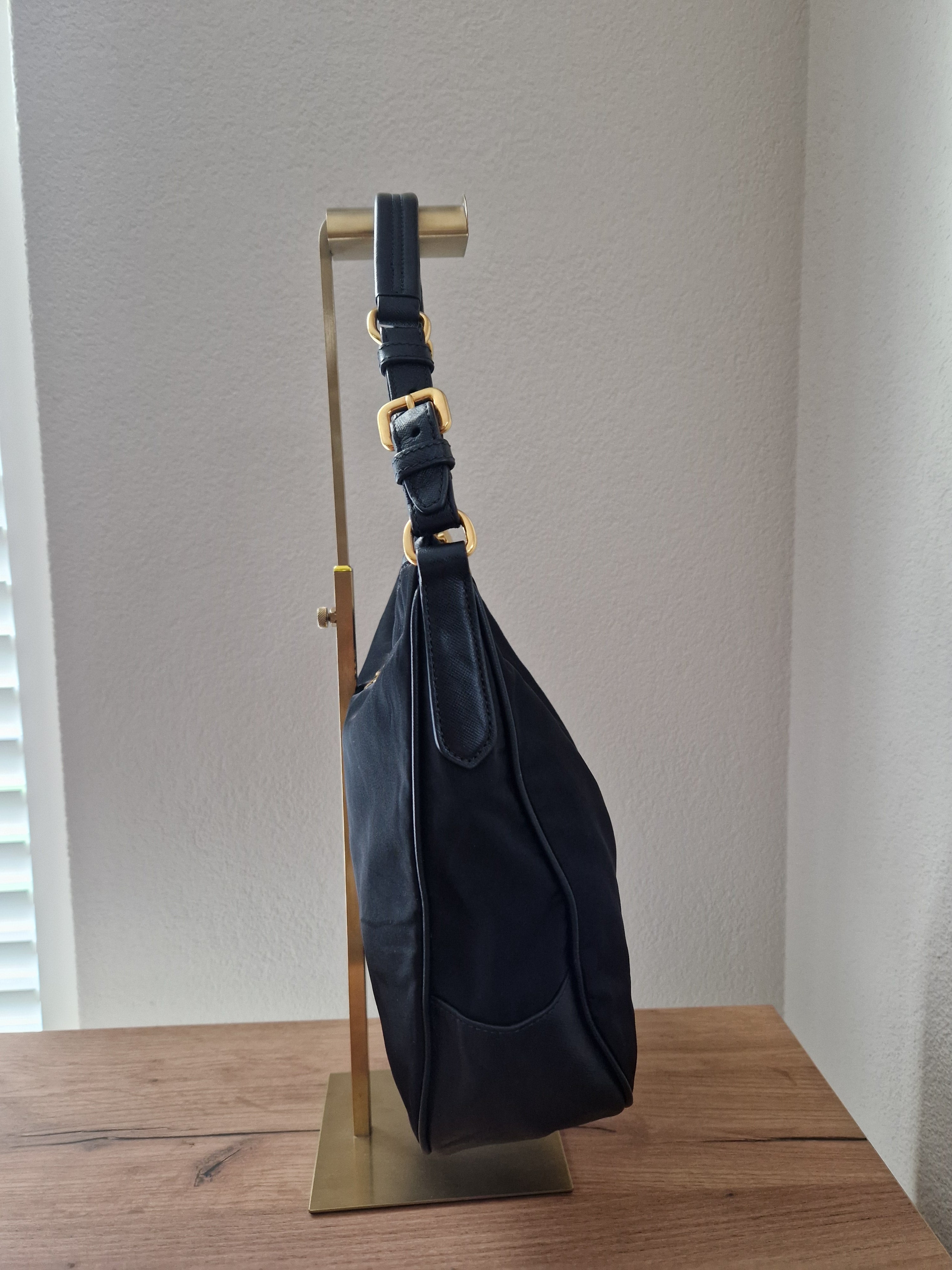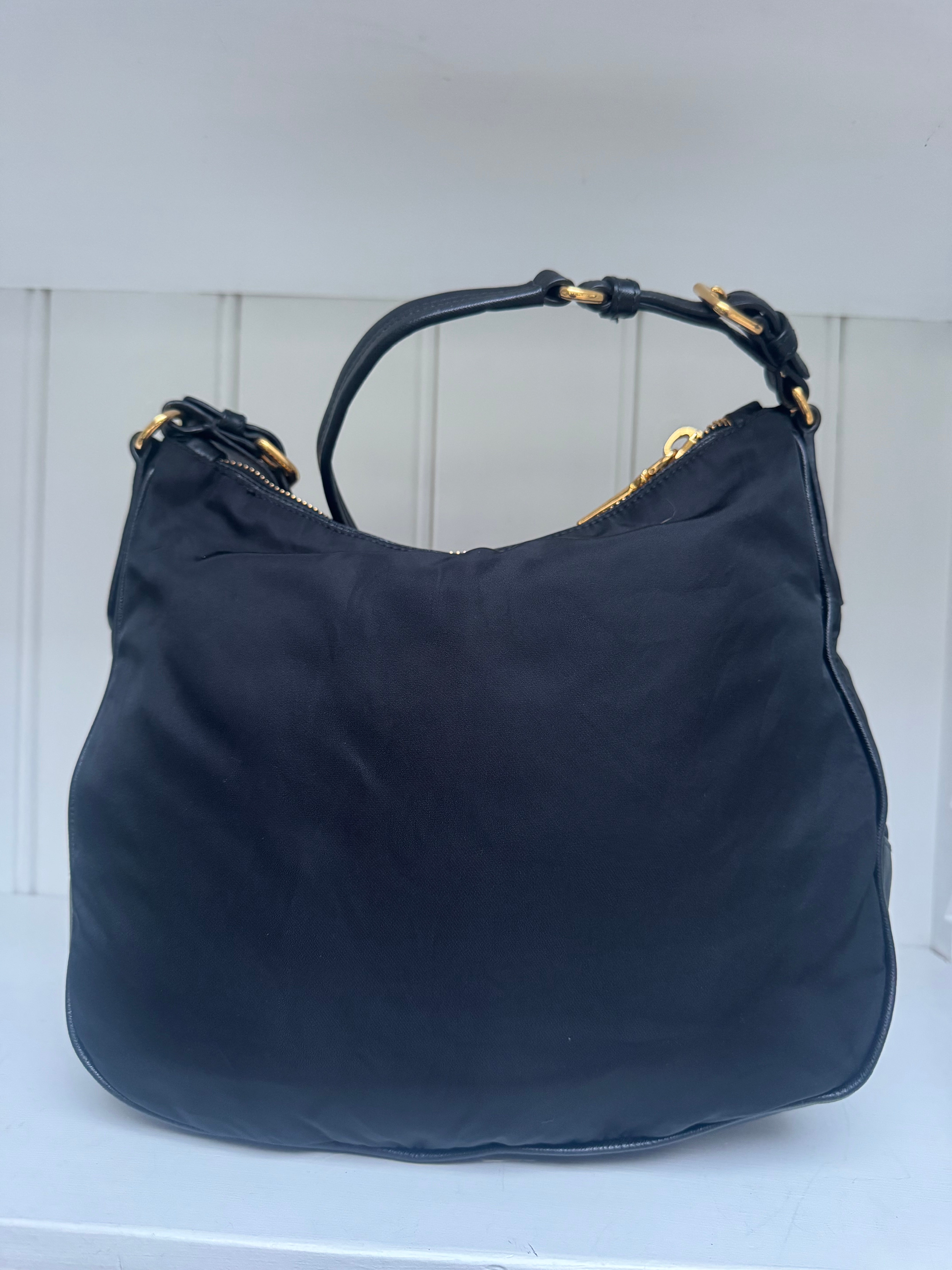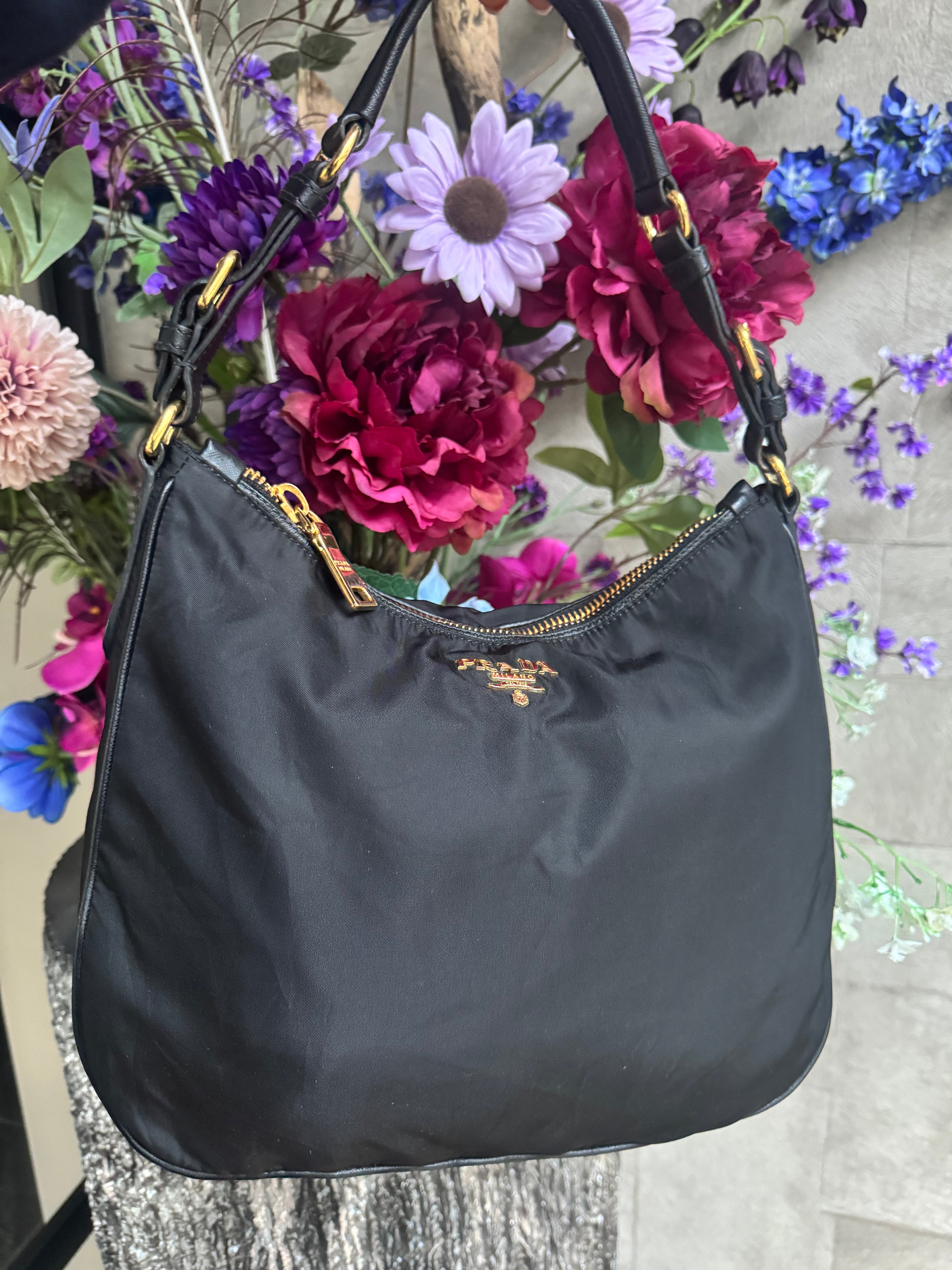 Product form Prada cloth shoulder bag $447.00Excl. VAT Elegant and timeless Prada shoulder bag crafted from durable black nylon with smooth leather handle details and gold-tone hardware. The... Read more Read more 1 in stock Show extra info for delivery time Add to cart This item is a deferred, subscription, or recurring purchase. By continuing, I agree to the cancellation policy and authorize you to charge my payment method at the prices, frequency and dates listed on this page until my order is fulfilled or I cancel, if permitted. Reviews 0 reviews Share with your friends Share WhatsApp Deel Tweet Pin it Messenger Email