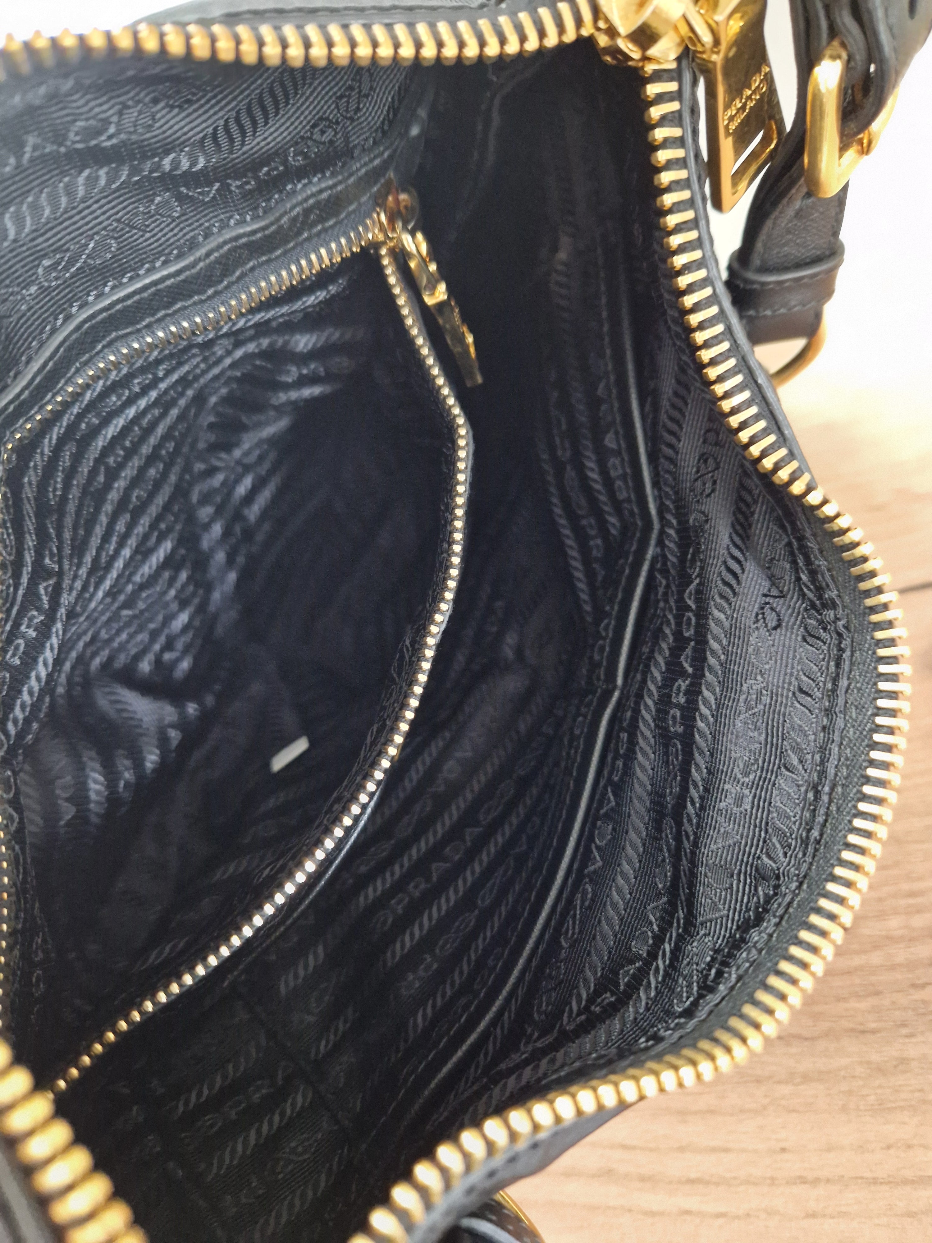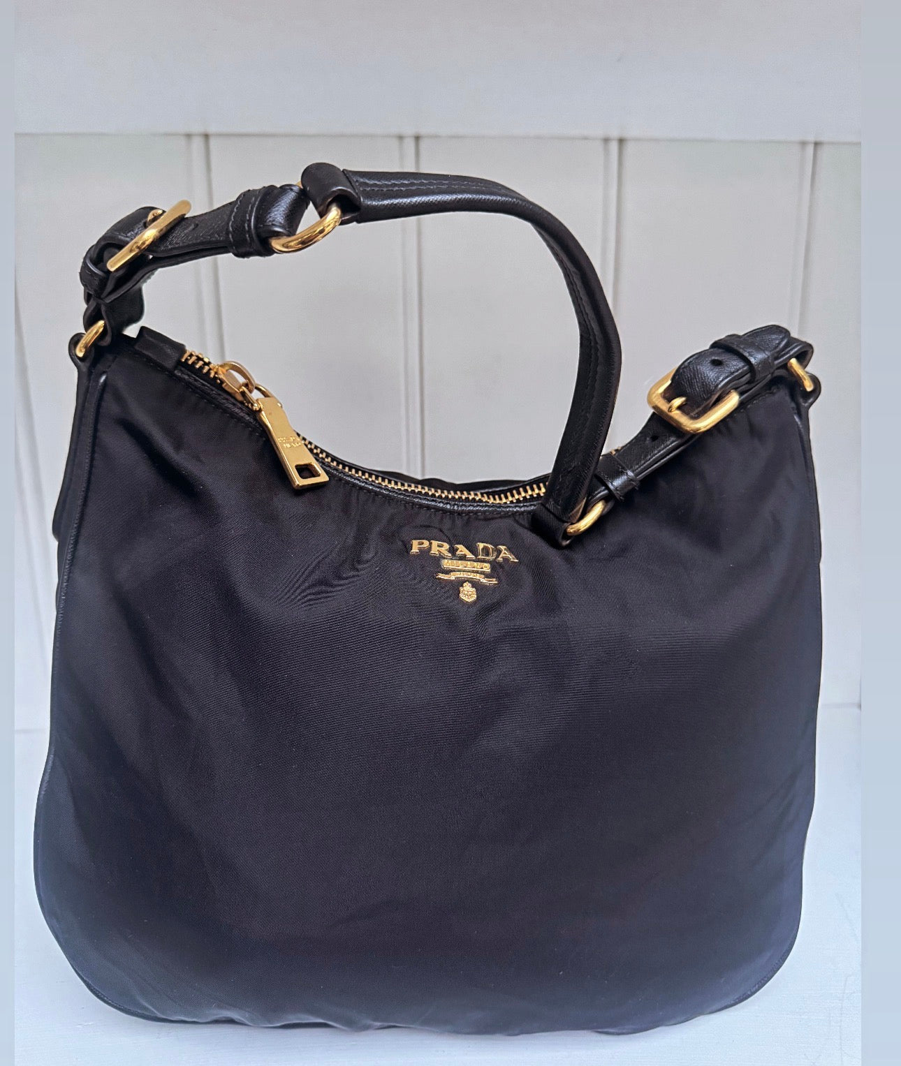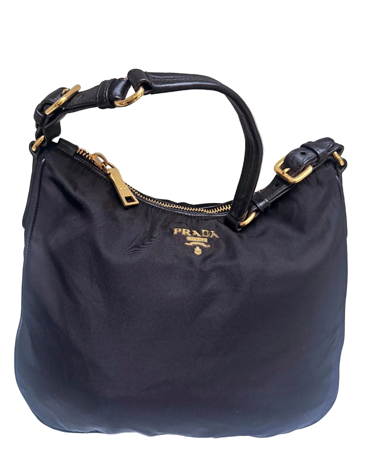 Product form Prada cloth shoulder bag $447.00Excl. VAT Elegant and timeless Prada shoulder bag crafted from durable black nylon with smooth leather handle details and gold-tone hardware. The... Read more Read more 1 in stock Show extra info for delivery time Add to cart This item is a deferred, subscription, or recurring purchase. By continuing, I agree to the cancellation policy and authorize you to charge my payment method at the prices, frequency and dates listed on this page until my order is fulfilled or I cancel, if permitted. Reviews 0 reviews Share with your friends Share WhatsApp Deel Tweet Pin it Messenger Email