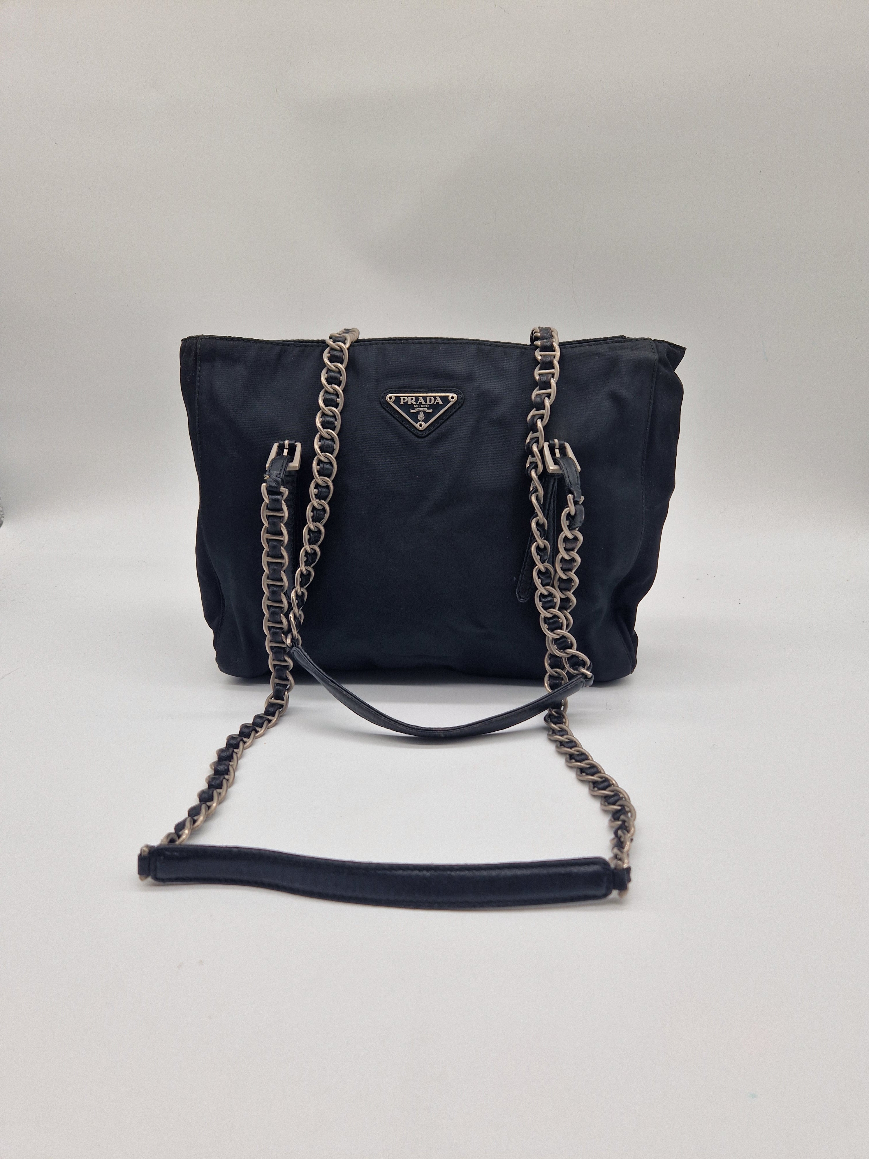 Product form Prada cloth shoulder bag $447.00Excl. VAT Prada Nylon Chain Tote – Black Tessuto Classic Prada nylon tote in black Tessuto with signature triangle logo and... Read more Read more 1 in stock Show extra info for delivery time Add to cart This item is a deferred, subscription, or recurring purchase. By continuing, I agree to the cancellation policy and authorize you to charge my payment method at the prices, frequency and dates listed on this page until my order is fulfilled or I cancel, if permitted. Reviews 0 reviews Share with your friends Share WhatsApp Deel Tweet Pin it Messenger Email