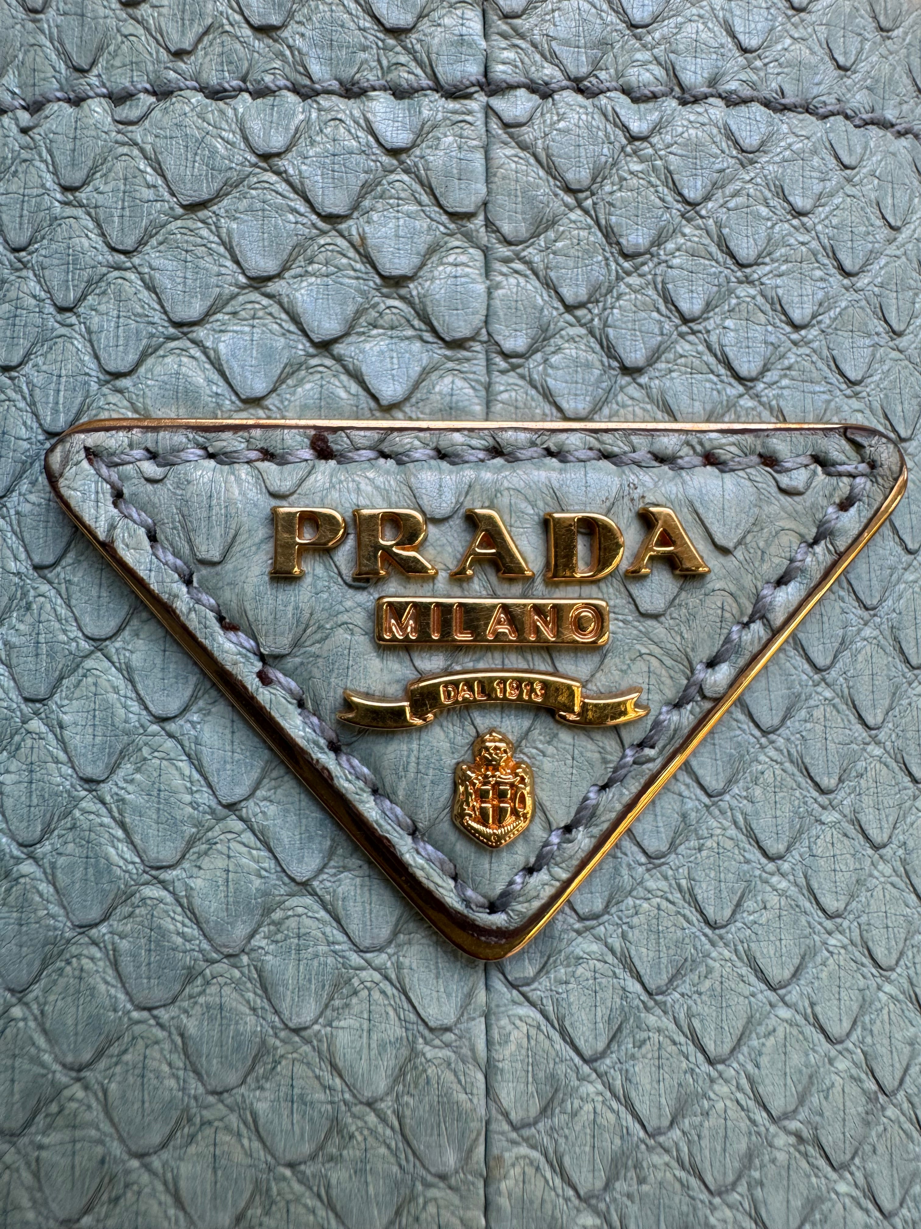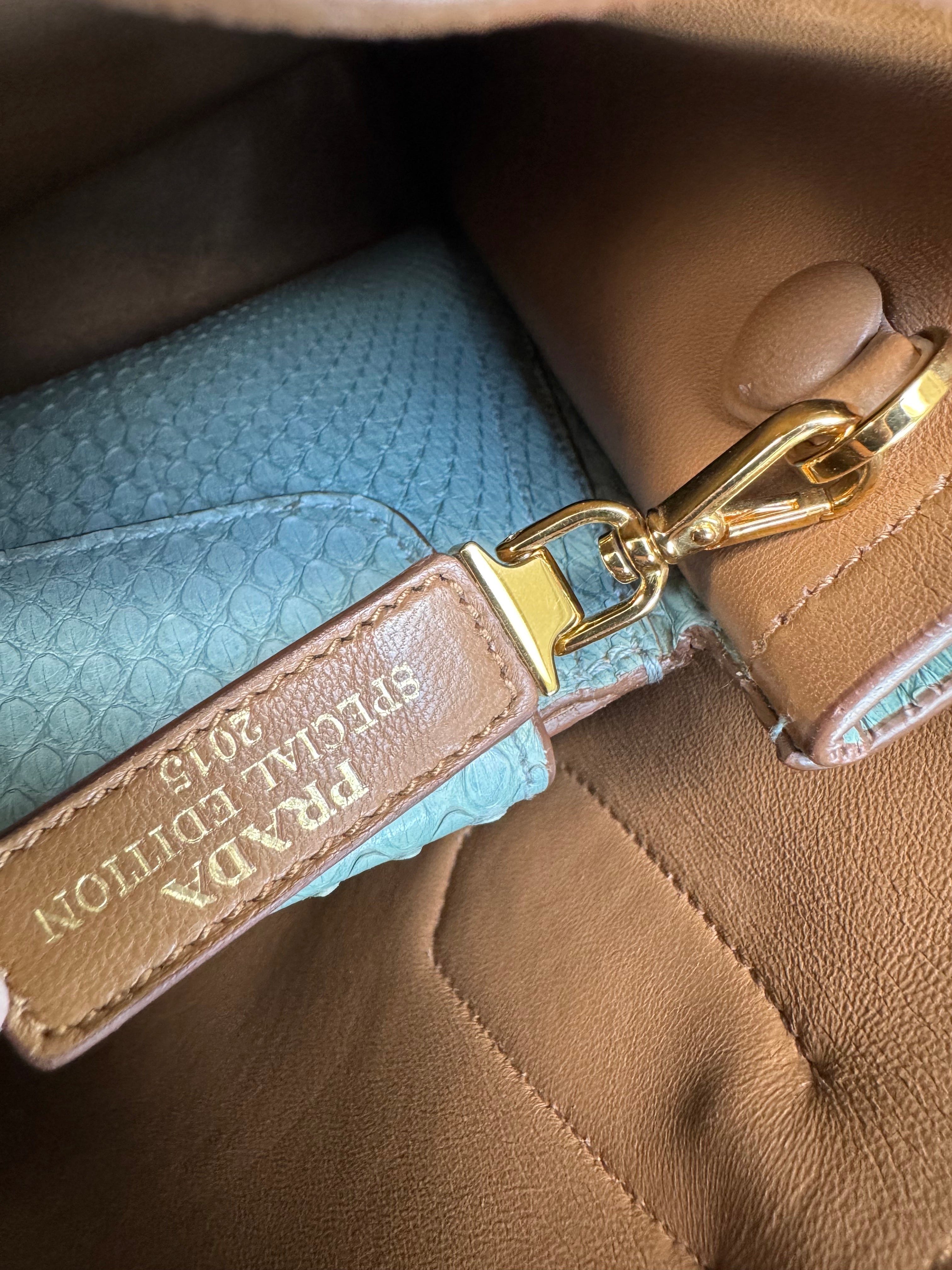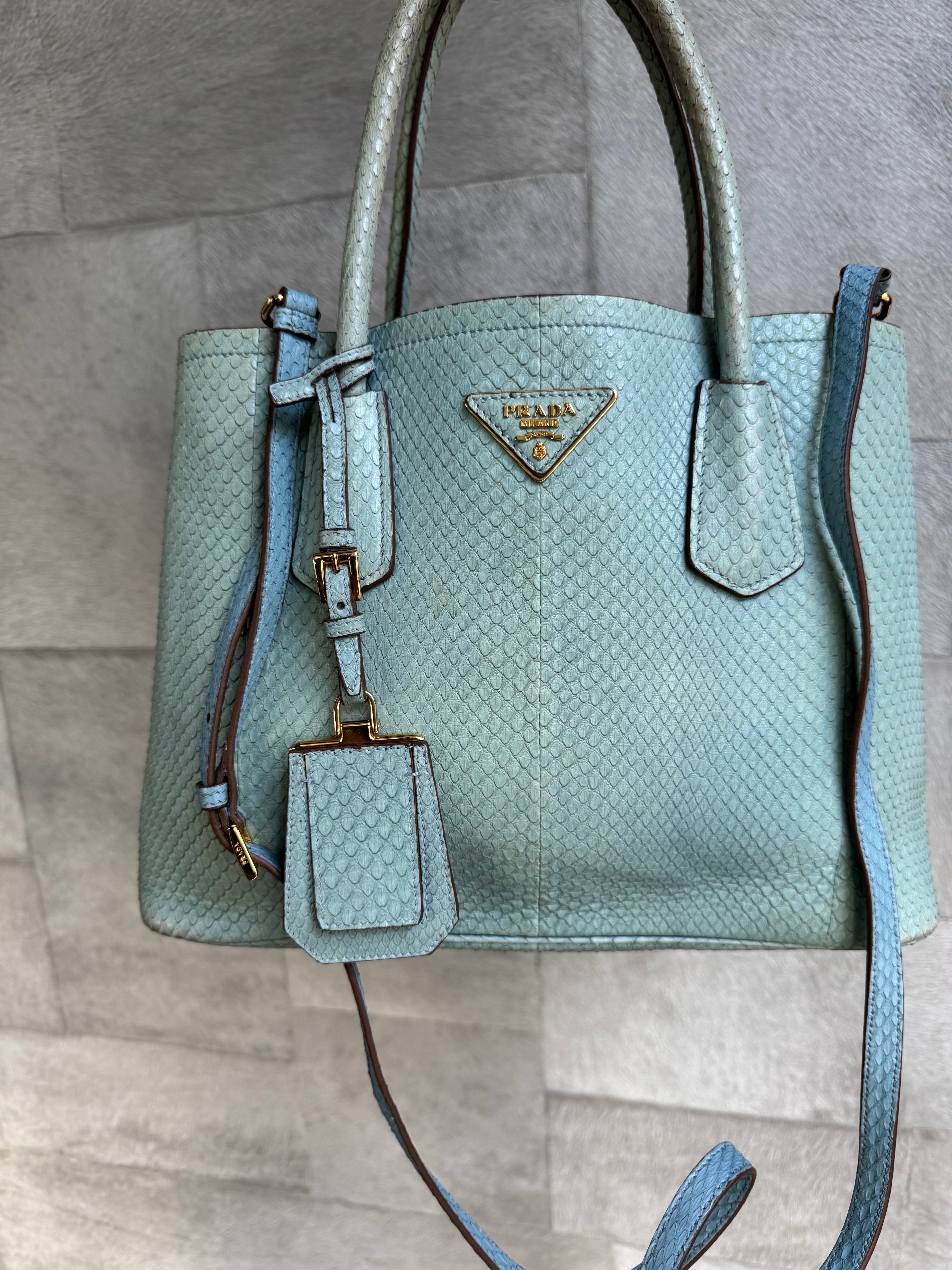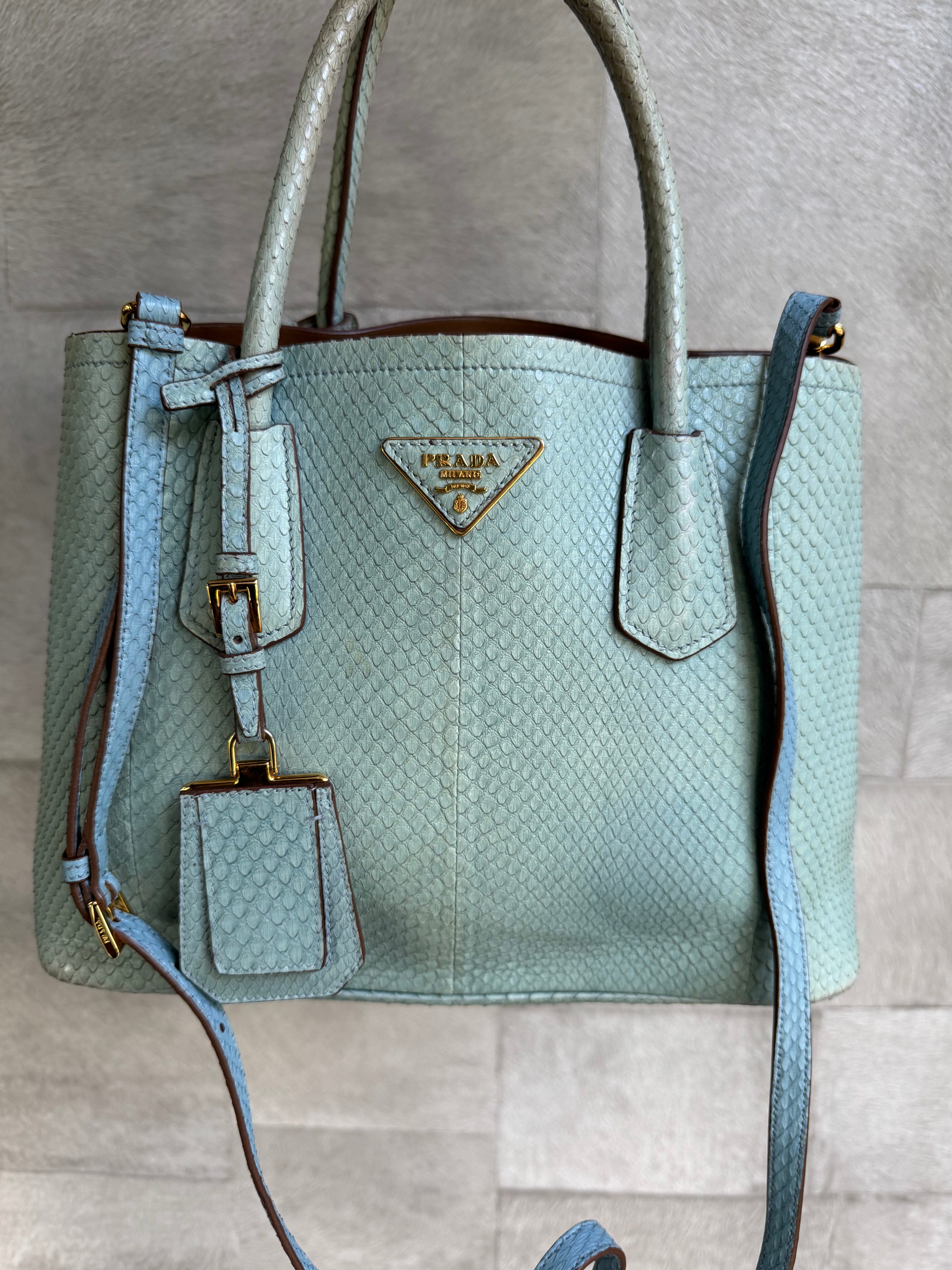 Brand:Prada Model:special edition double bag Exterior material:python leather Exterior colour:mint green Print:plain Interior material:leather Closure: Hardware tone:gold Type:handbag Accessories:crossbody strap...