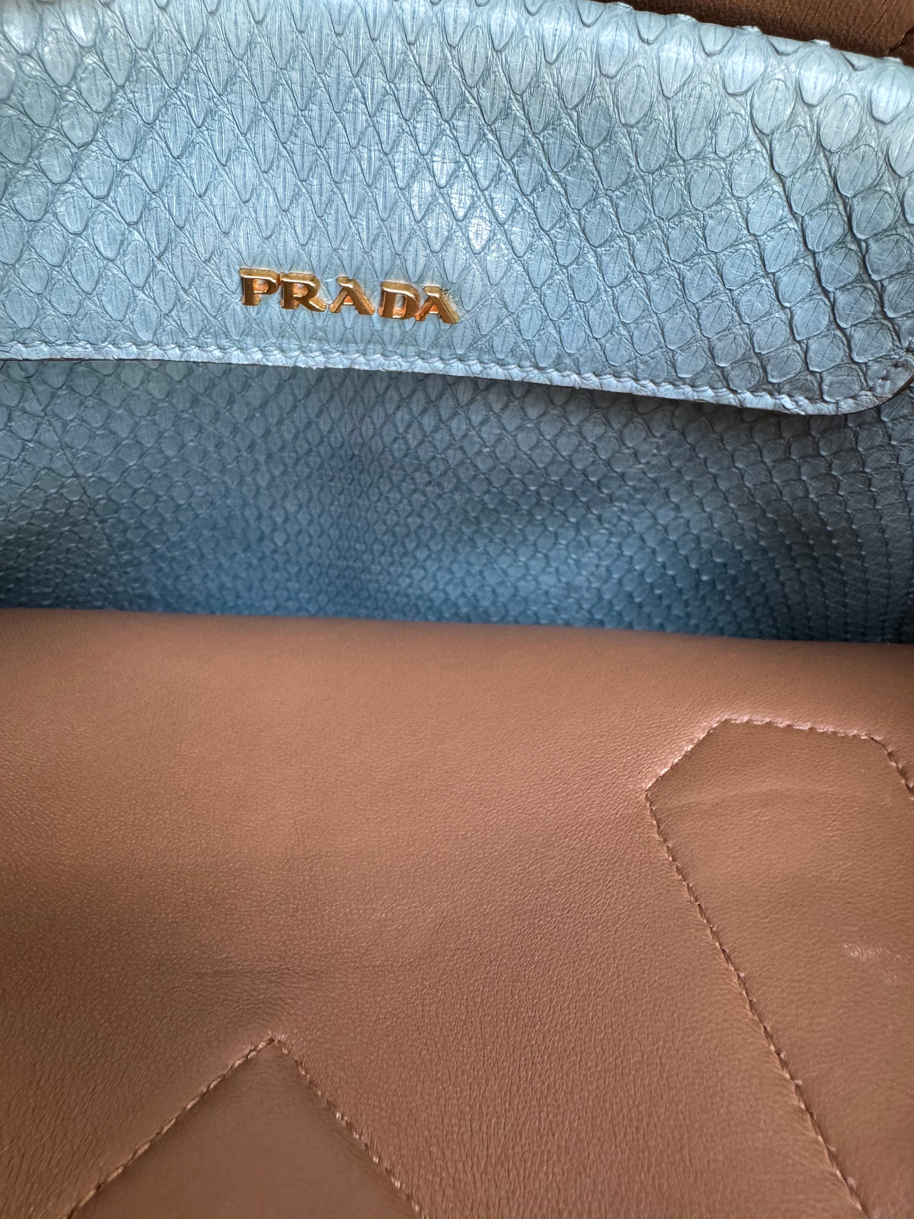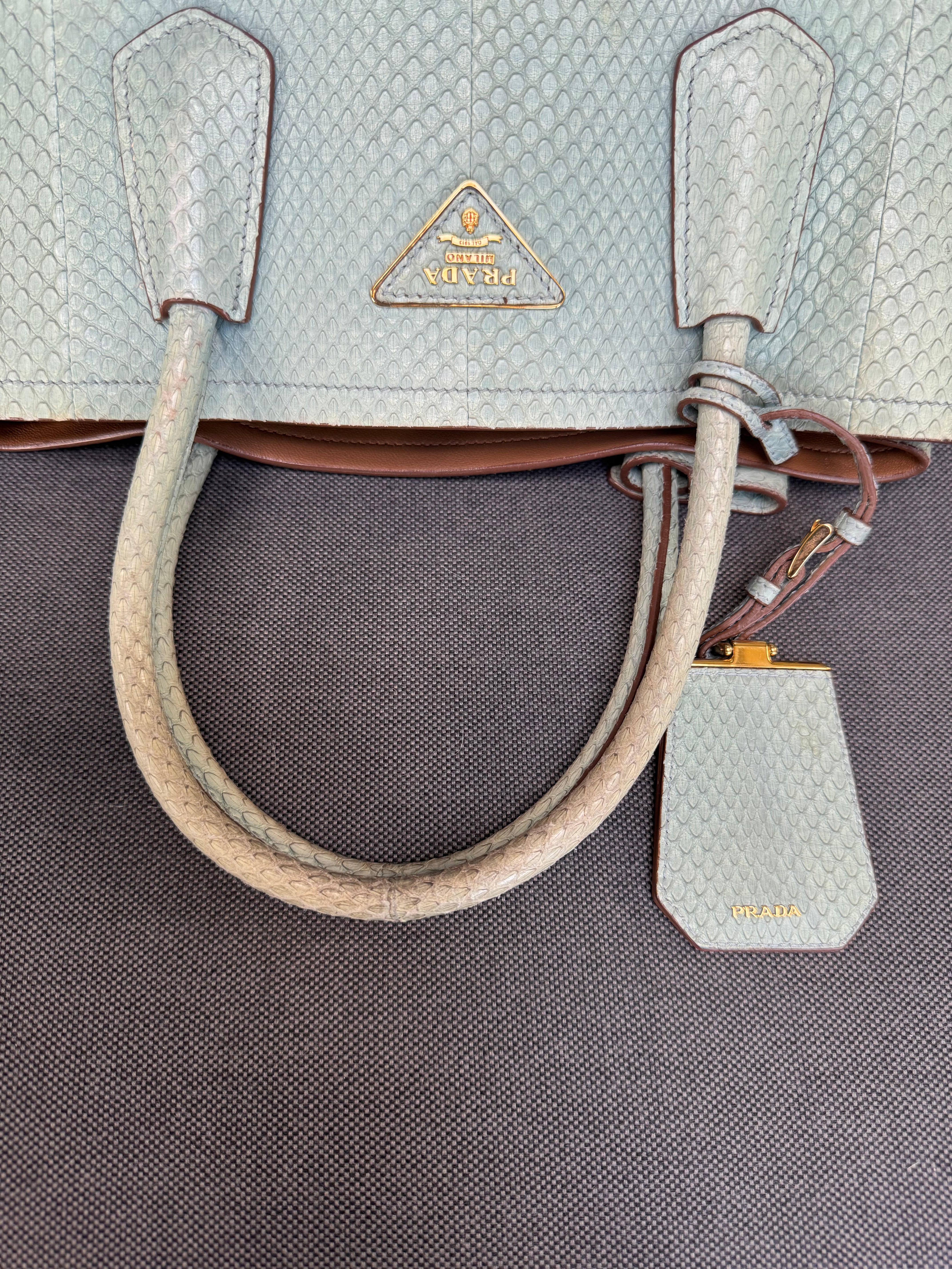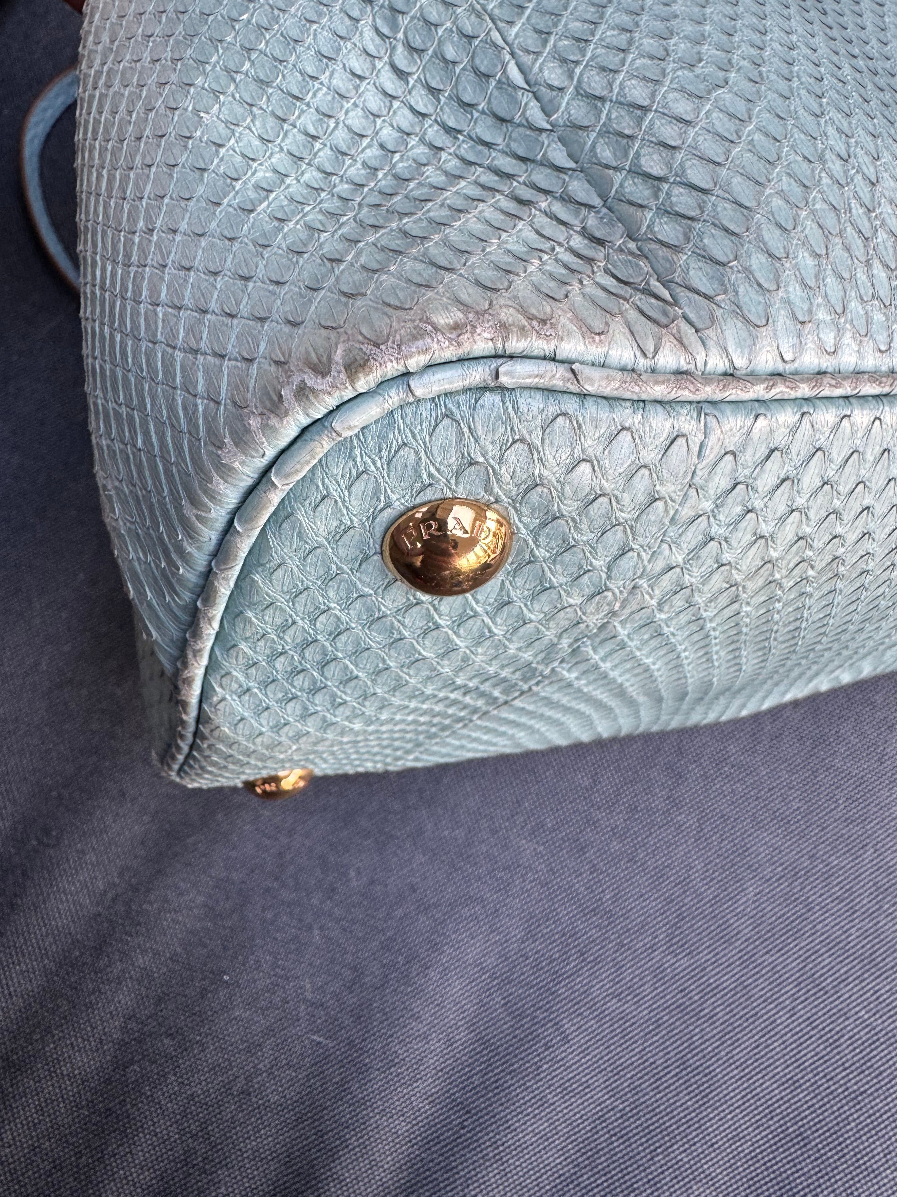 Brand:Prada Model:special edition double bag Exterior material:python leather Exterior colour:mint green Print:plain Interior material:leather Closure: Hardware tone:gold Type:handbag Accessories:crossbody strap...