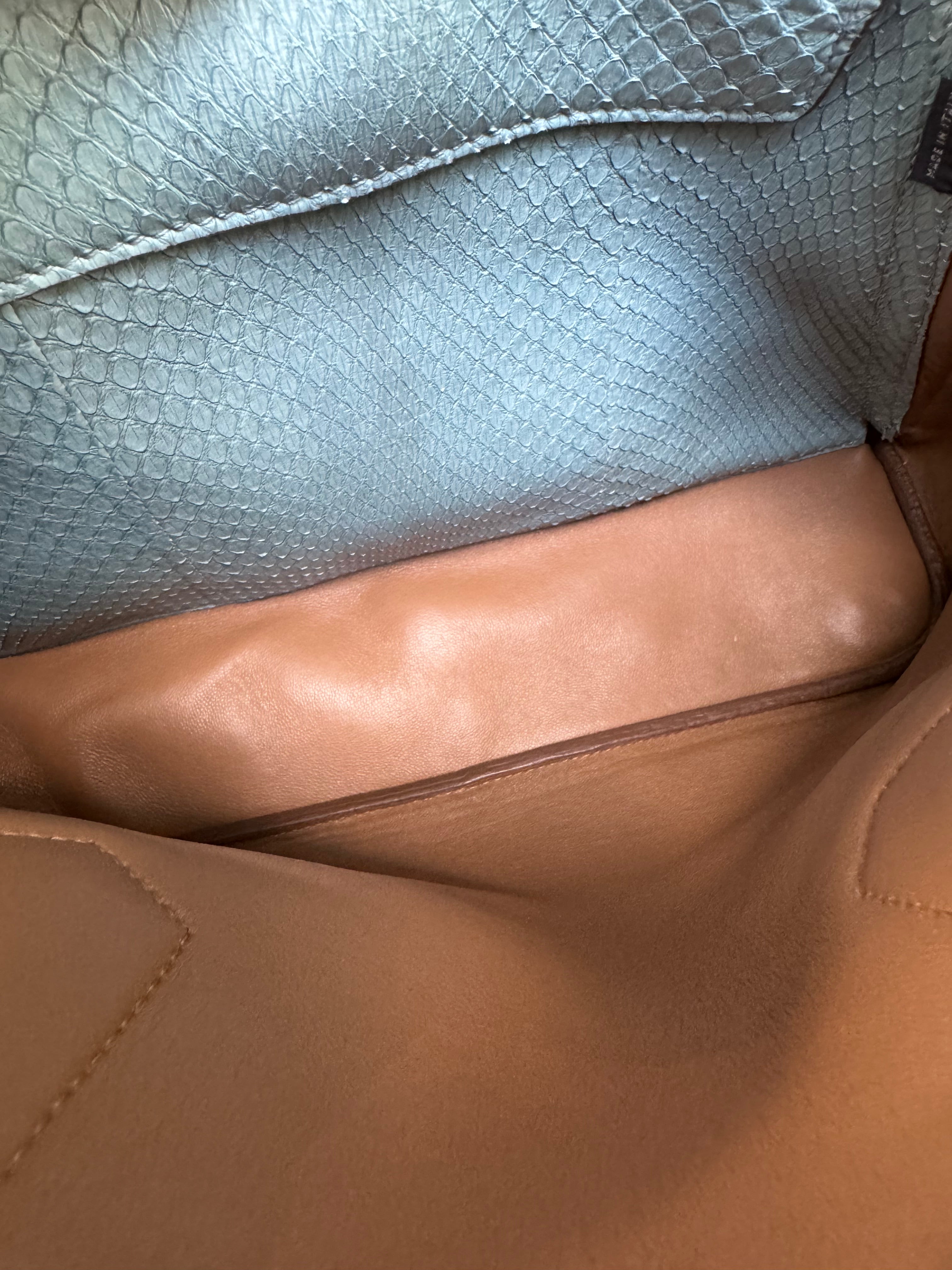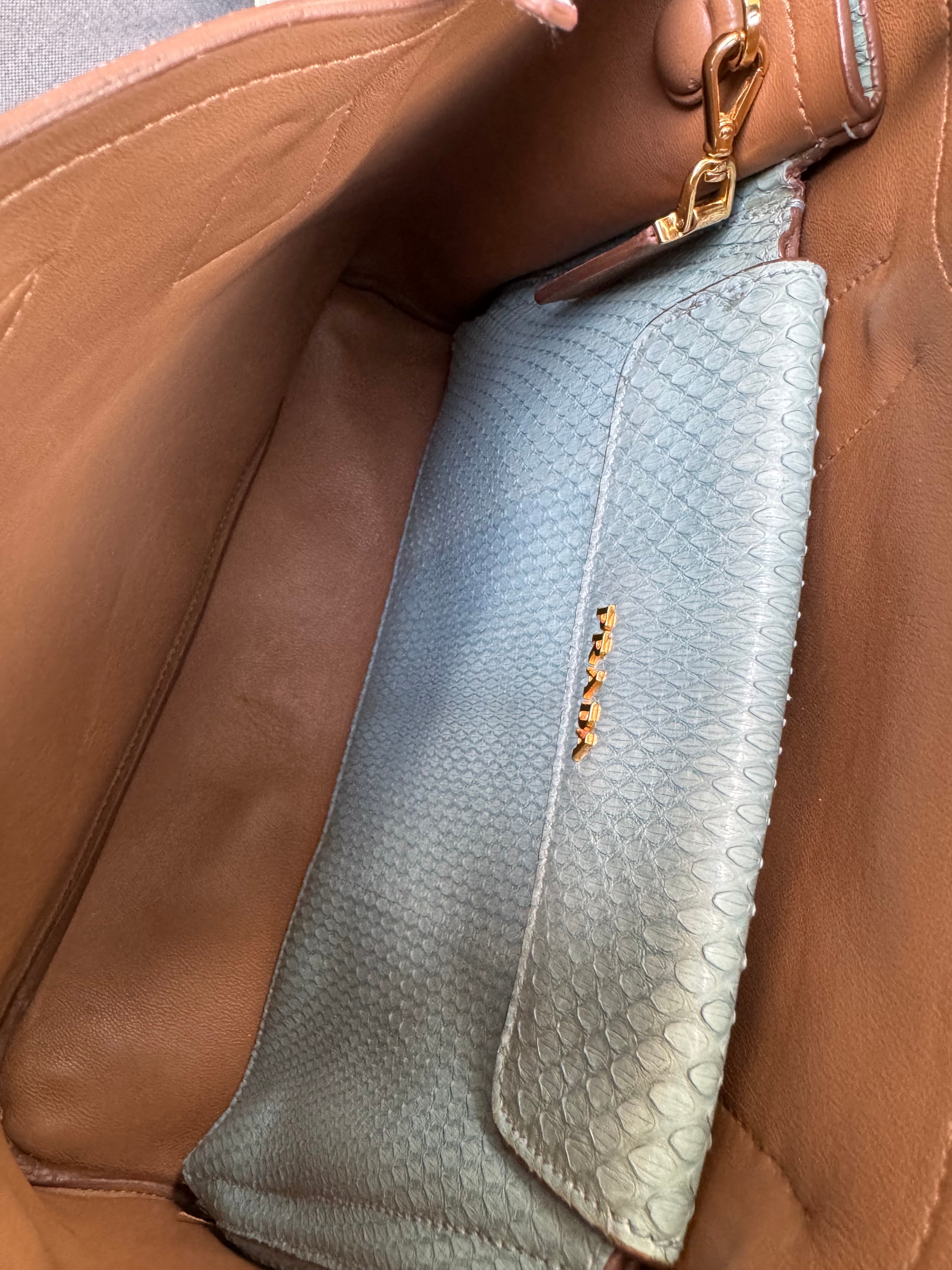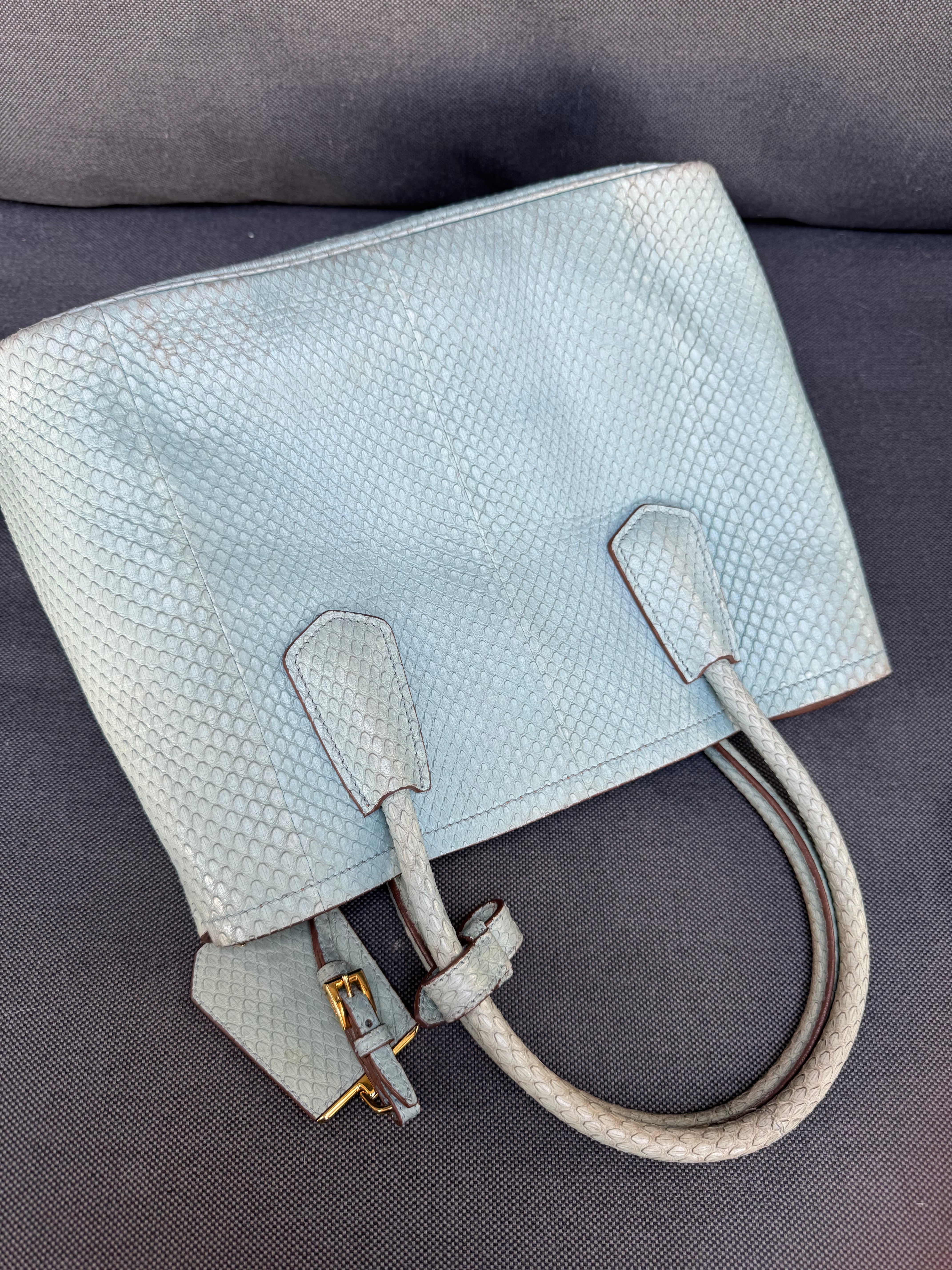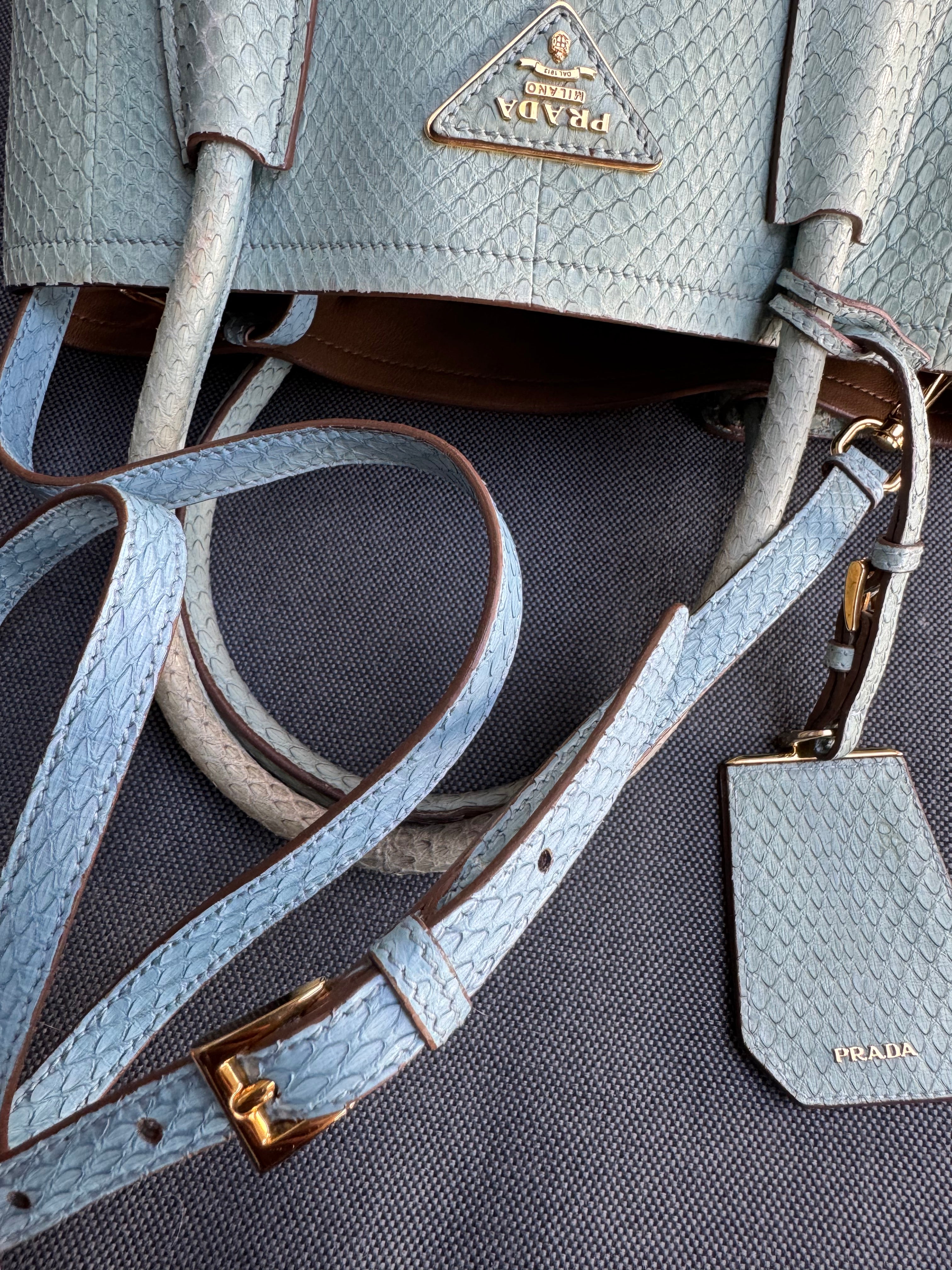 Brand:Prada Model:special edition double bag Exterior material:python leather Exterior colour:mint green Print:plain Interior material:leather Closure: Hardware tone:gold Type:handbag Accessories:crossbody strap...