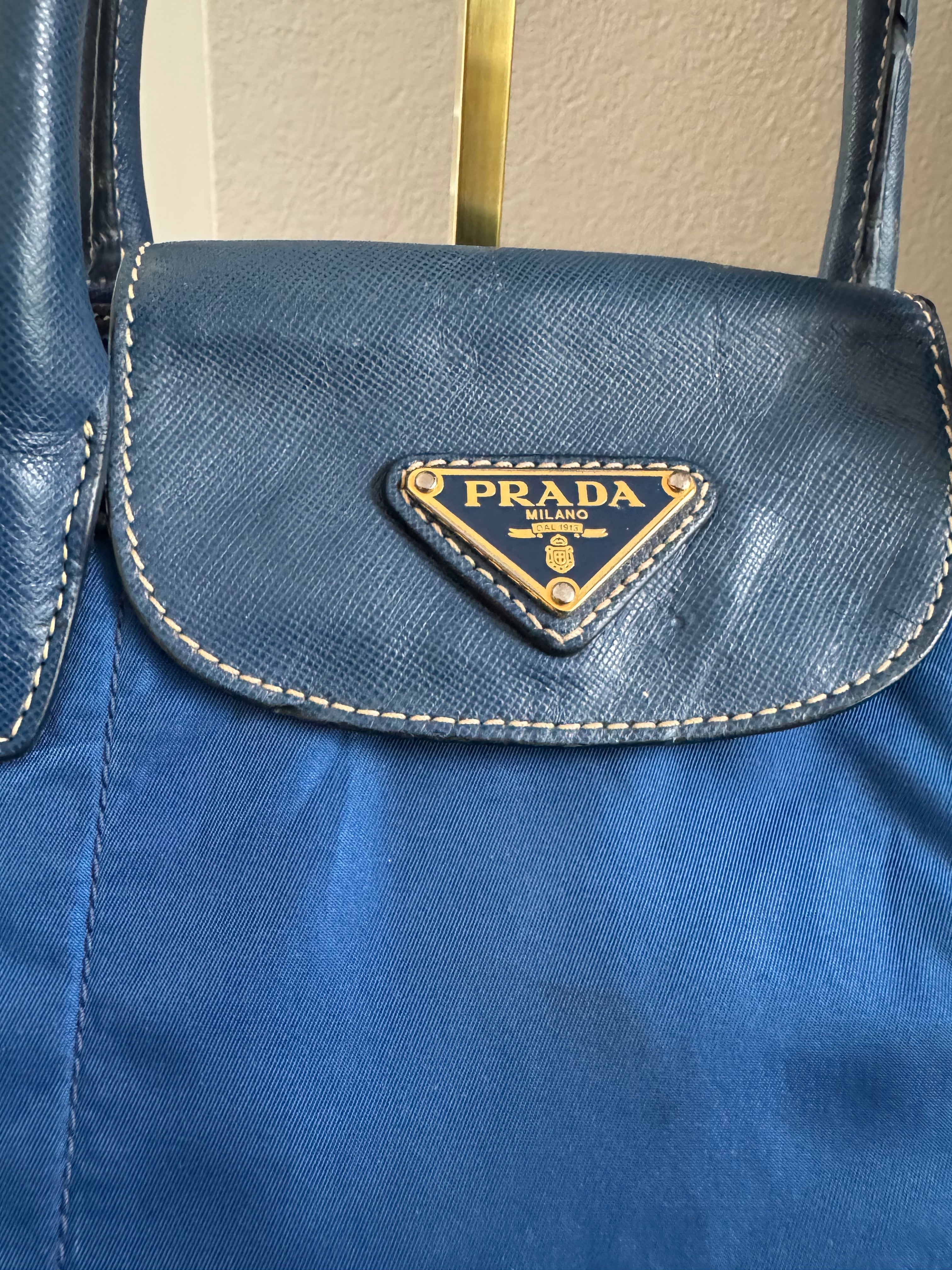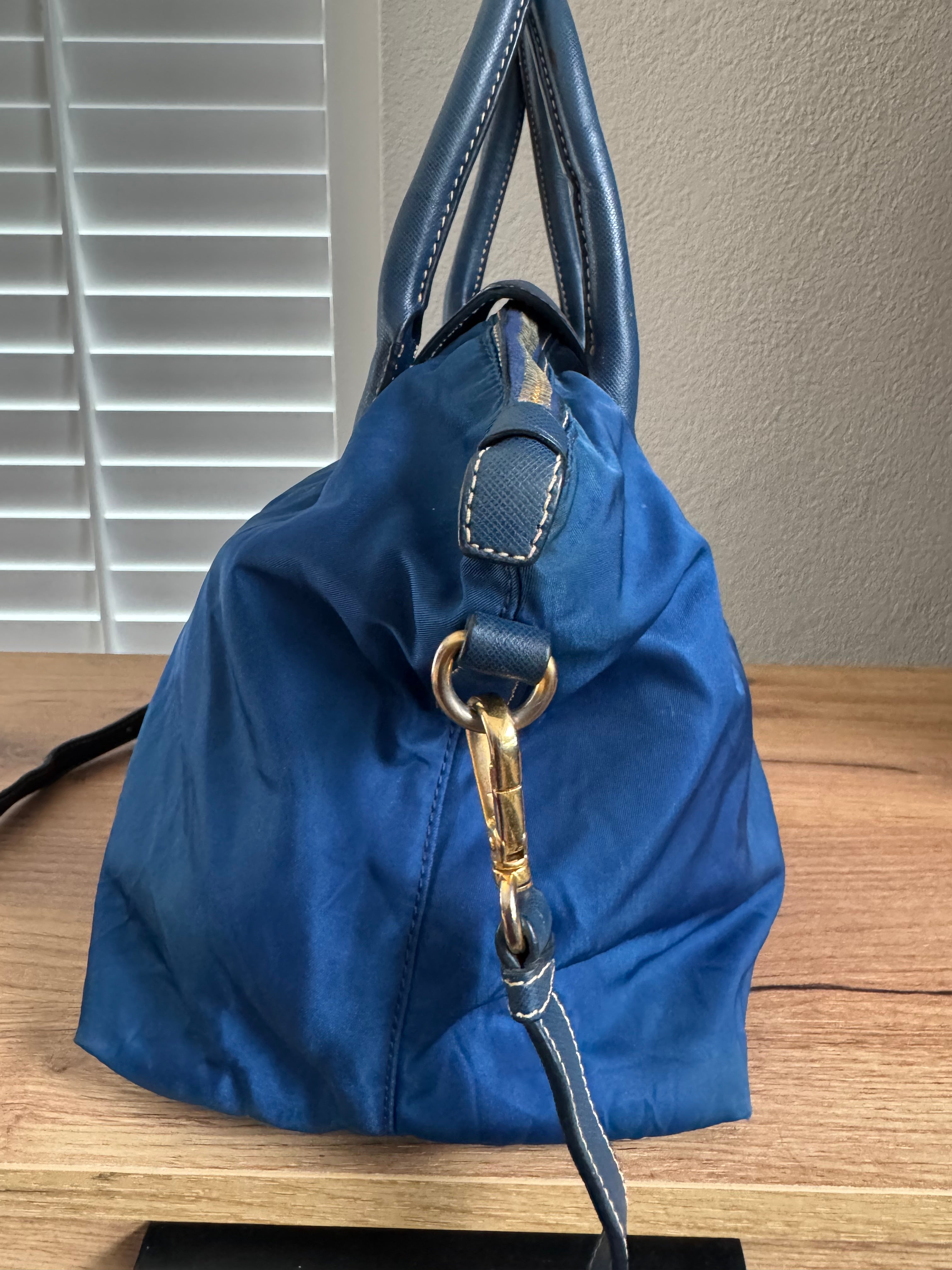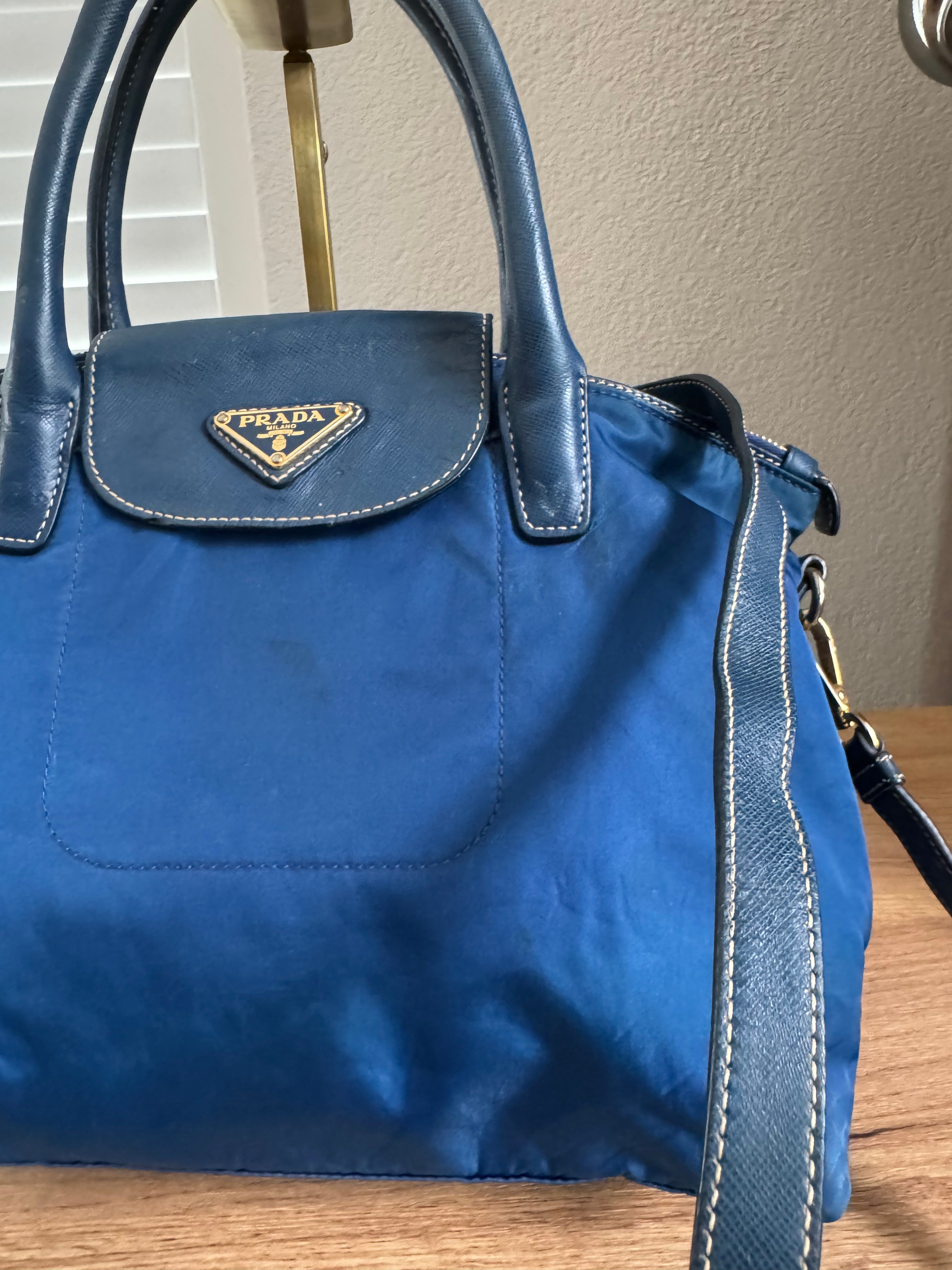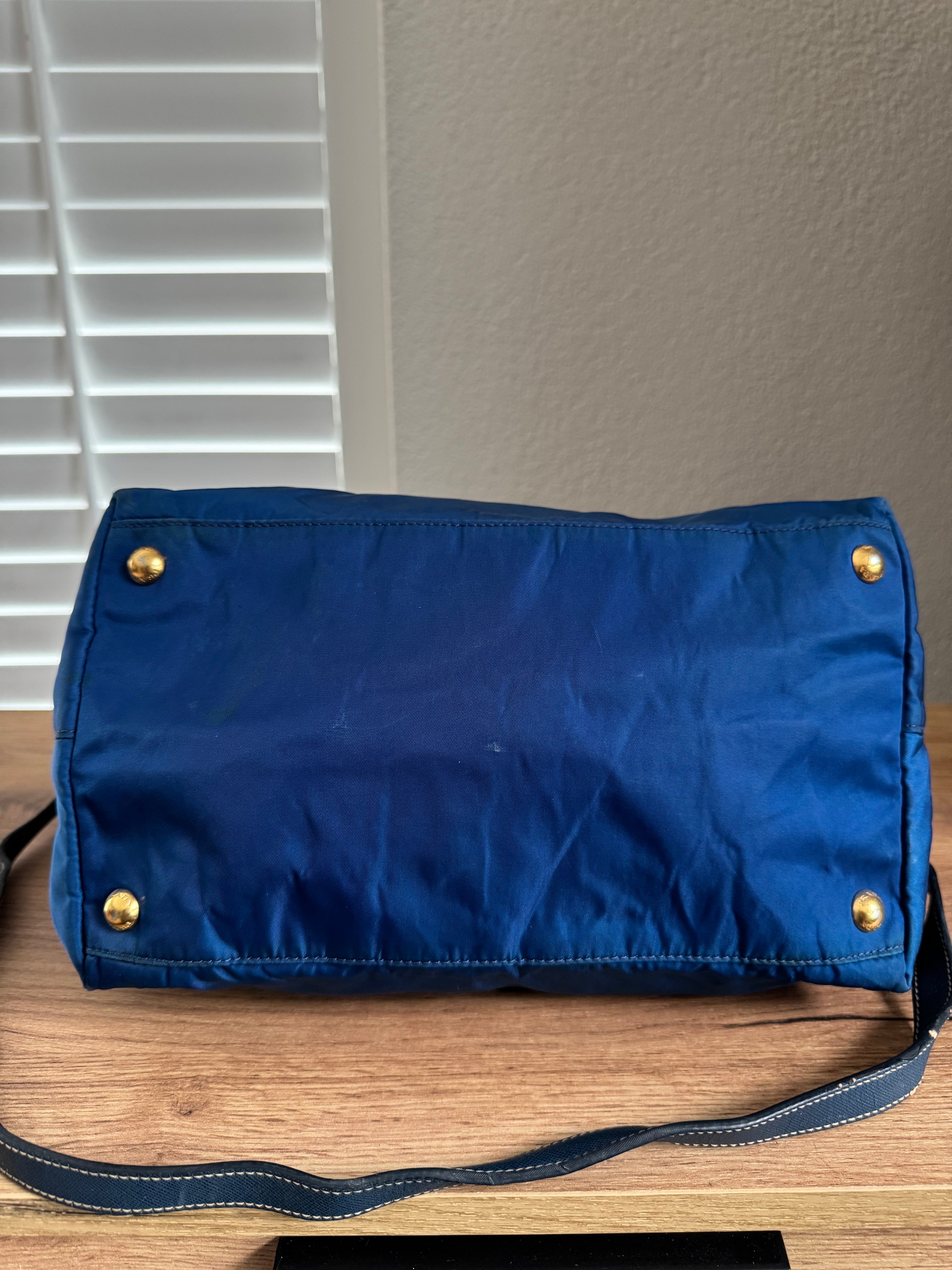 Brand:Prada Model:re nylon handbag Exterior material:nylon Exterior colour:blue Print:plain Interior material:nylon Closure:zip Hardware tone:gold Type:handbag Accessories:removable crossbody bag Features:adjustable strap... Read more Read more