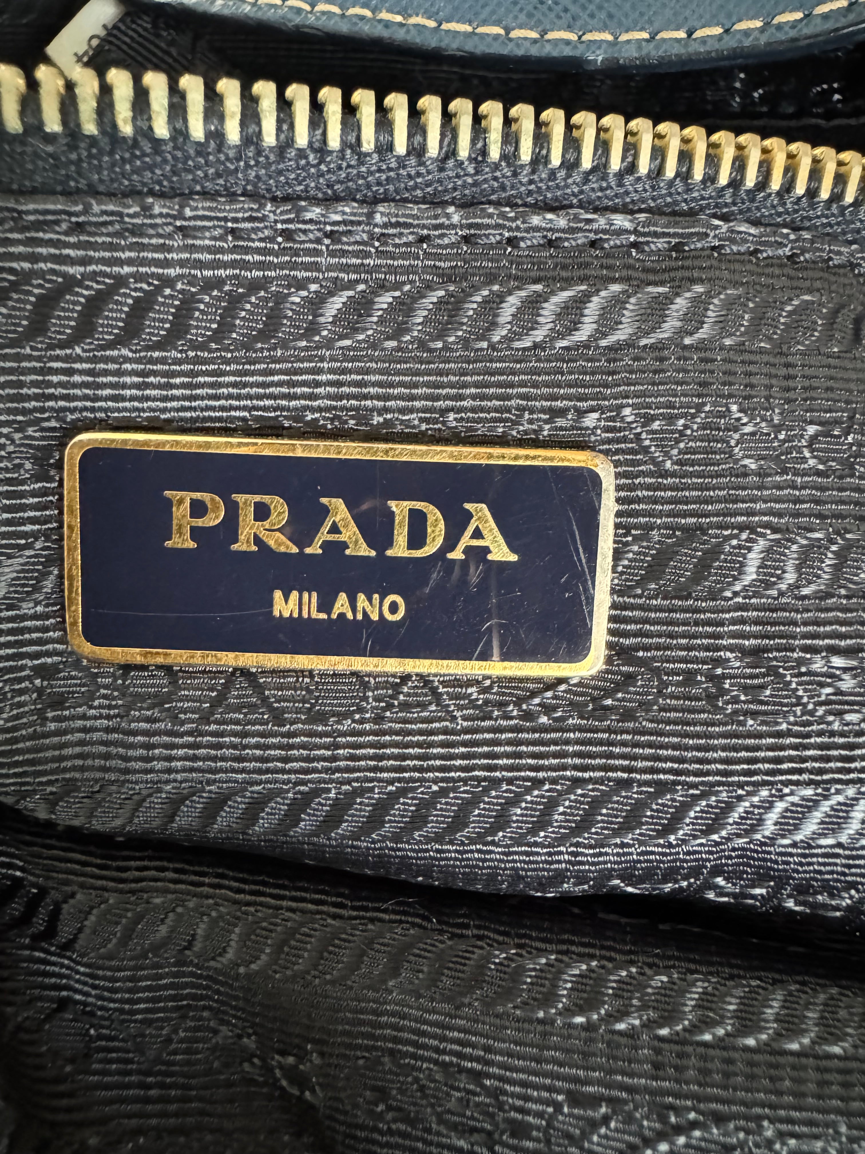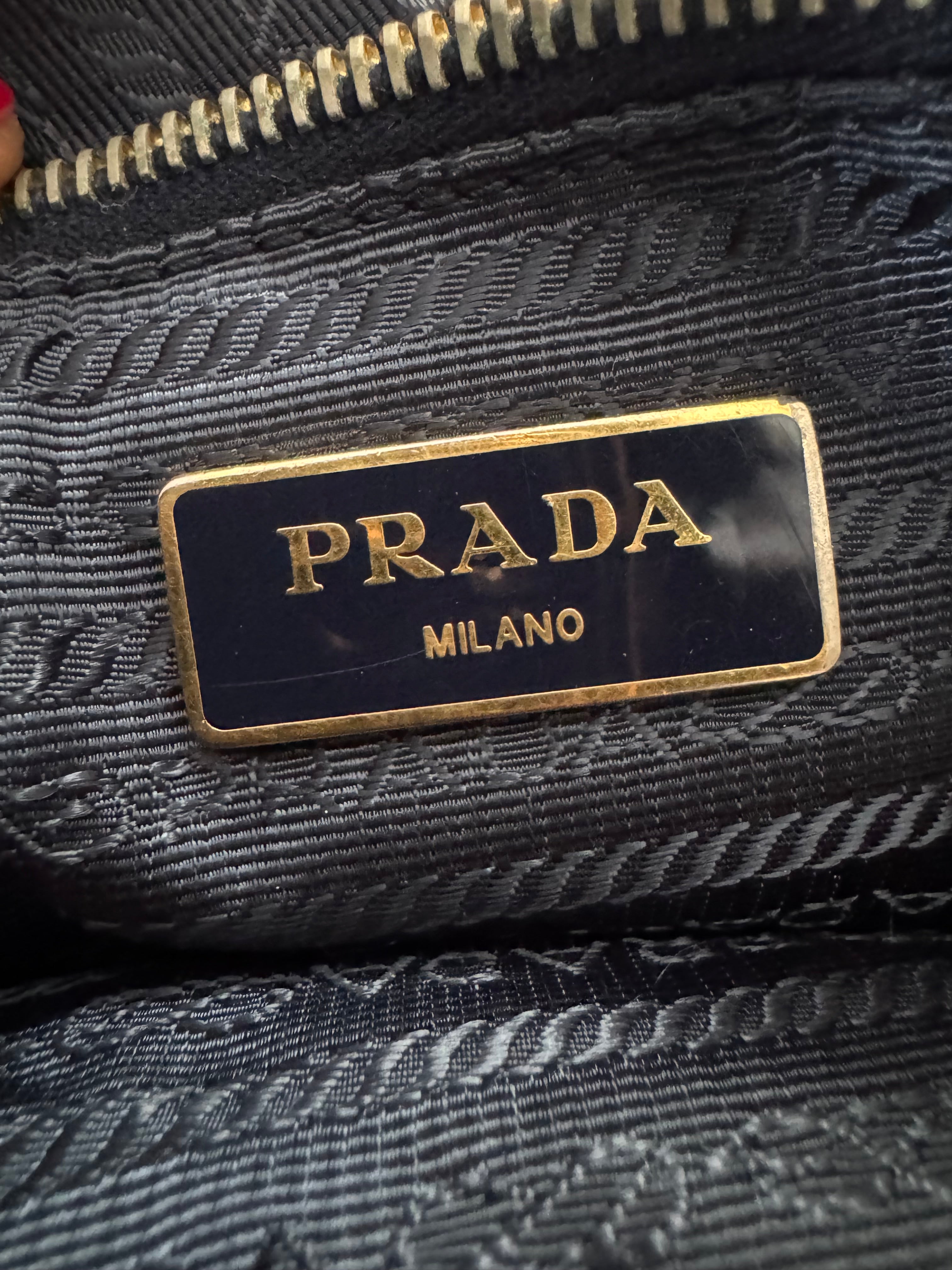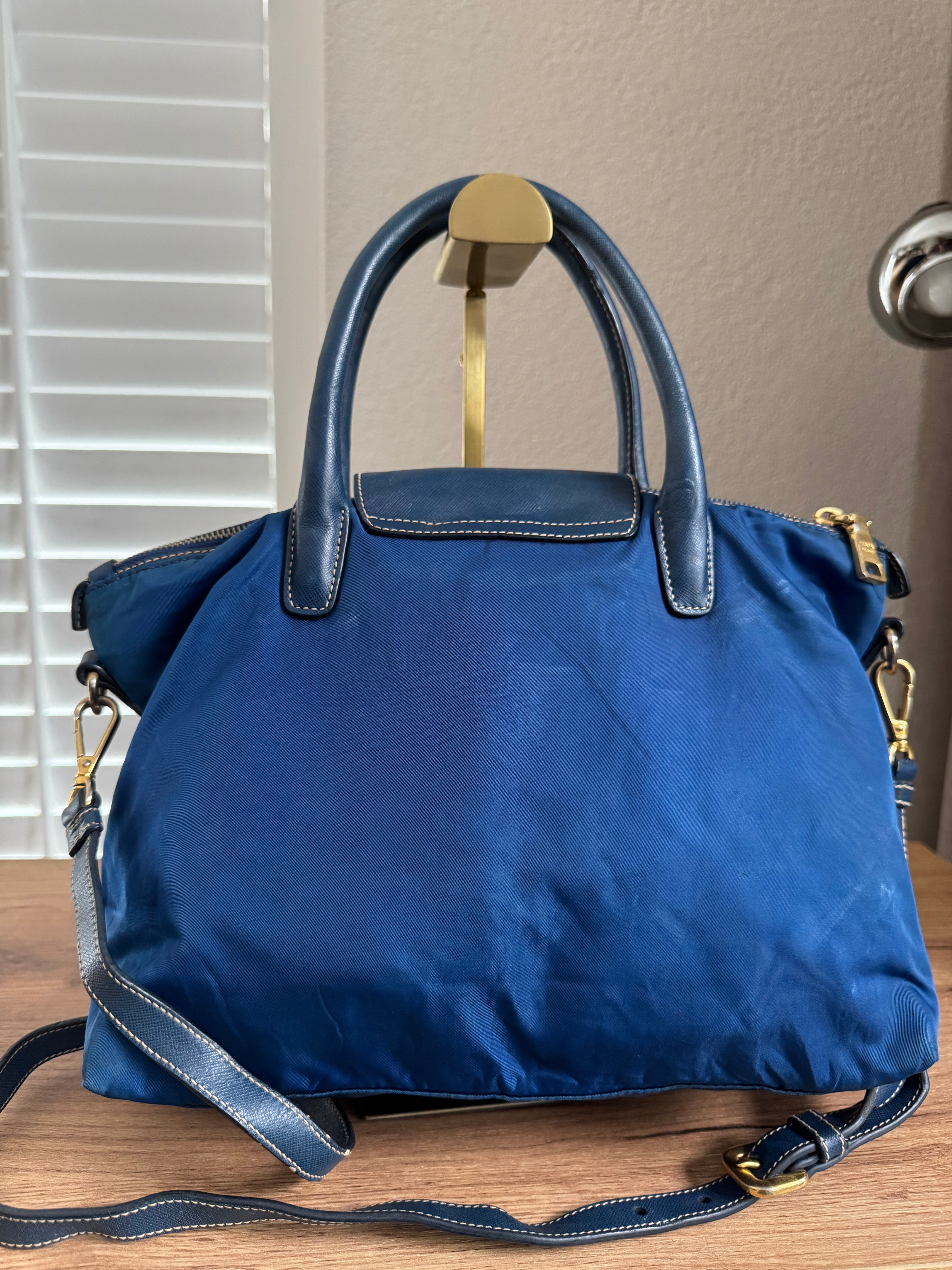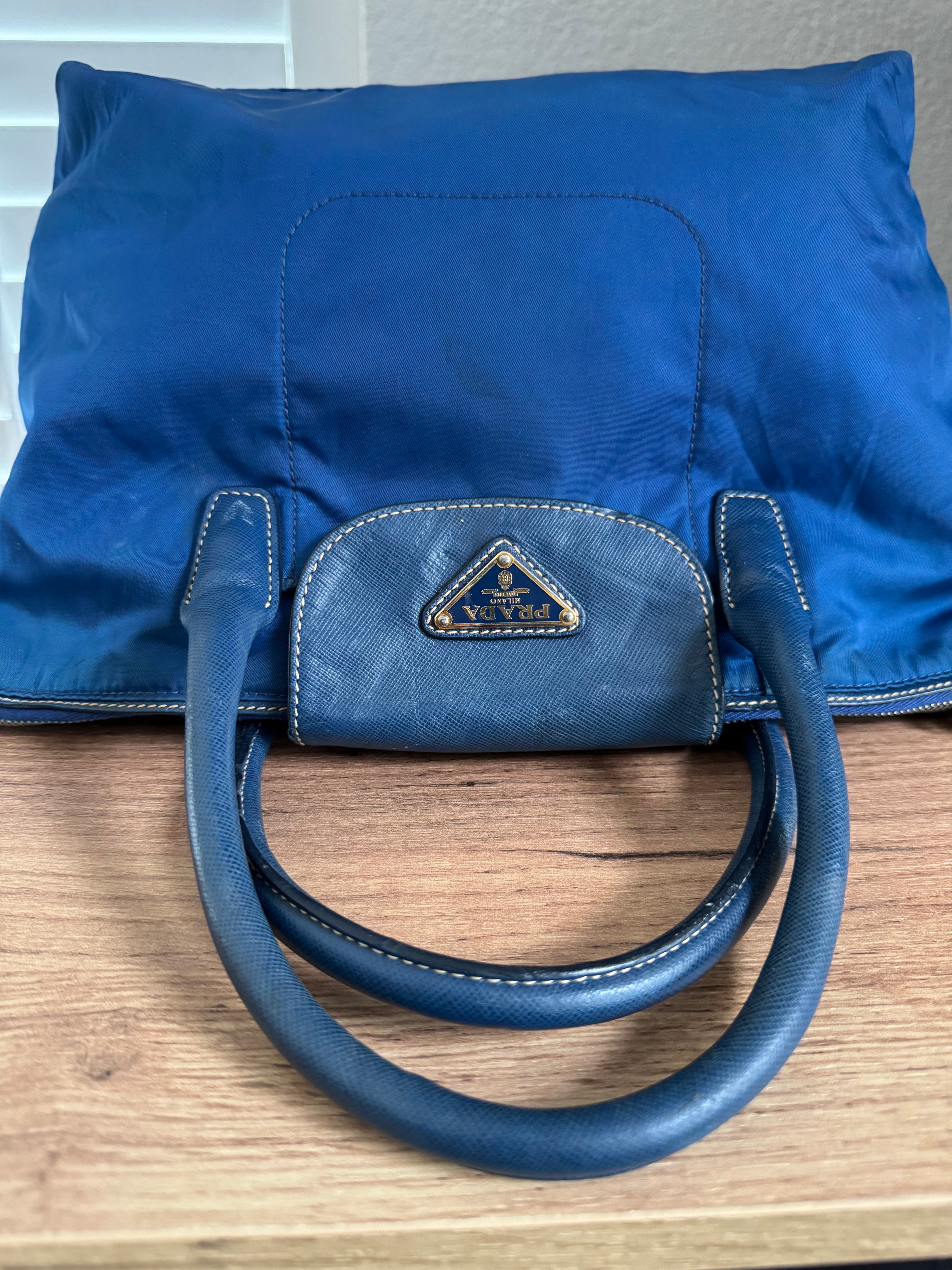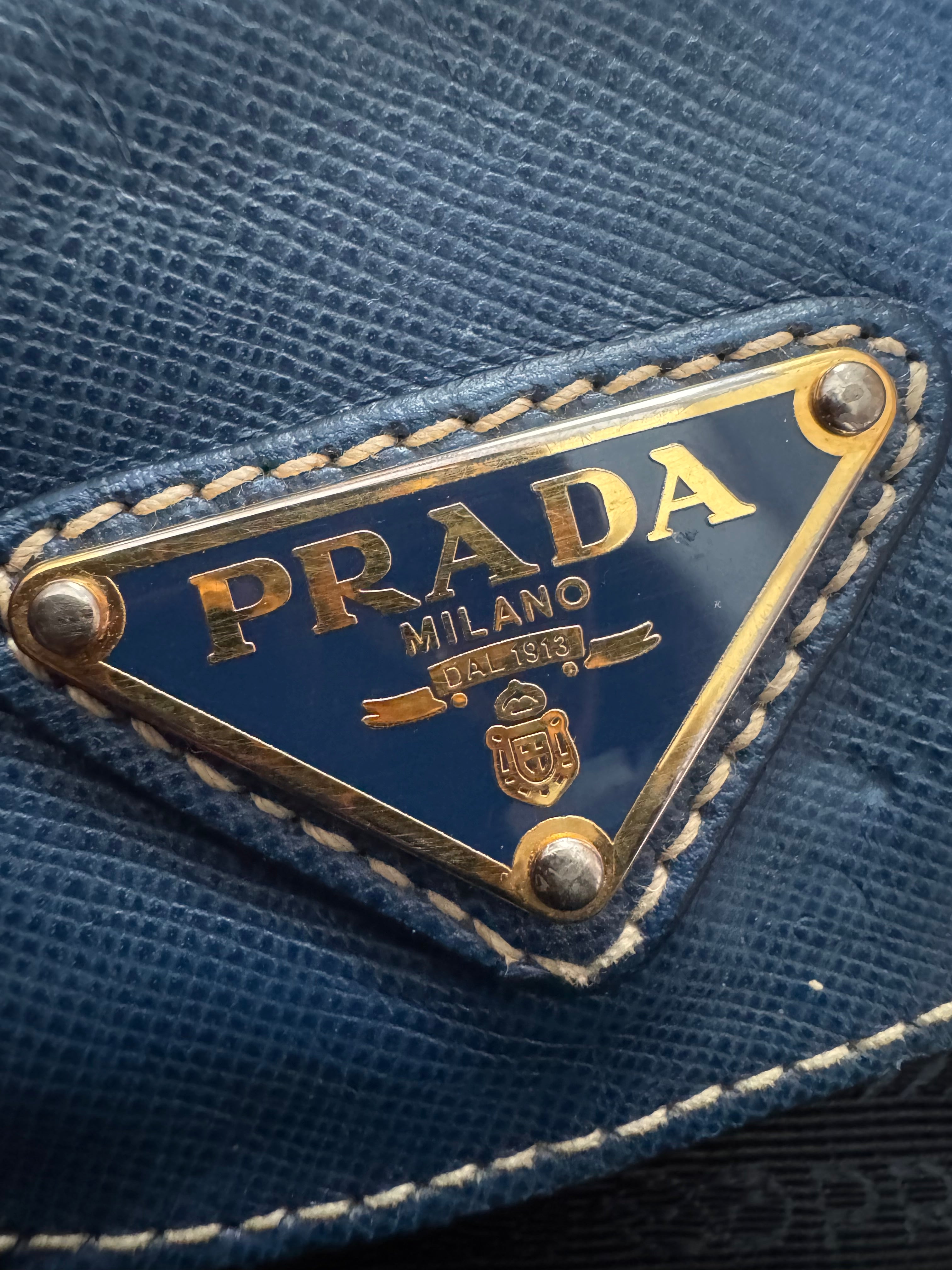 Brand:Prada Model:re nylon handbag Exterior material:nylon Exterior colour:blue Print:plain Interior material:nylon Closure:zip Hardware tone:gold Type:handbag Accessories:removable crossbody bag Features:adjustable strap... Read more Read more