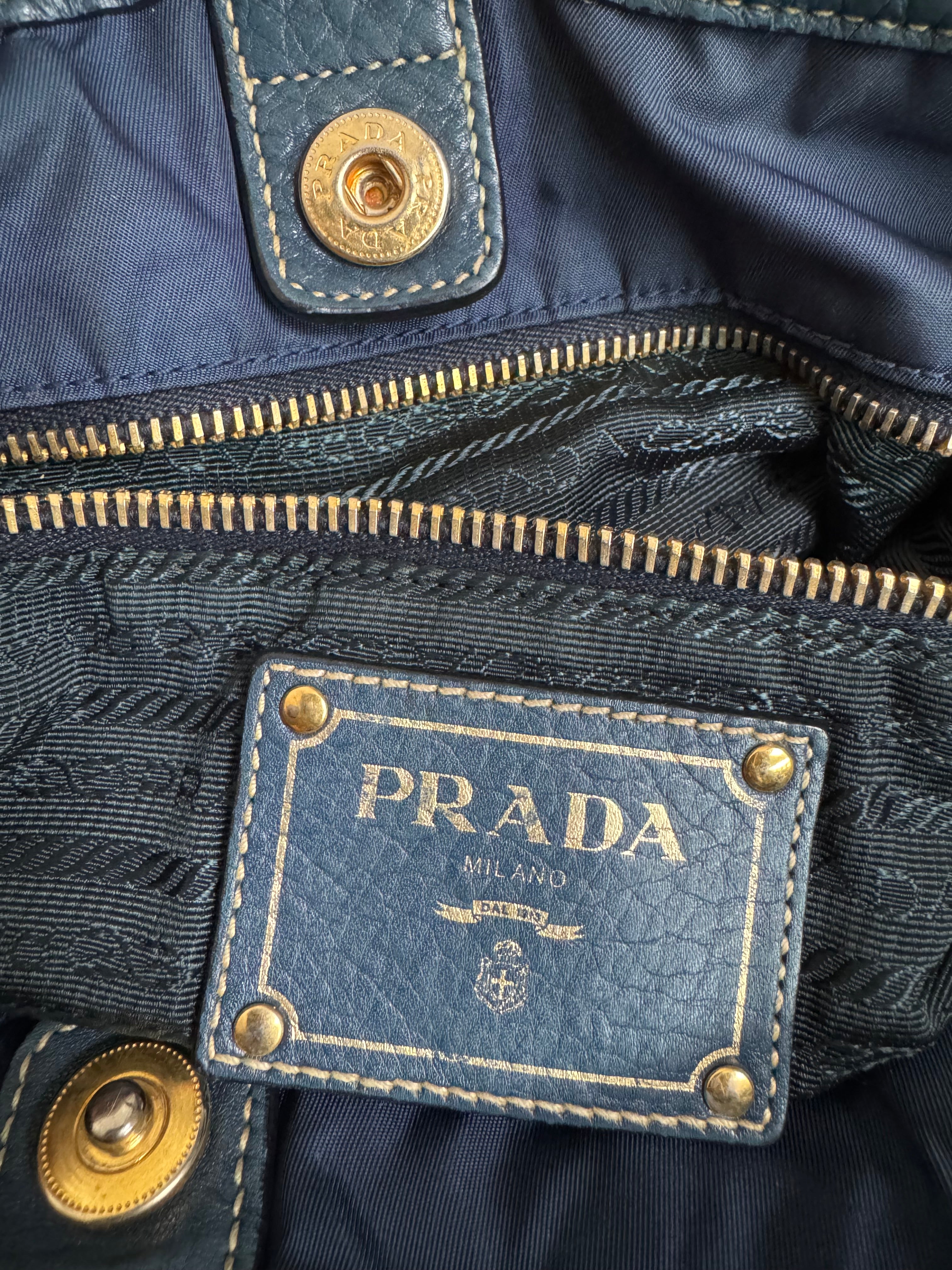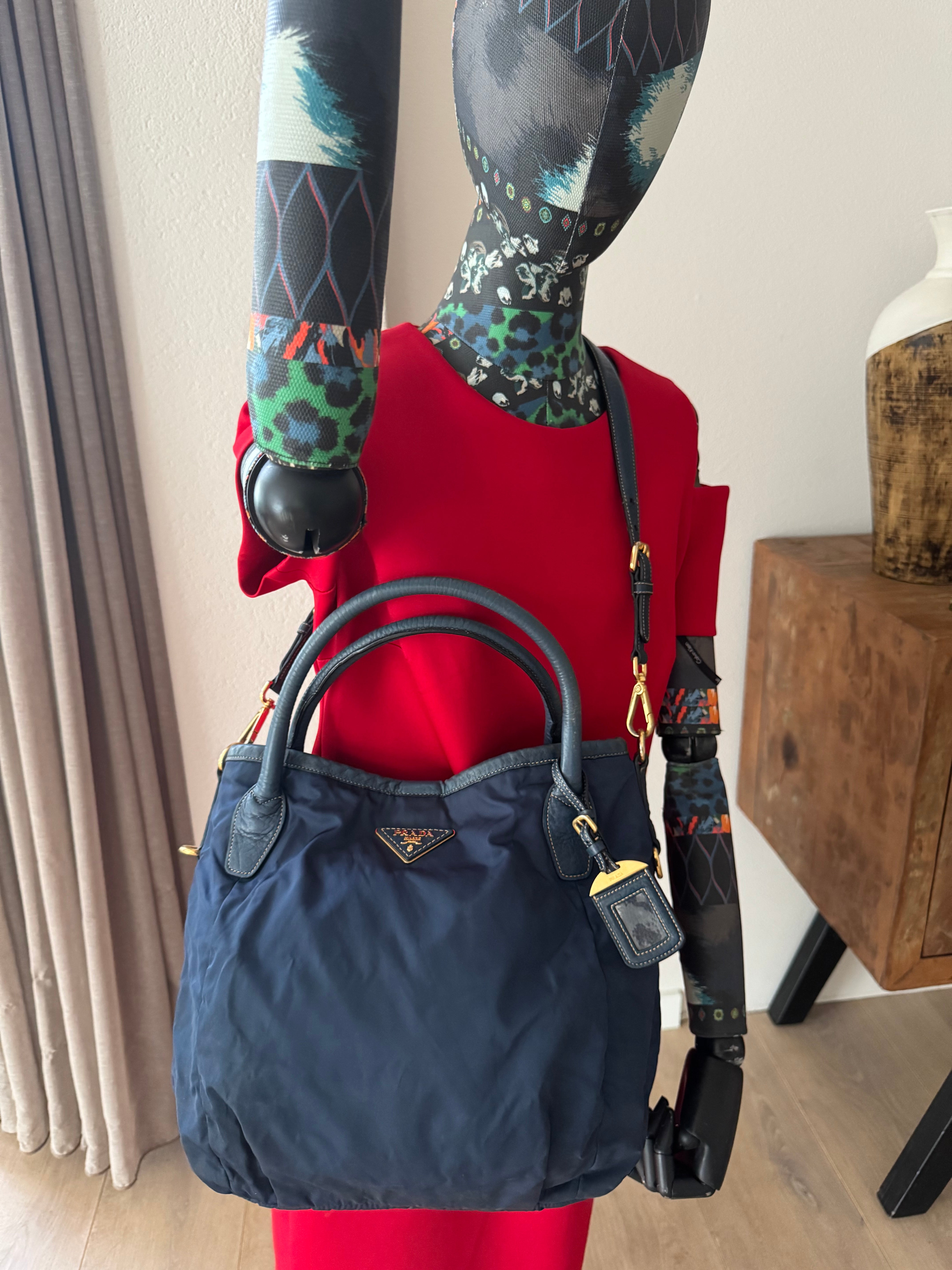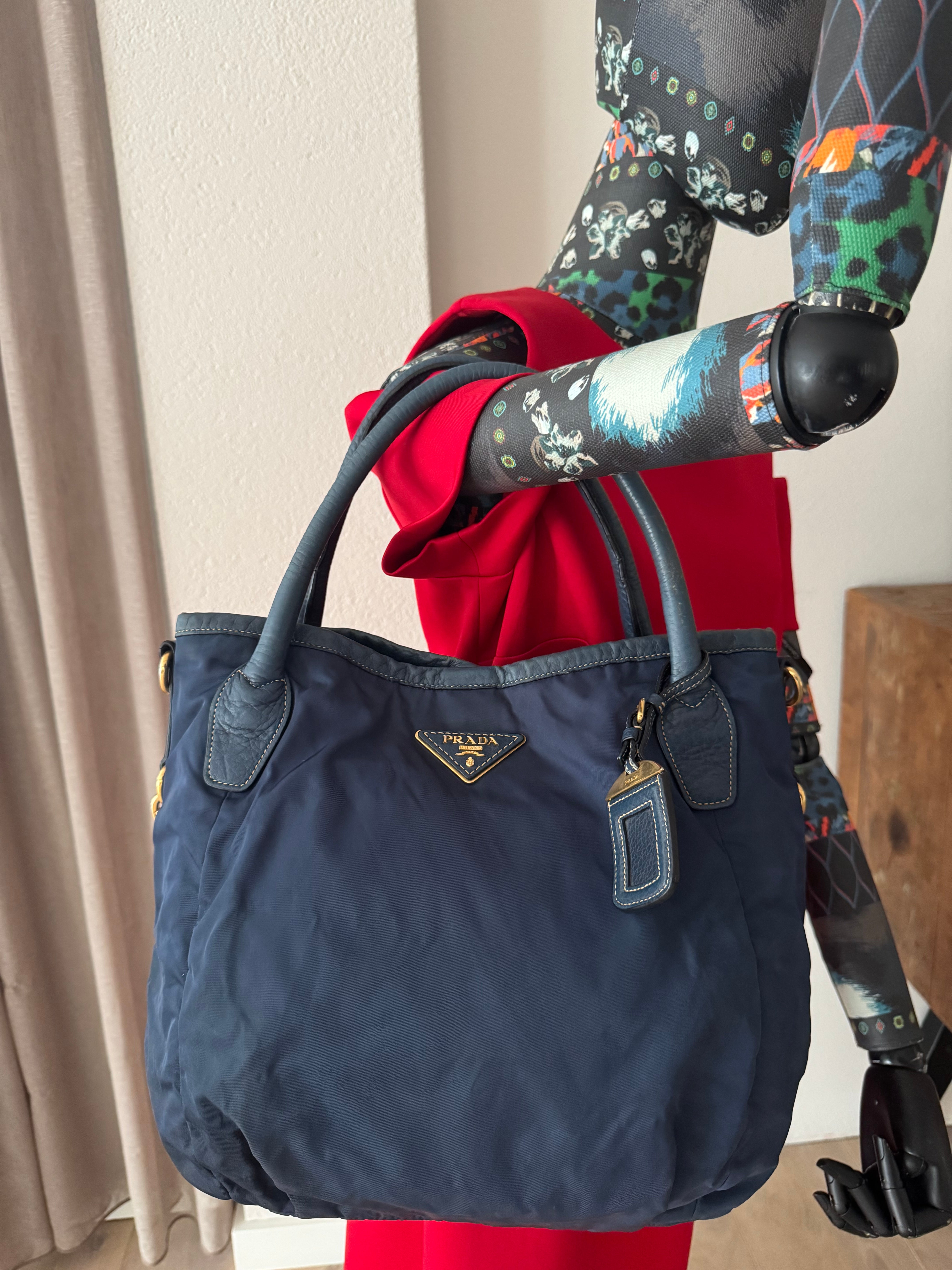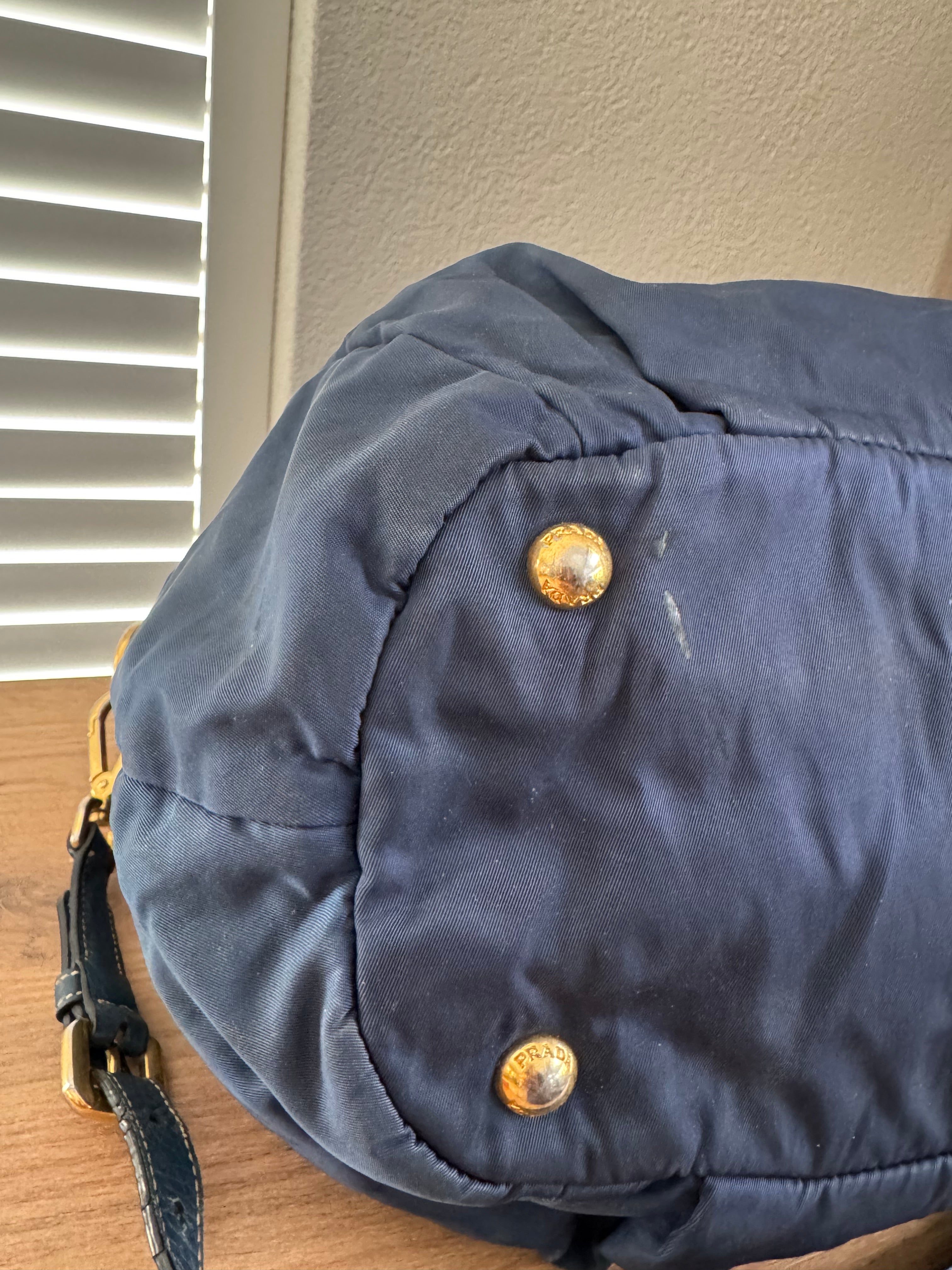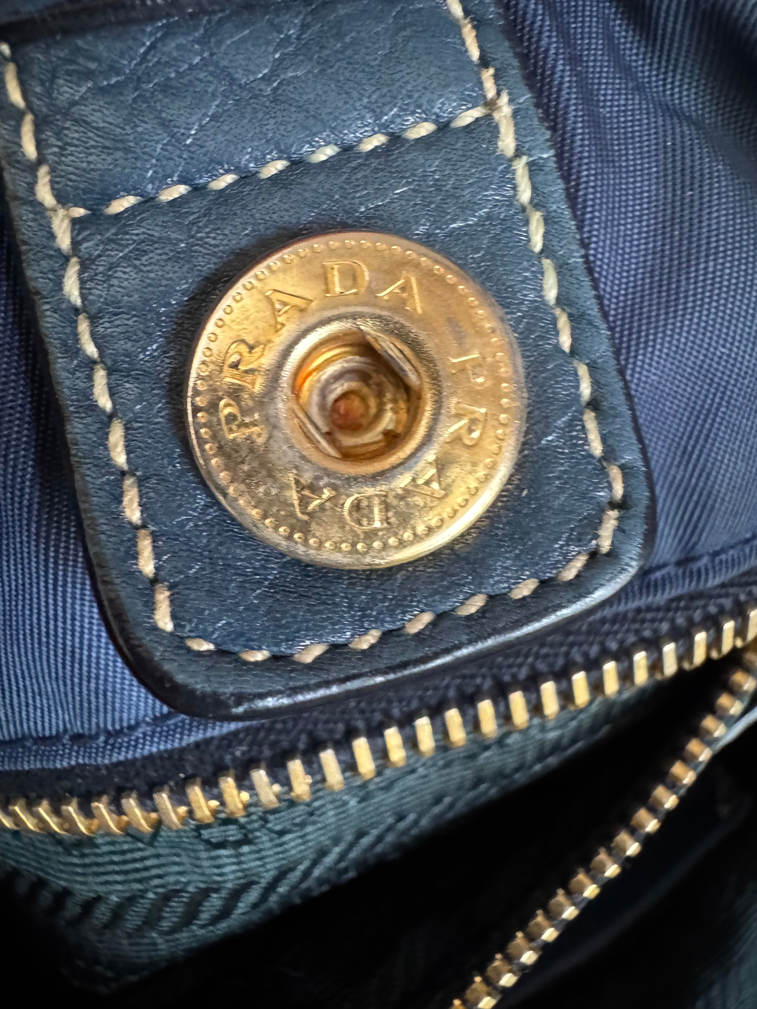 Brand:Prada Model:re nylon shoulder bag Exterior material:nylon and leather Exterior colour:blue Print:plain Interior material:nylon Closure: Hardware tone:gold Type:shoulder bag Accessories:removable... Read more Read more