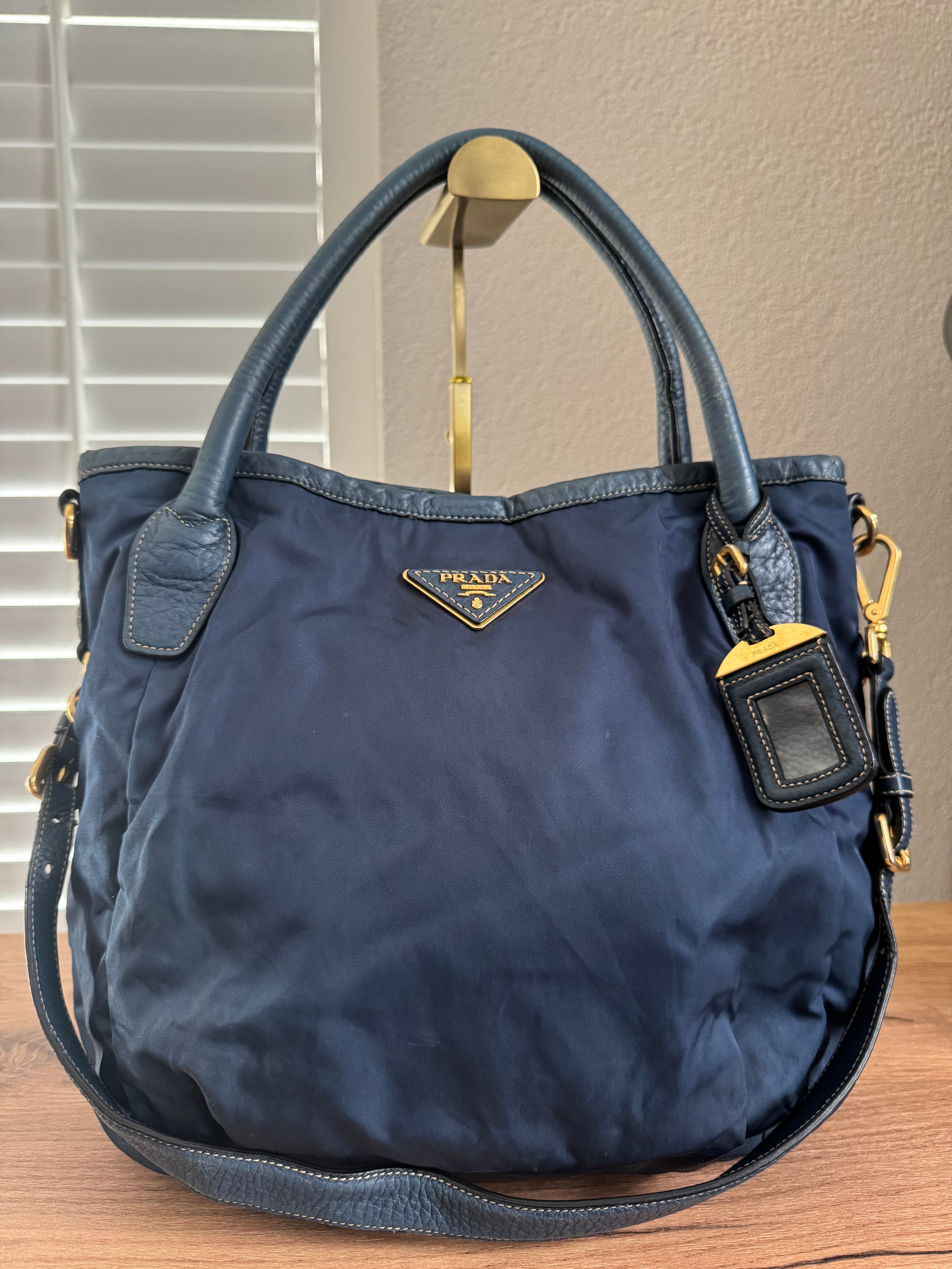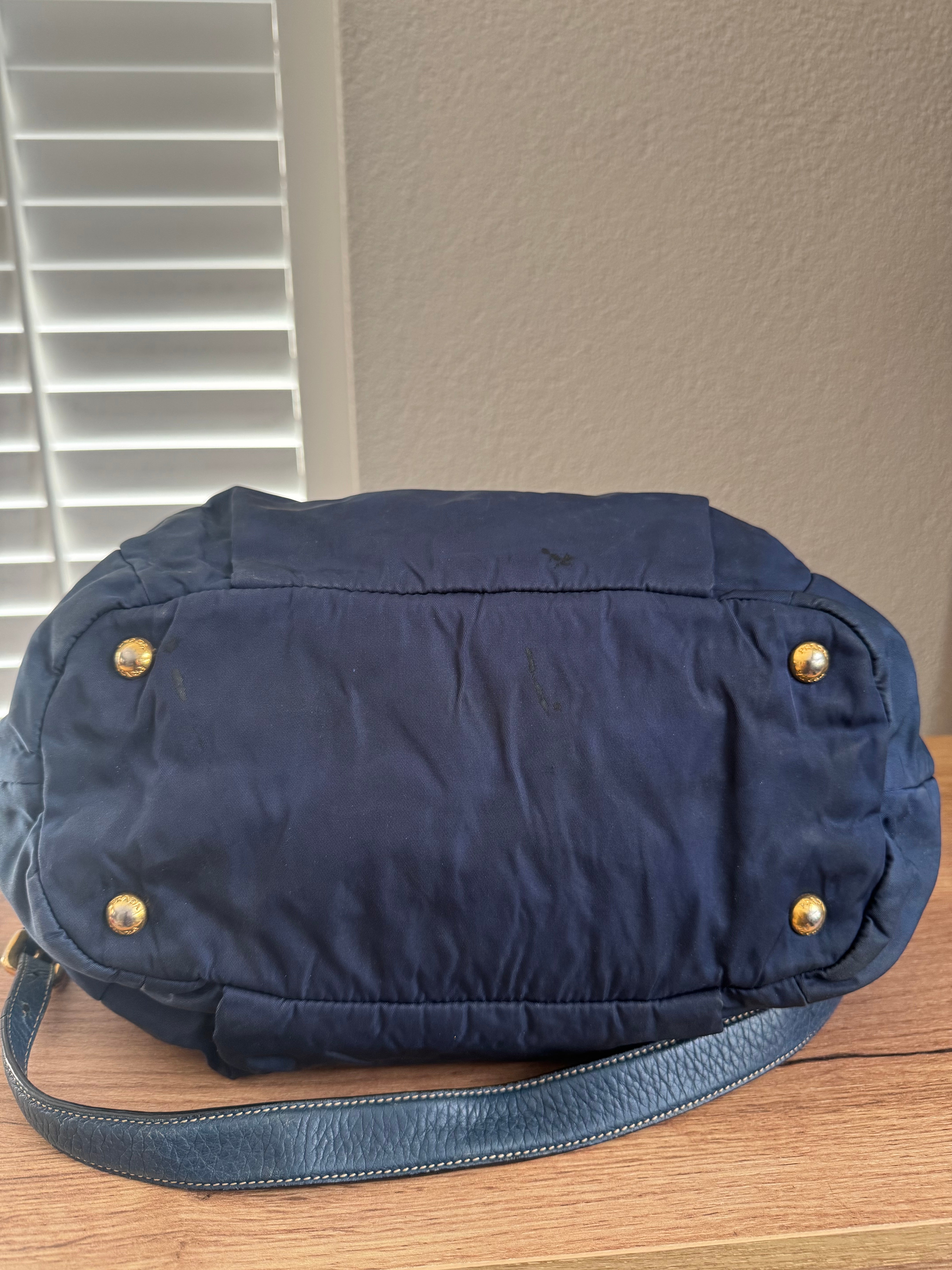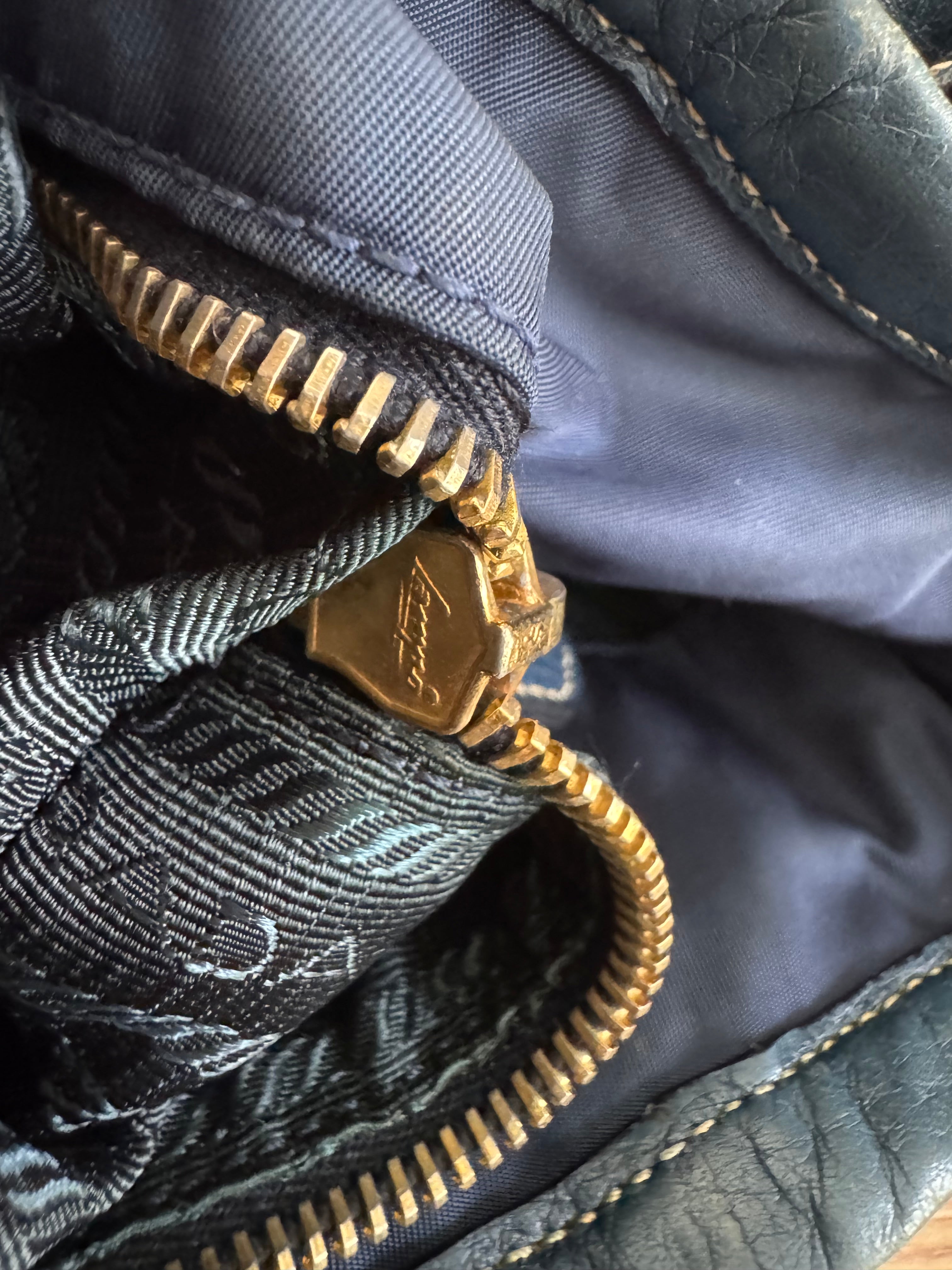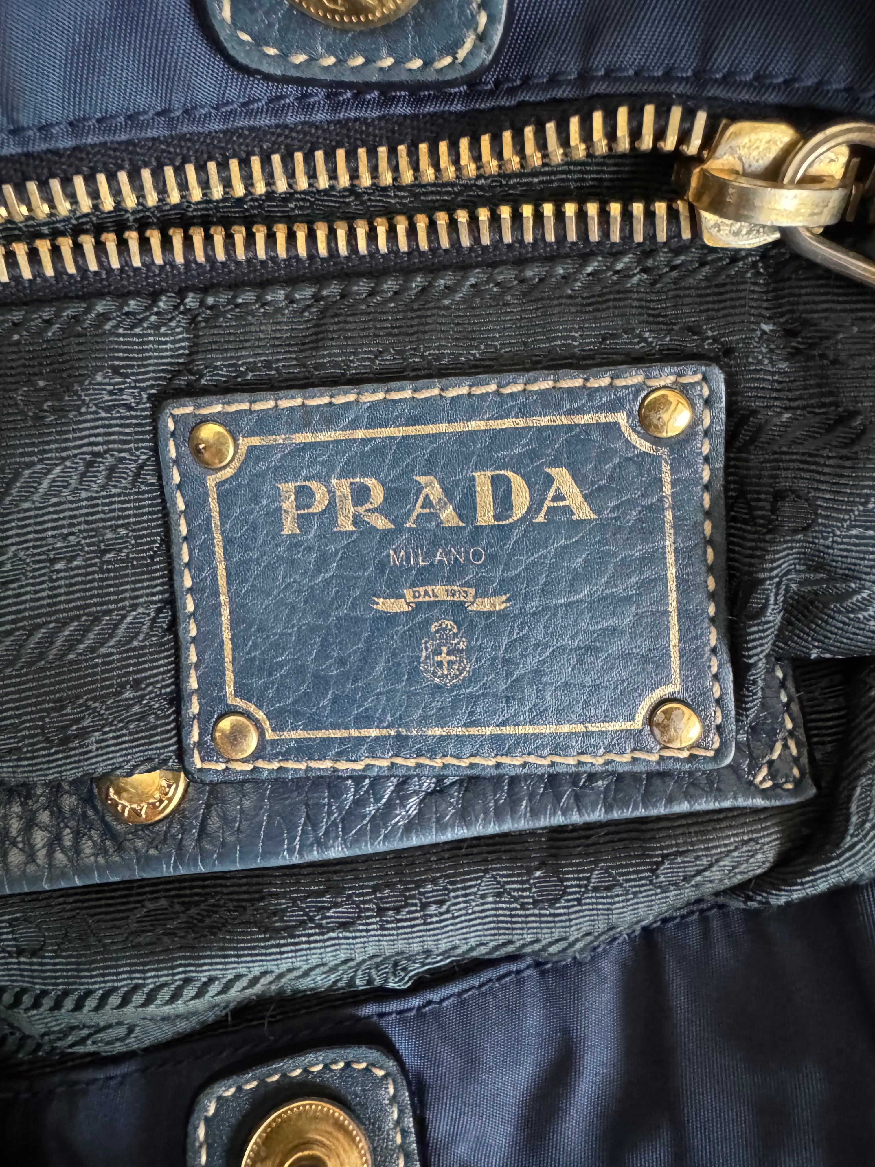 Brand:Prada Model:re nylon shoulder bag Exterior material:nylon and leather Exterior colour:blue Print:plain Interior material:nylon Closure: Hardware tone:gold Type:shoulder bag Accessories:removable... Read more Read more