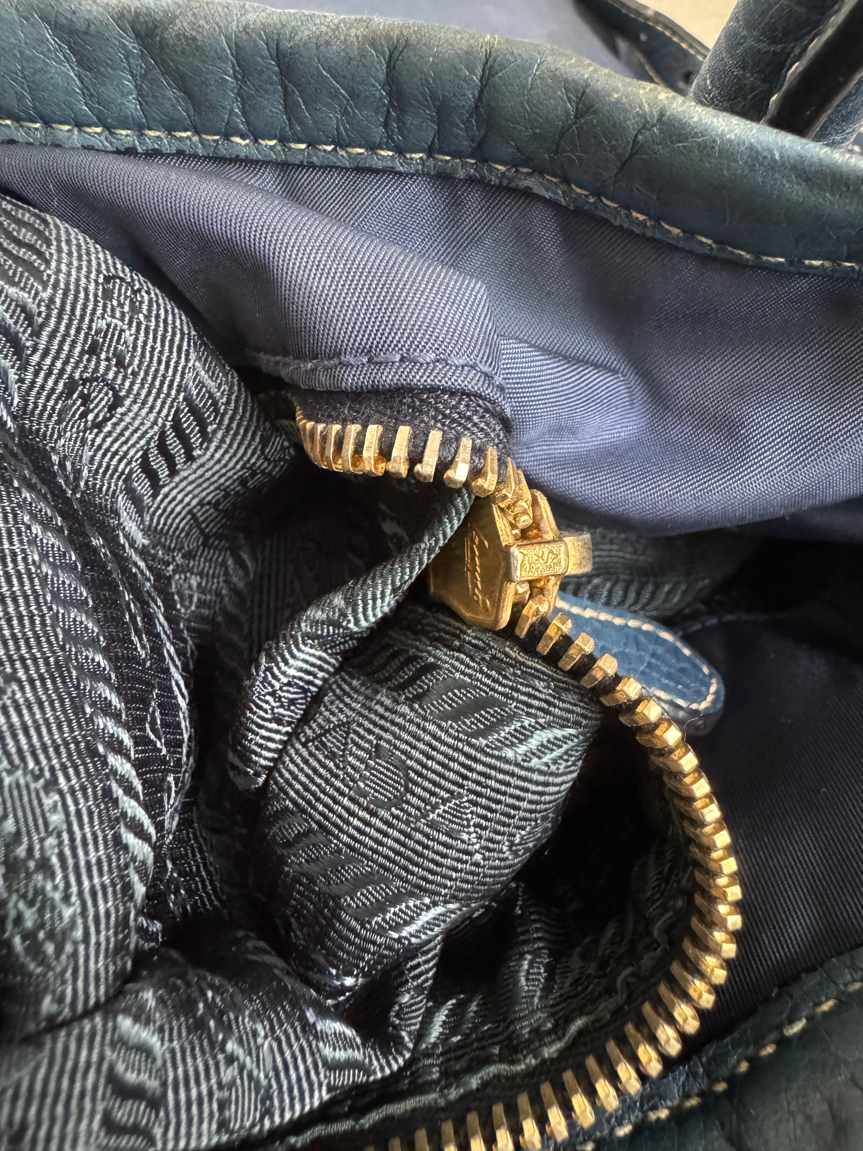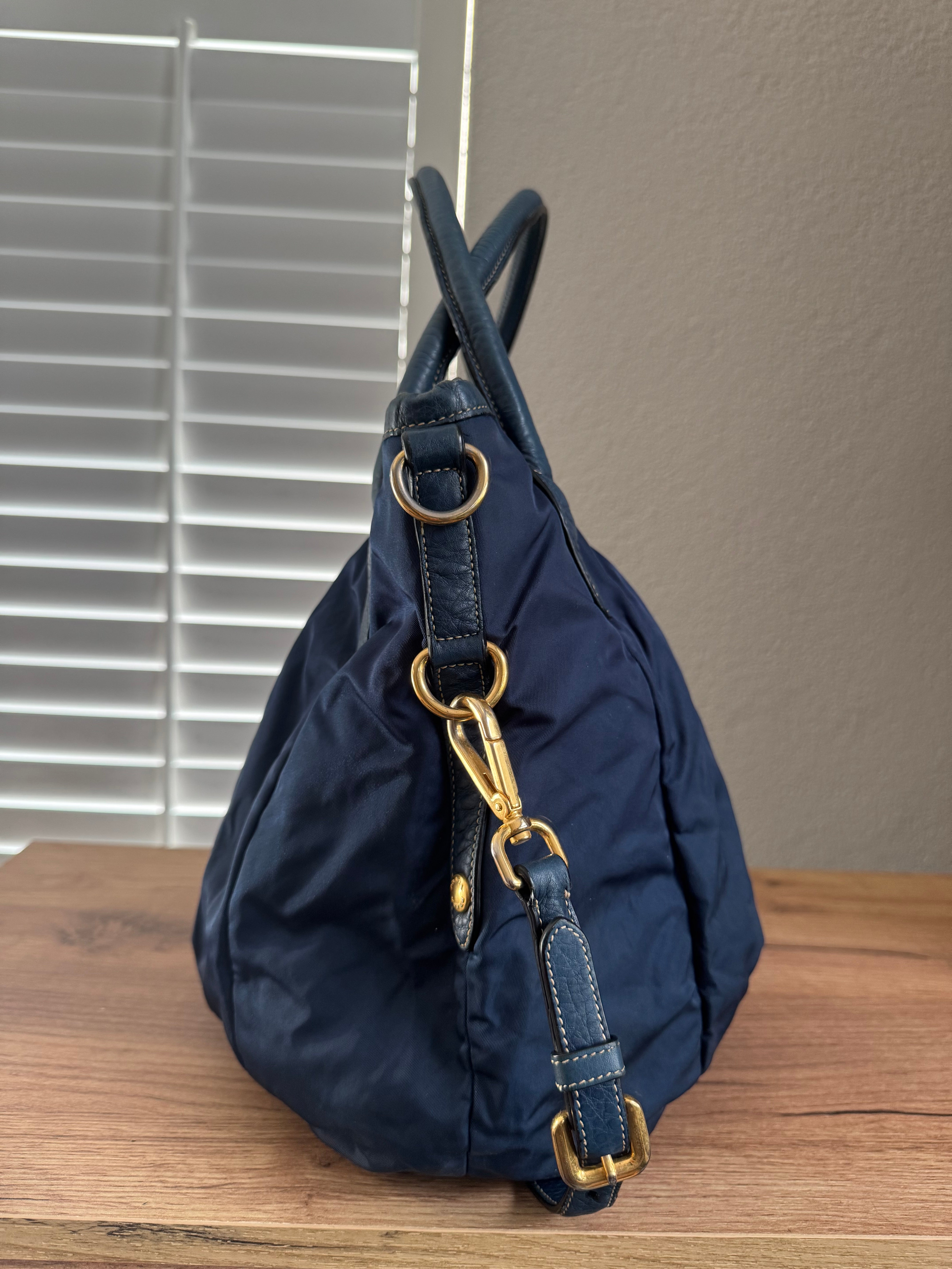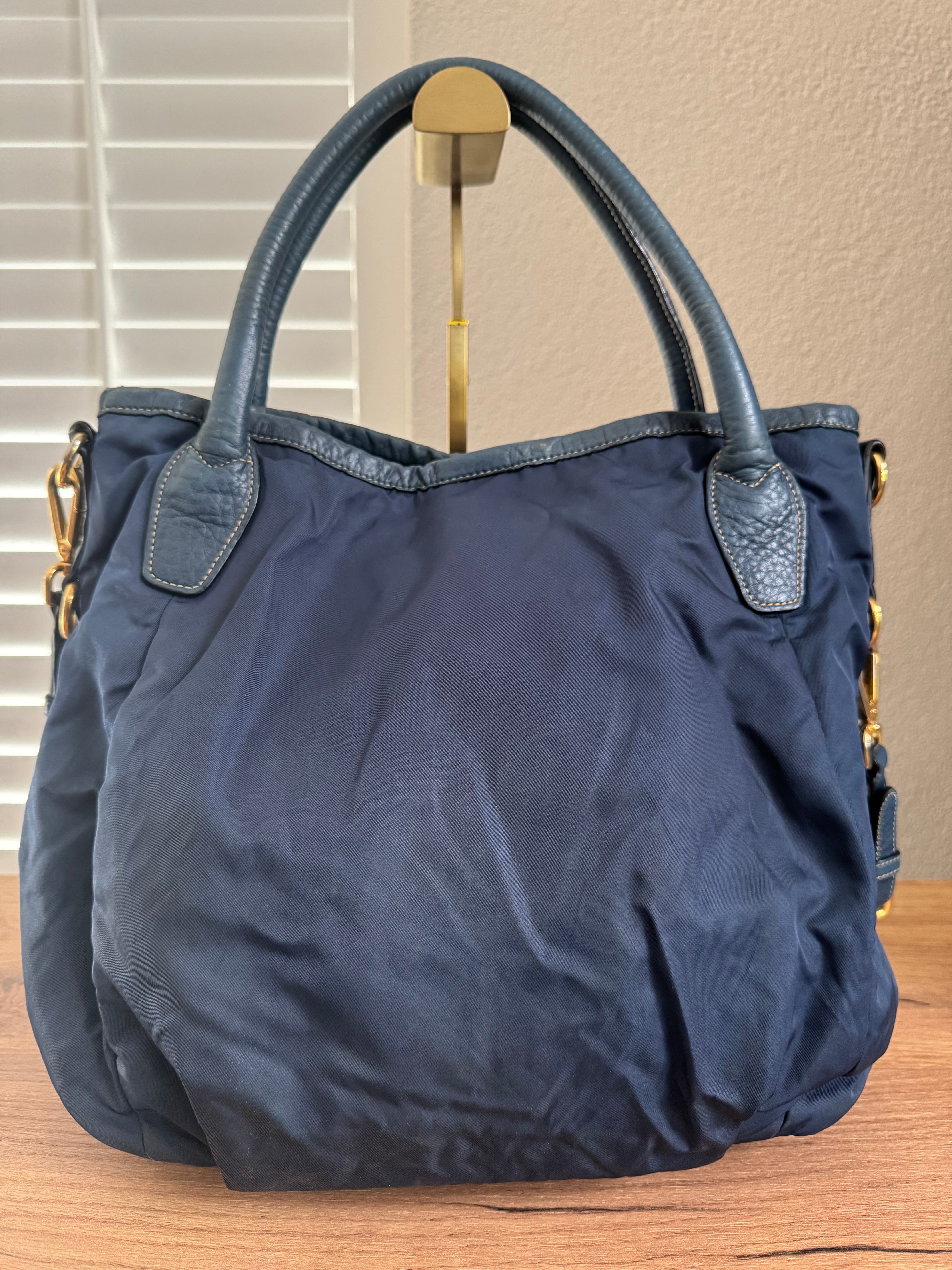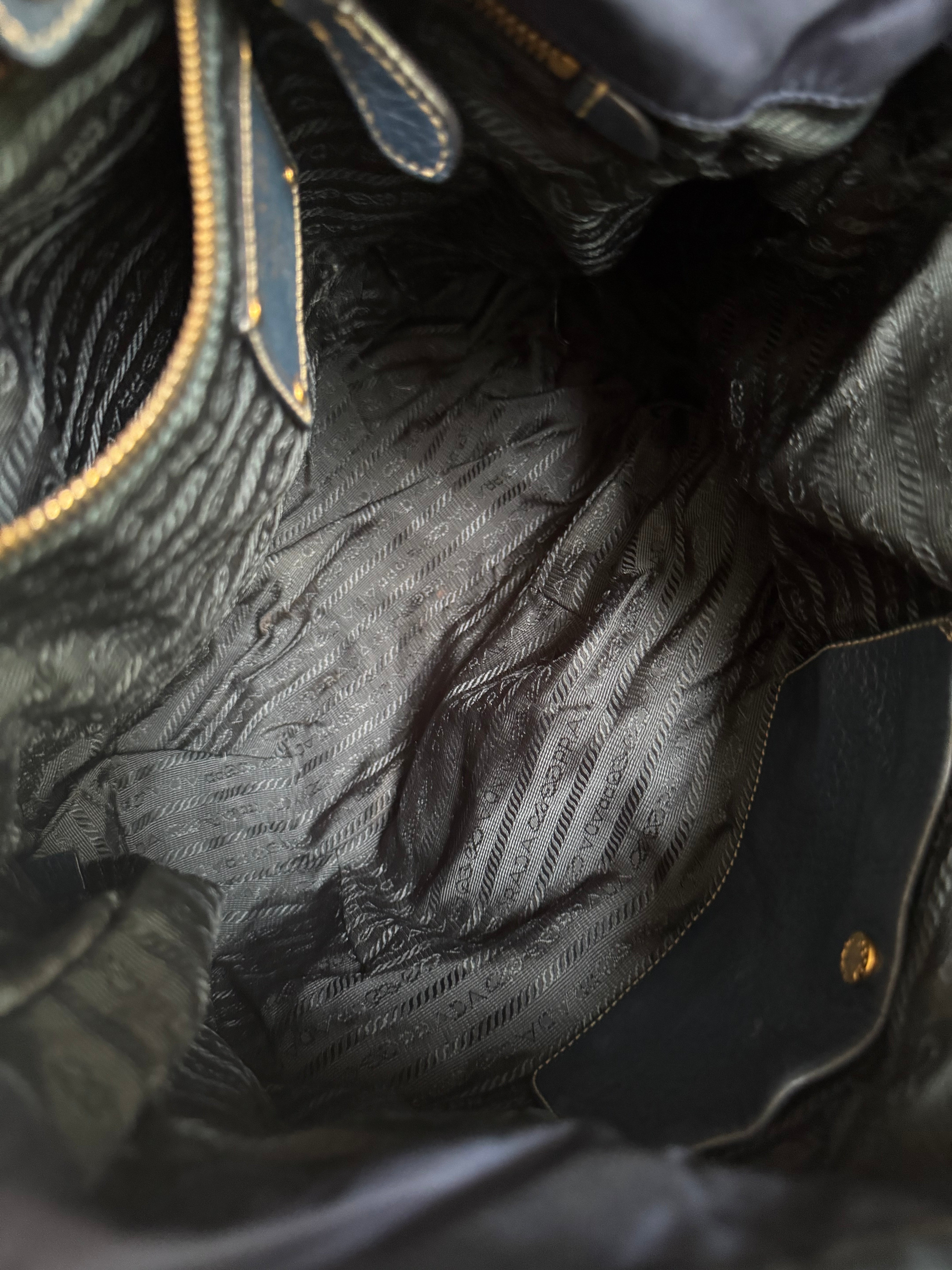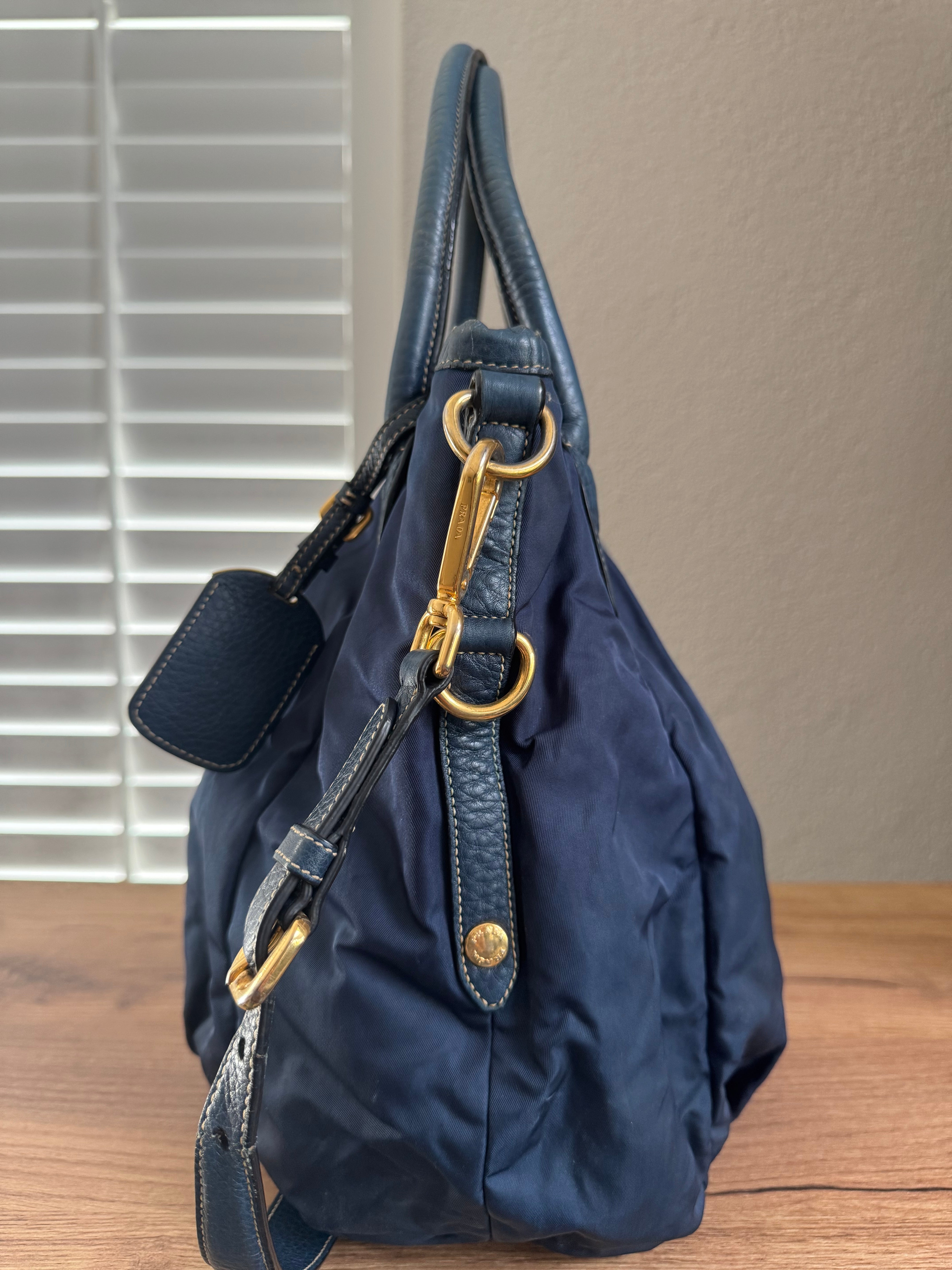 Brand:Prada Model:re nylon shoulder bag Exterior material:nylon and leather Exterior colour:blue Print:plain Interior material:nylon Closure: Hardware tone:gold Type:shoulder bag Accessories:removable... Read more Read more