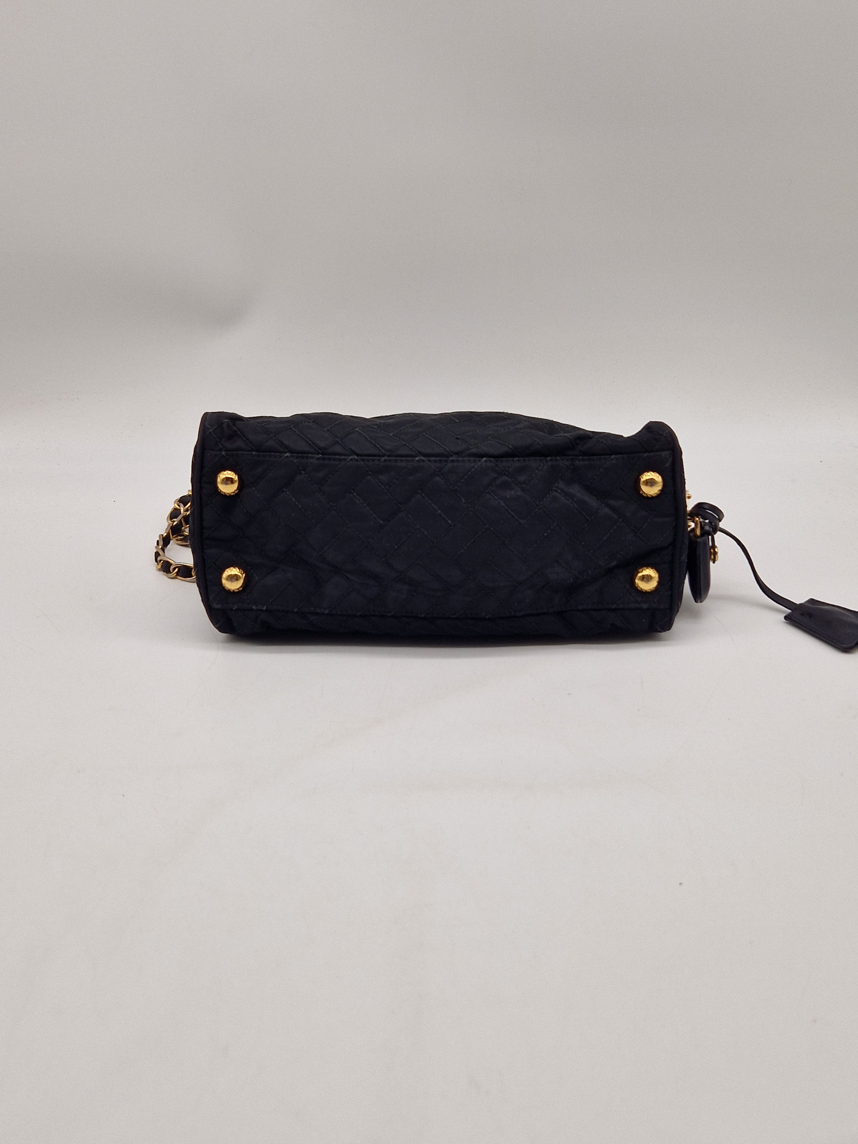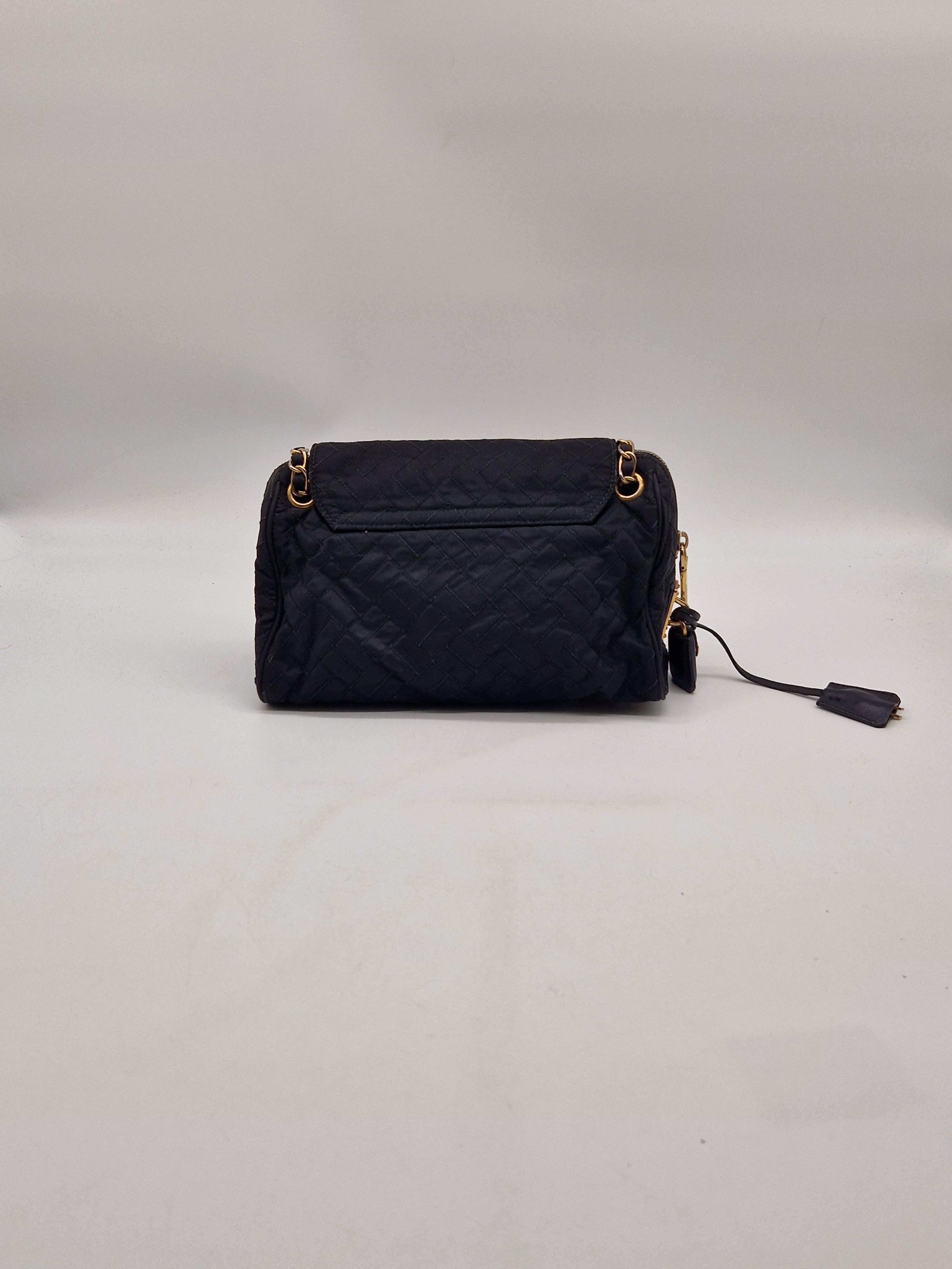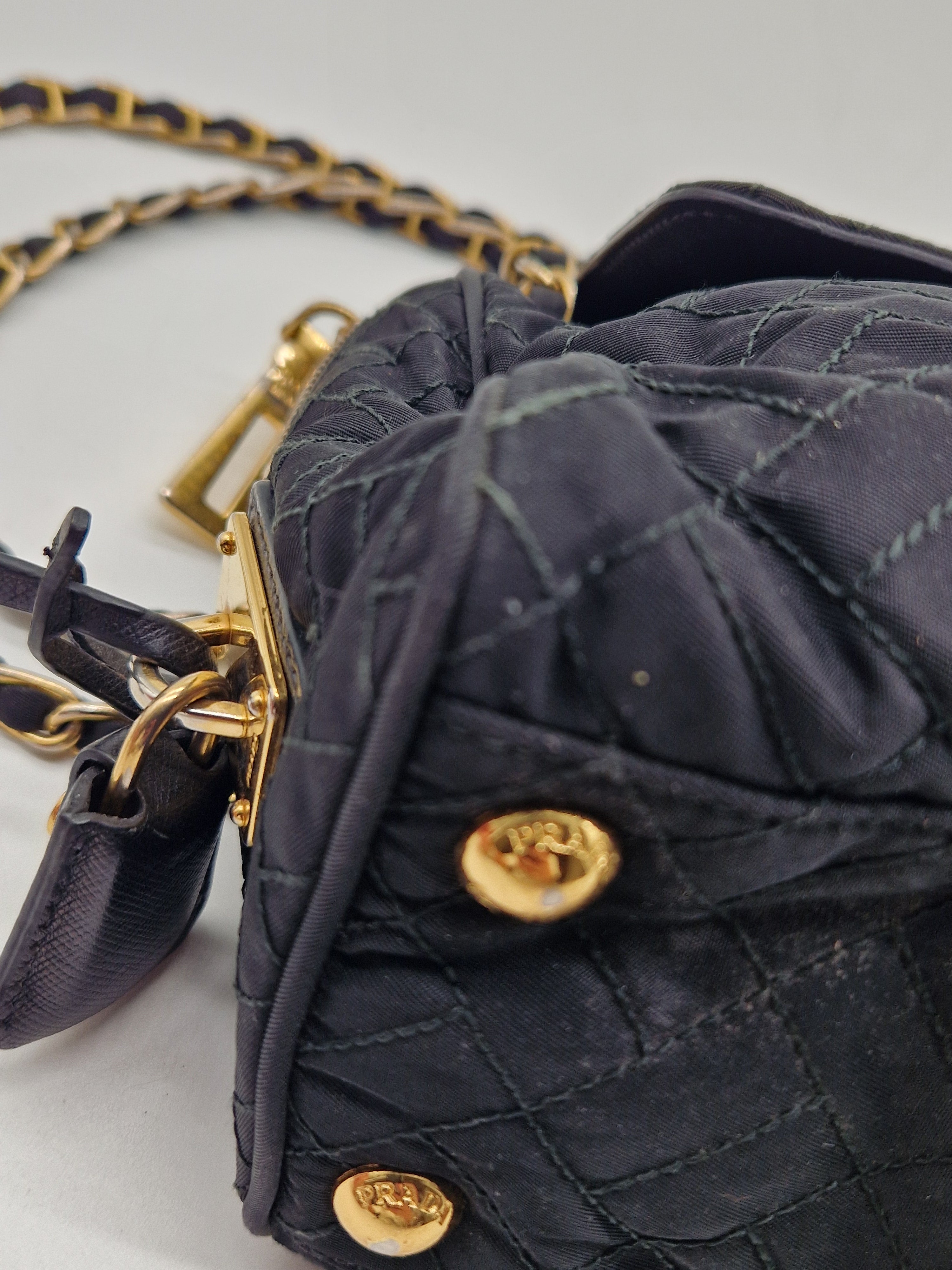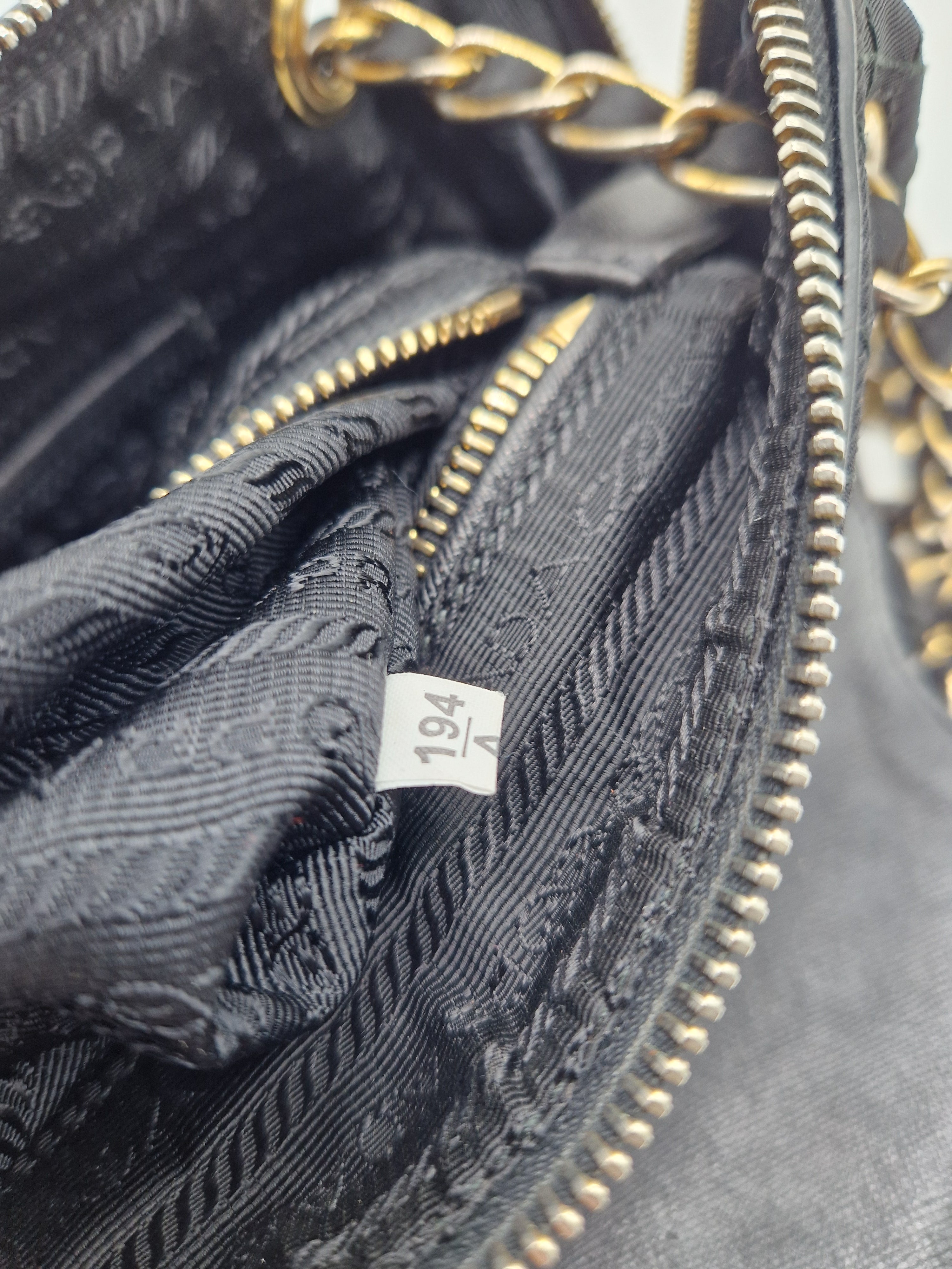 Brand:Prada Model:quilted Exterior material:cloth Exterior colour:black Print:plain Interior material:cloth Closure:flap Hardware tone:gold Type:shoulder/crossbody bag Accessories: Features:padlock and key Serial number:present...