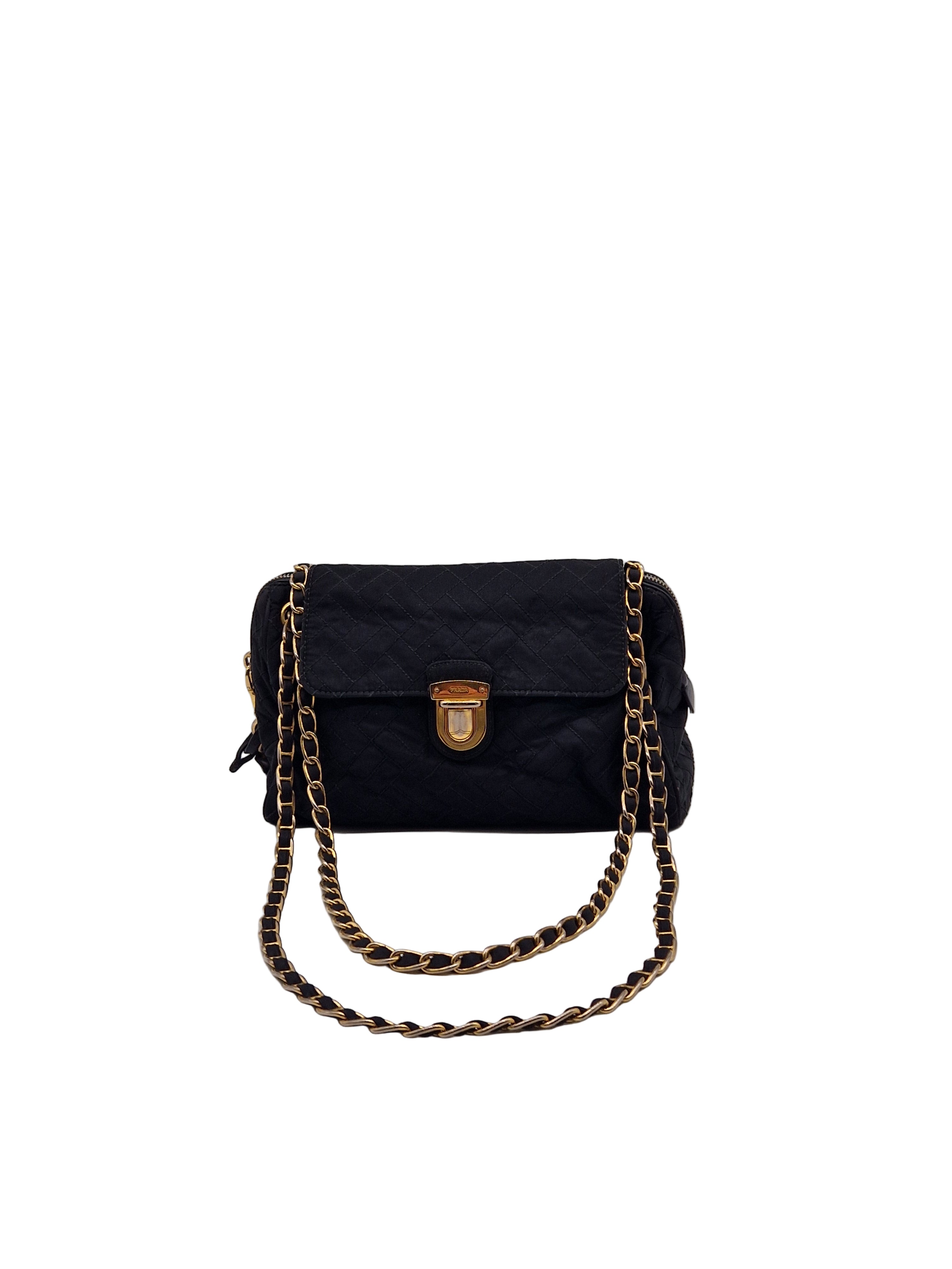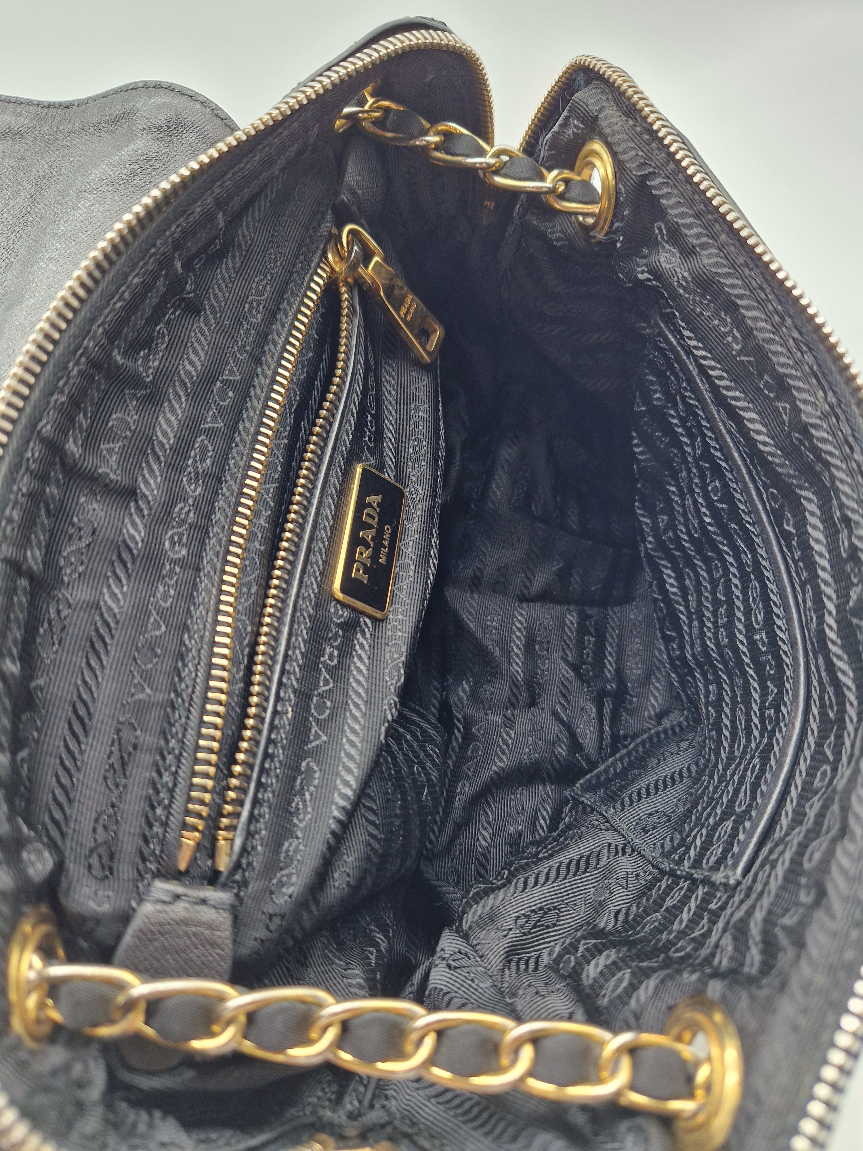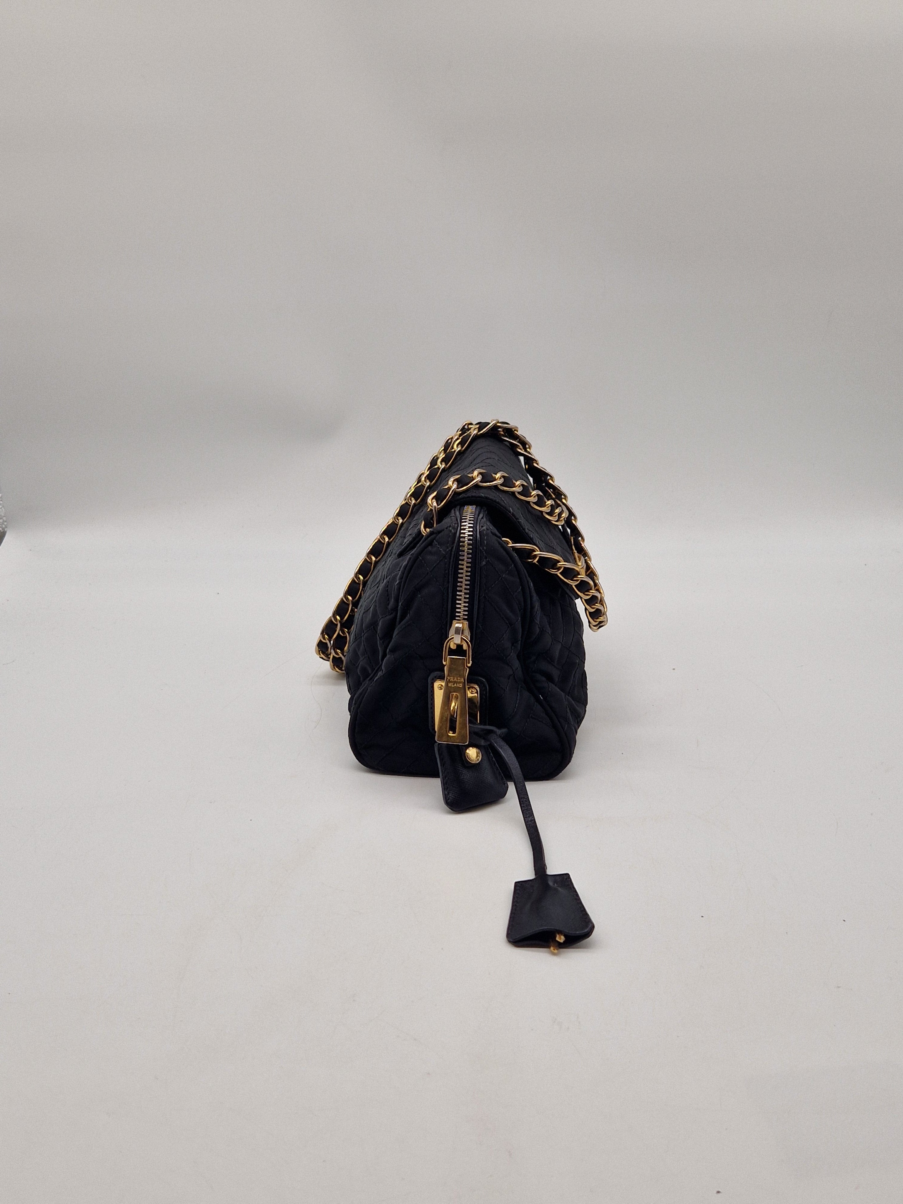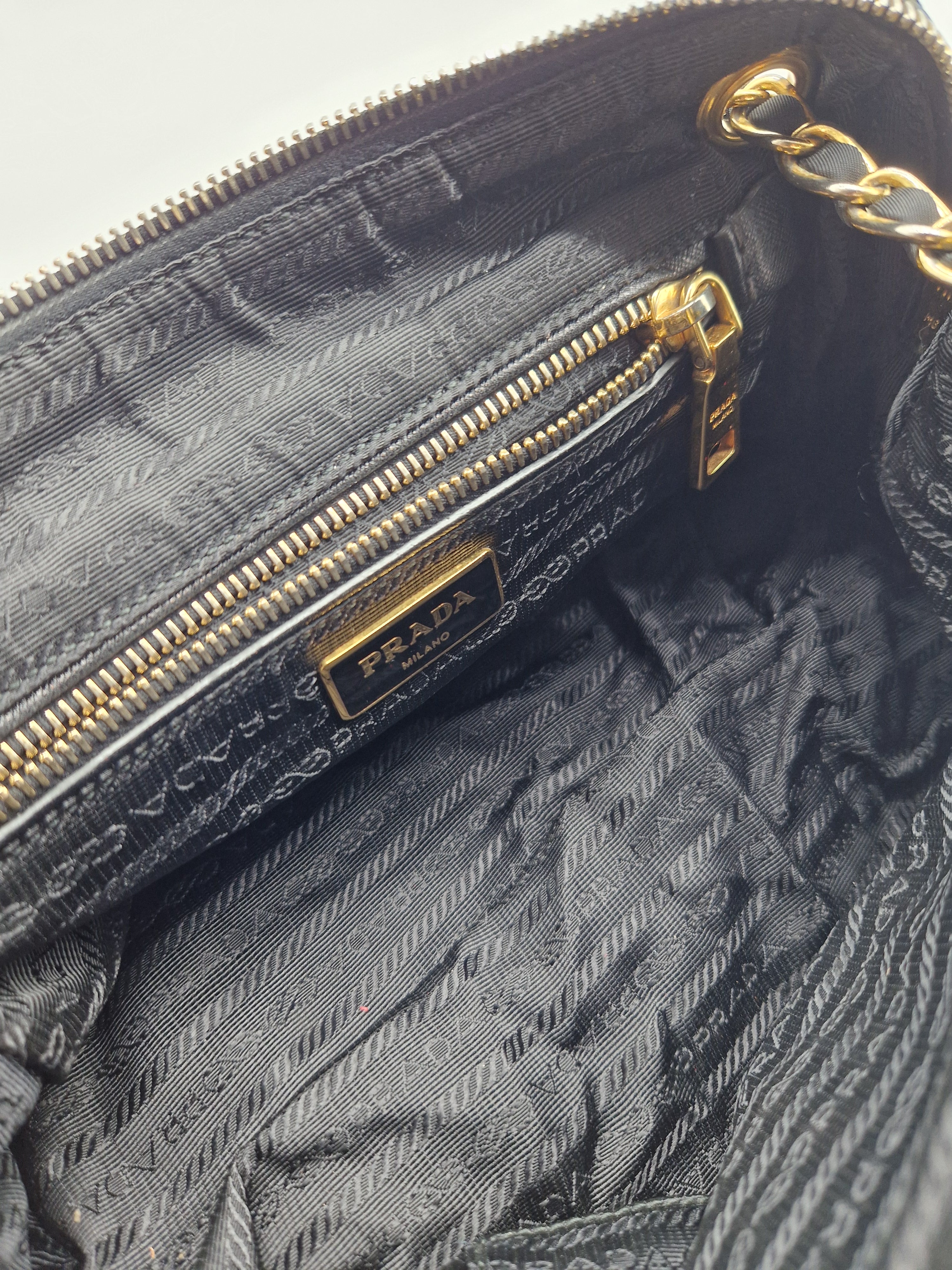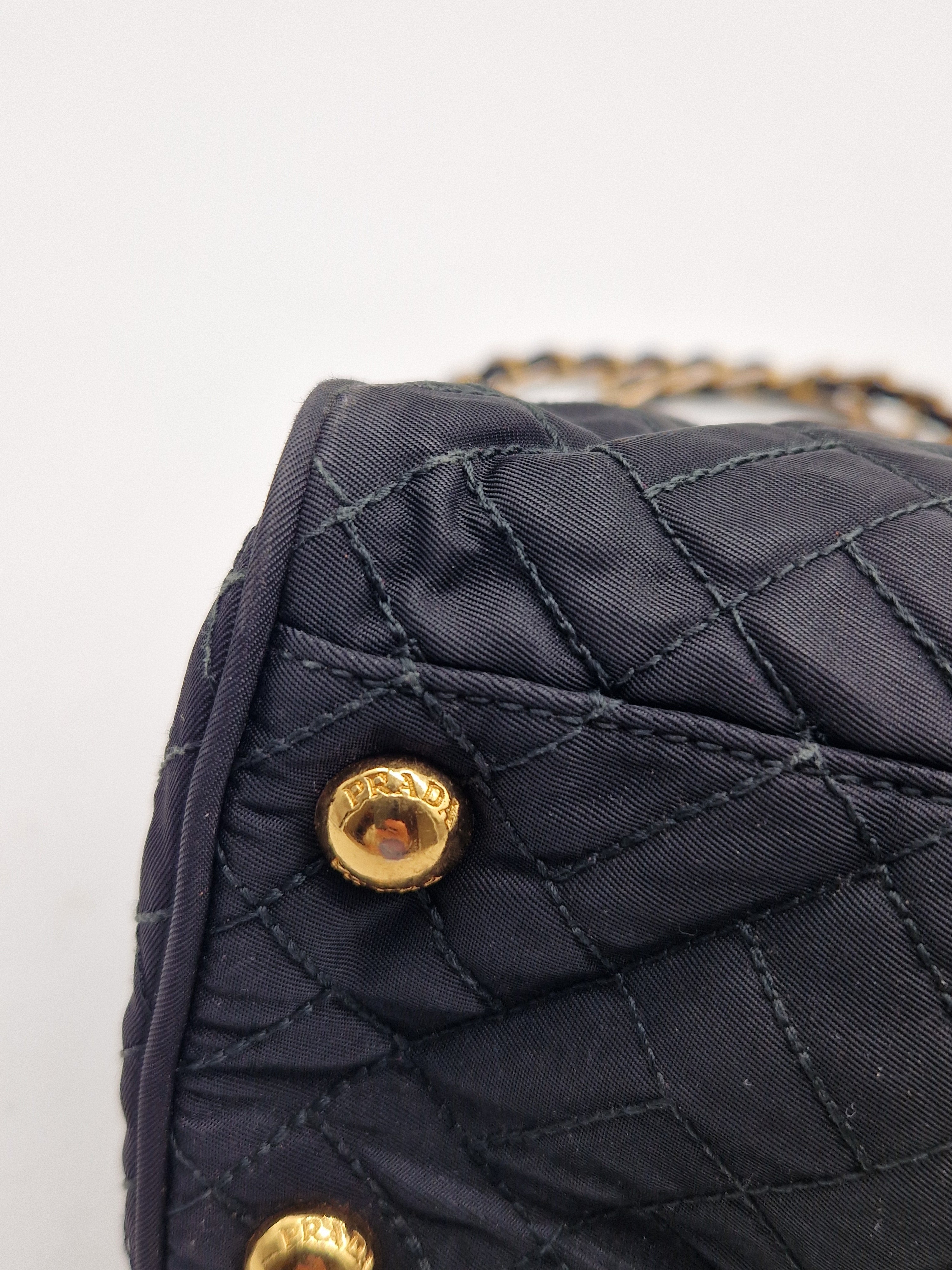 Brand:Prada Model:quilted Exterior material:cloth Exterior colour:black Print:plain Interior material:cloth Closure:flap Hardware tone:gold Type:shoulder/crossbody bag Accessories: Features:padlock and key Serial number:present...