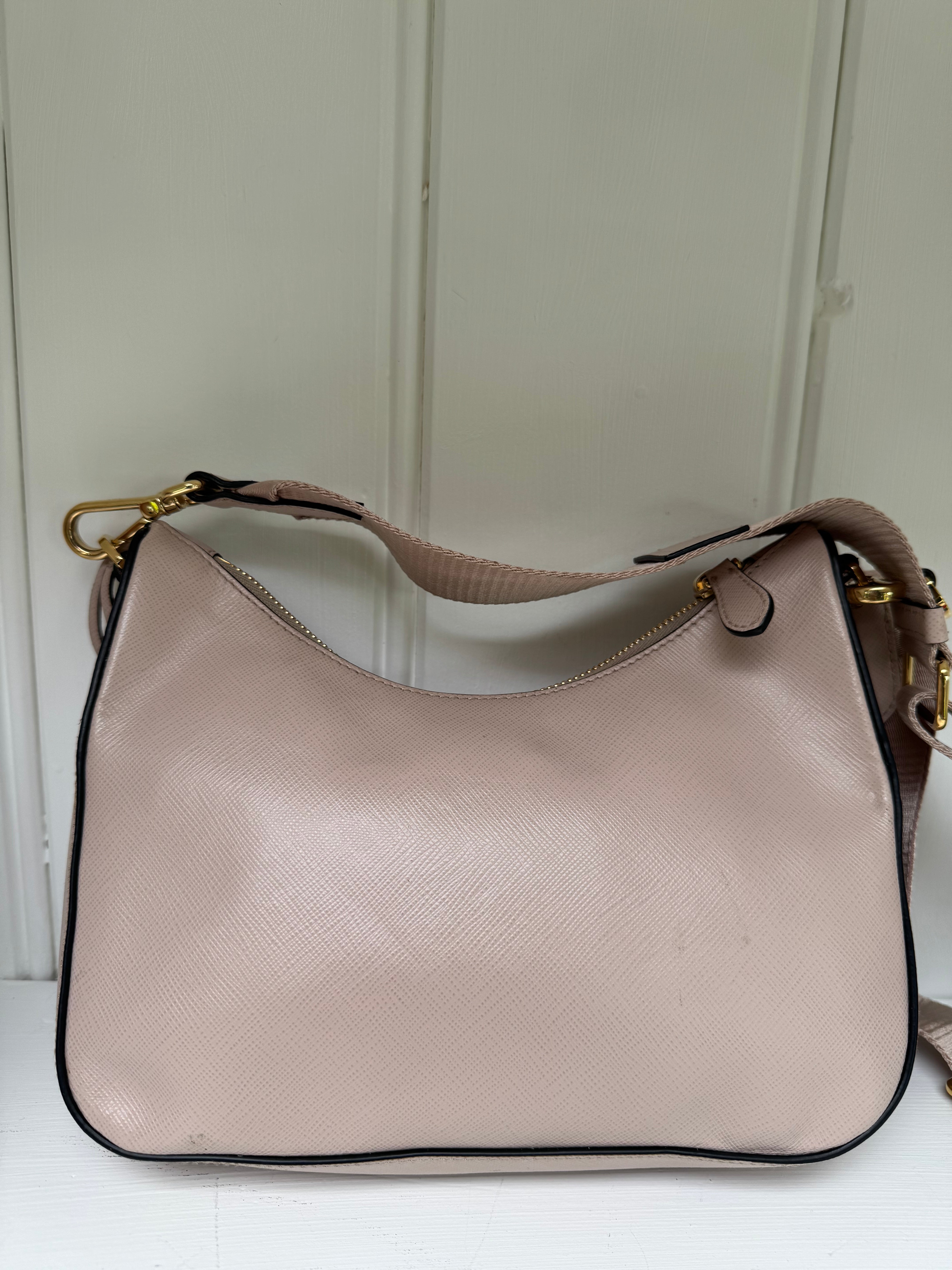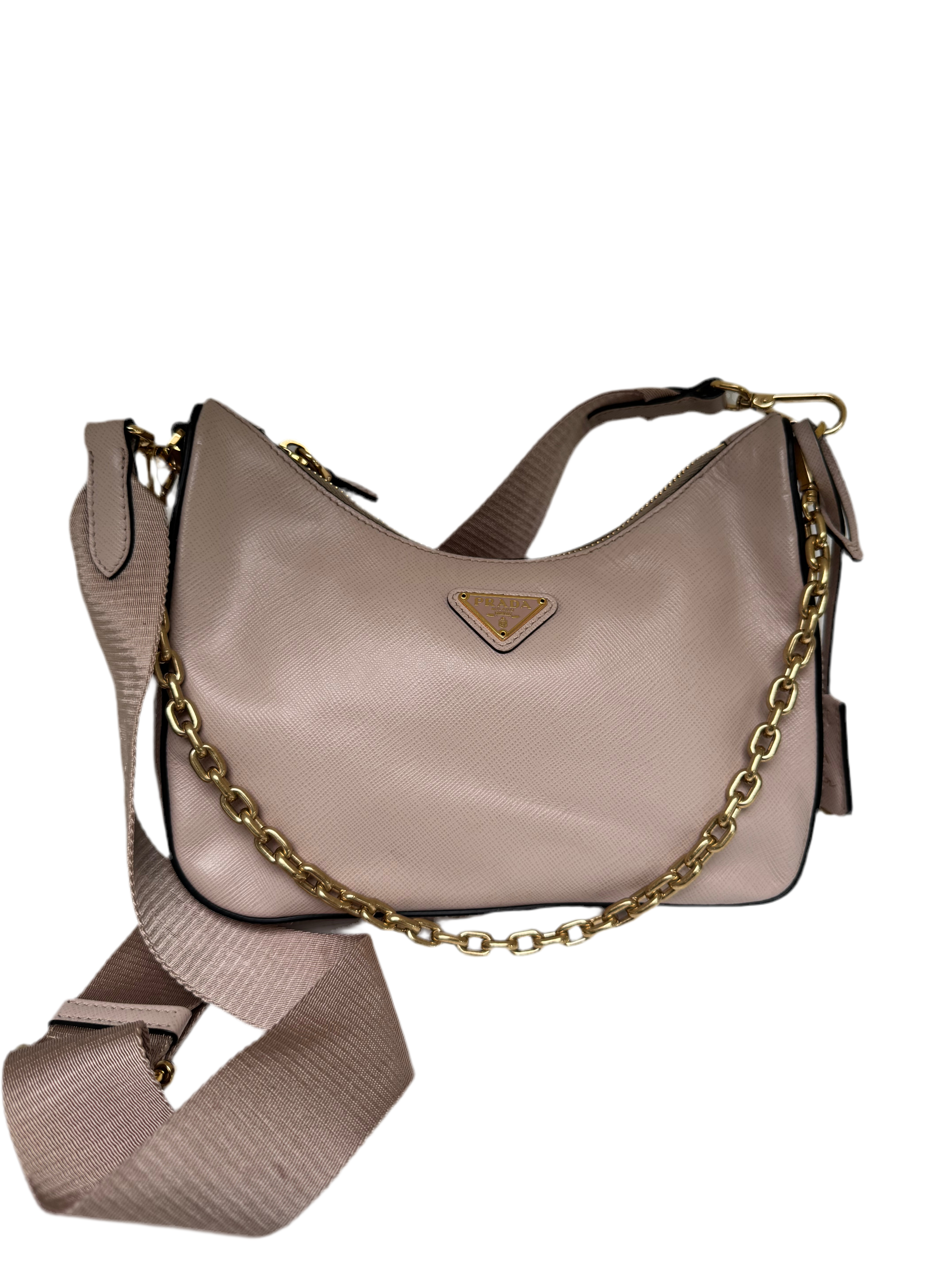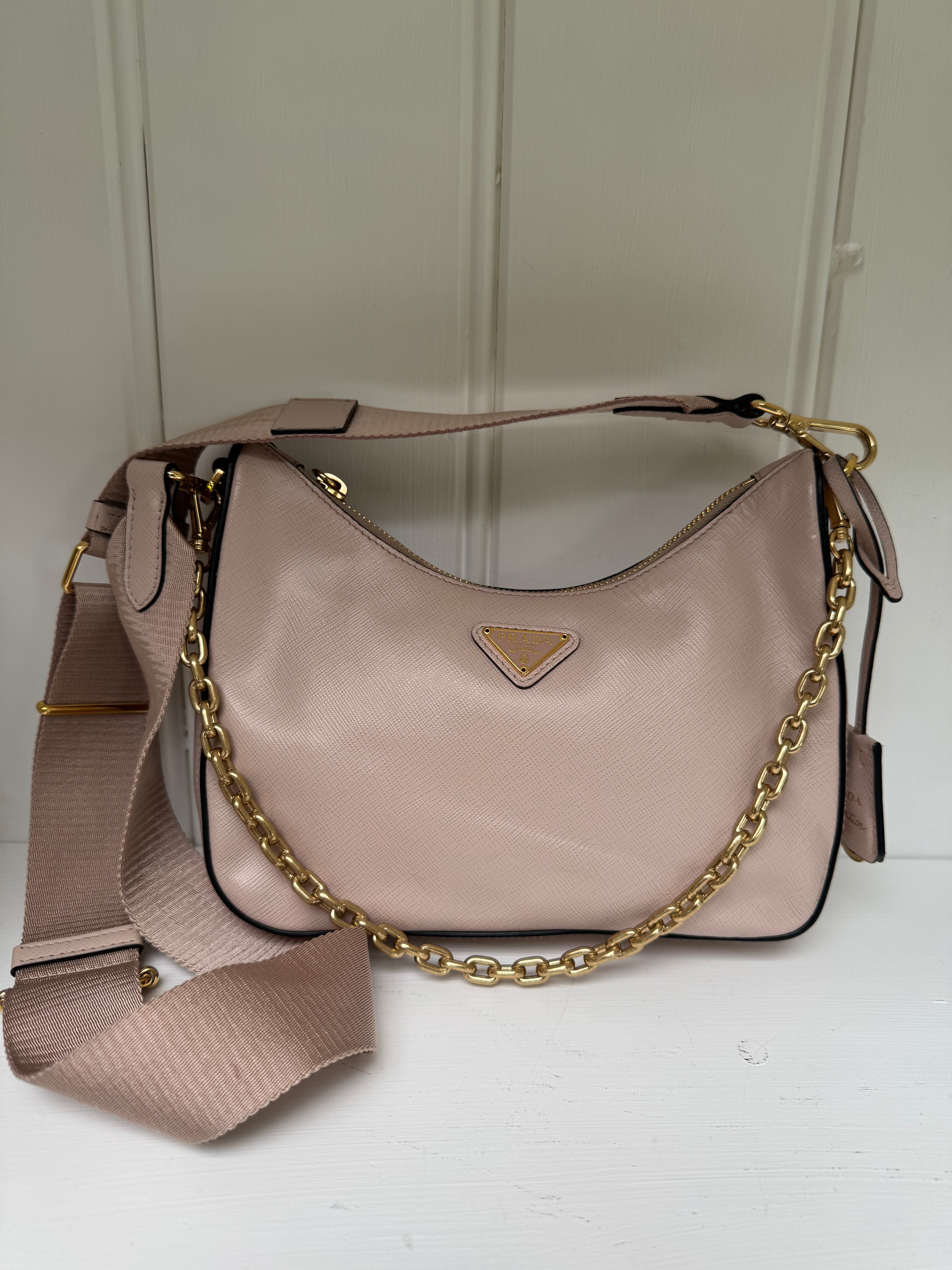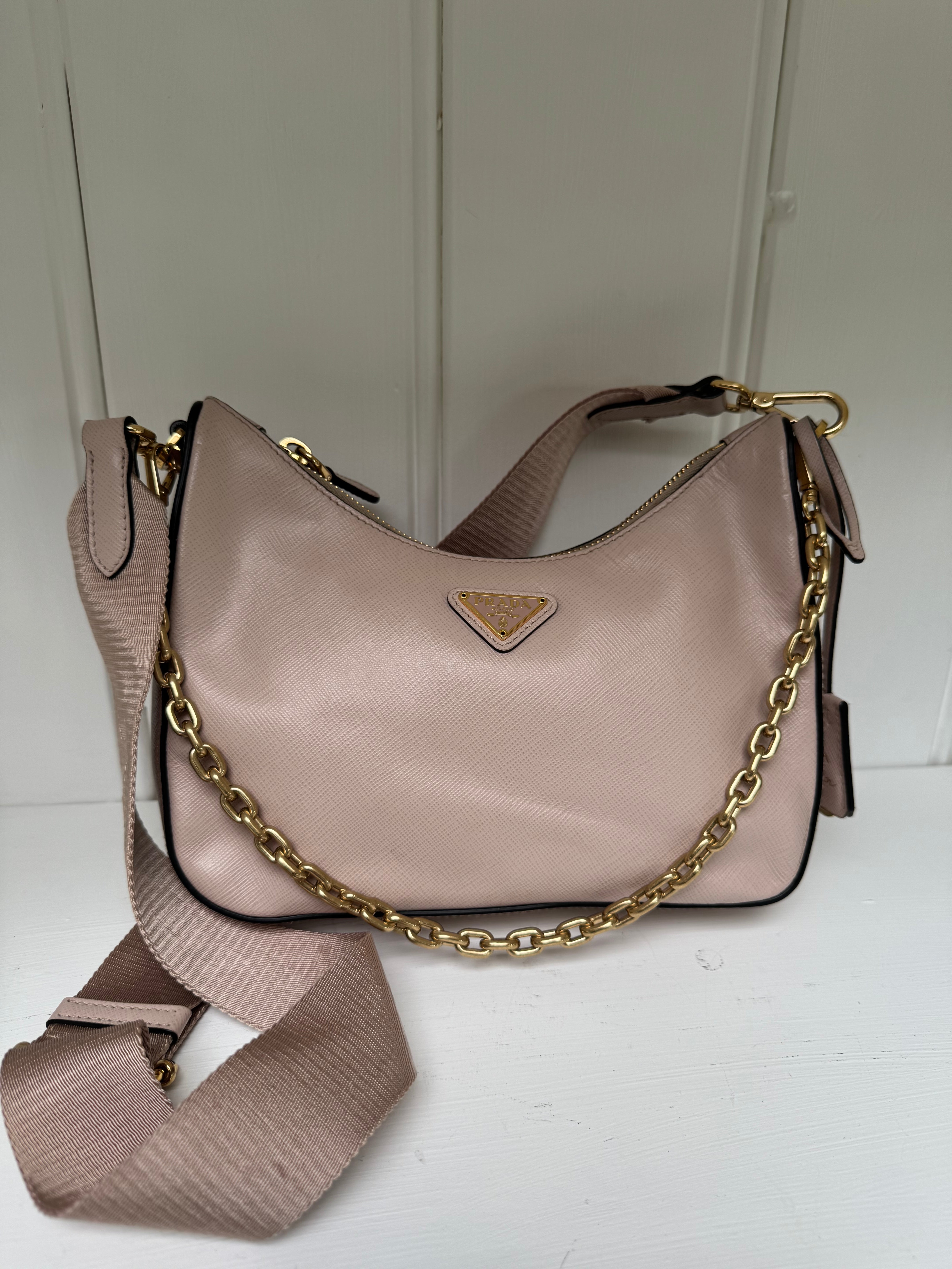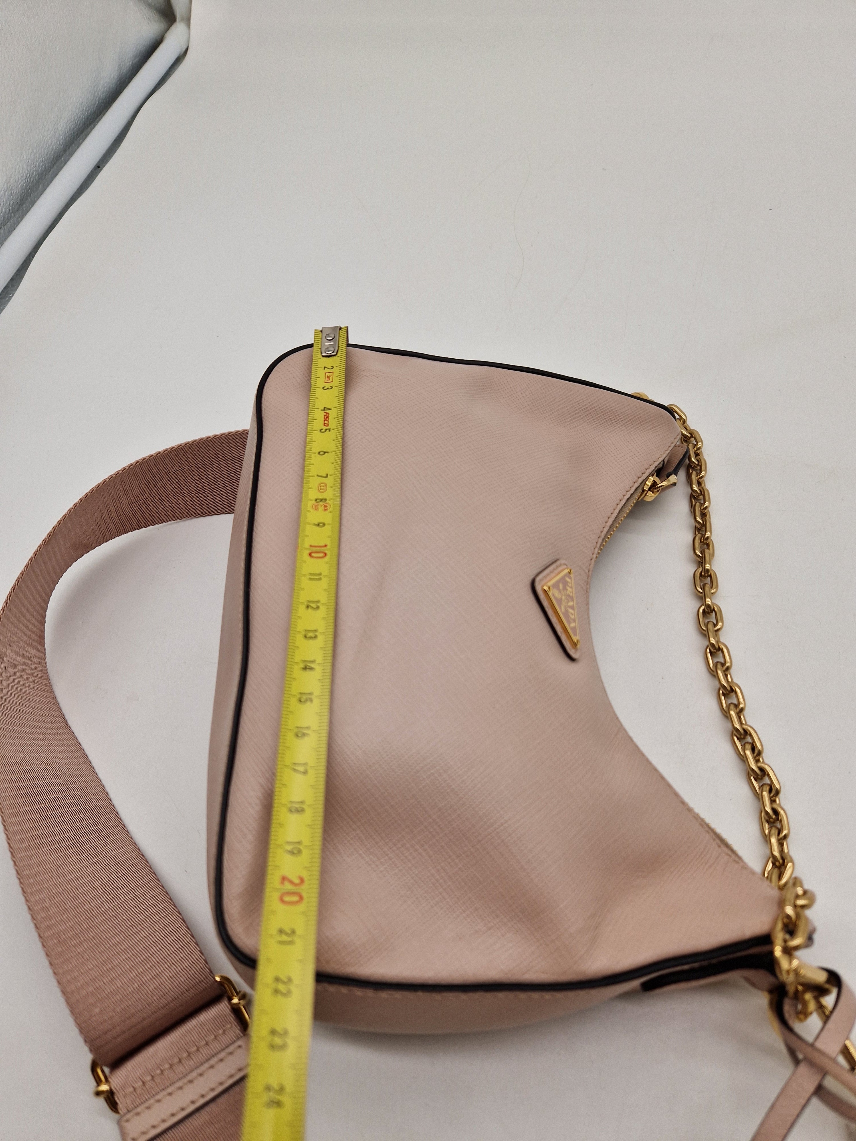 Brand:Prada Model:re edition Exterior material:saffiano leather Exterior colour:beige Print:plain Interior material:nylon Closure:zip Hardware tone:gold Type:crossbody/shoulder bag Accessories: Features:long adjustable crossbody...