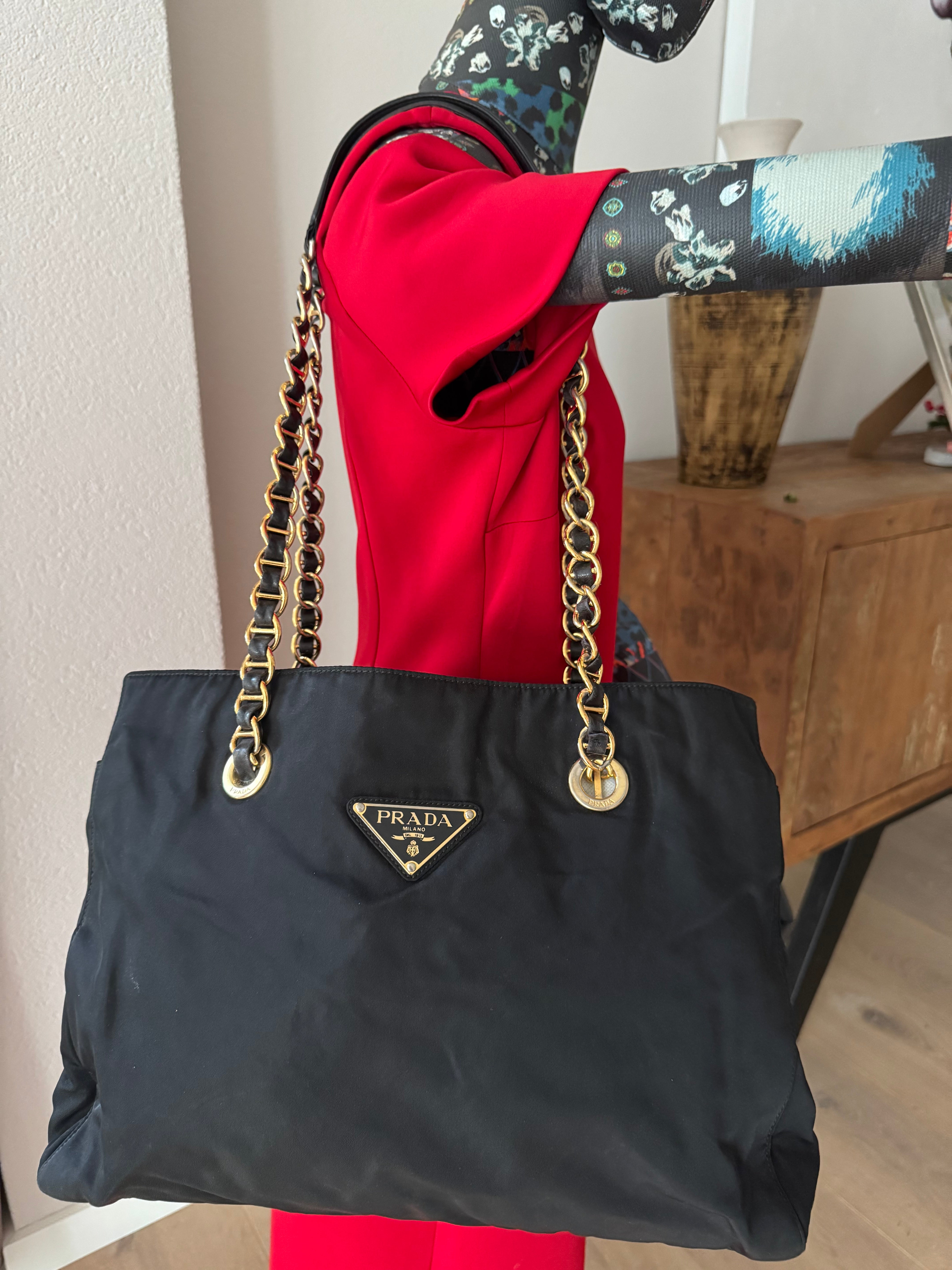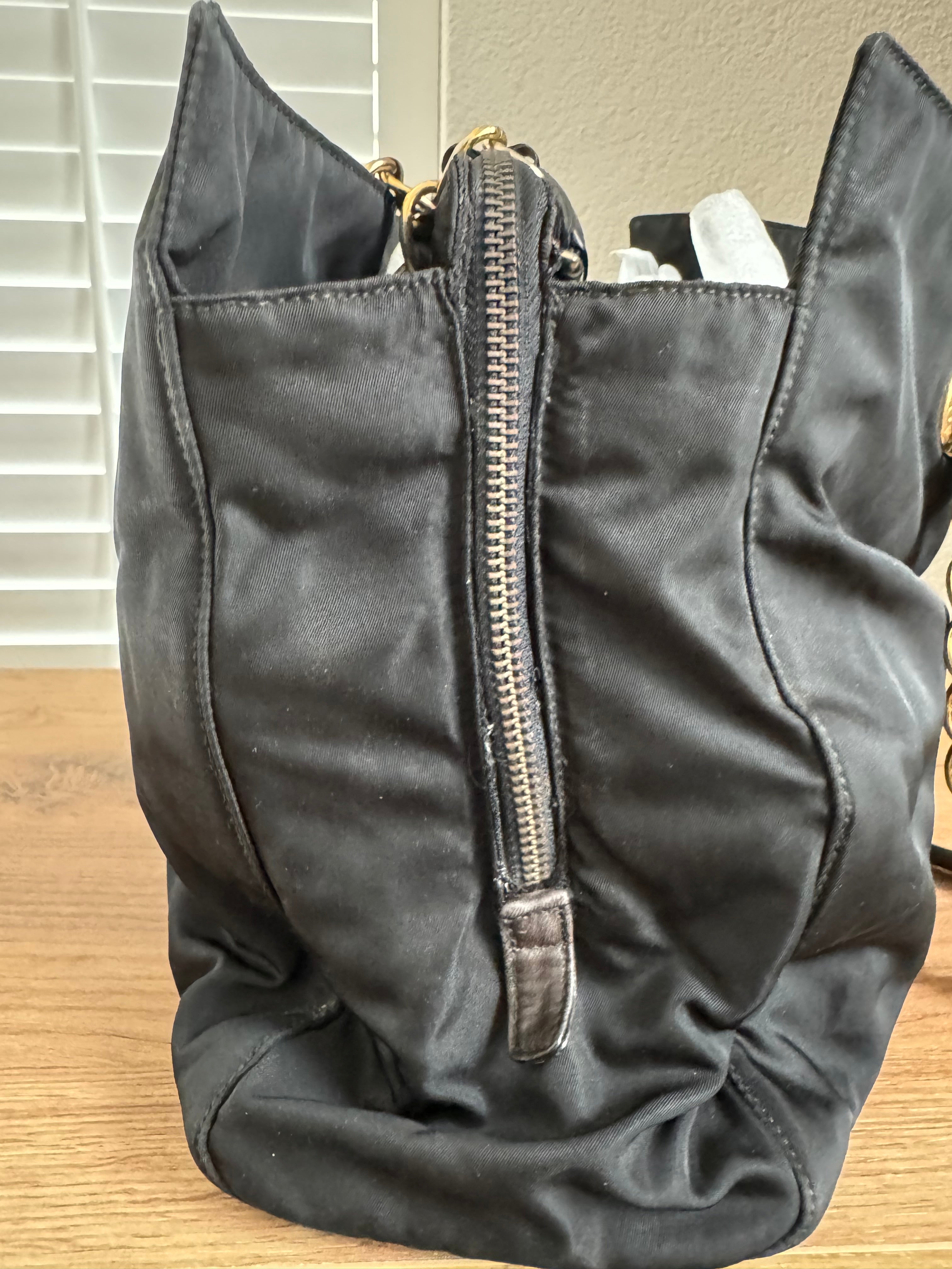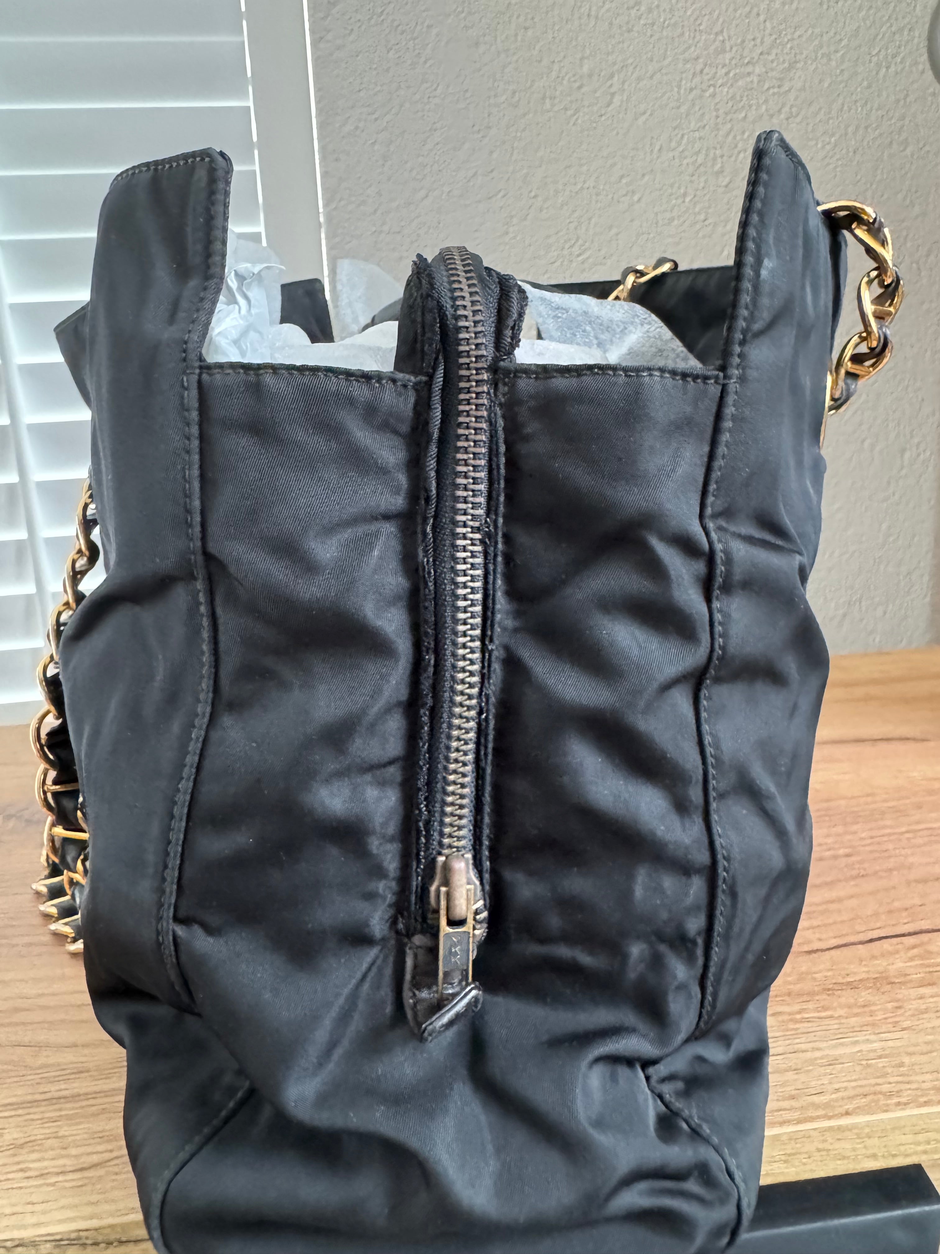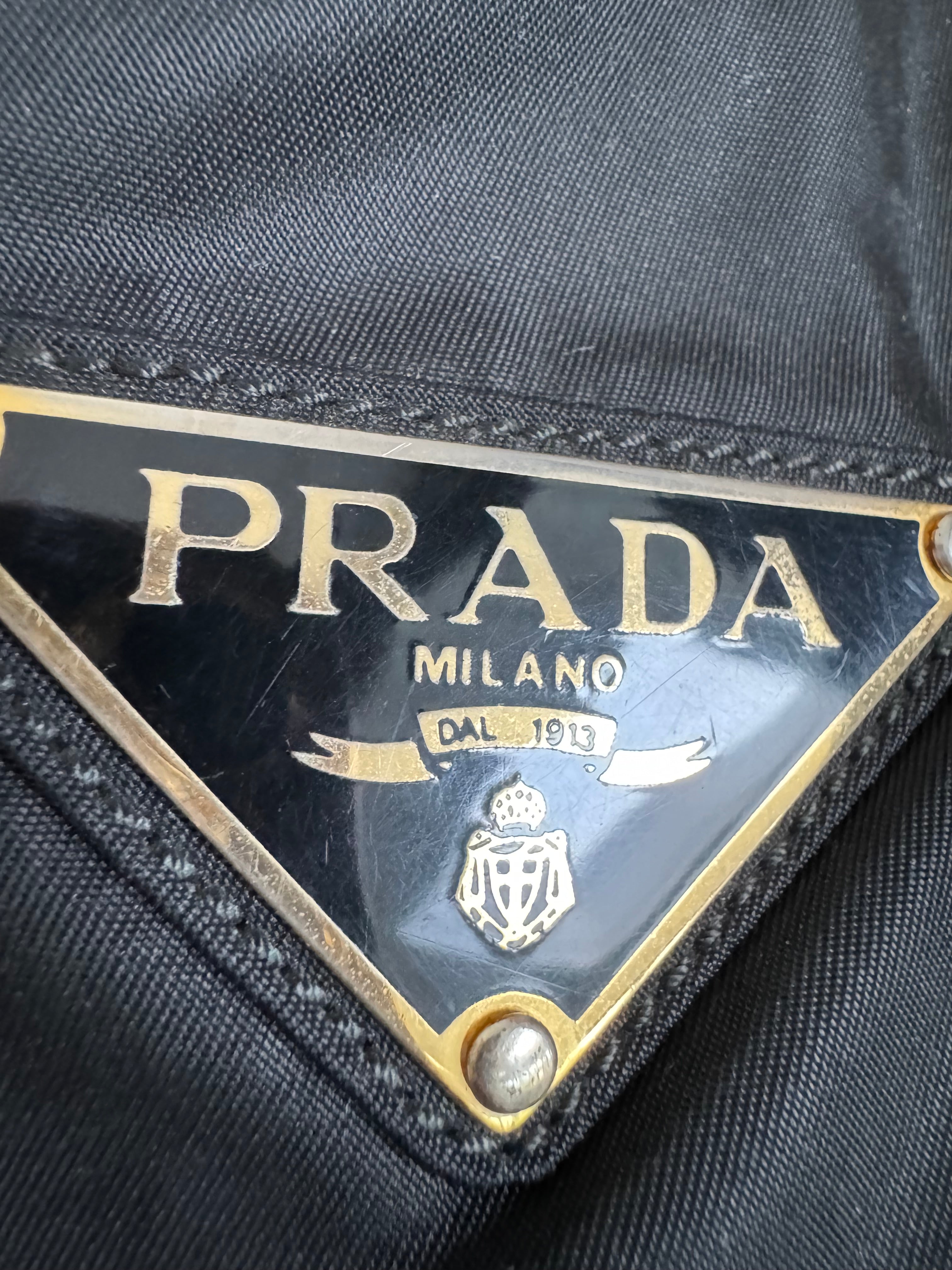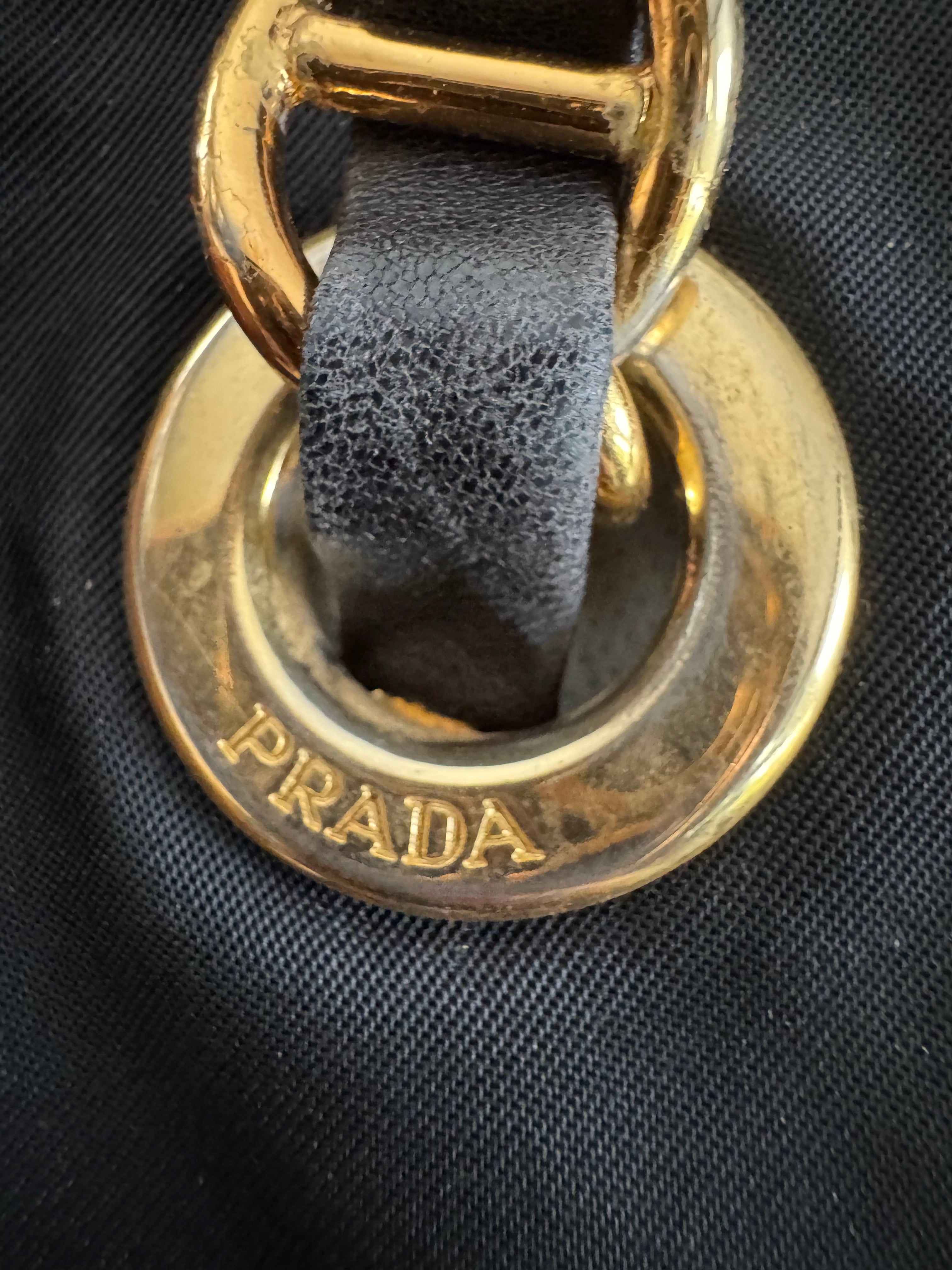 Brand:Prada Model:tote bag Exterior material:nylon Exterior colour:black Print:plain Interior material:nylon Closure:zip Hardware tone:gold Type:shoulder bag Accessories: Features:double shoulder strap Serial...