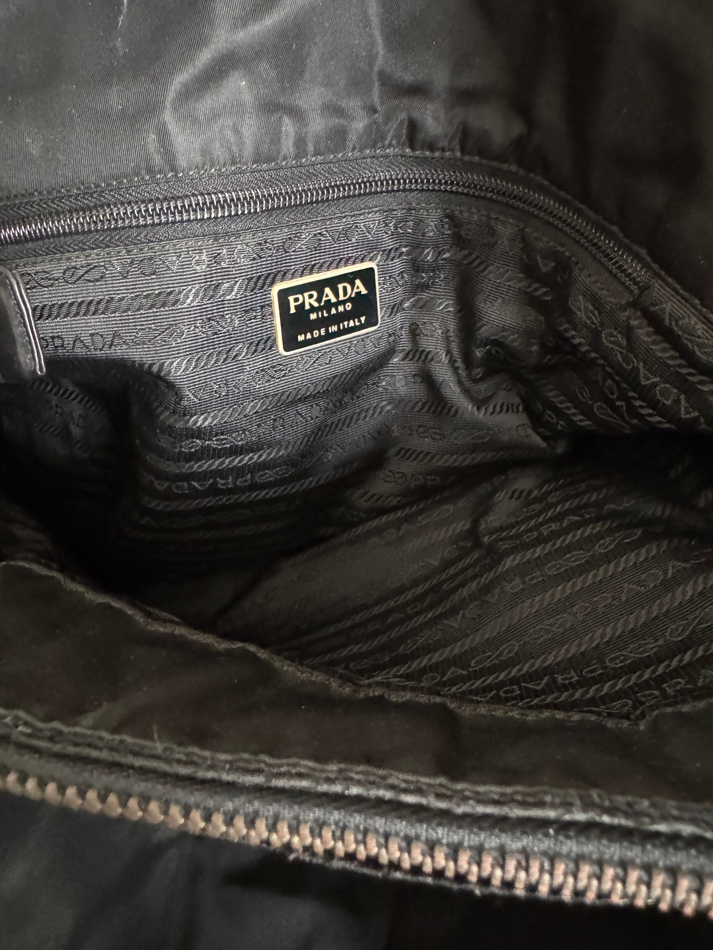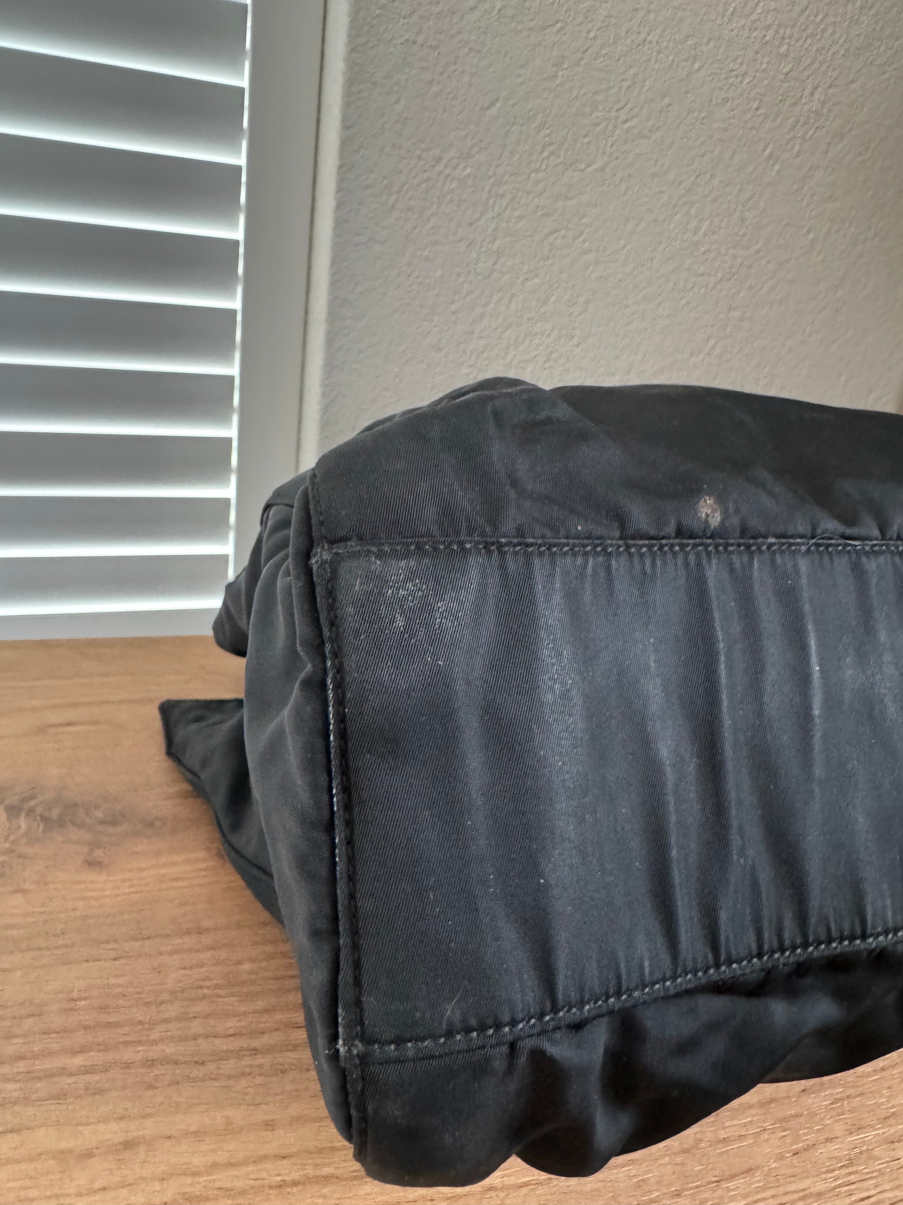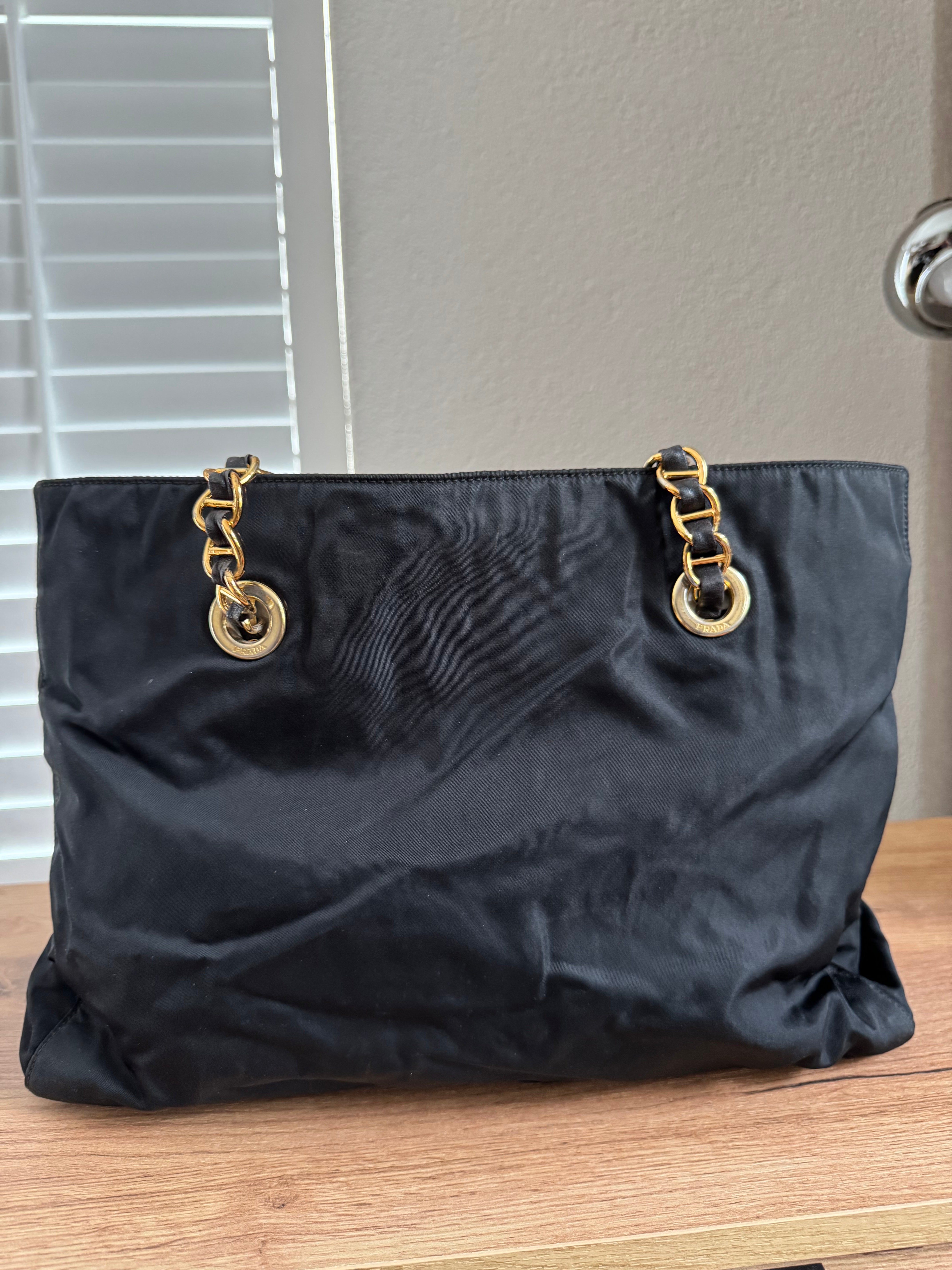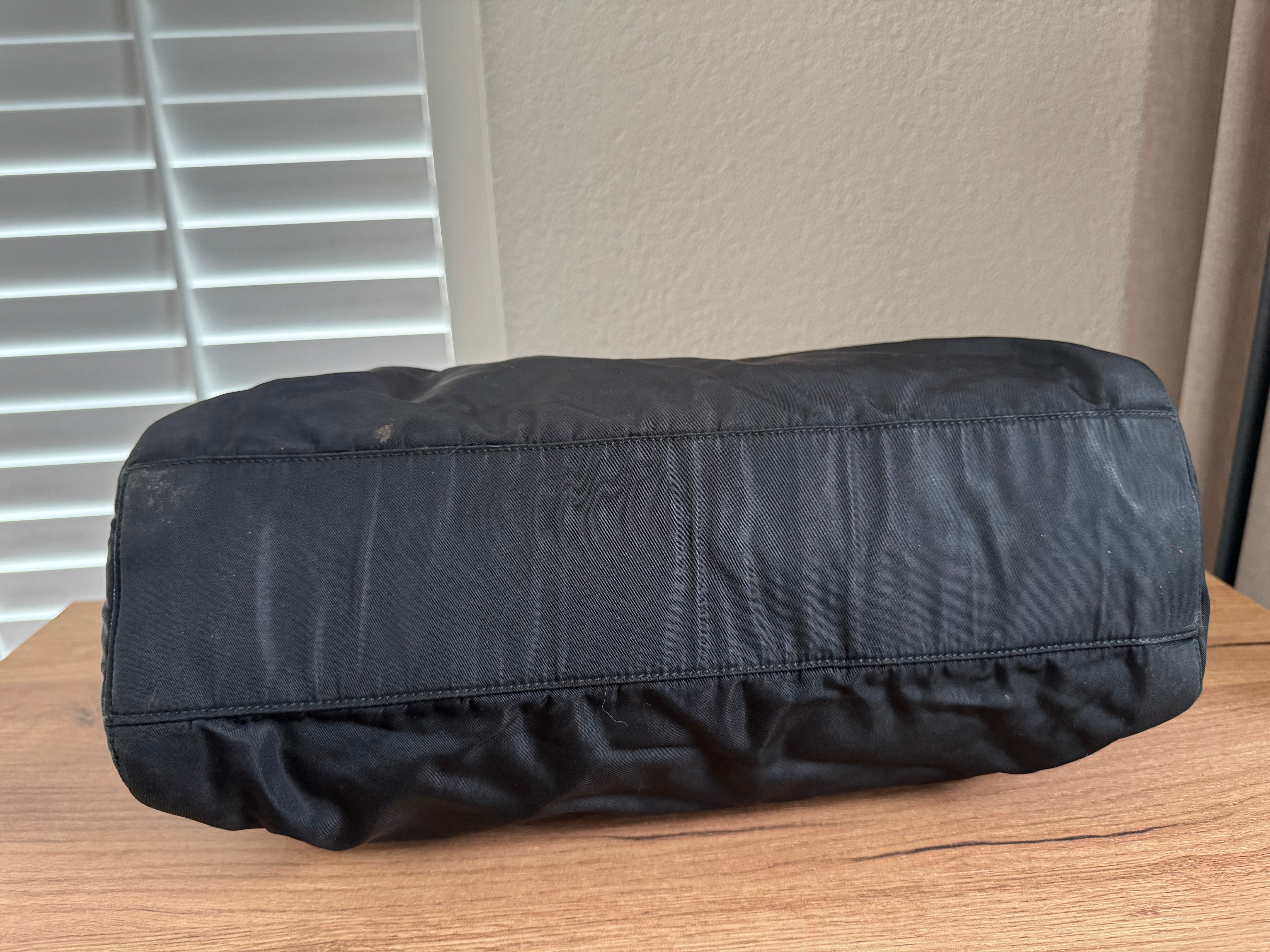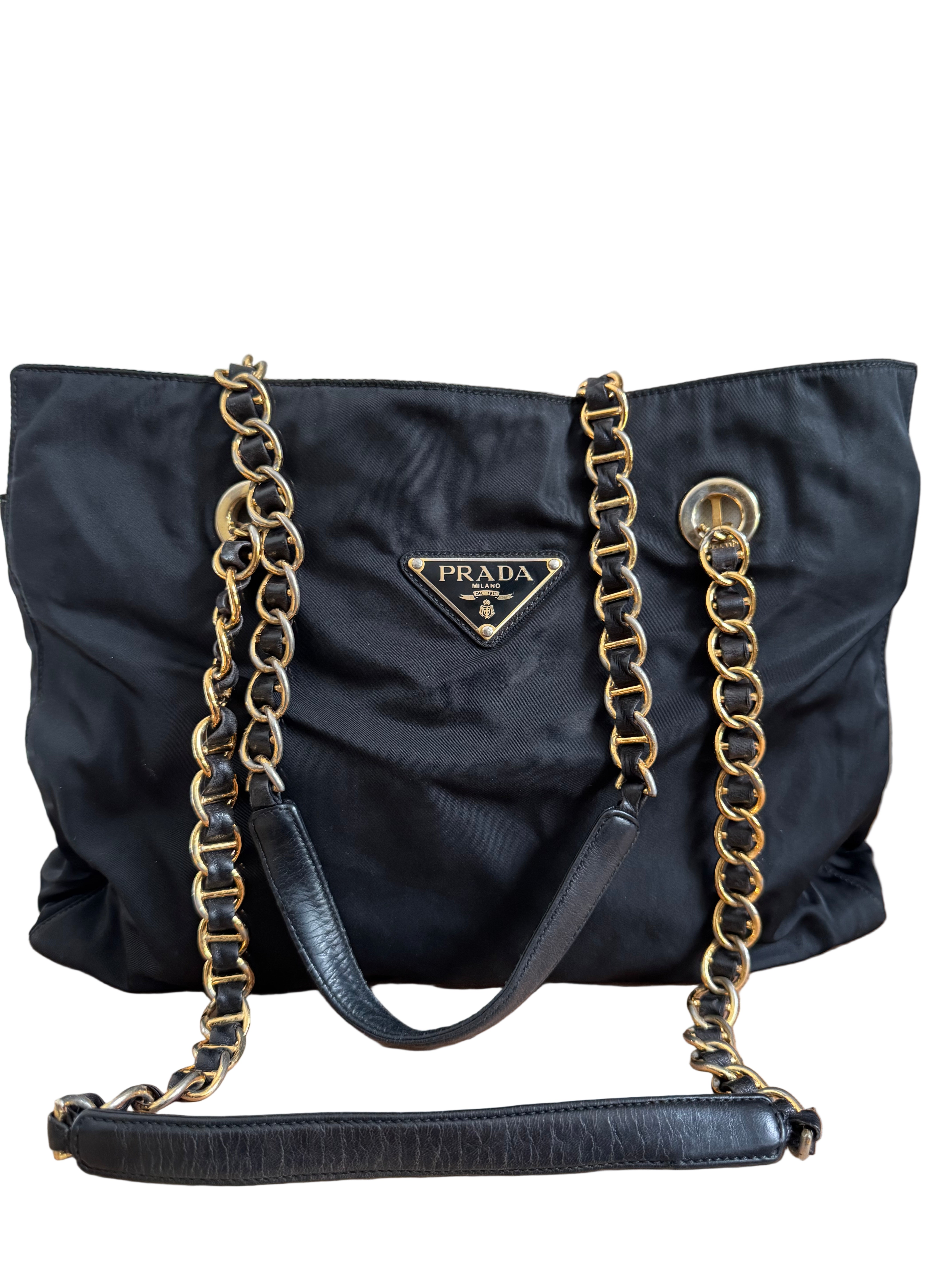 Brand:Prada Model:tote bag Exterior material:nylon Exterior colour:black Print:plain Interior material:nylon Closure:zip Hardware tone:gold Type:shoulder bag Accessories: Features:double shoulder strap Serial...