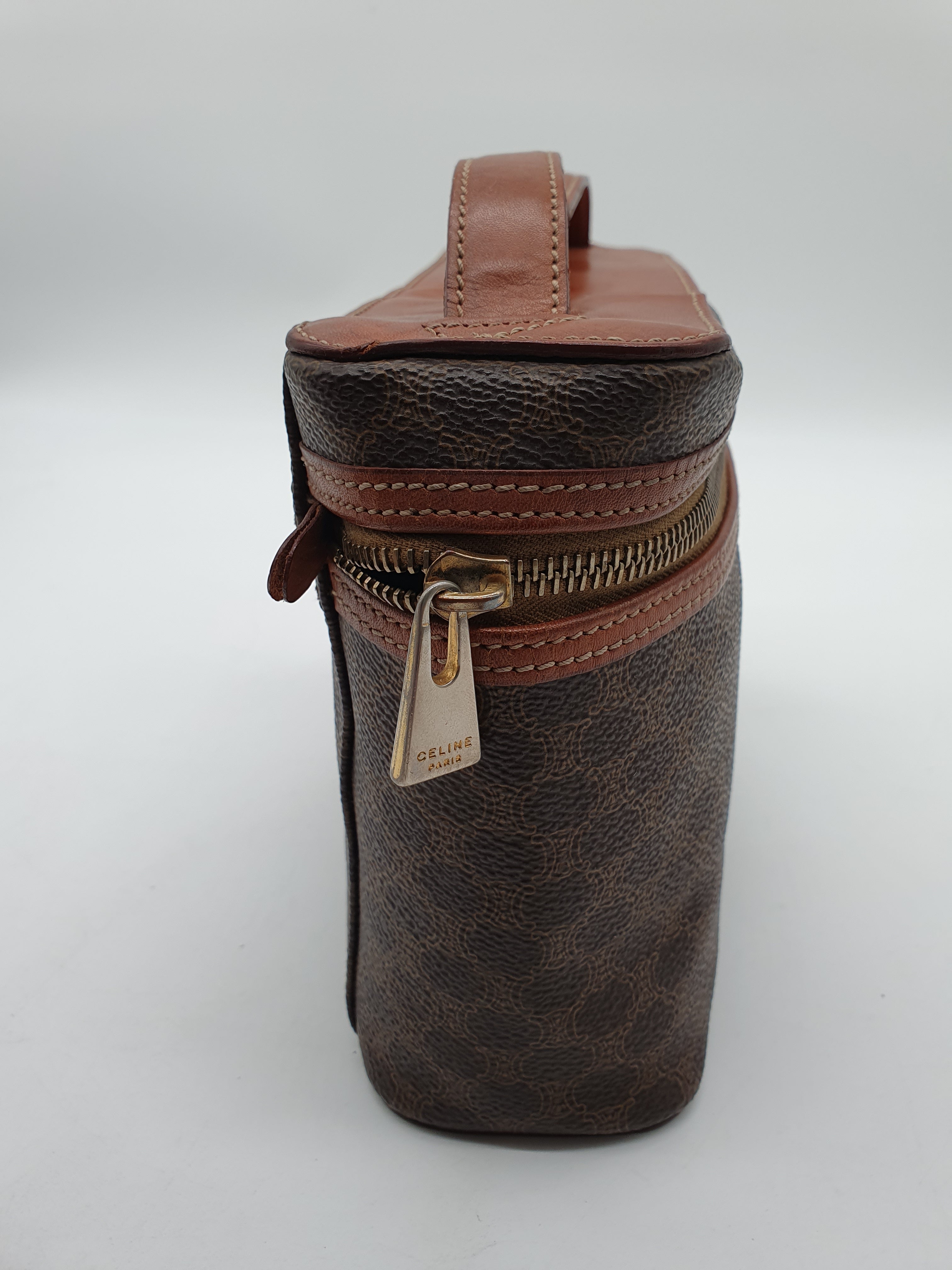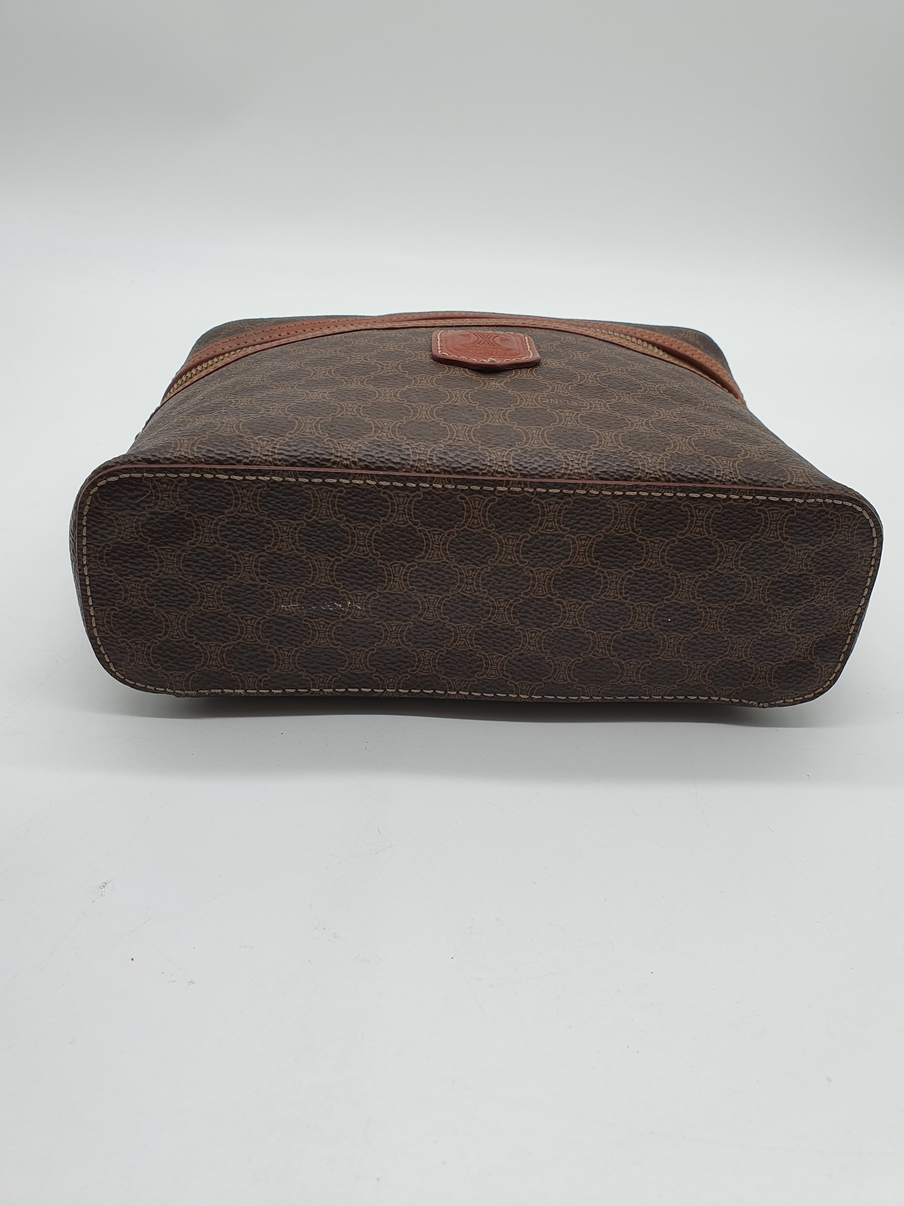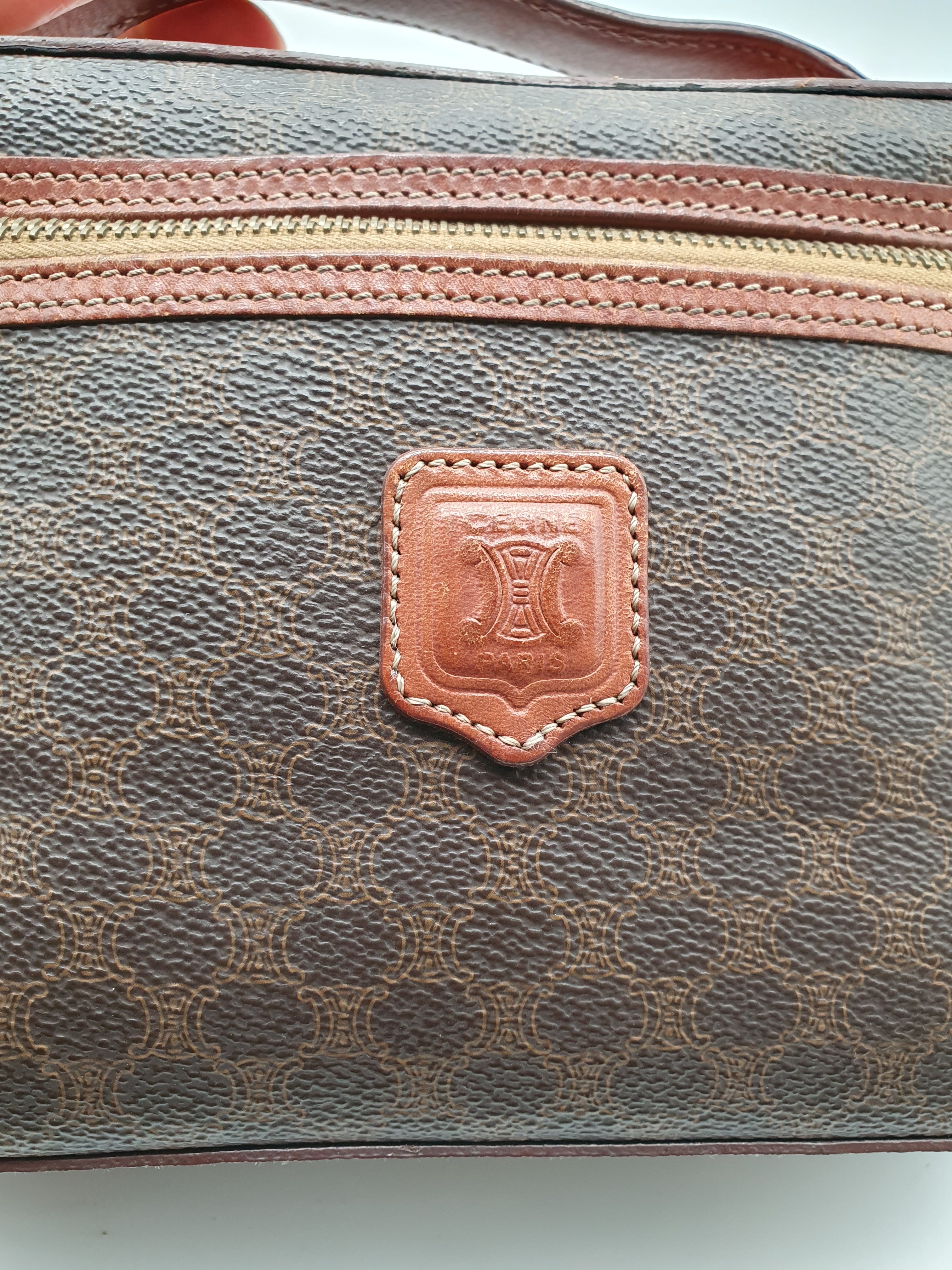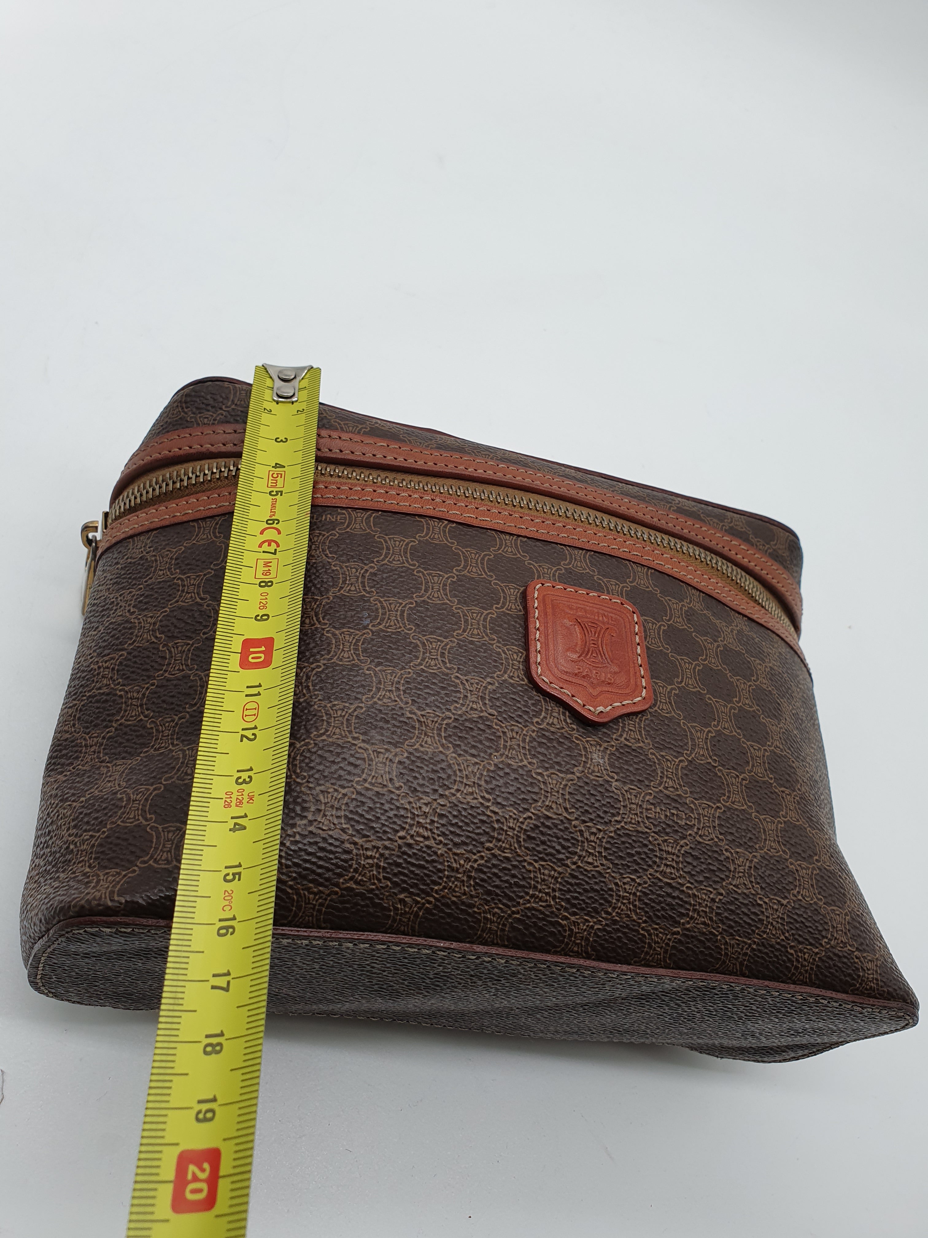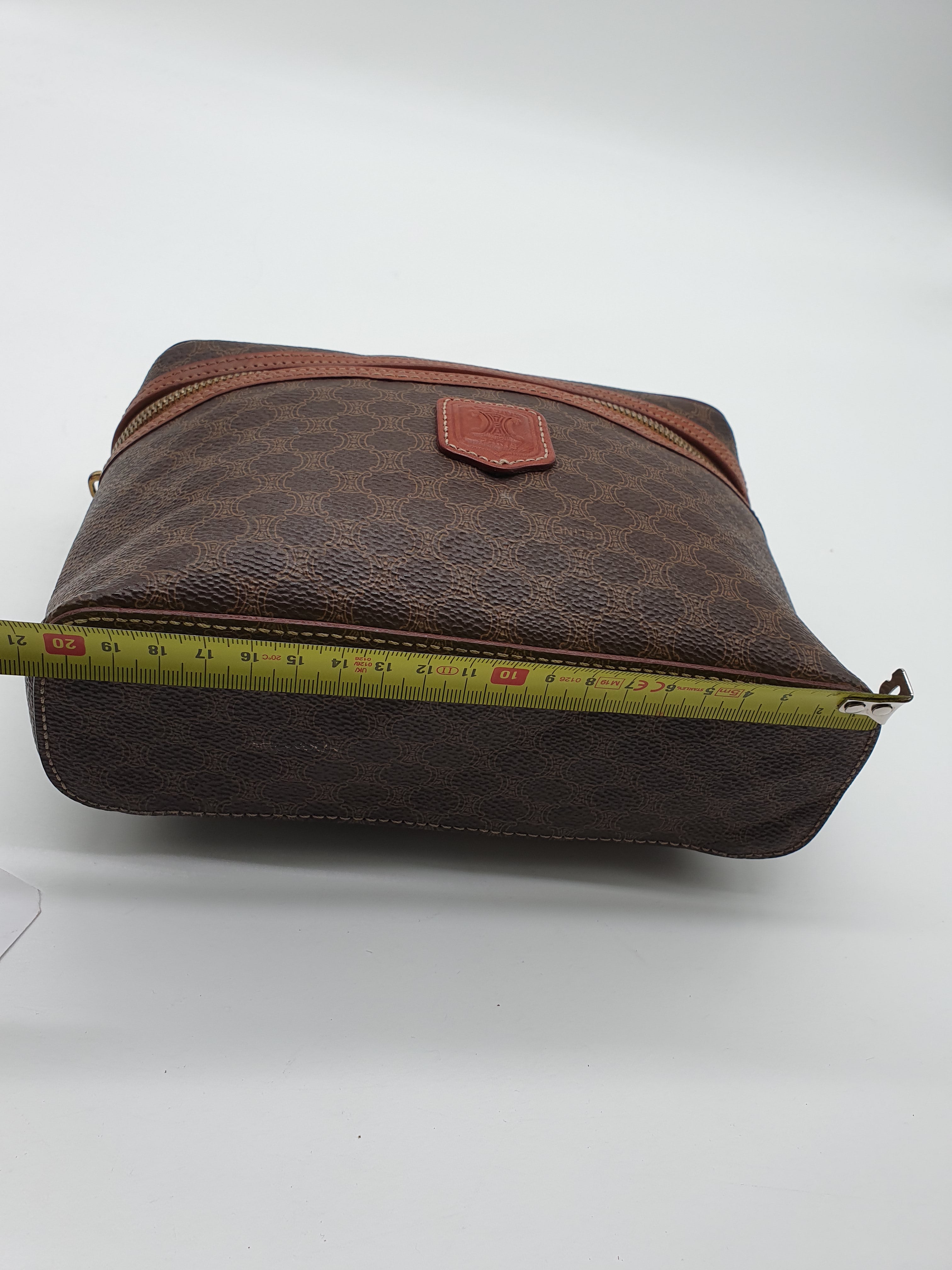 Brand:Celine Model:triomphe vintage Exterior material:canvas Exterior colour:brown Pattern:monogram Style:handbag Interior material:leather Closure type:zip Dimension; Height:16CM Width:20CM Comment;has scratches on material...