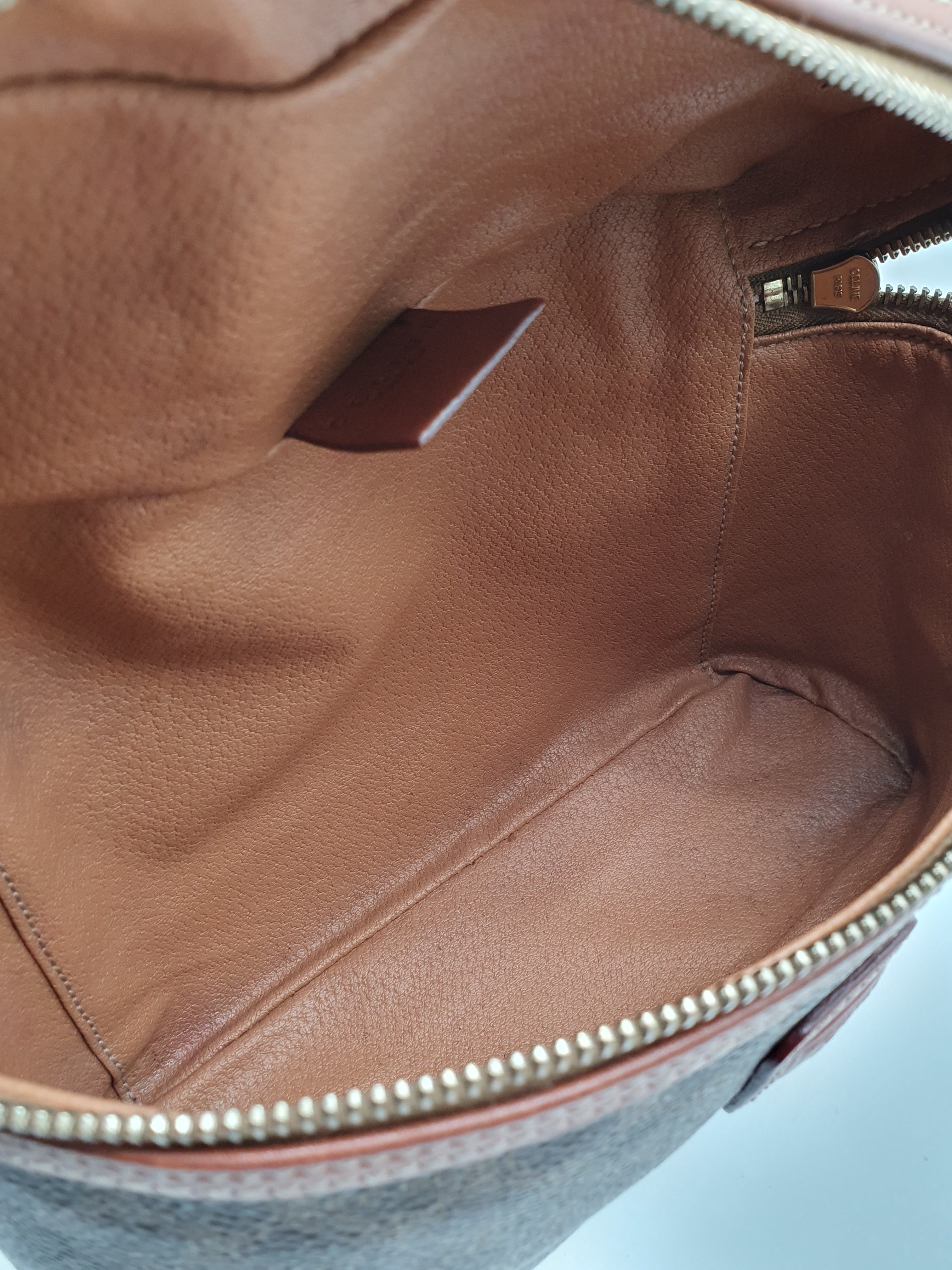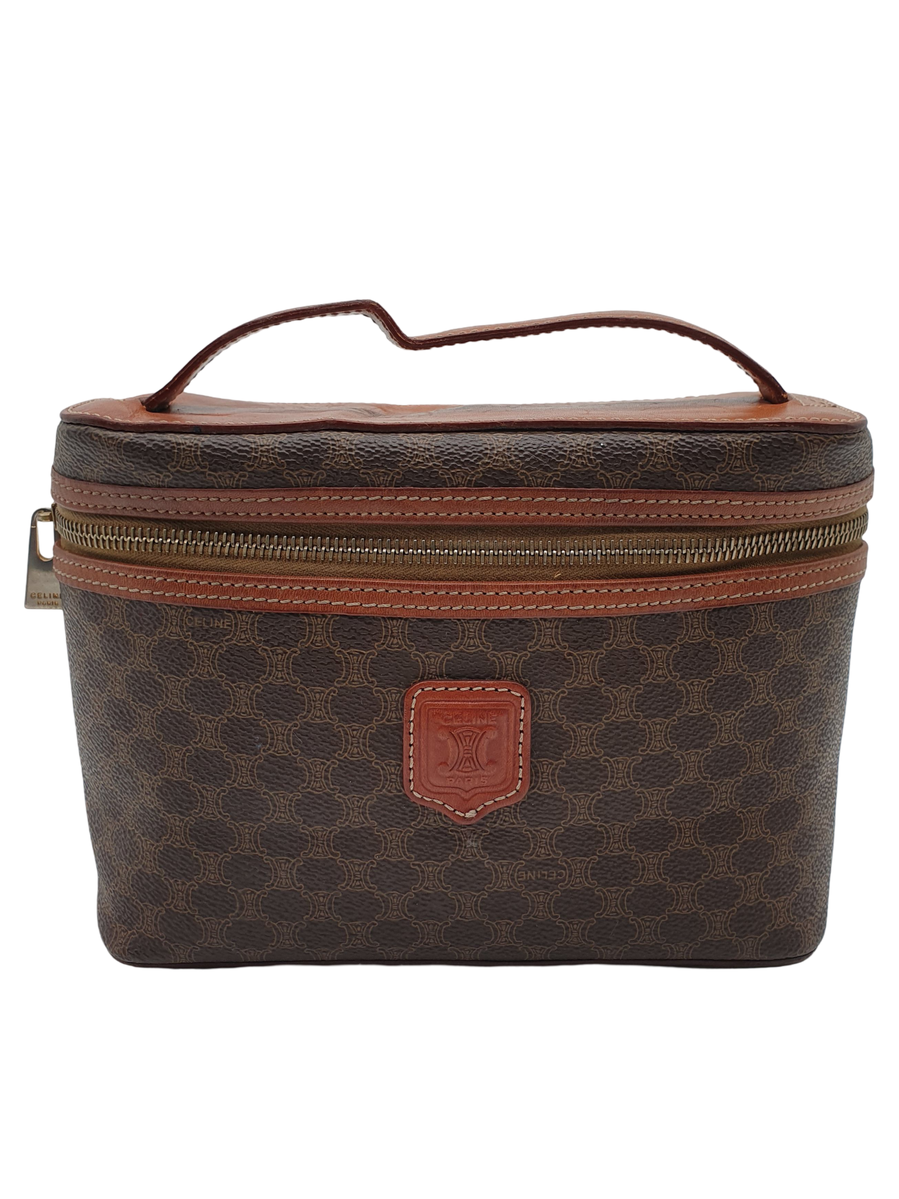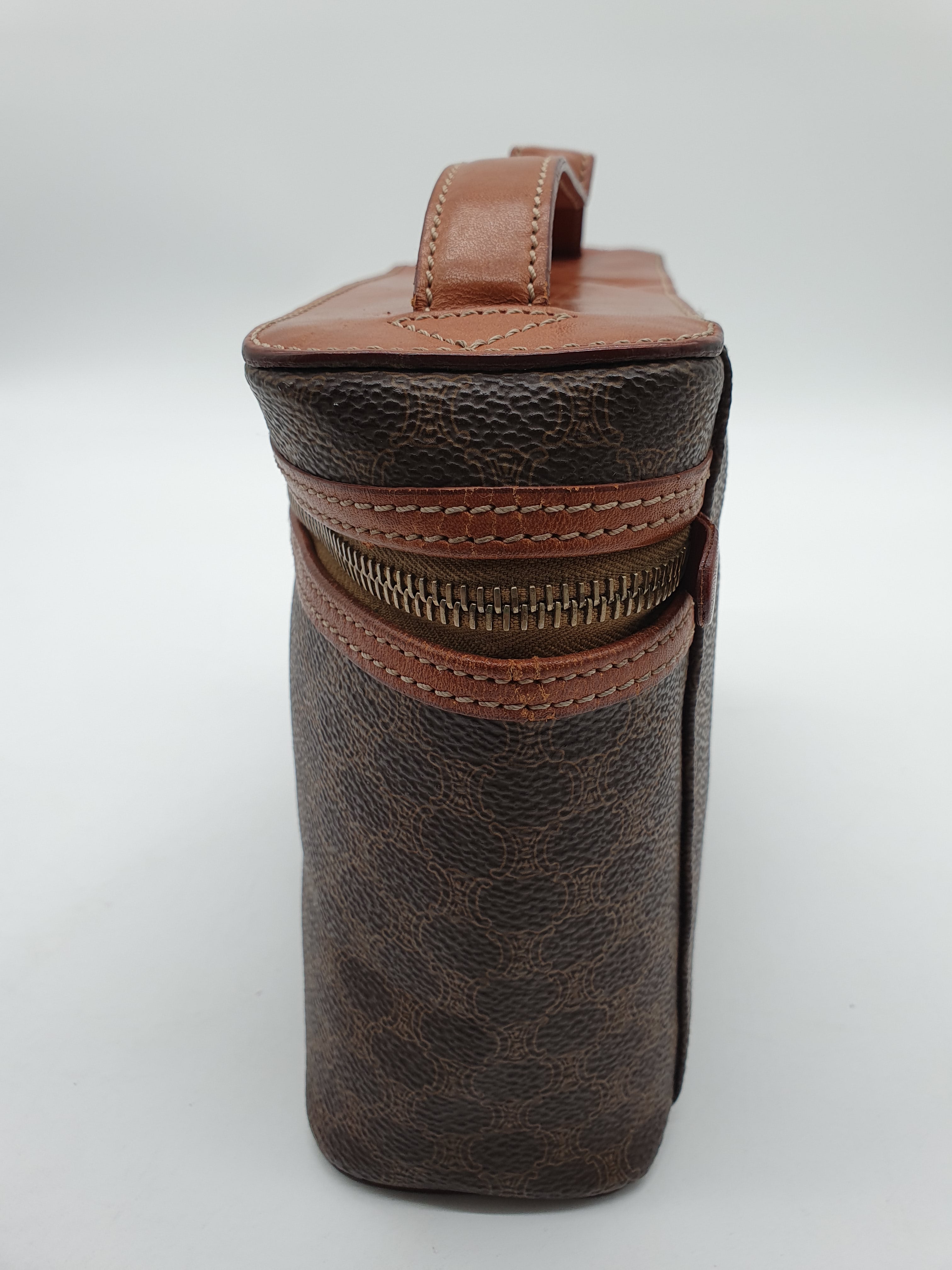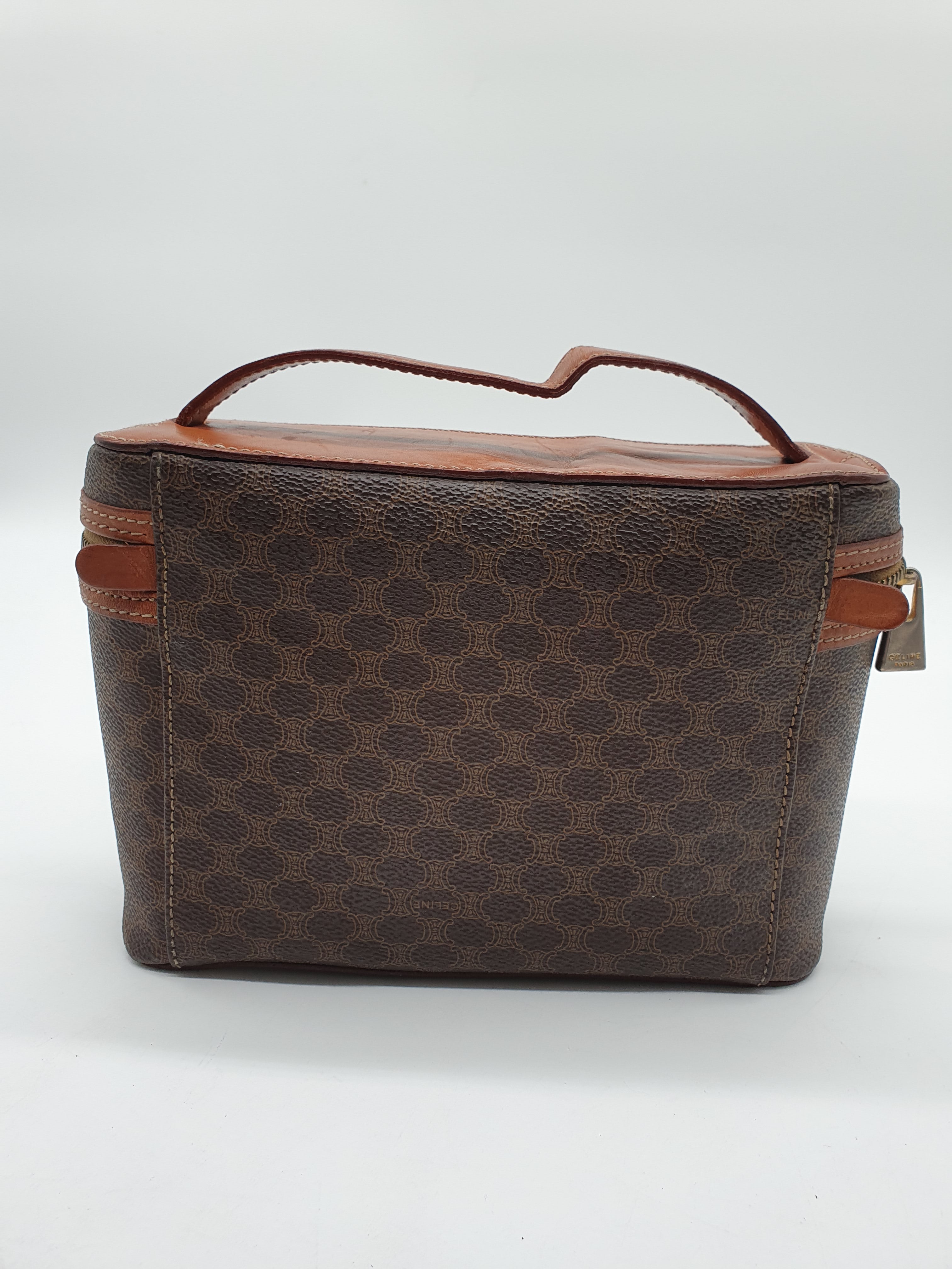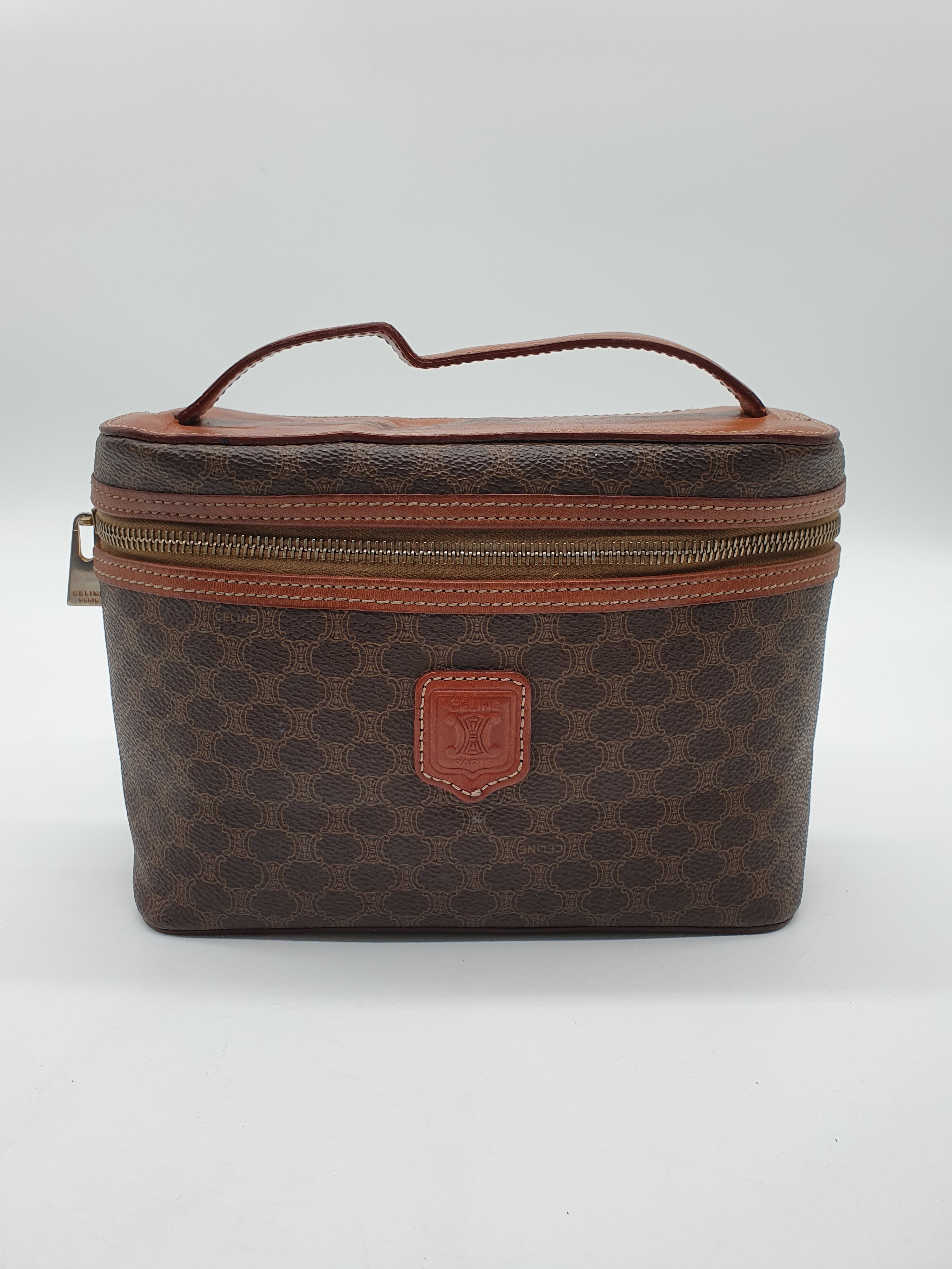 Brand:Celine Model:triomphe vintage Exterior material:canvas Exterior colour:brown Pattern:monogram Style:handbag Interior material:leather Closure type:zip Dimension; Height:16CM Width:20CM Comment;has scratches on material...