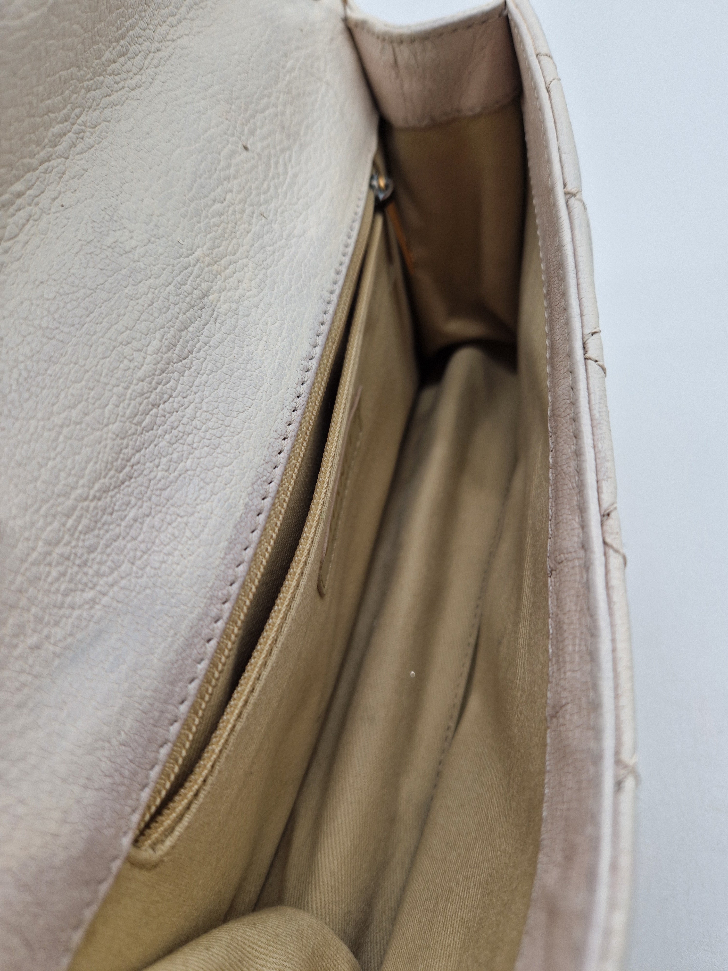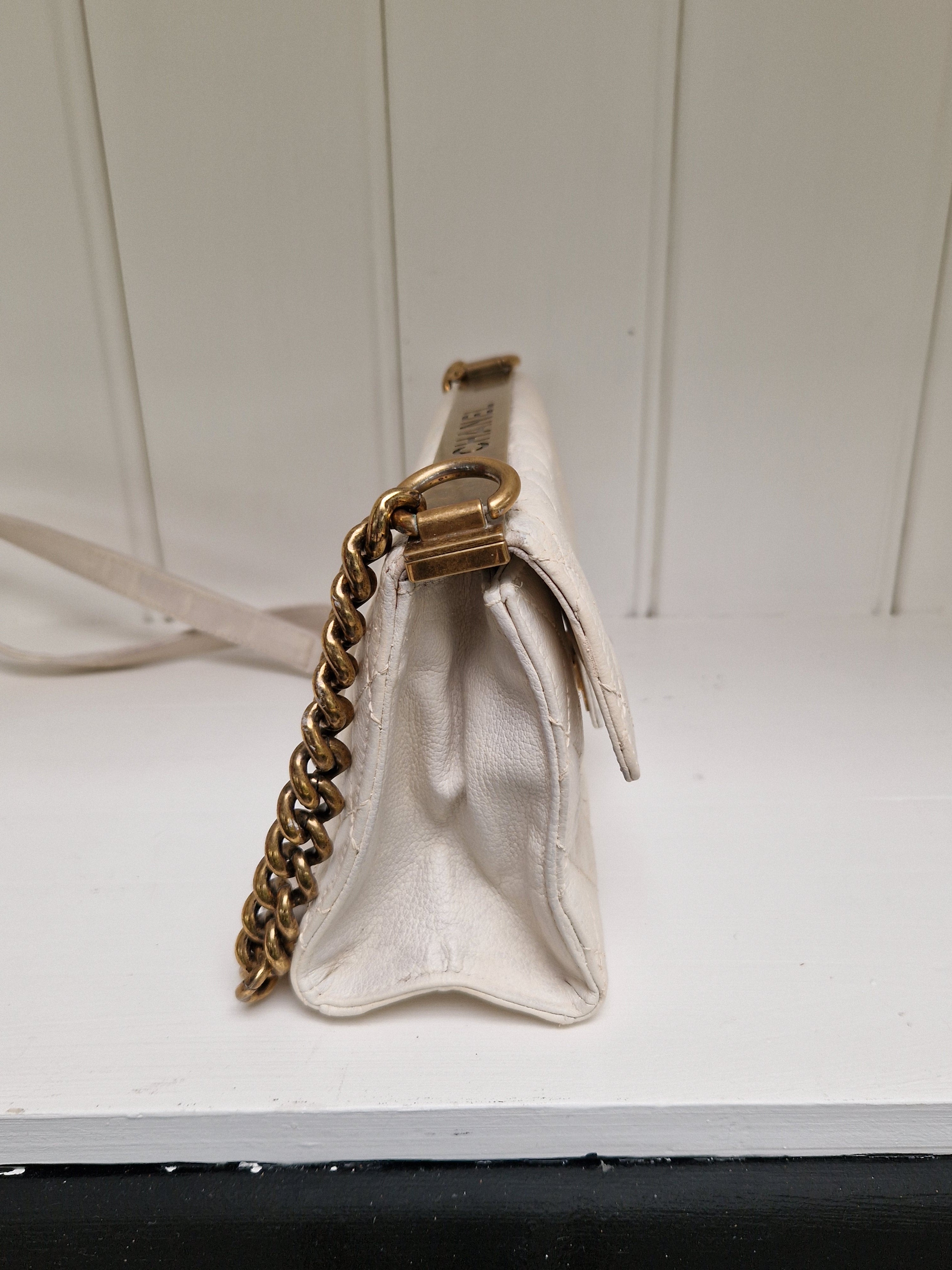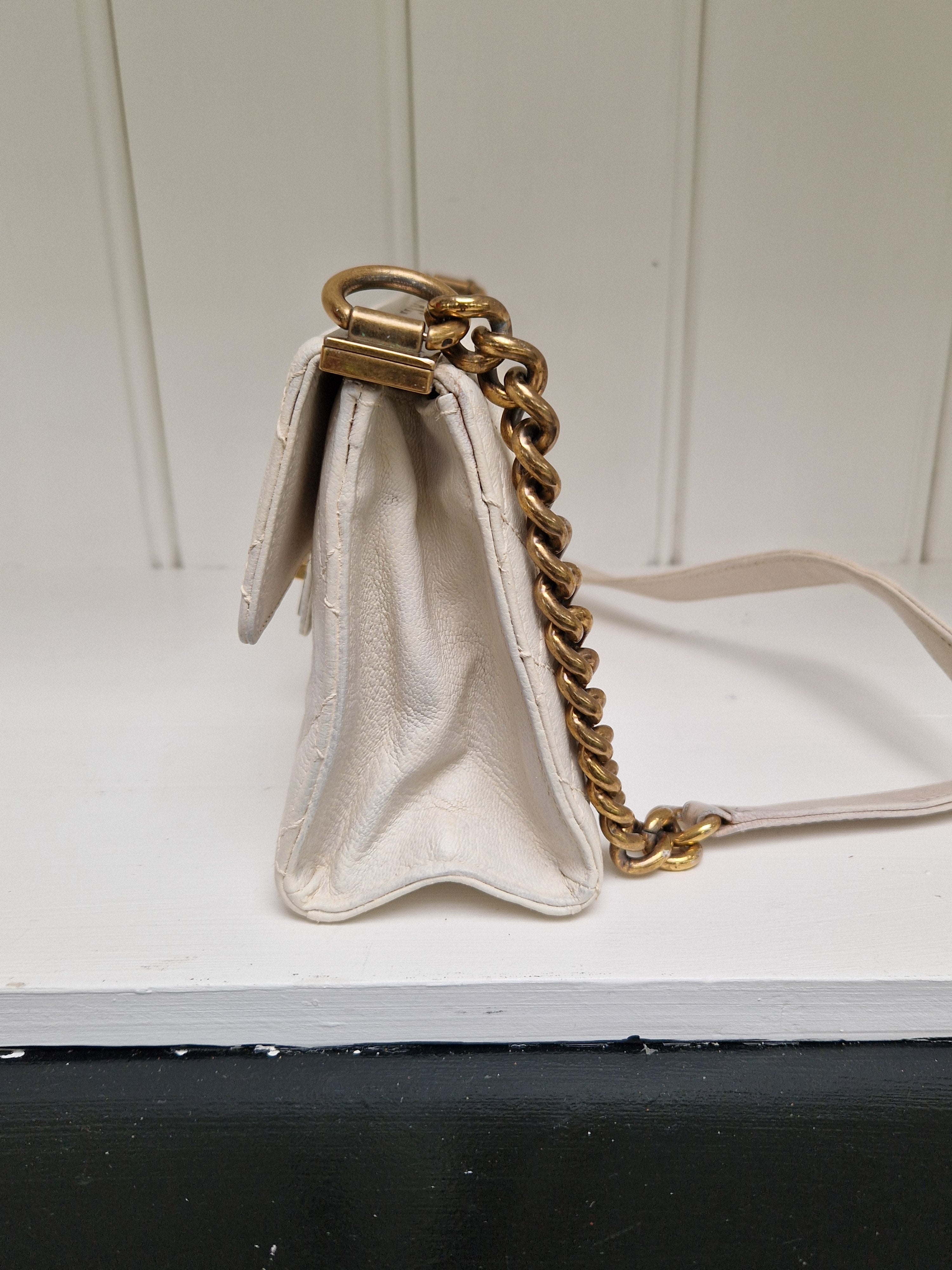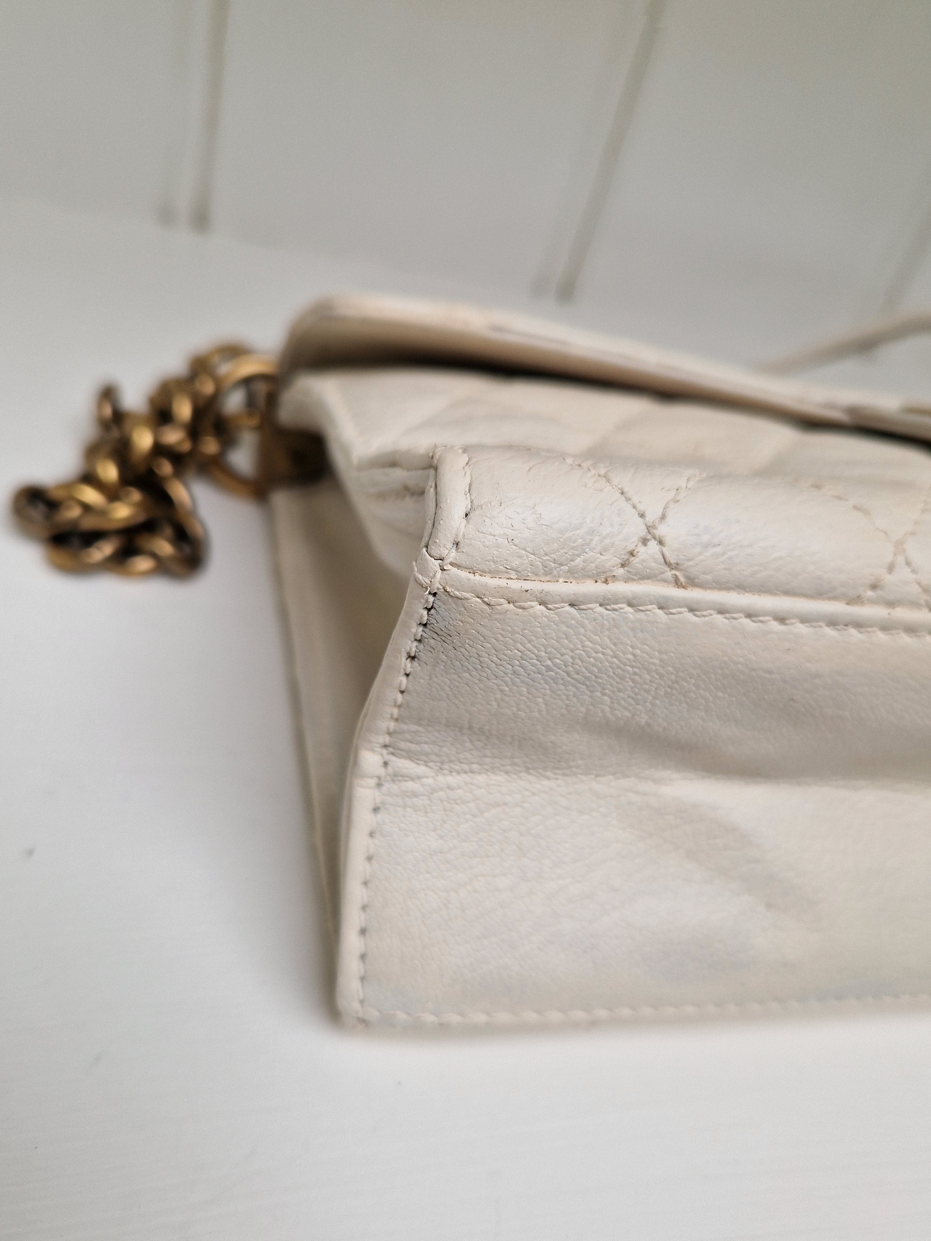 Brand:Chanel Model:re issue  Exterior material:leather Exterior colour:white Print:plain Interior material:fabric Closure:twist lock Hardware tone:gold Type:crossbody  Accessories: Features:long chain strap can... Read more Read more