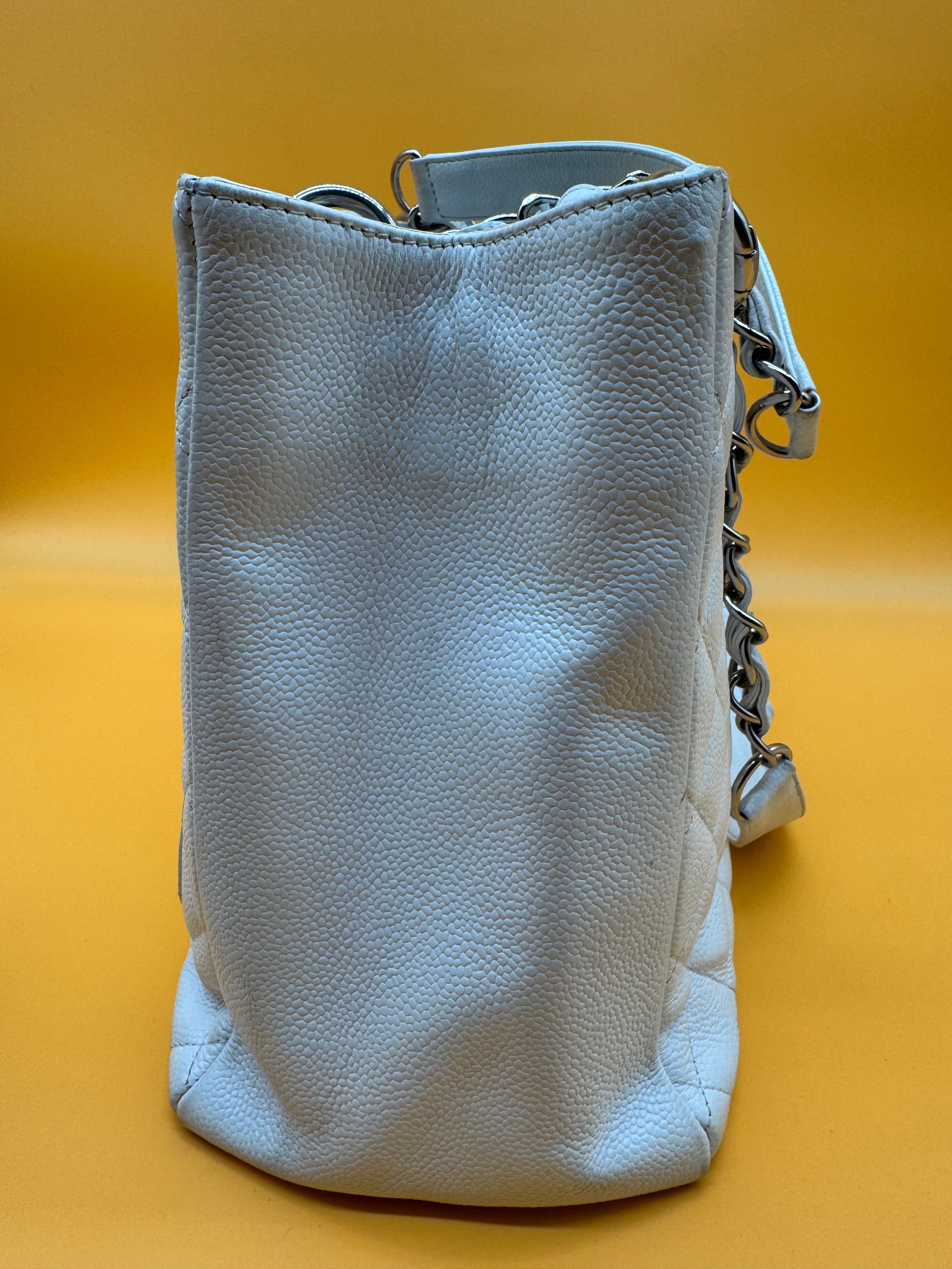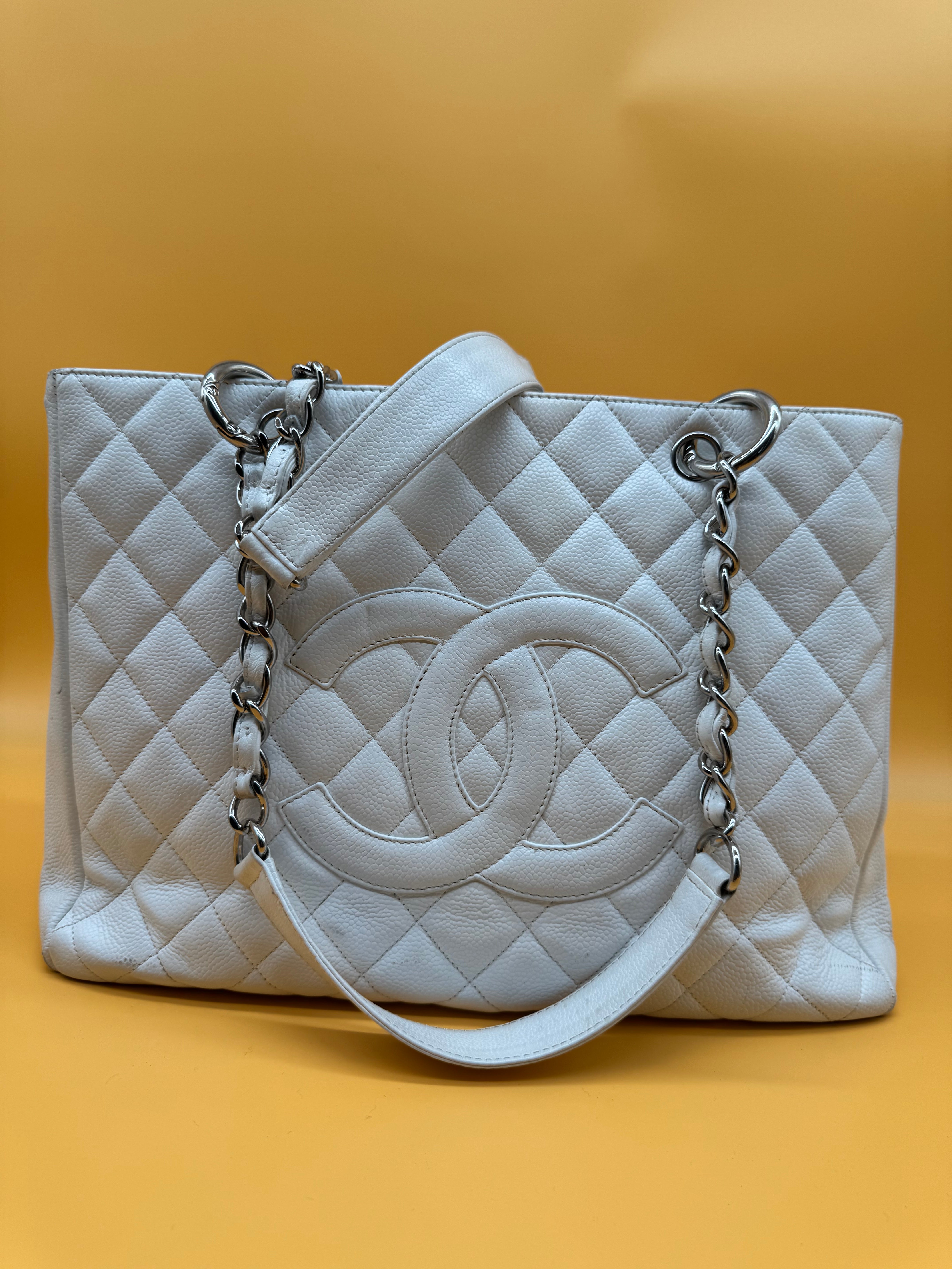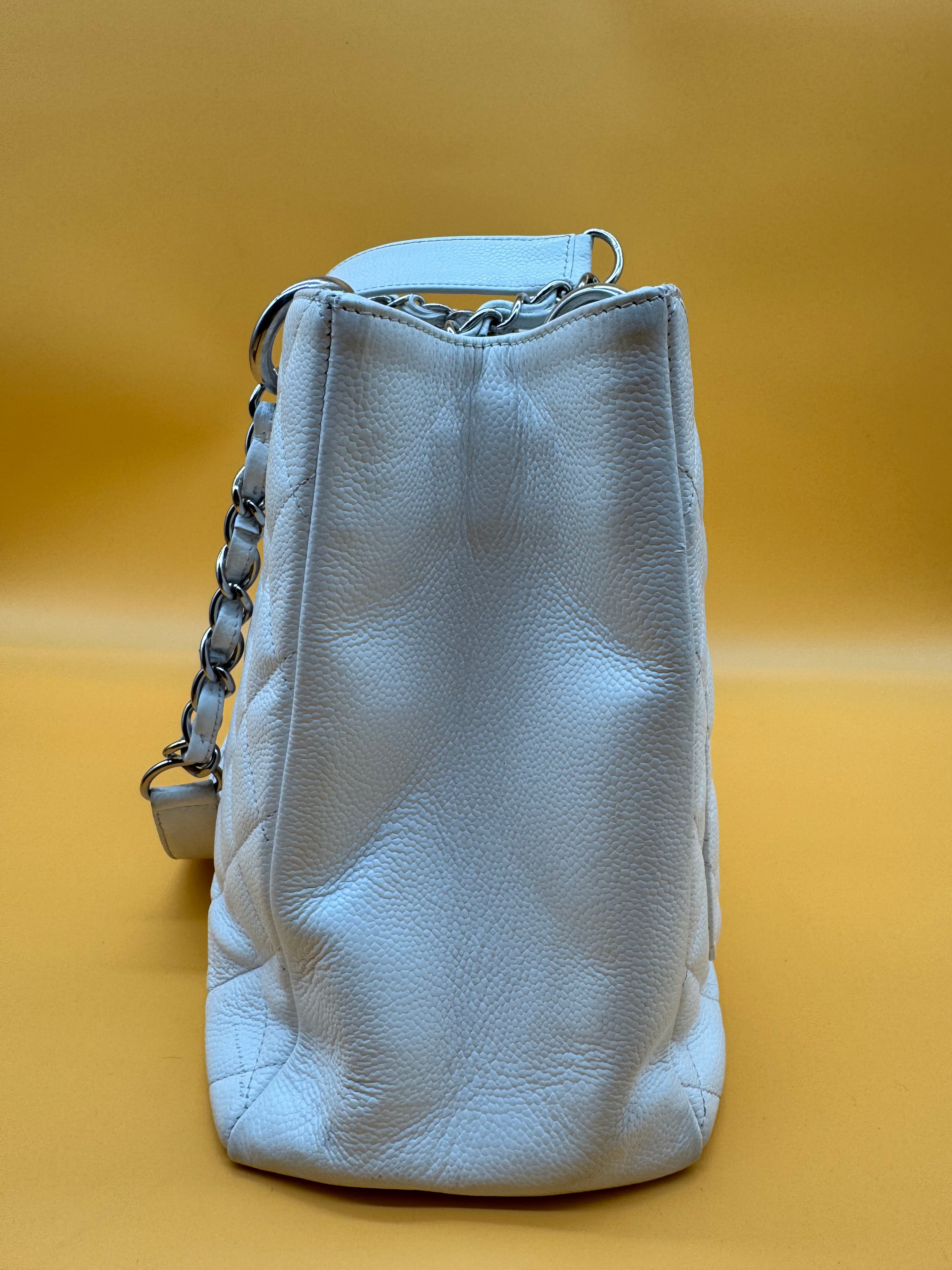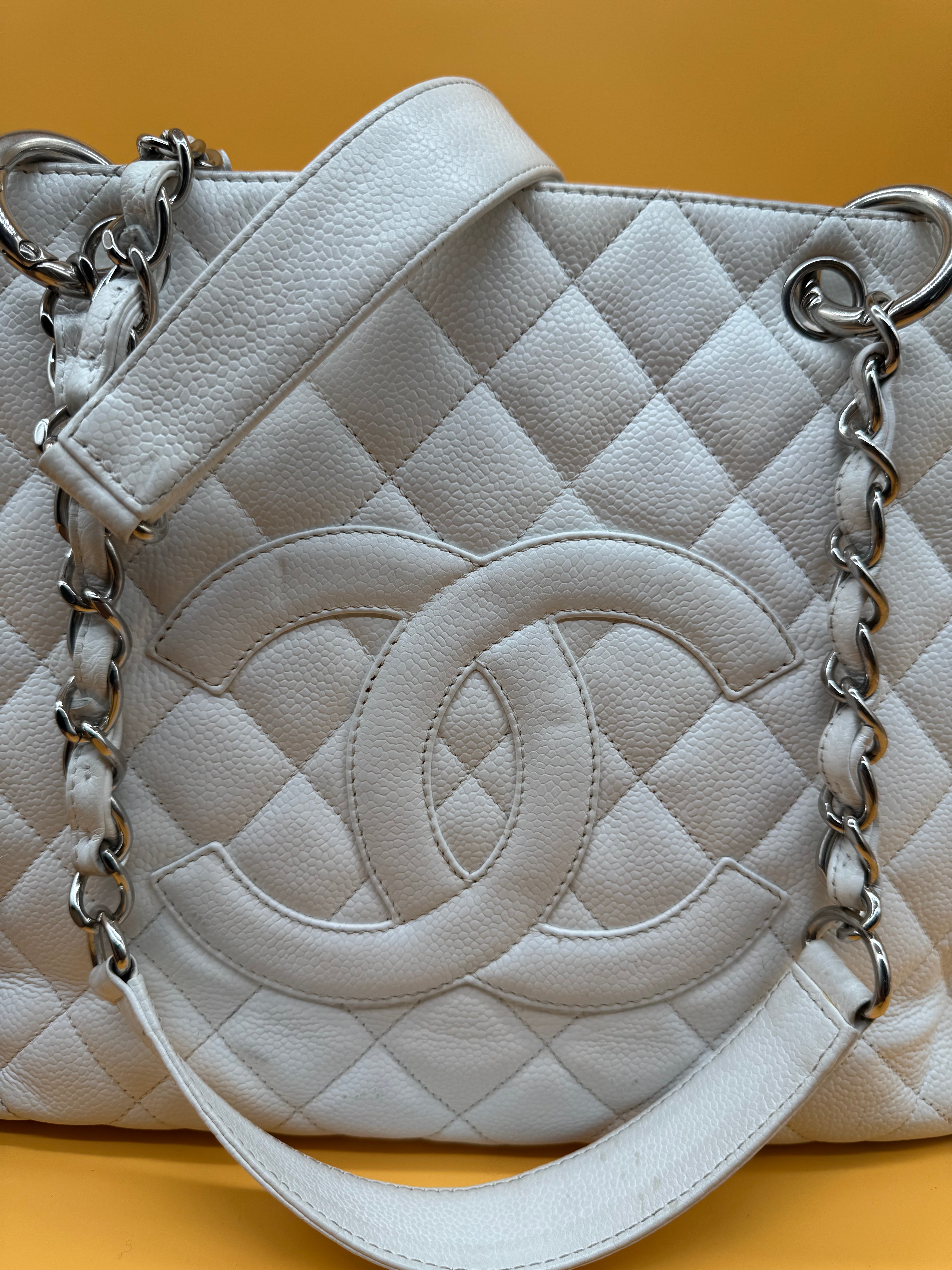 Chanel gst tote still in a good vintage condition. Colour:white Strap type:shoulder strap Hardware:silver White fabric interior. Some minor sign...
