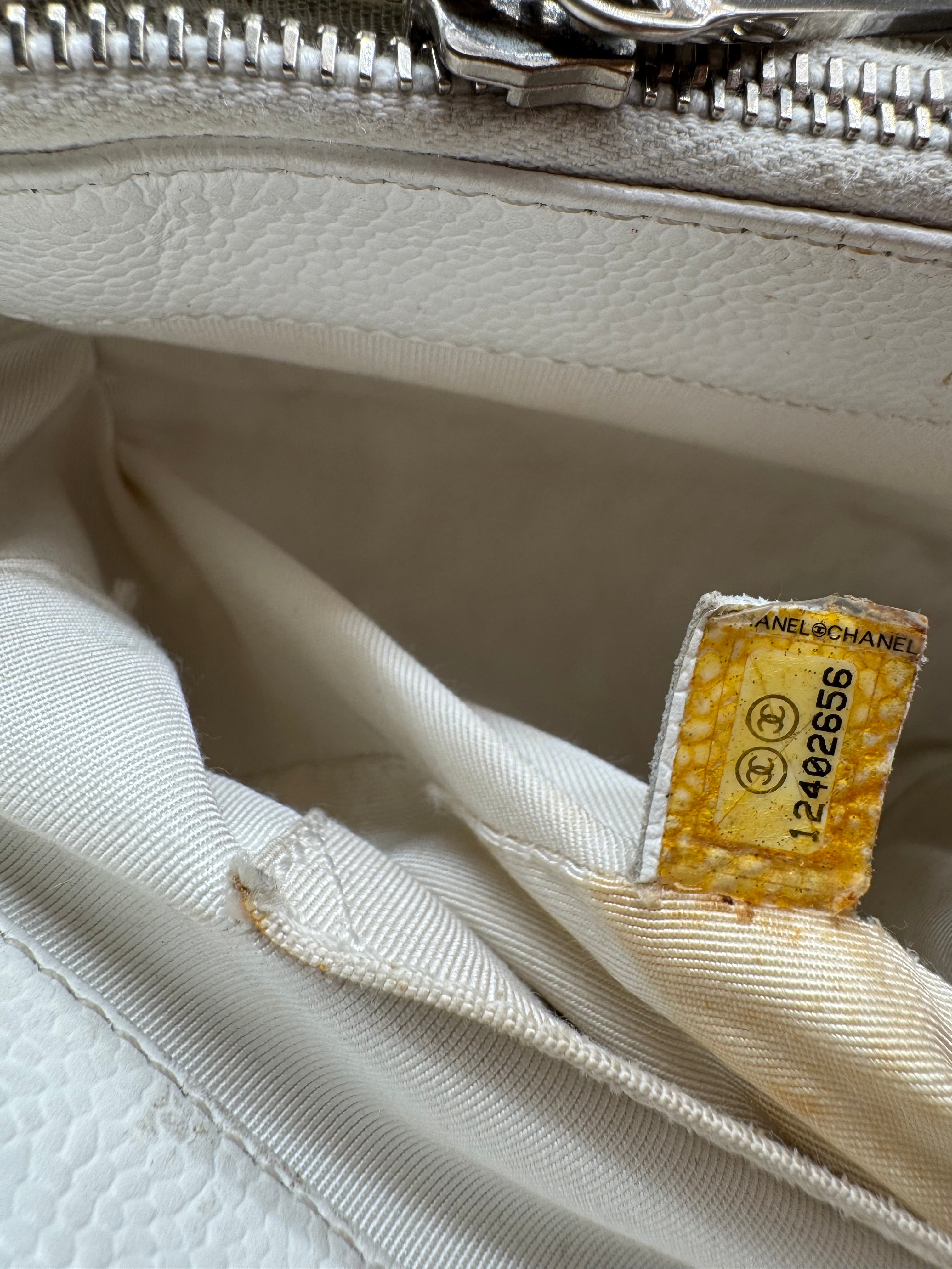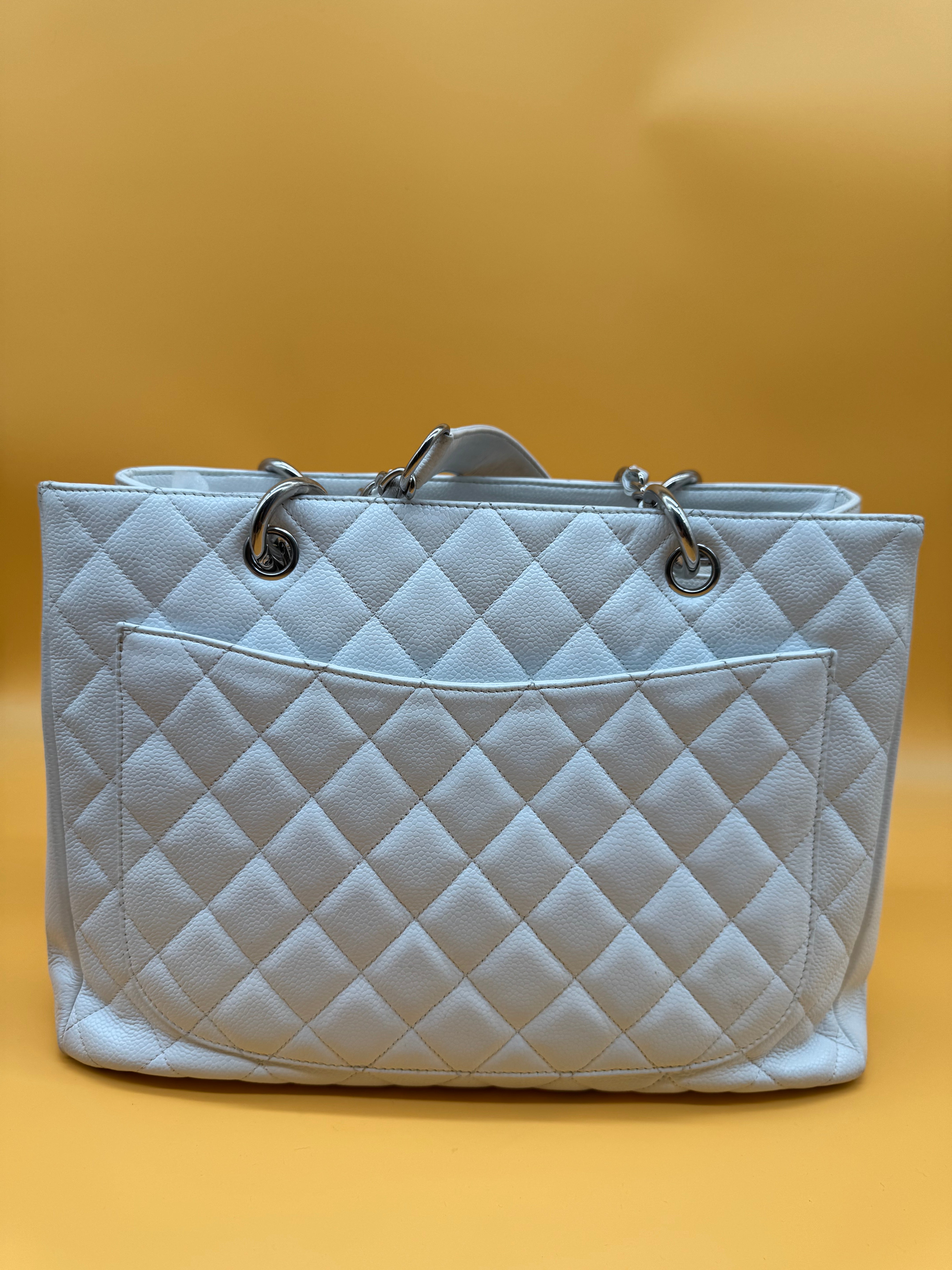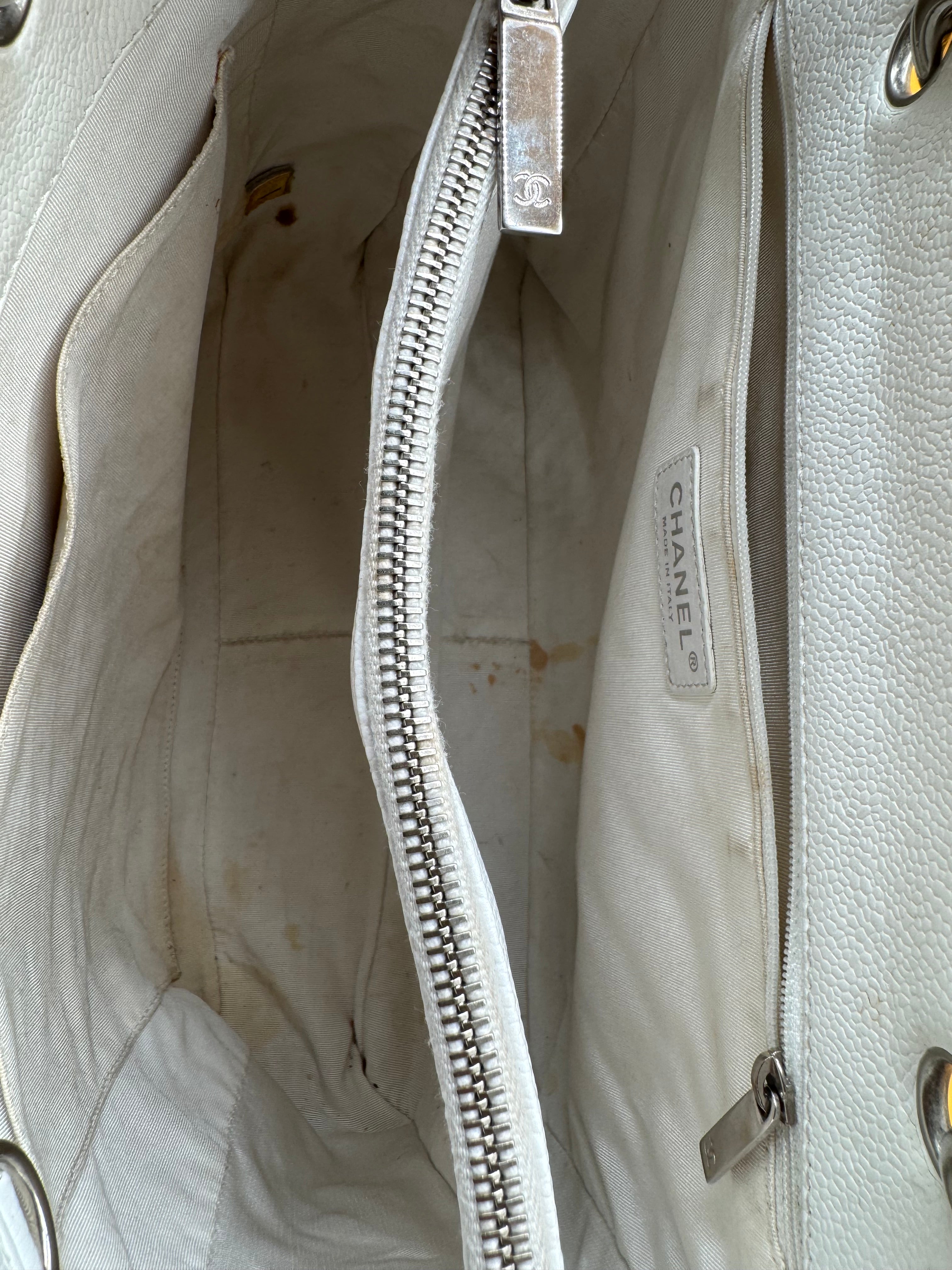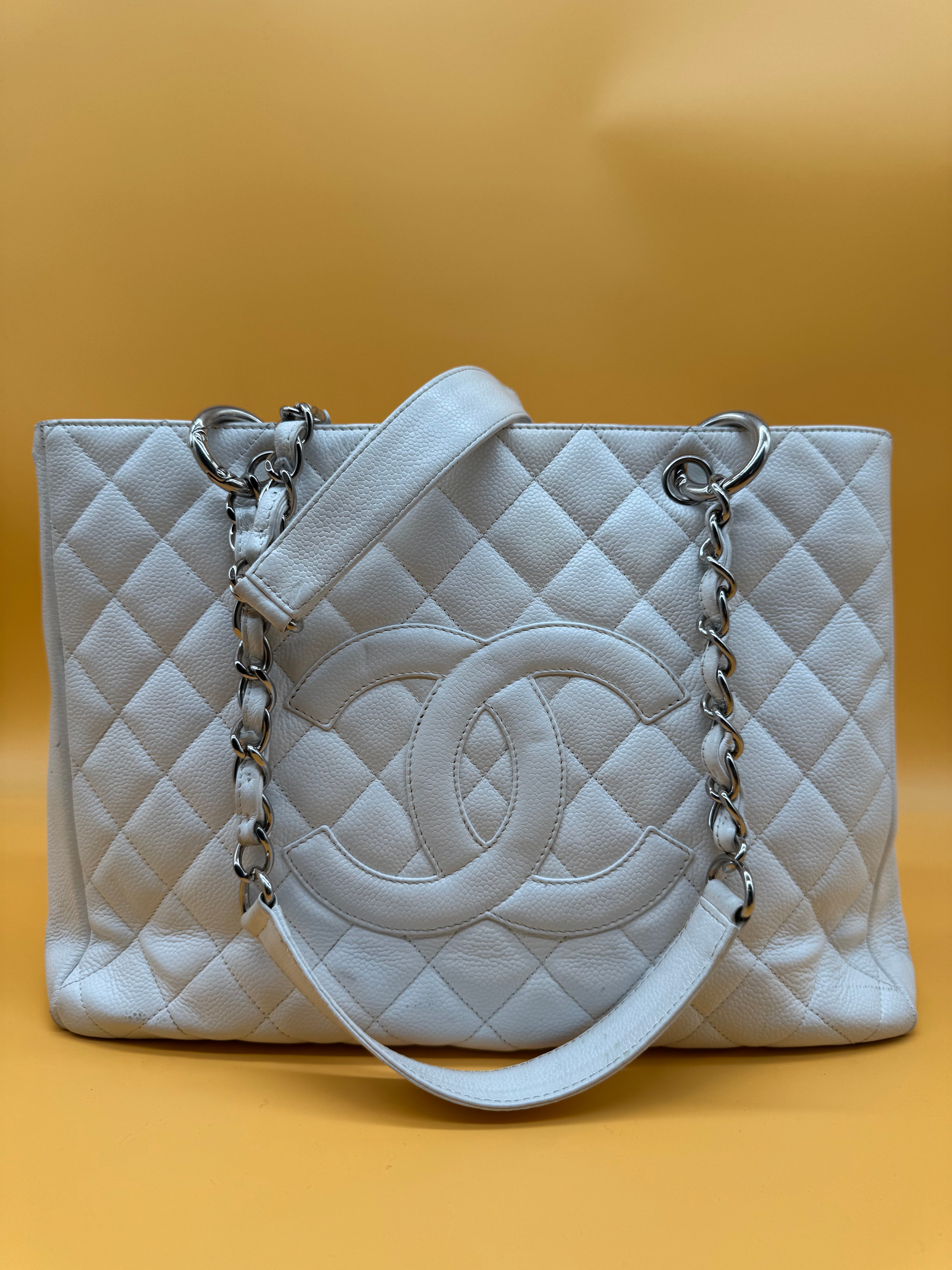 Chanel gst tote still in a good vintage condition. Colour:white Strap type:shoulder strap Hardware:silver White fabric interior. Some minor sign...