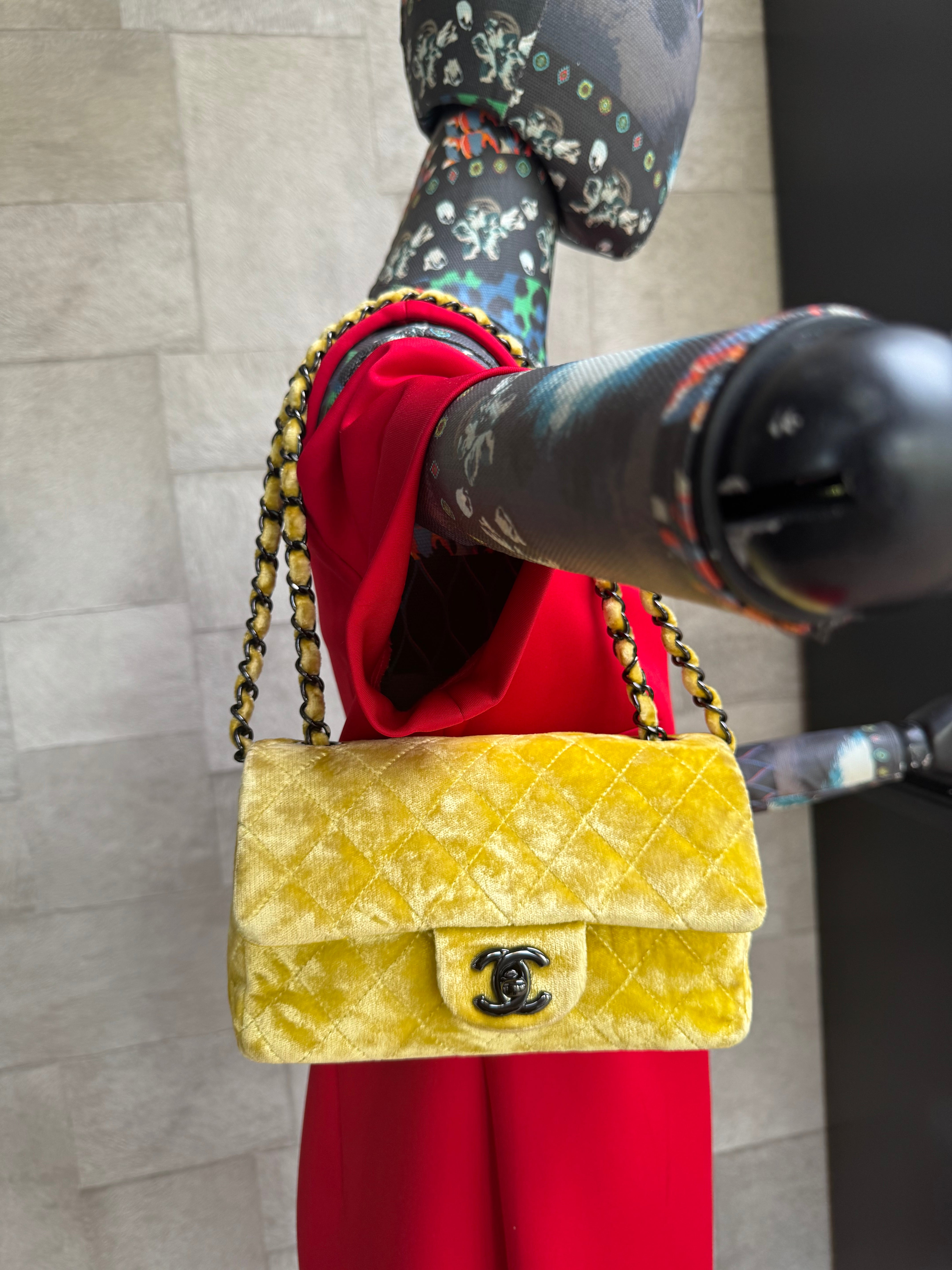 Product form Chanel classique/timeless velvet crossbody bag €3.000,00Incl. VAT Very Good condition Velvet Chanel timeless classic flap bag. This beautiful bag features a yellow velvet material. Bag is still... Read more Read more 1 in stock Show extra info for delivery time Add to cart This item is a recurring or deferred purchase. By continuing, I agree to the cancellation policy and authorize you to charge my payment method at the prices, frequency and dates listed on this page until my order is fulfilled or I cancel, if permitted. Shipped today? Order within: Nov 25, 2025 17:00:00 +0100 Reviews 0 reviews Share with your friends Share WhatsApp Deel Tweet Pin it Messenger Email