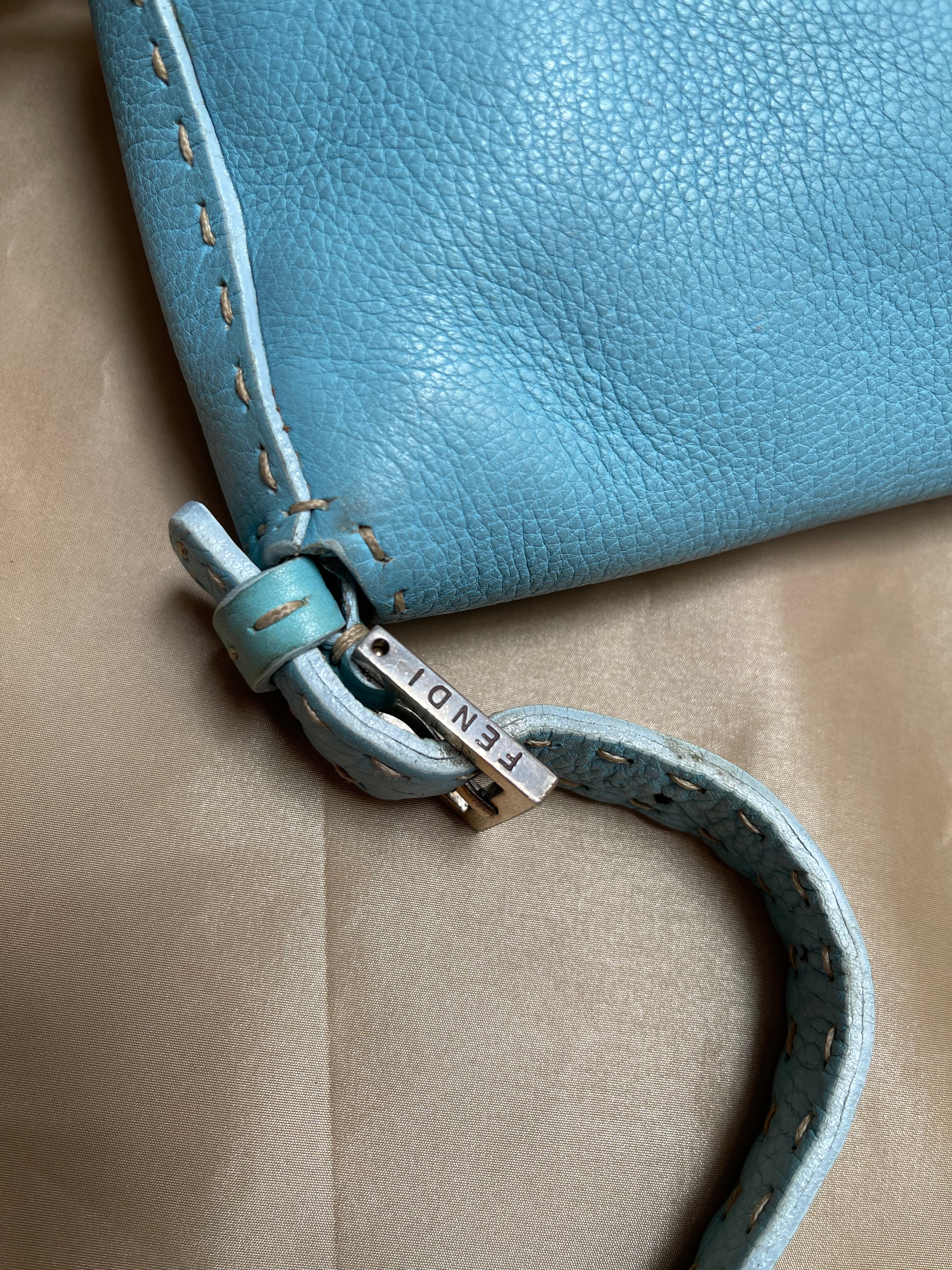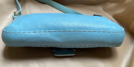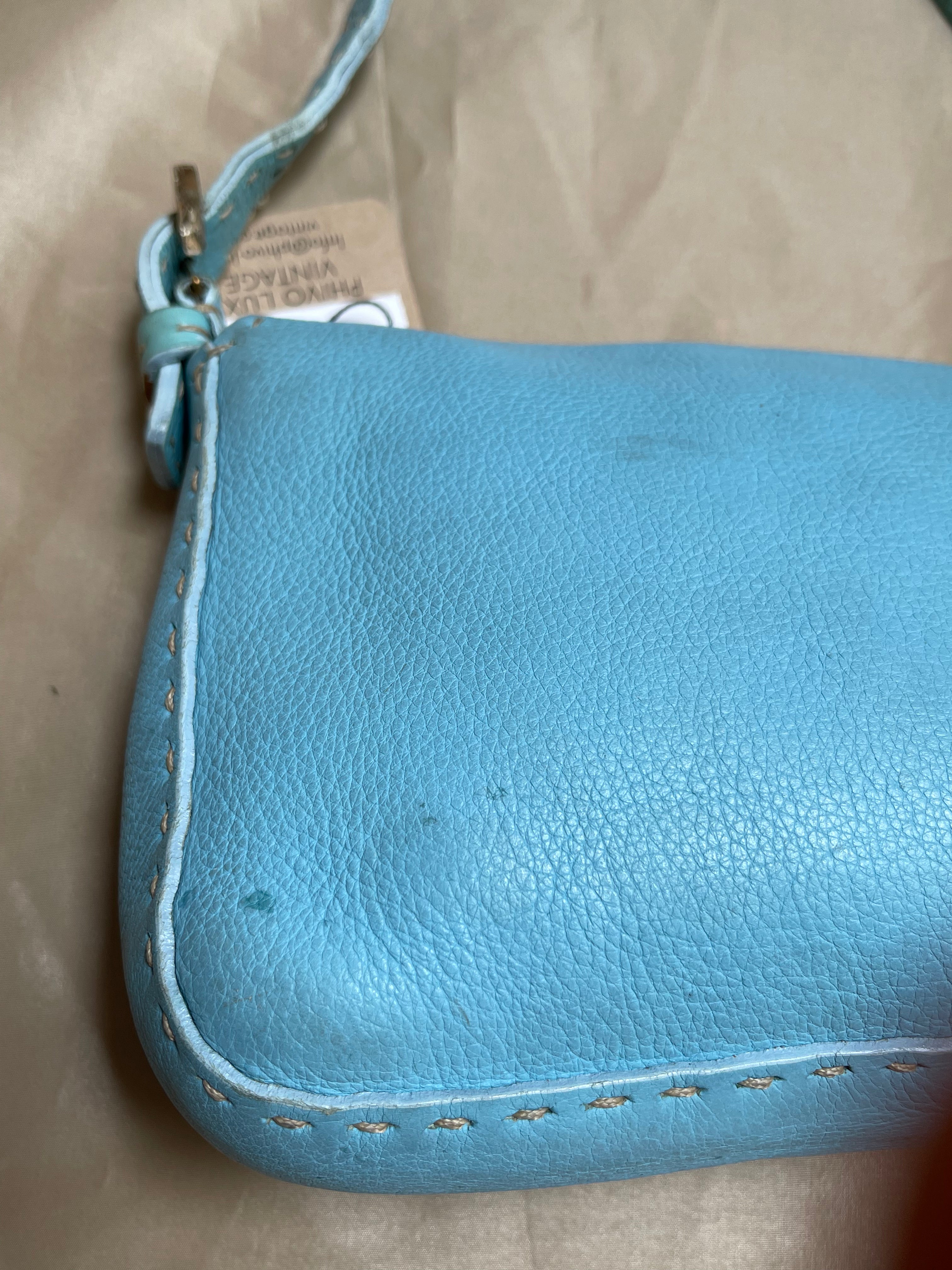 Fendi baguette leather bag. Colour:Blue type:shoulder bag Material:leather Condition:good condition Dimensions; width:26CM height:14CM comment: bag has some sign of previous...