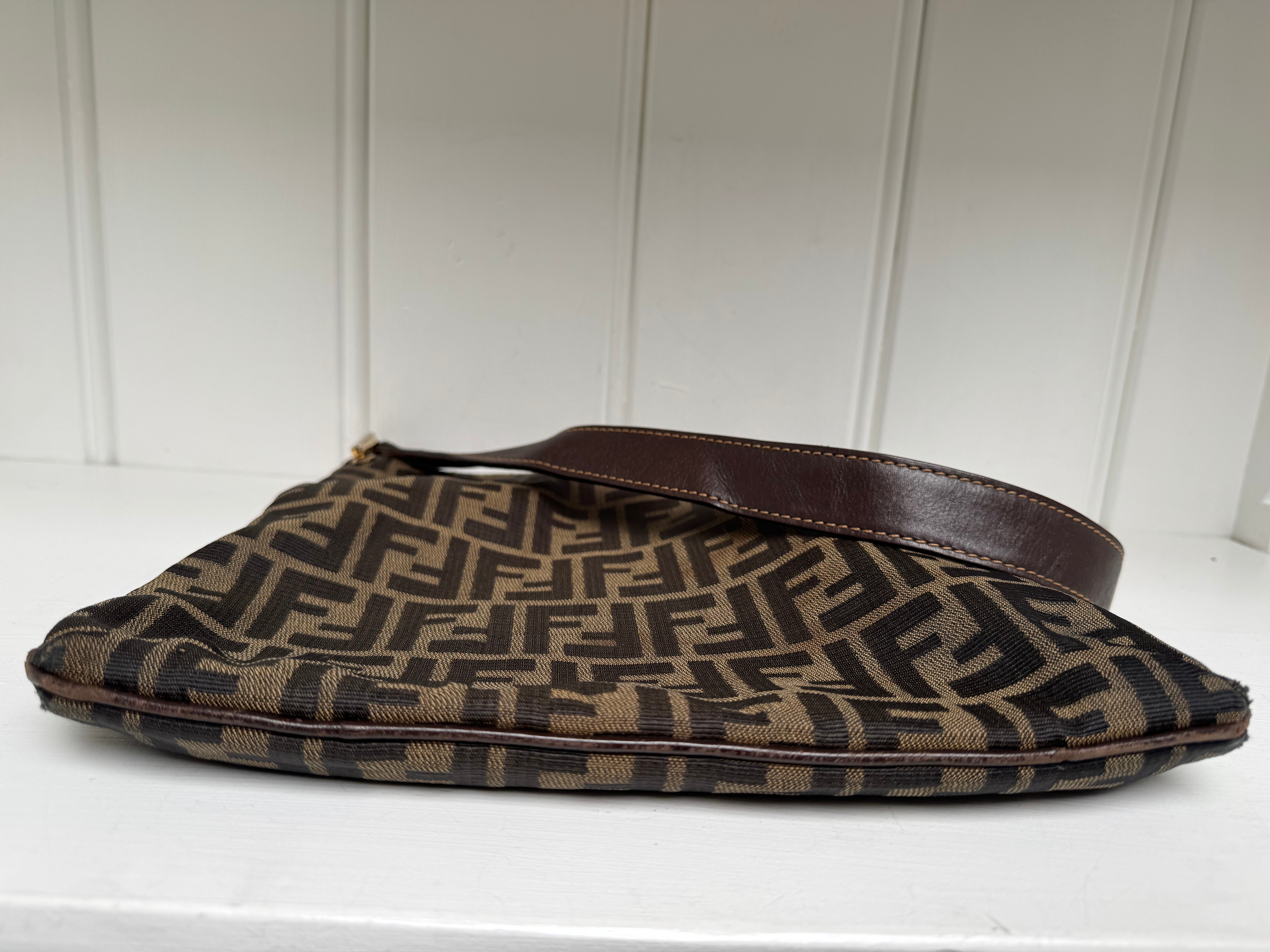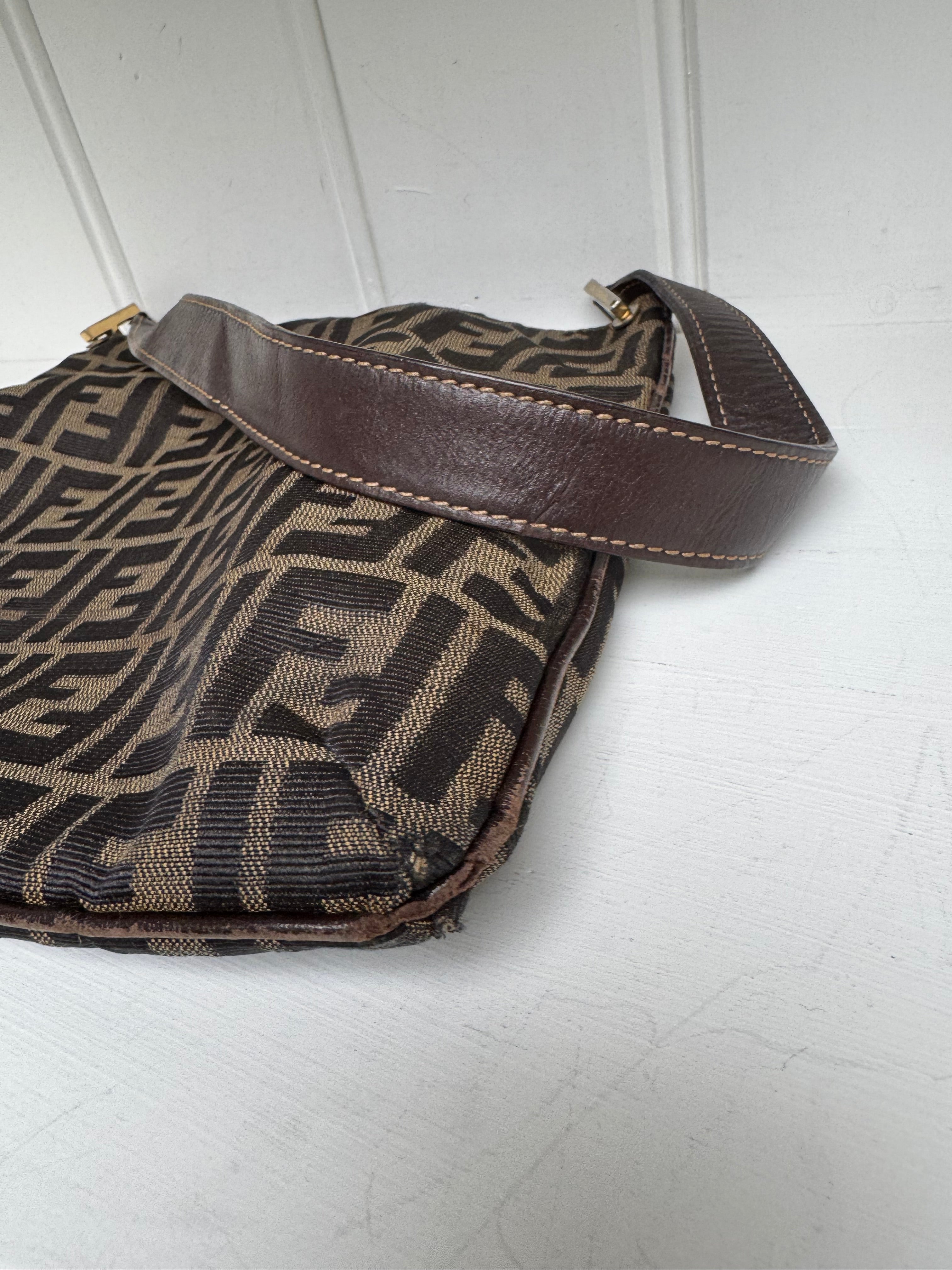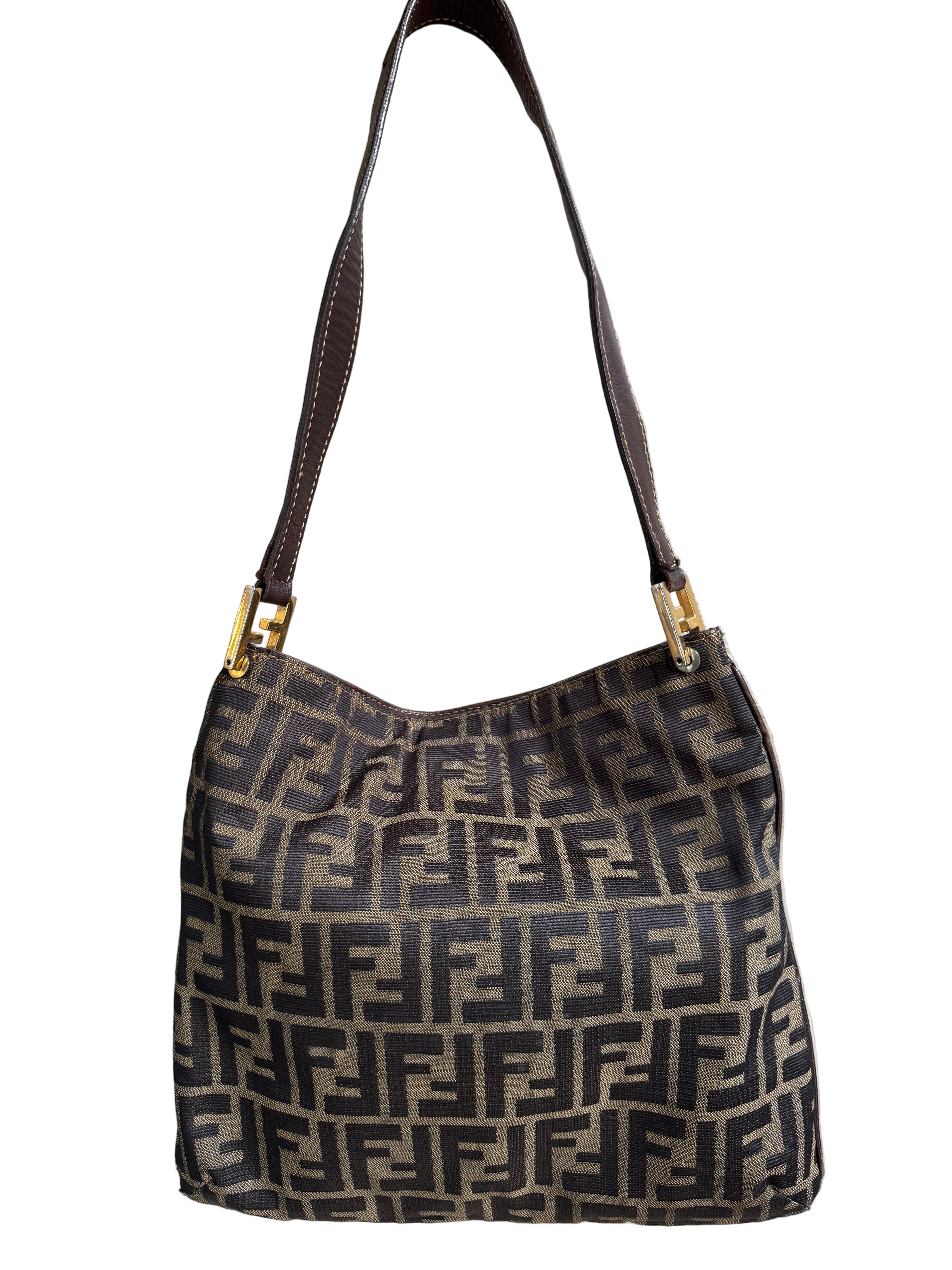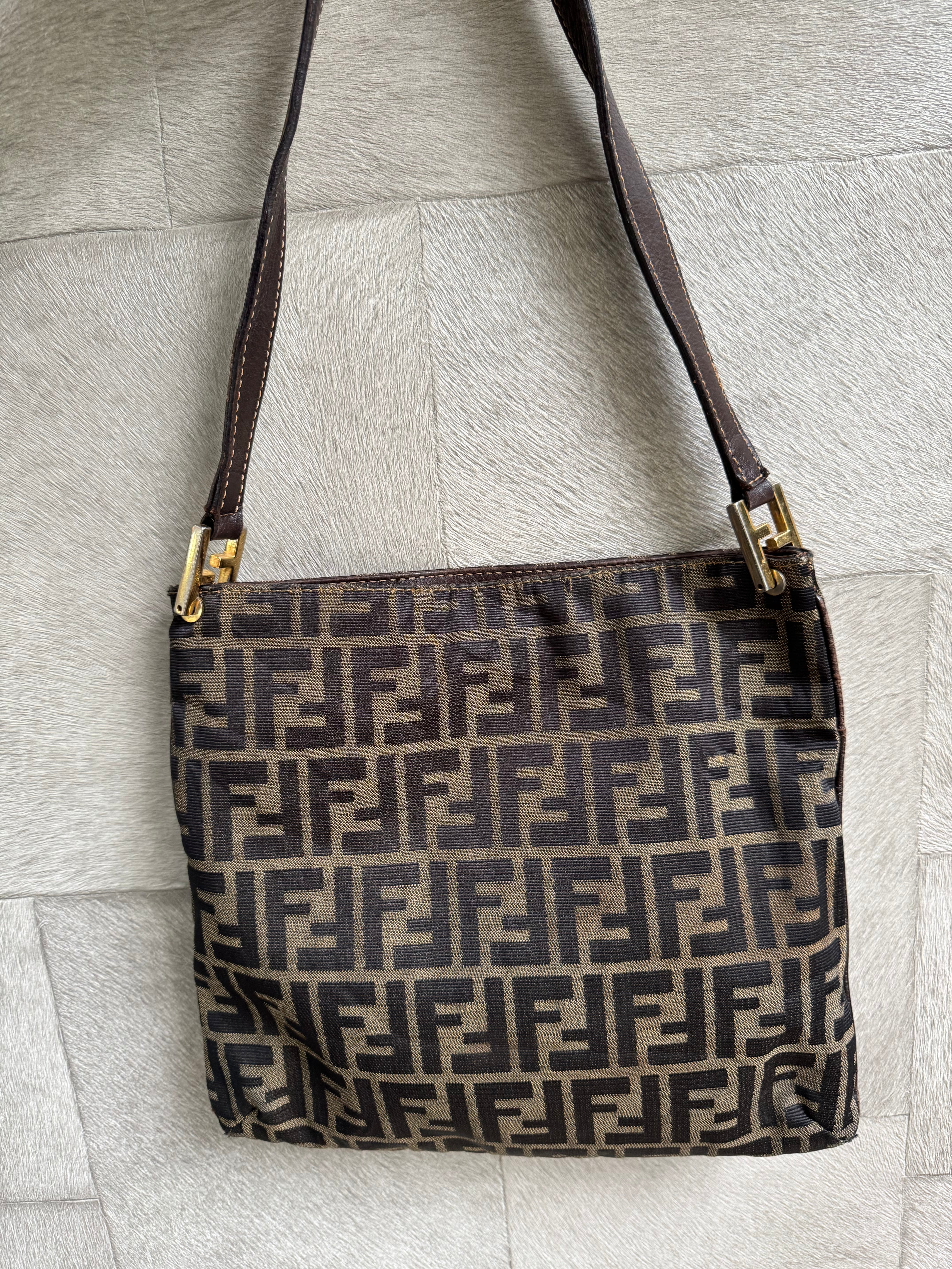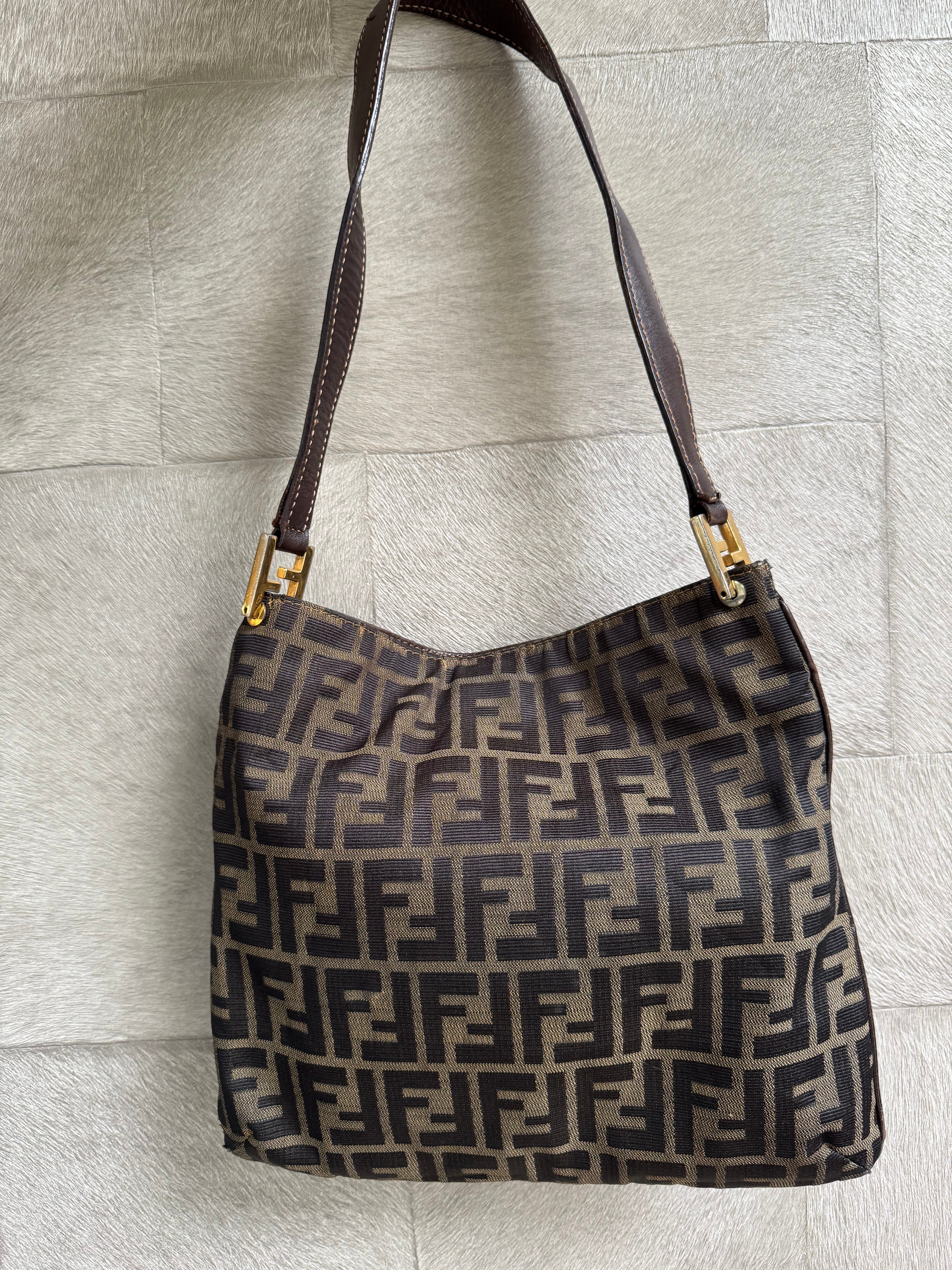 Brand:Fendi Model:FF monogram  Exterior material:cloth Exterior colour:brown Print:monogram  Interior material:cloth Closure: Hardware tone:gold Type:shoulder bag Accessories: Features: Serial number:present Condition:good... Read more Read more