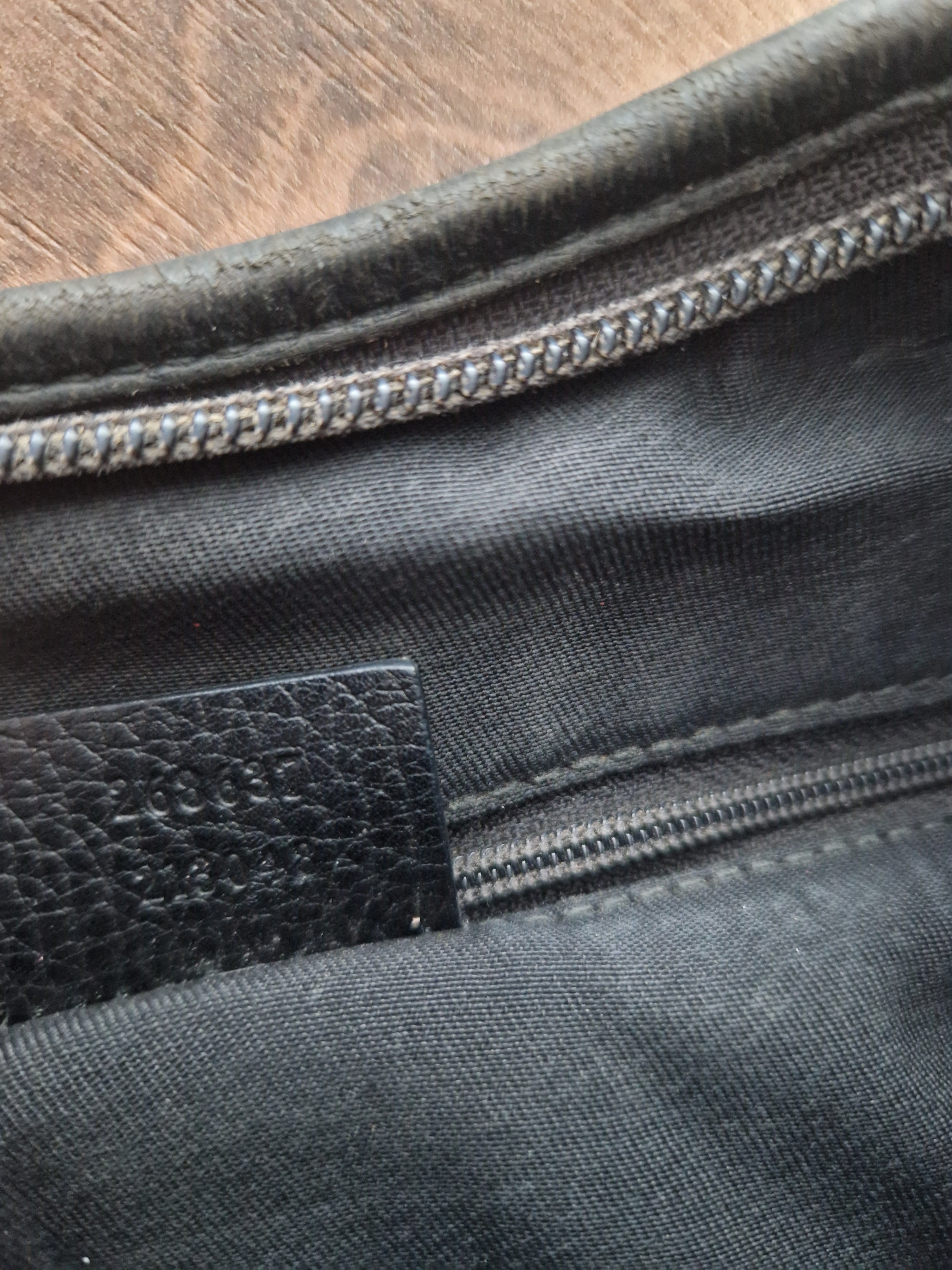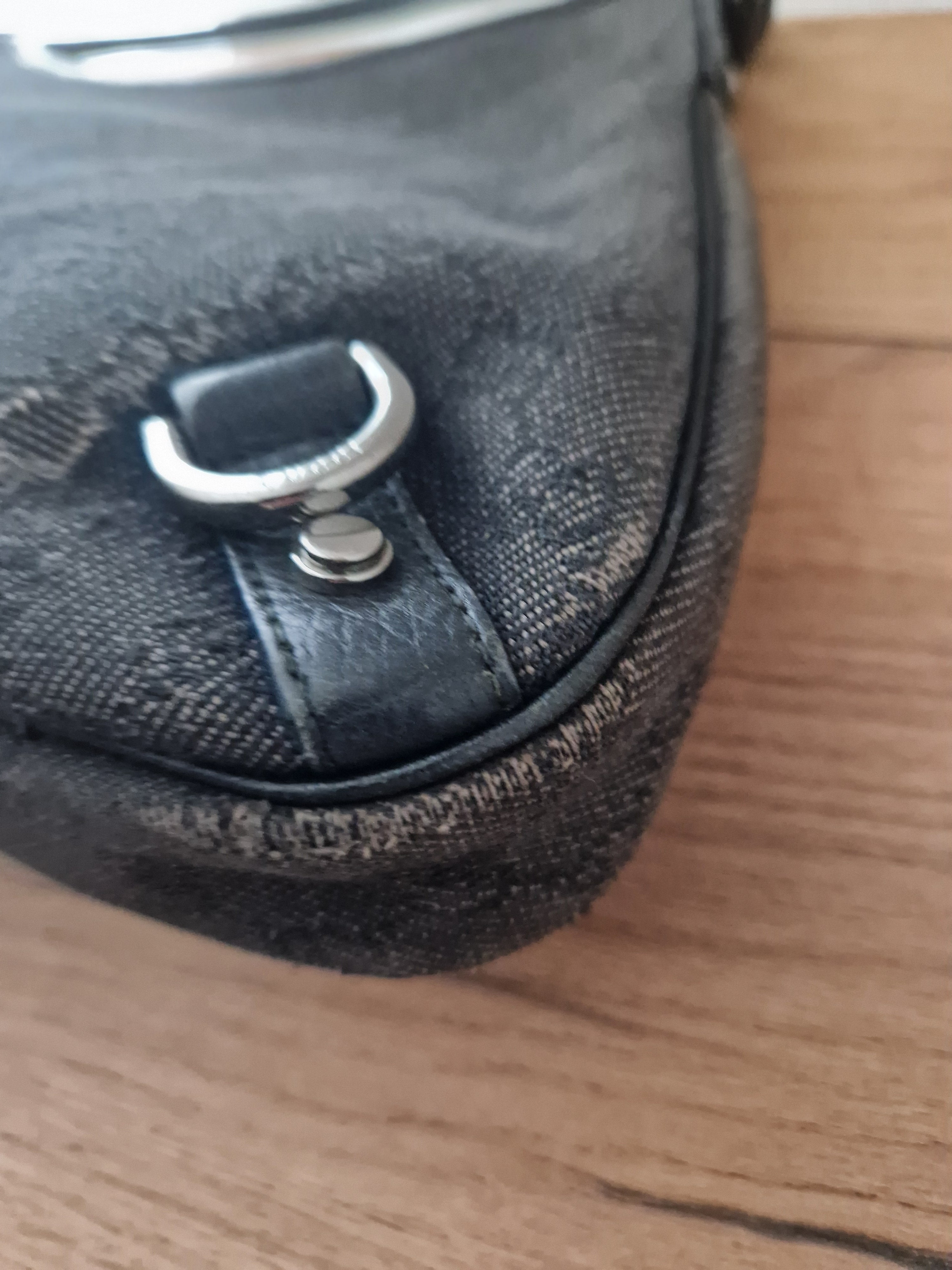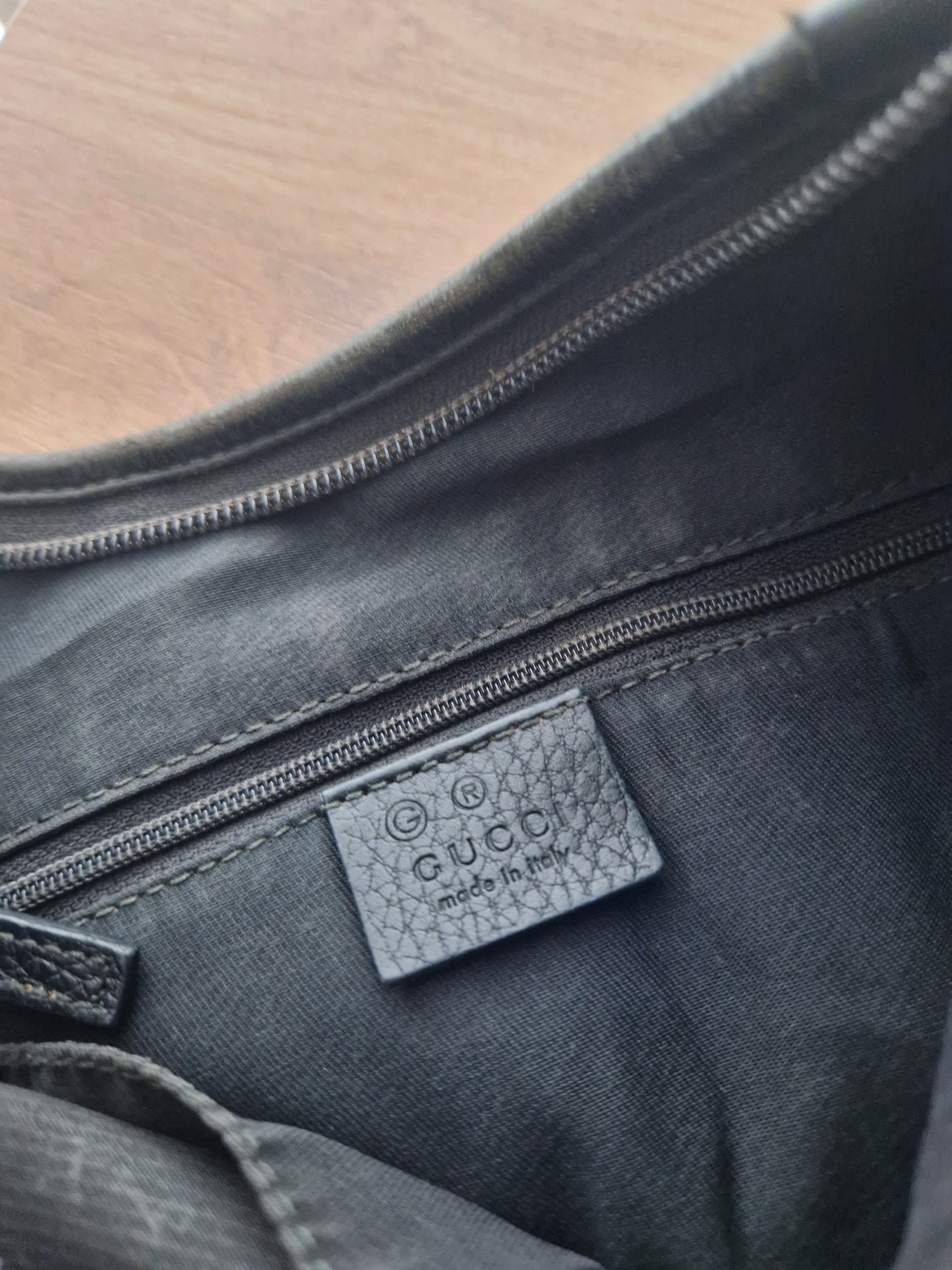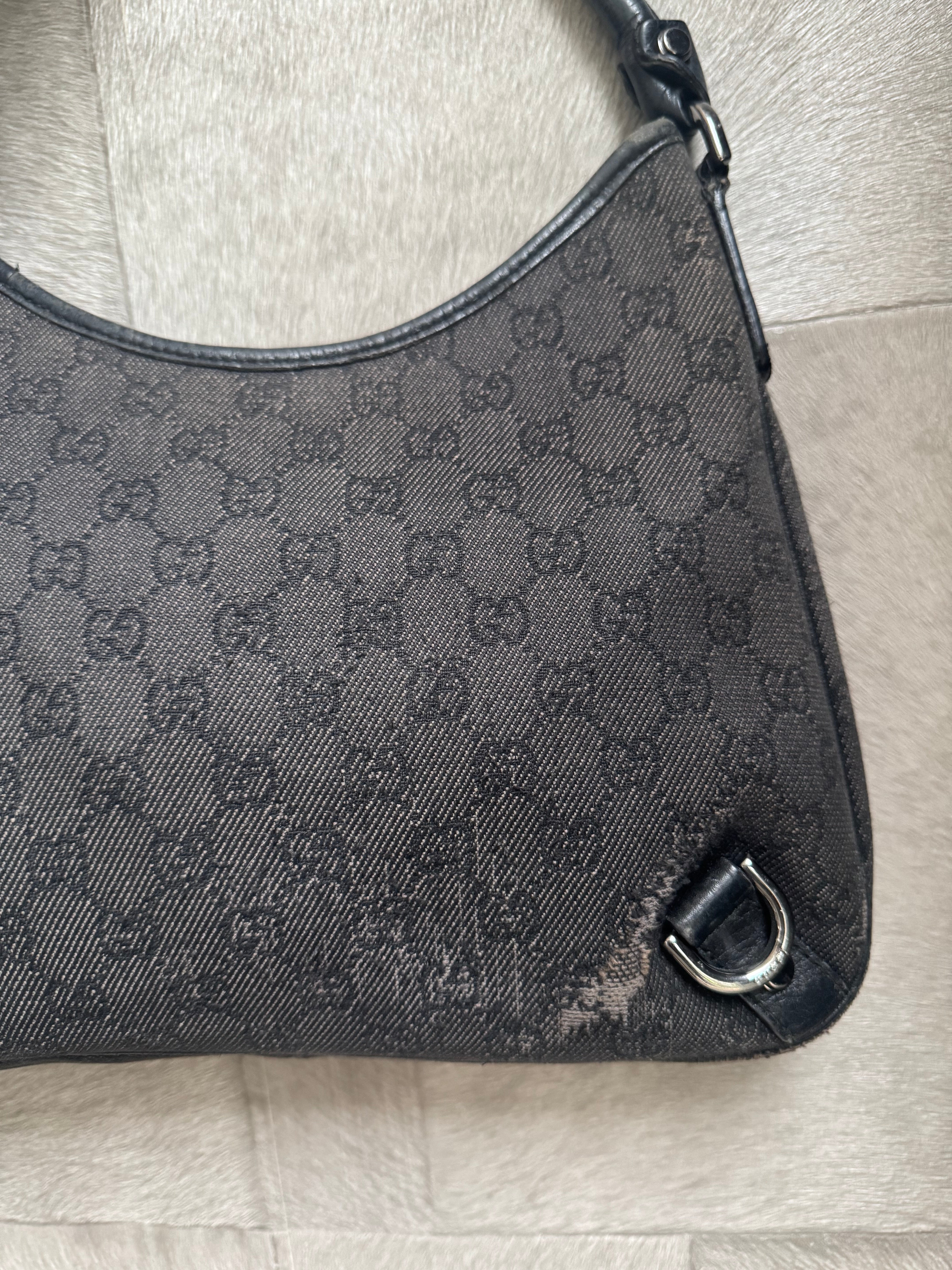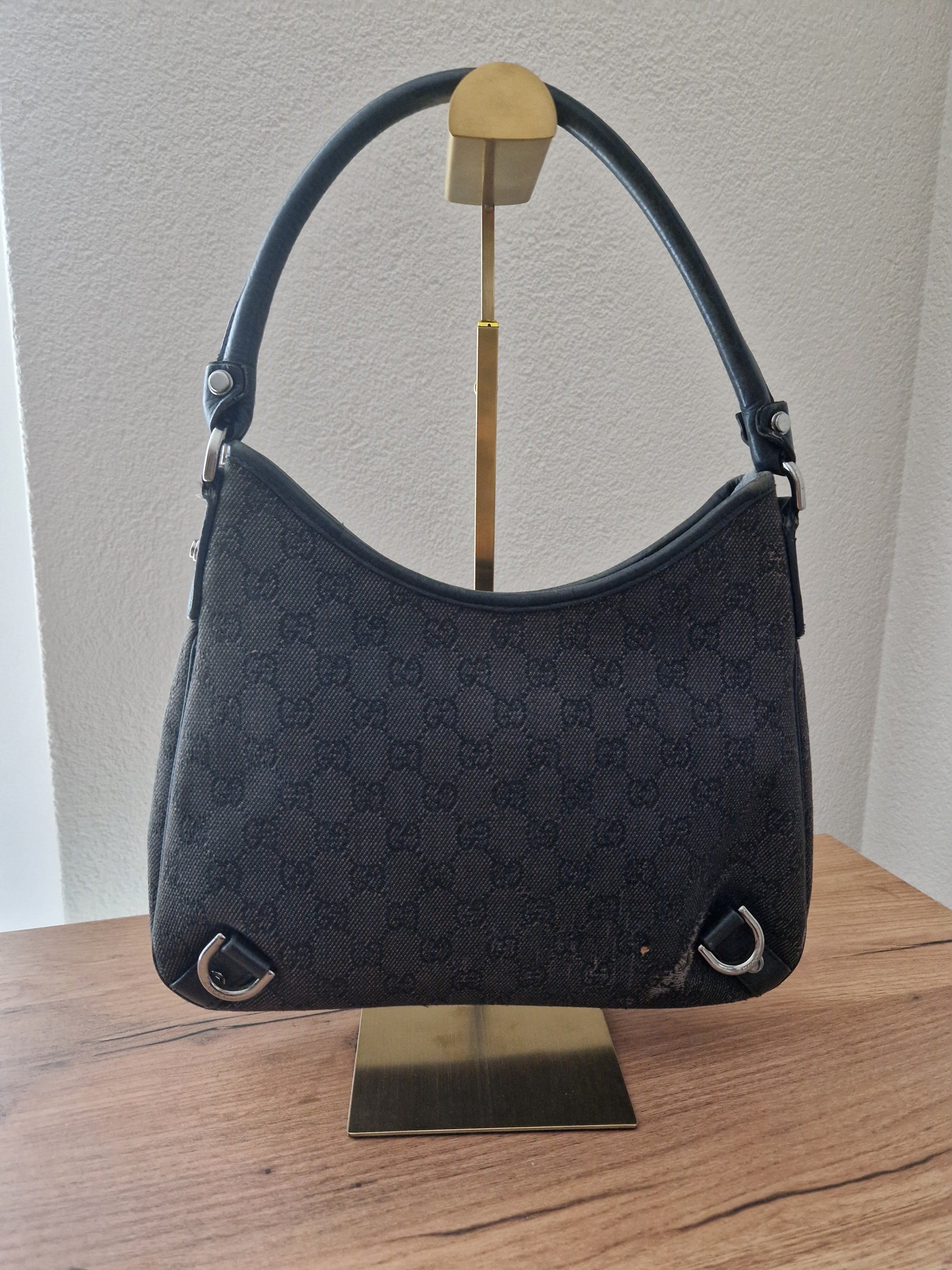 Authentic Gucci GG D ring denim hobo shoulder bag crafted in grey/black monogram canvas with black leather trim and silver-tone... Read more Read more