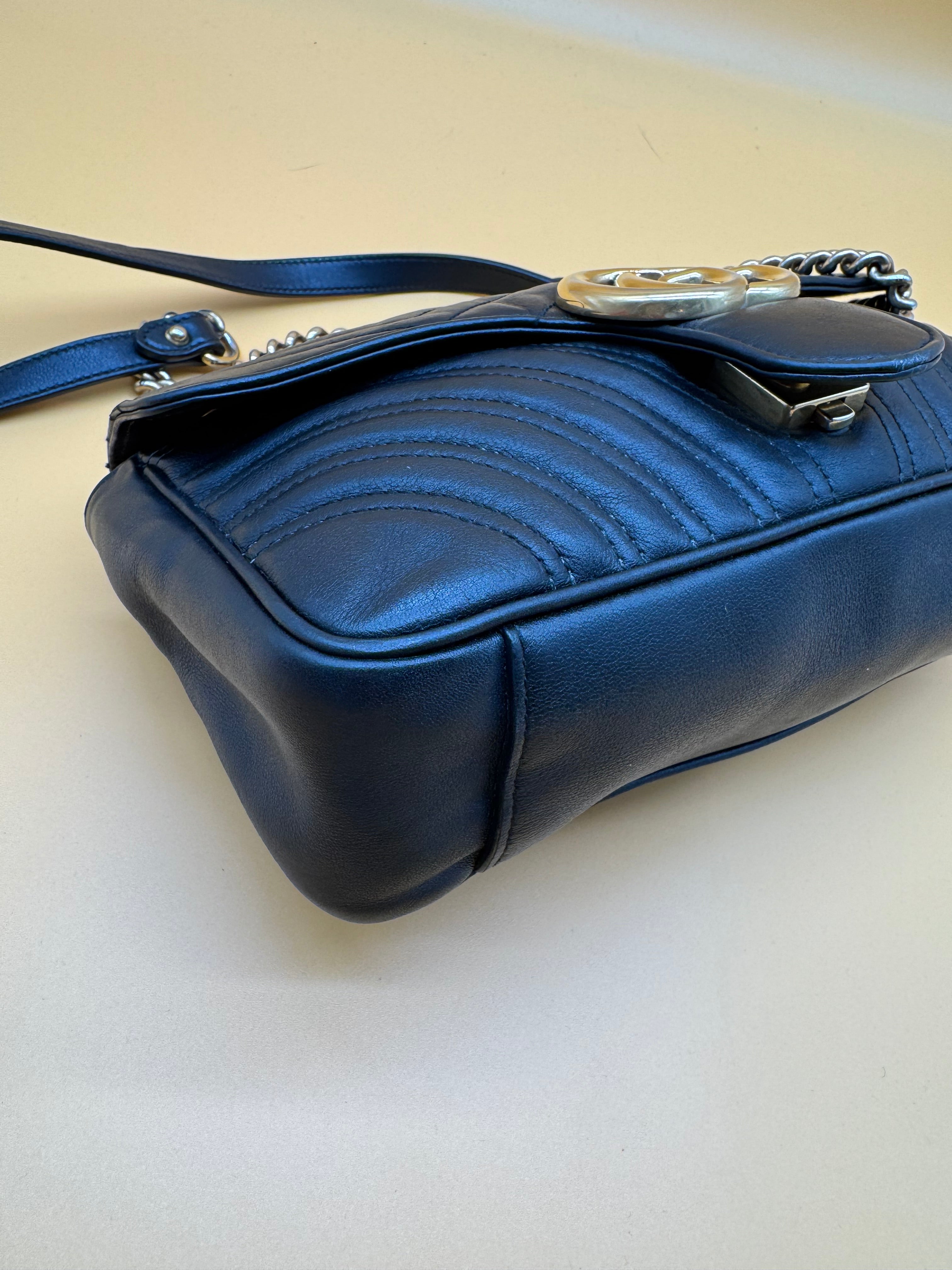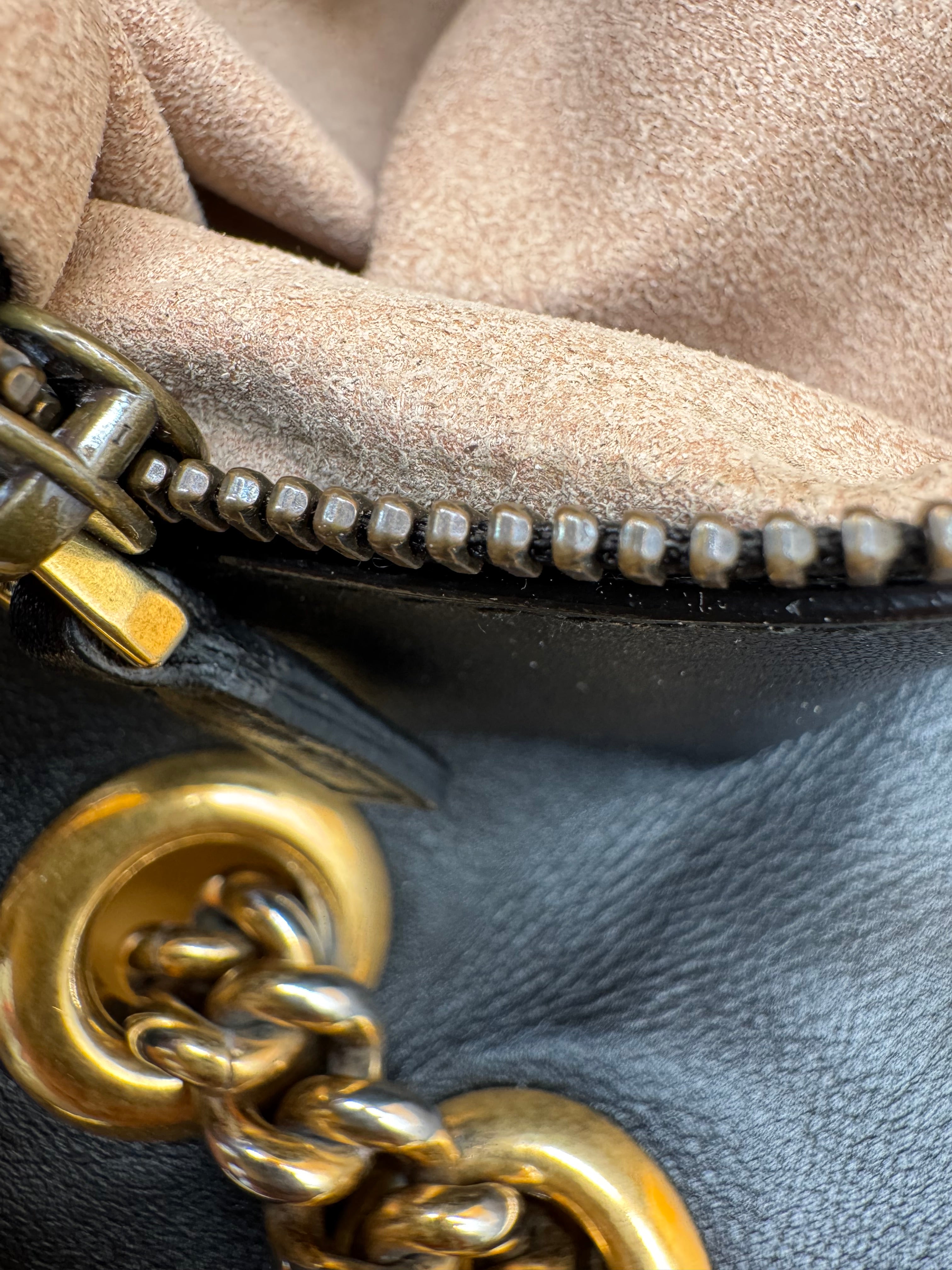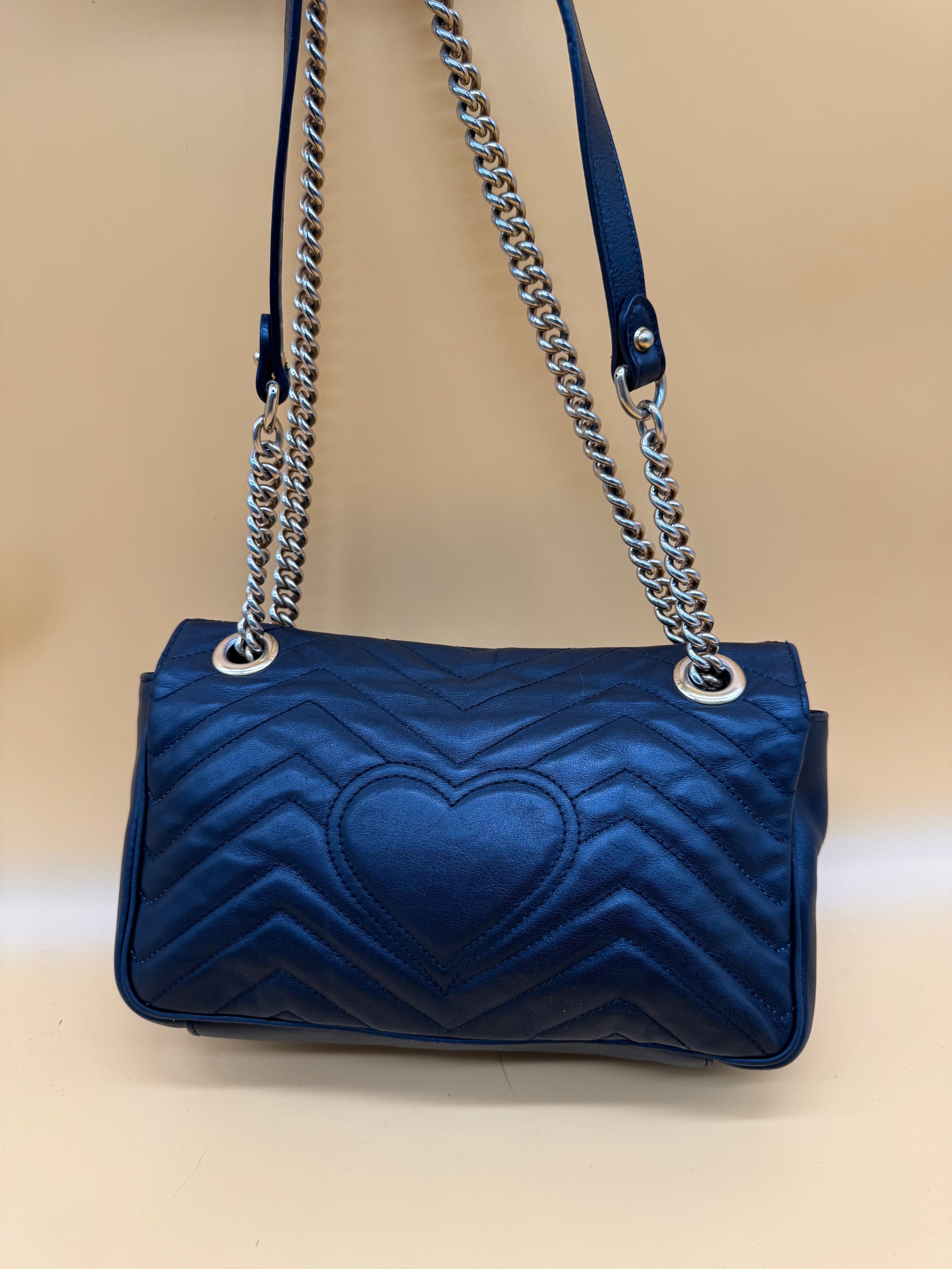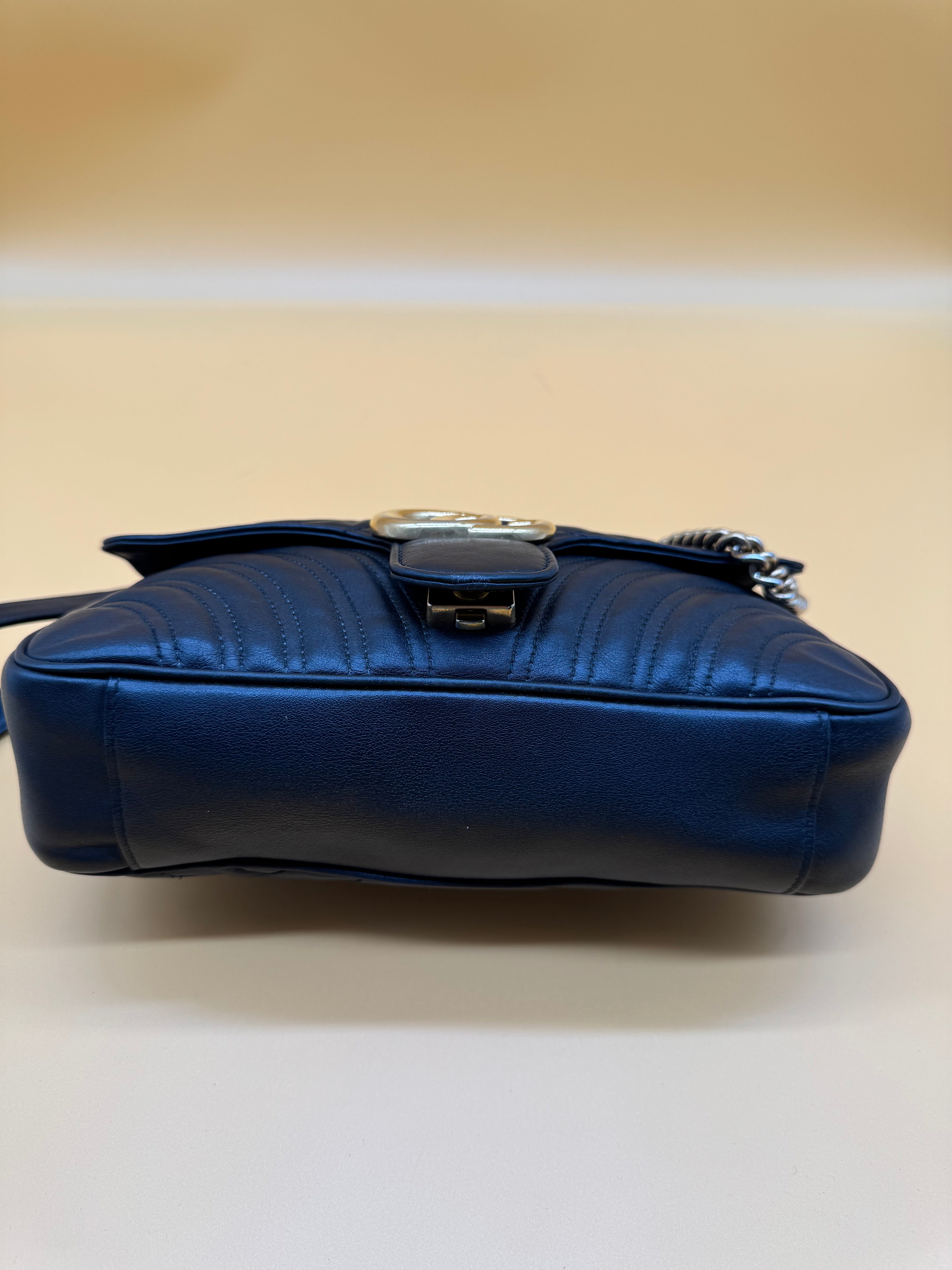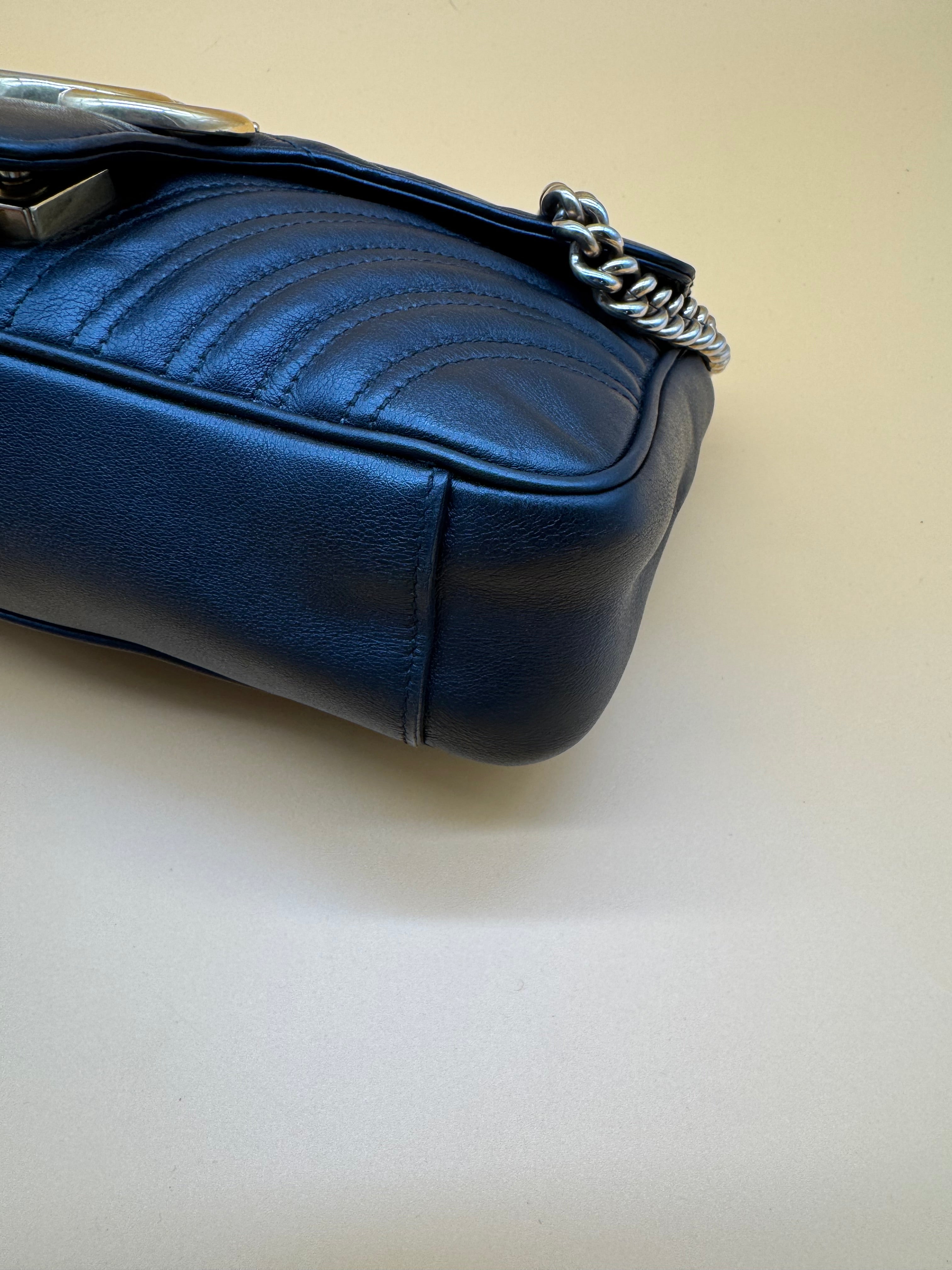 Brand:Gucci Model:GG Exterior material:leather Exterior colour:black Print:plain Interior material:leather Closure:flap Hardware tone:gold Type:Crossbody Accessories: Features: Serial number:present Condition:good Dimension; Height:26CM...