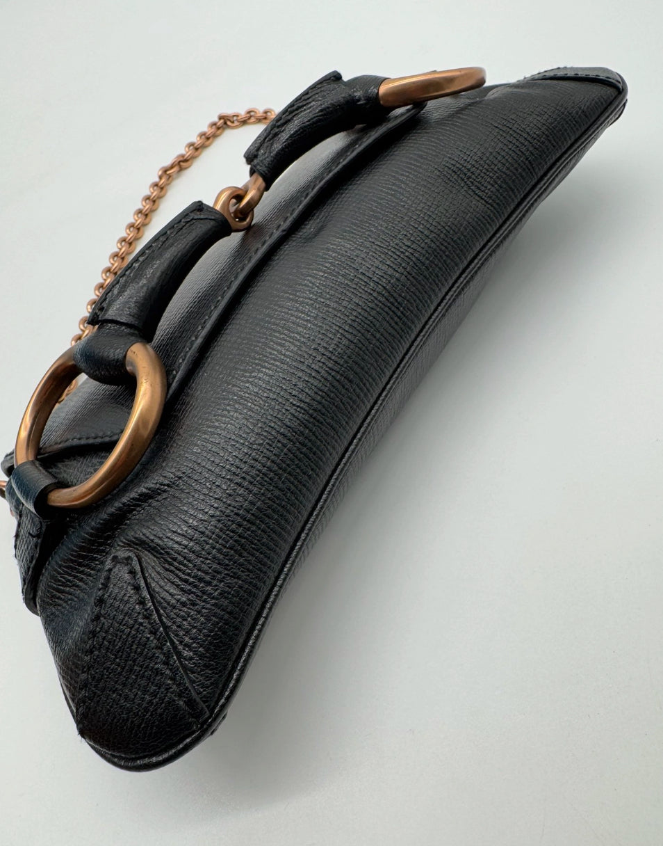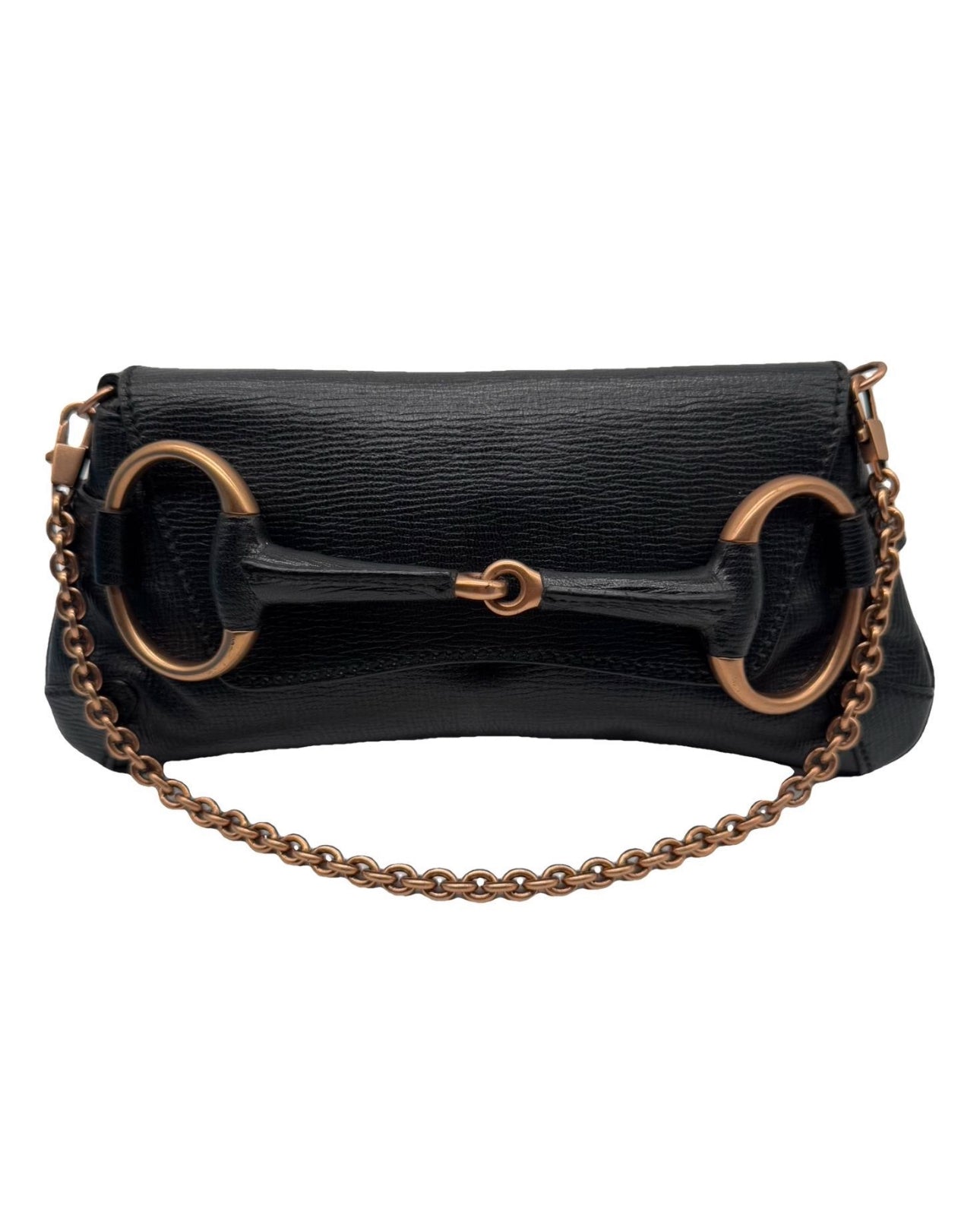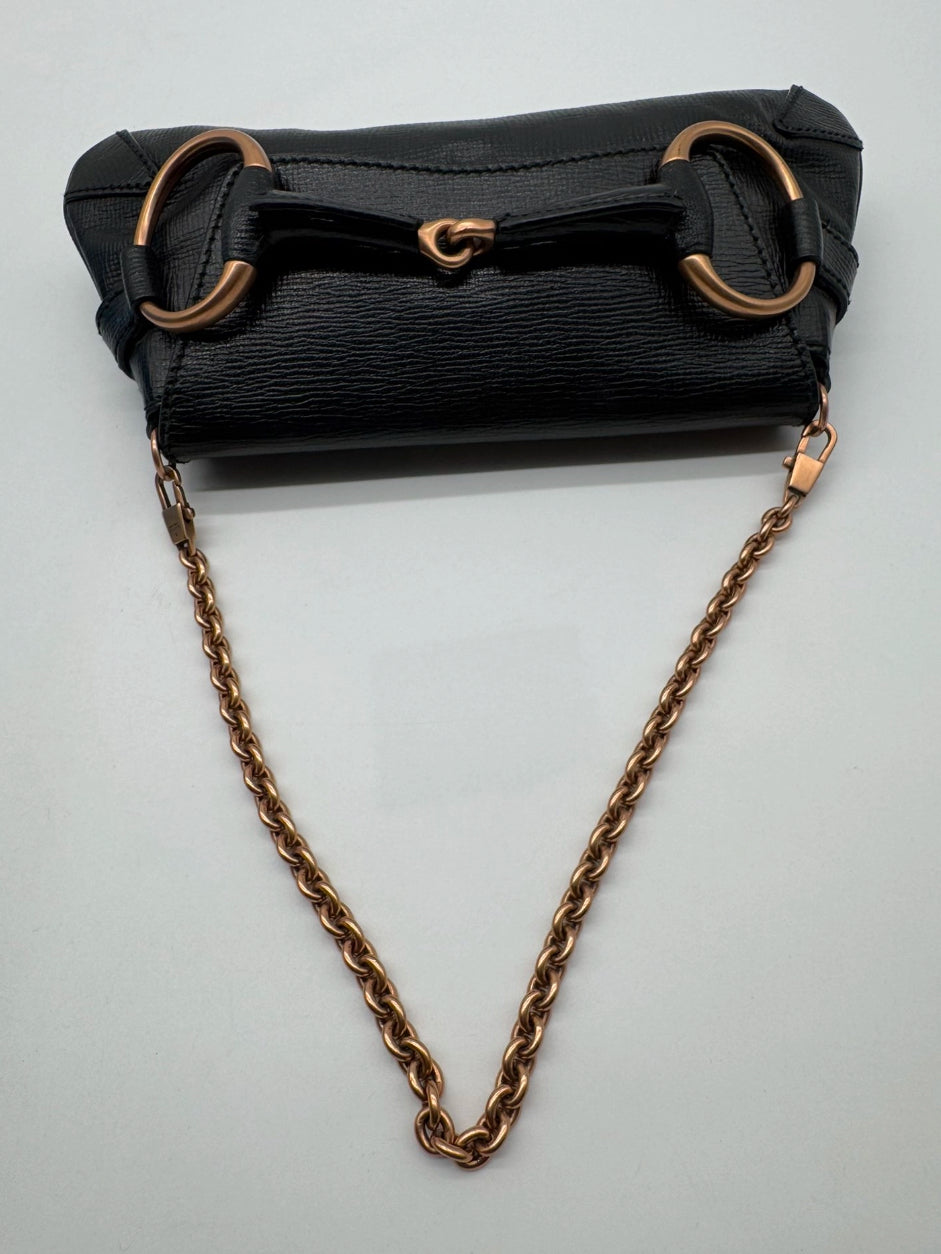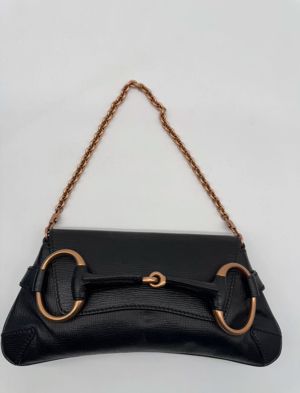 Brand:Gucci Model:horse bit Exterior material:leather Exterior colour:black Print:plain Interior material:fabric Closure:flap Hardware tone:gold Type:shoulder bag Accessories: Features: Serial number:present Condition:good...
