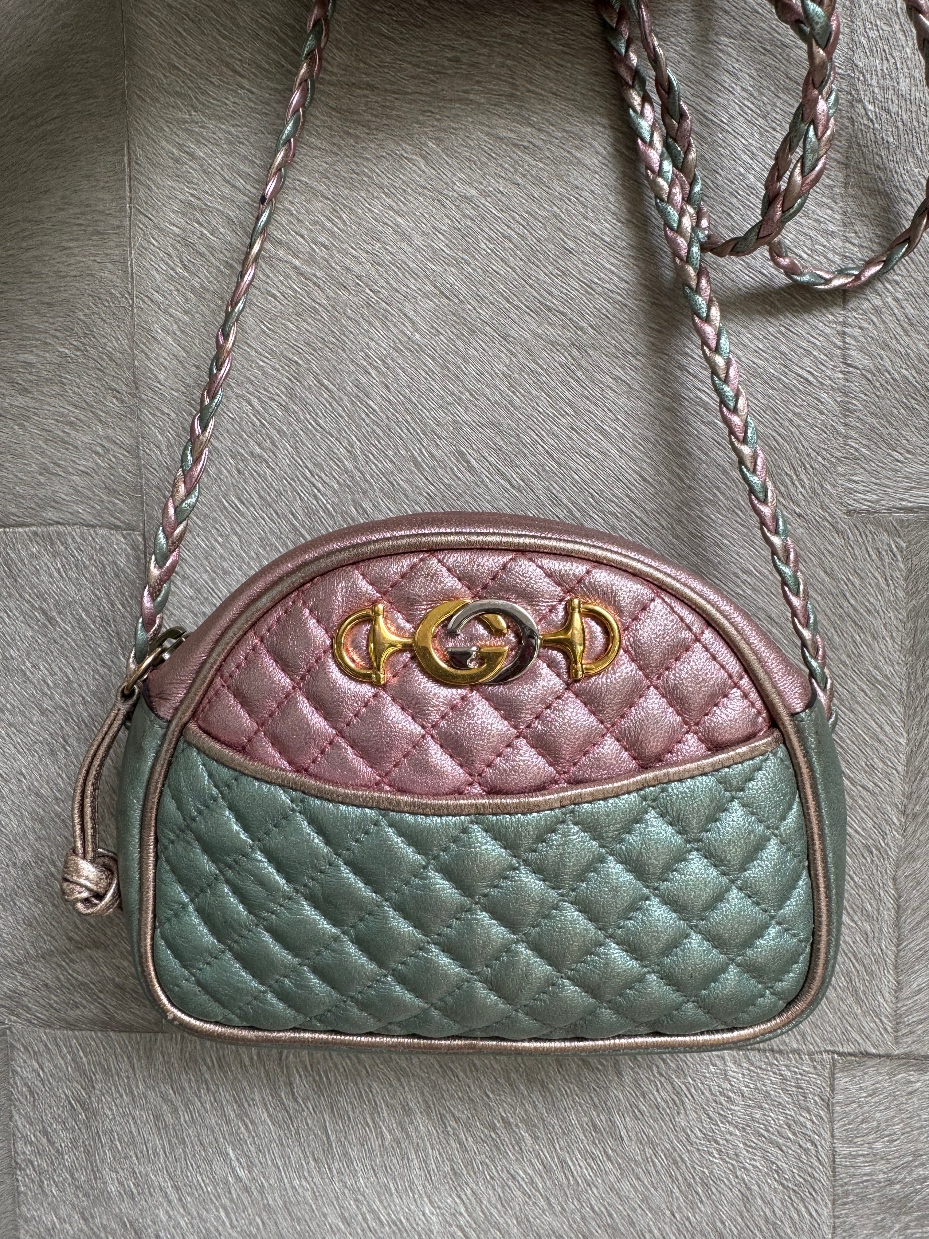 Brand:Gucci Model:laminate crossbody bag Exterior material:leather Exterior colour:multi Print:plain Interior material:fabric Closure:zip Hardware tone:gold Type:crossbody  Accessories: Features: Serial number:present Condition:very... Read more Read more