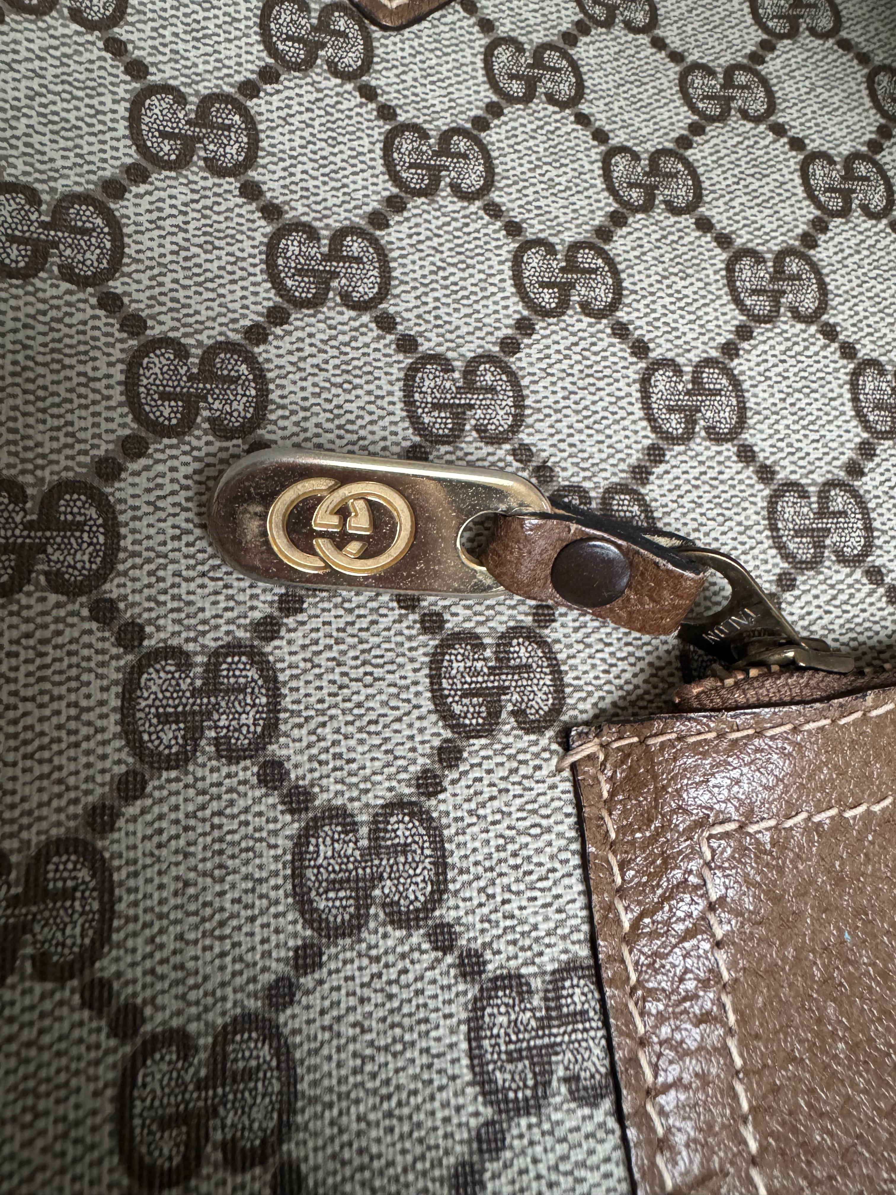 Brand:Gucci Model:tote Exterior material:canvas Exterior colour:multi Print:monogram Interior material:fabric Closure: Hardware tone:gold Type:shoulder bag Accessories: Features: Serial number:vintage Condition:good Dimension;...