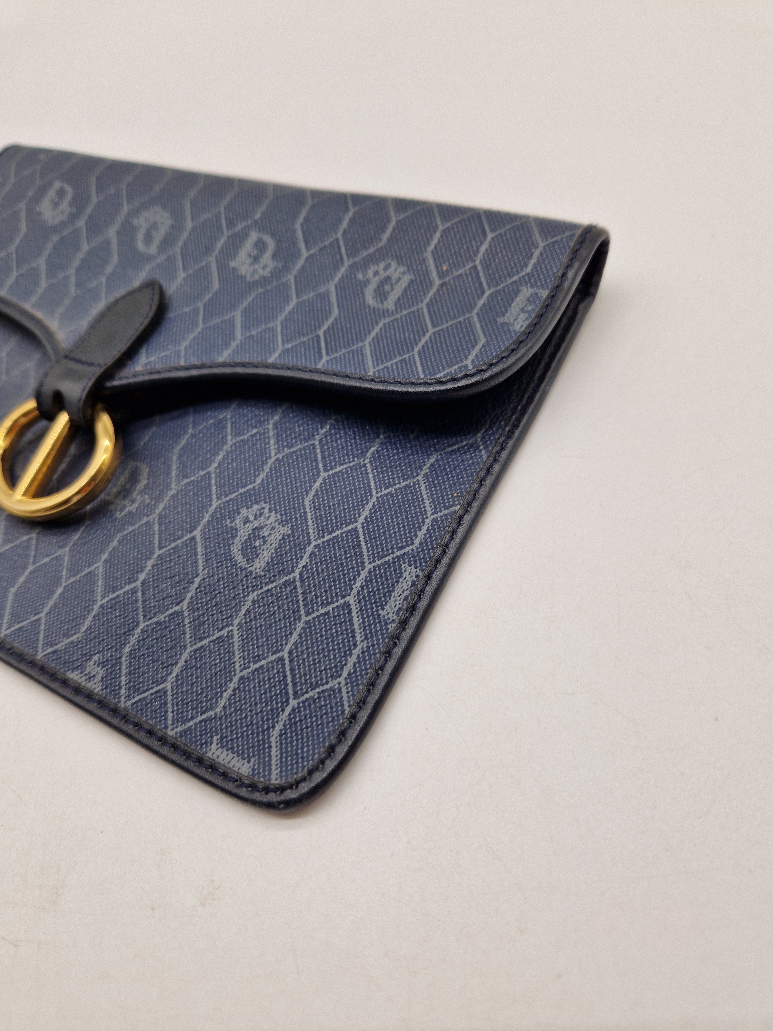Brand:Dior Model:clutch bag Exterior material:canvas Exterior colour:blue Print:monogram  Interior material:canvas Closure:magnetic  Hardware tone:gold Type:clutch Accessories: Features: Serial number:vintage Condition:very good... Read more Read more