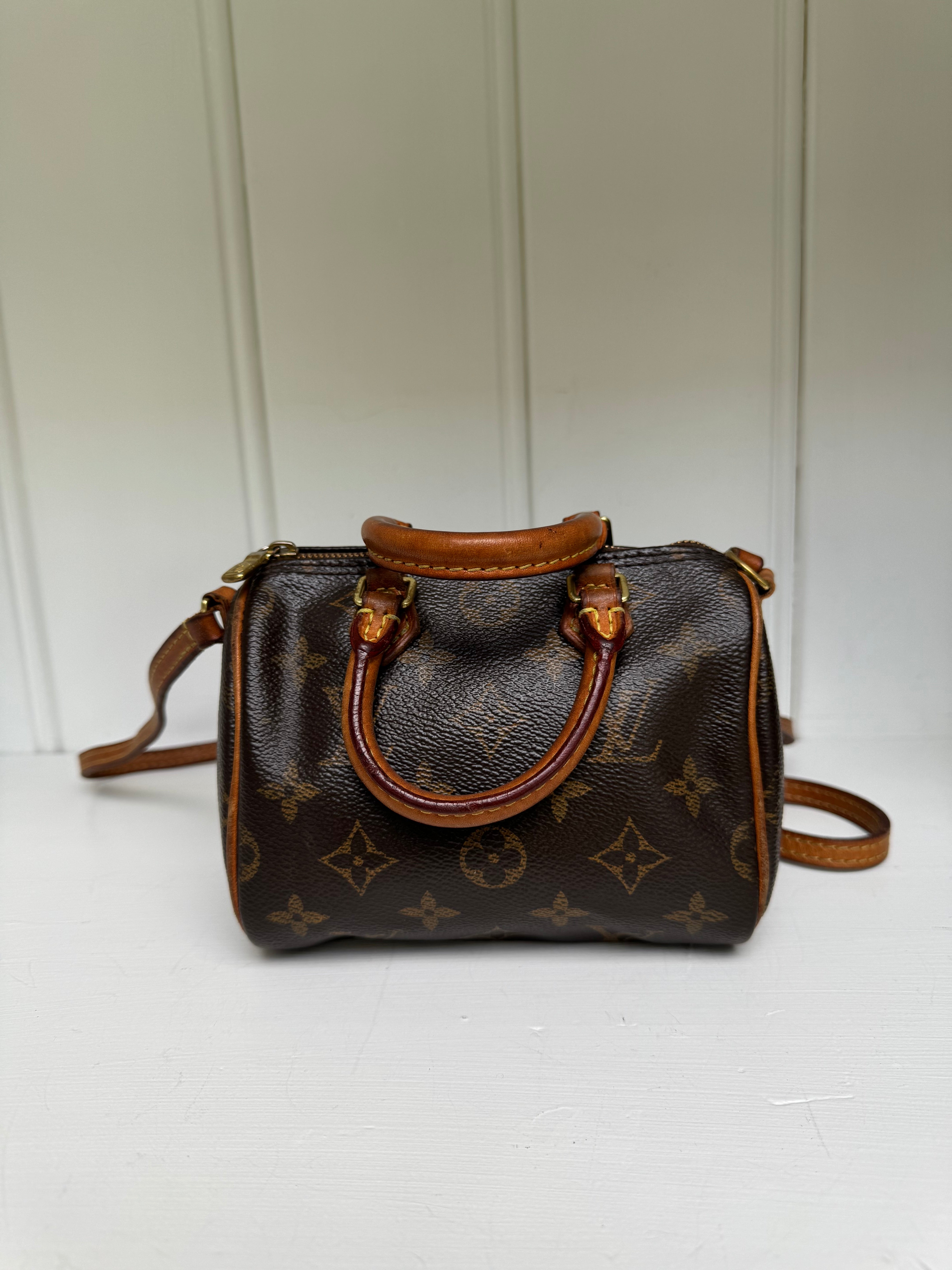 Product form Louis Vuitton speedy mini HL crossbody bag €720,00Incl. VAT Brand:Louis Vuitton Model:speedy nano HL crossbody bag Exterior material:canvas Exterior colour:brown Print:monogram Interior material:fabric Closure:zip Hardware tone:gold Type:crossbody bag Accessories:... Read more Read more 1 in stock Show extra info for delivery time Add to cart This item is a recurring or deferred purchase. By continuing, I agree to the cancellation policy and authorize you to charge my payment method at the prices, frequency and dates listed on this page until my order is fulfilled or I cancel, if permitted. Shipped today? Order within: Nov 25, 2025 17:00:00 +0100 Reviews 0 reviews Share with your friends Share WhatsApp Deel Tweet Pin it Messenger Email