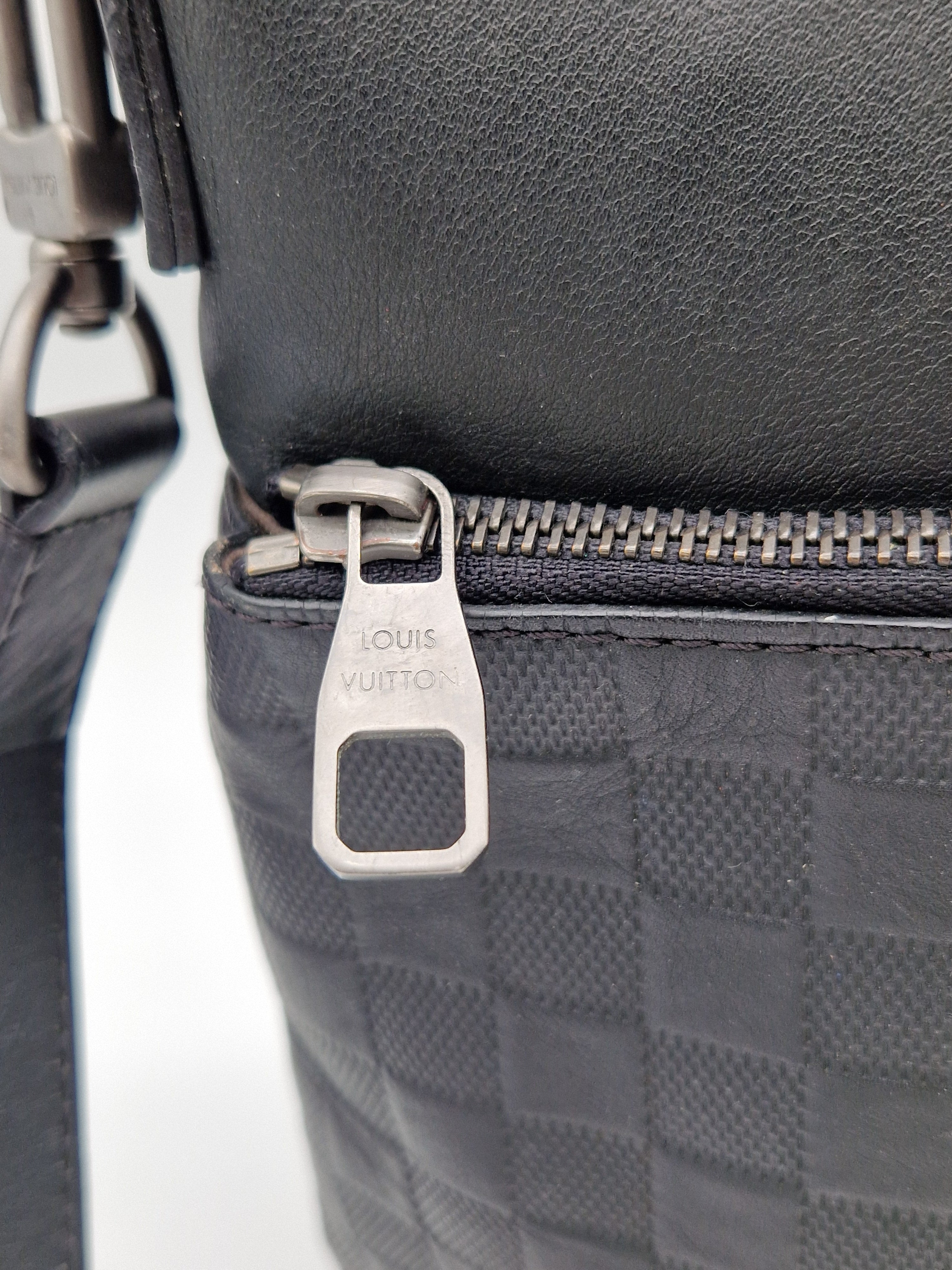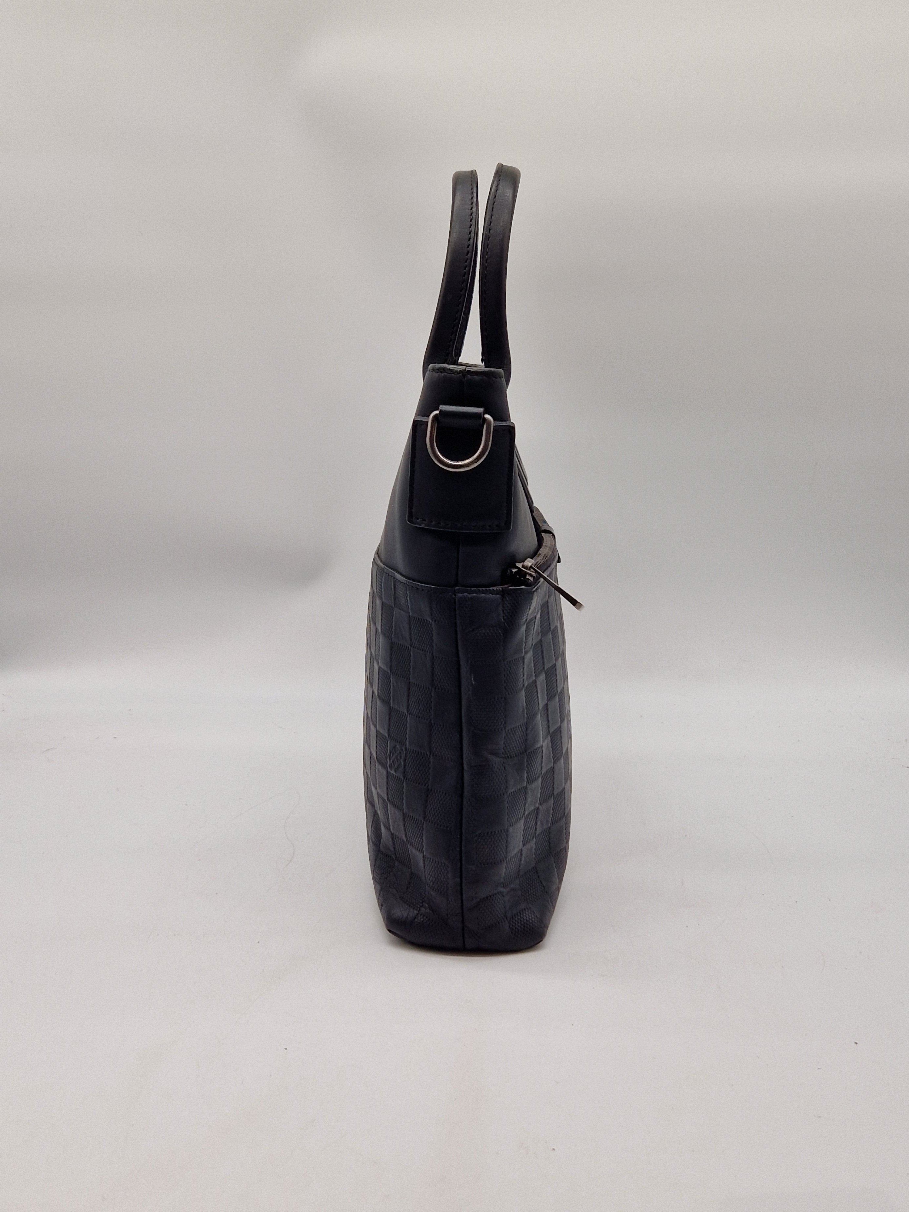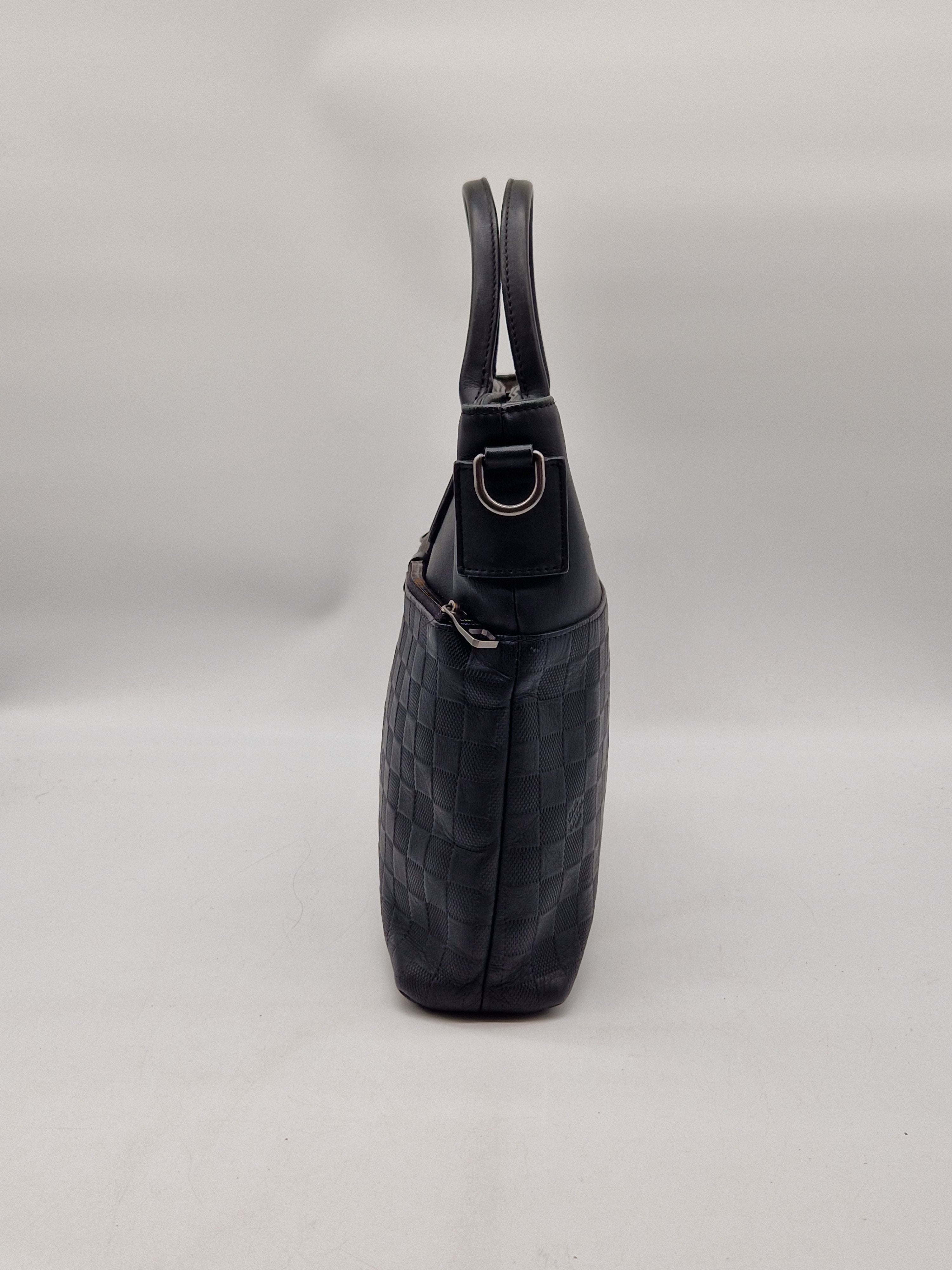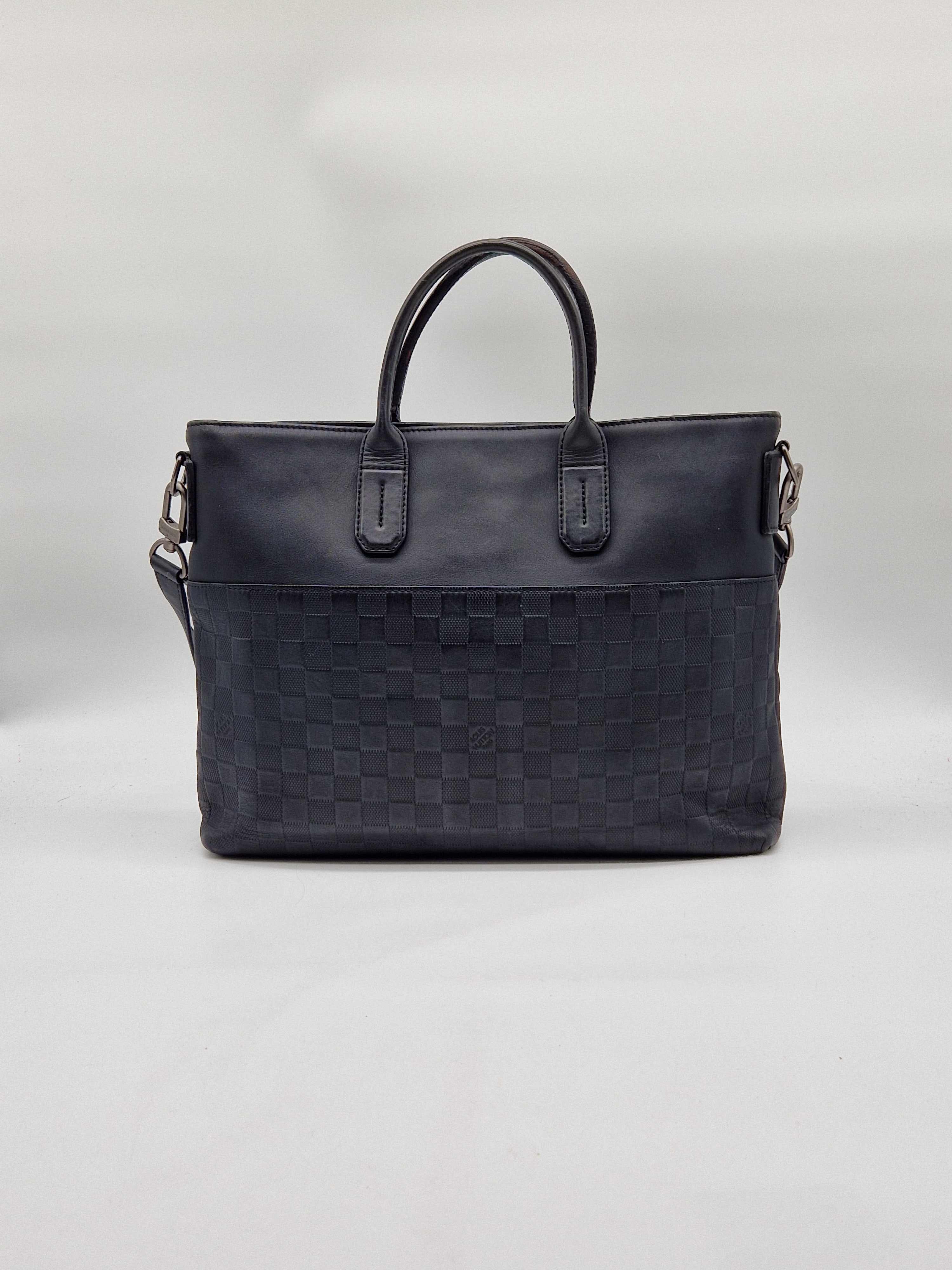 Brand:Louis Vuitton Model: Exterior material:leather Exterior colour:black Print:check Interior material: Closure:zip Hardware tone:black Type:laptop bag Accessories: Features:double top handles and...