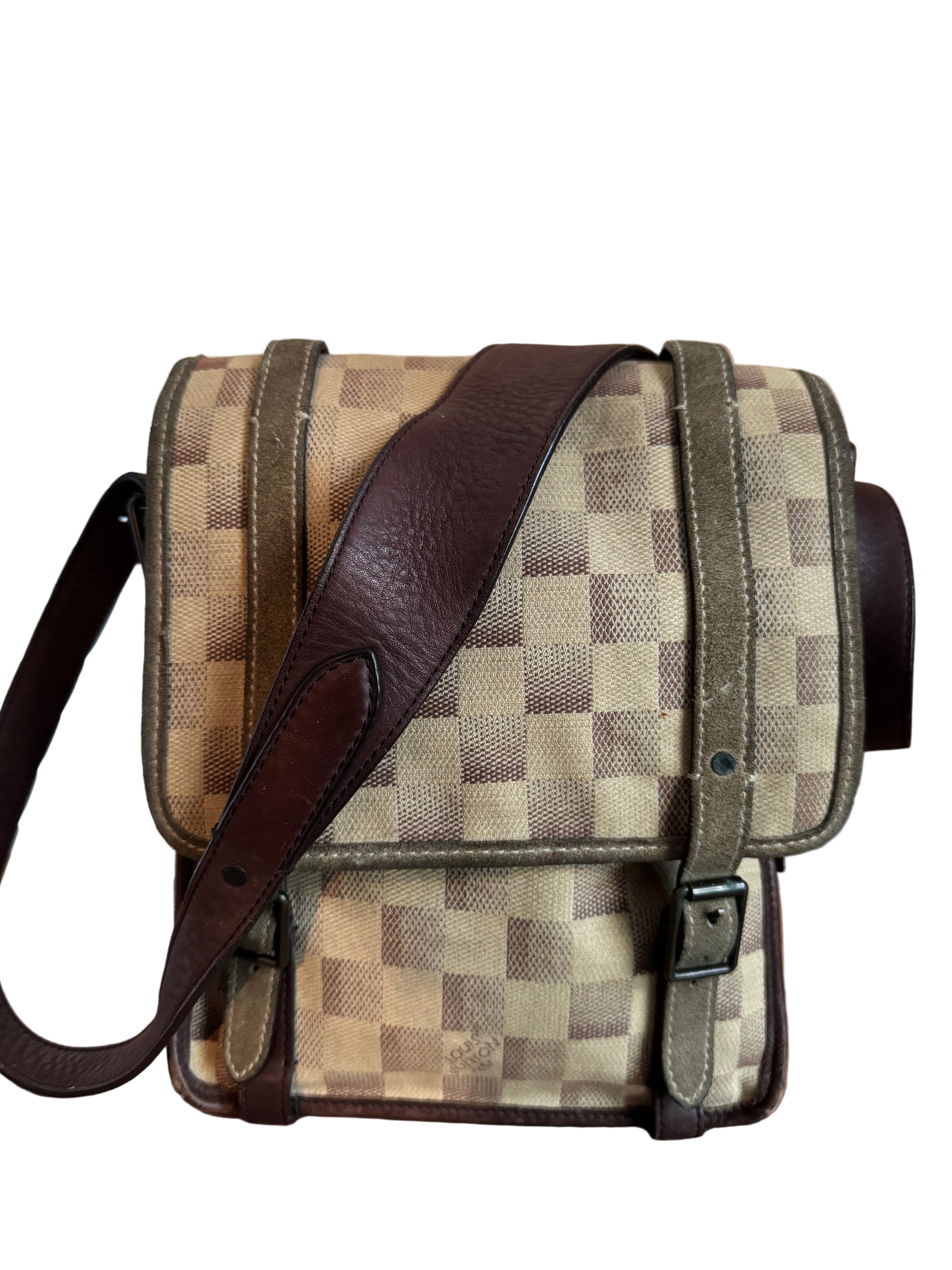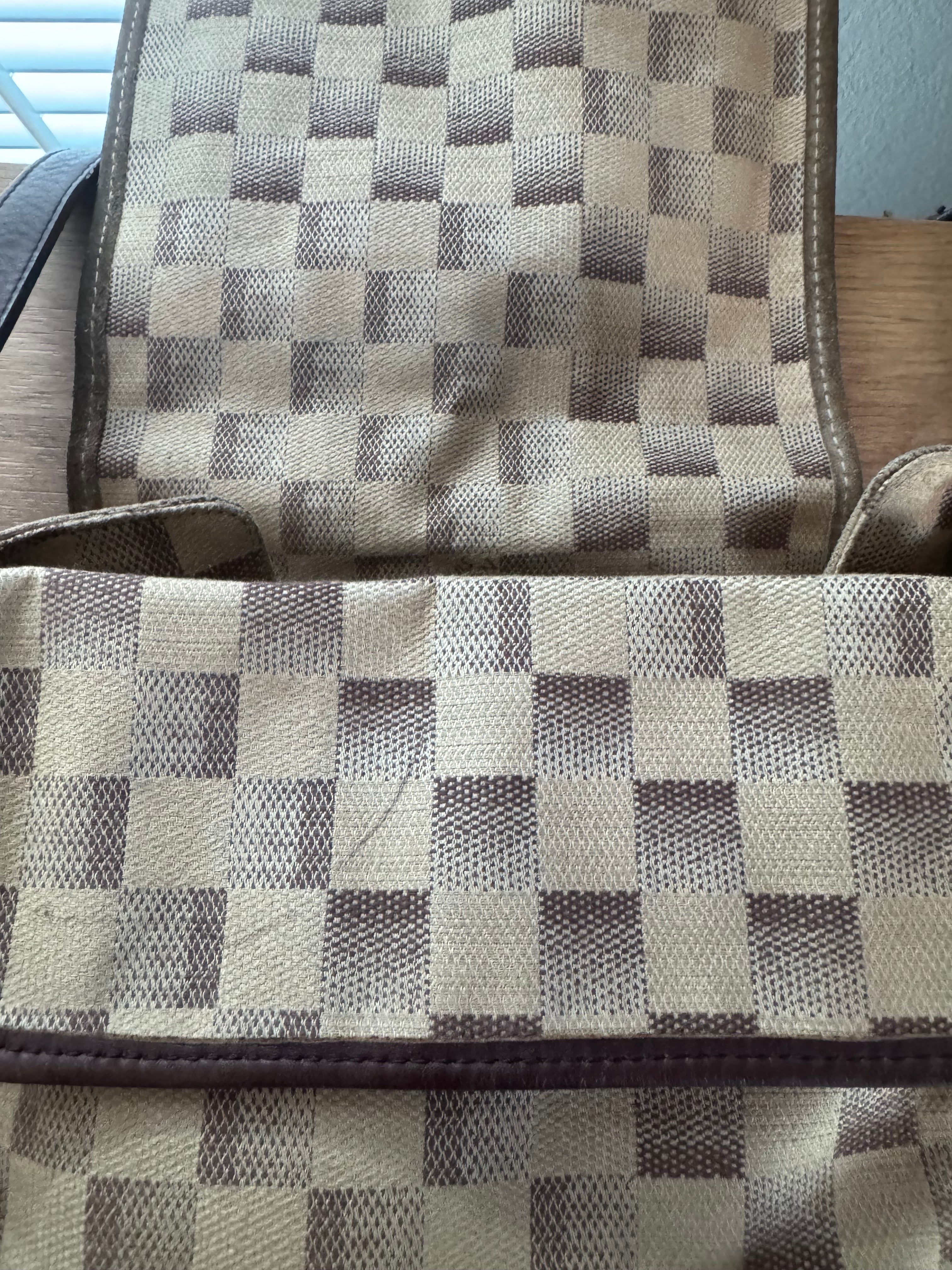 Brand:Louis Vuitton  Model:Damier Lune Exterior material:canvas Exterior colour:multi Print:check Interior material:fabric Closure:flap Hardware tone: Type:crossbody  Accessories: Features: Serial number:present Condition:good... Read more Read more
