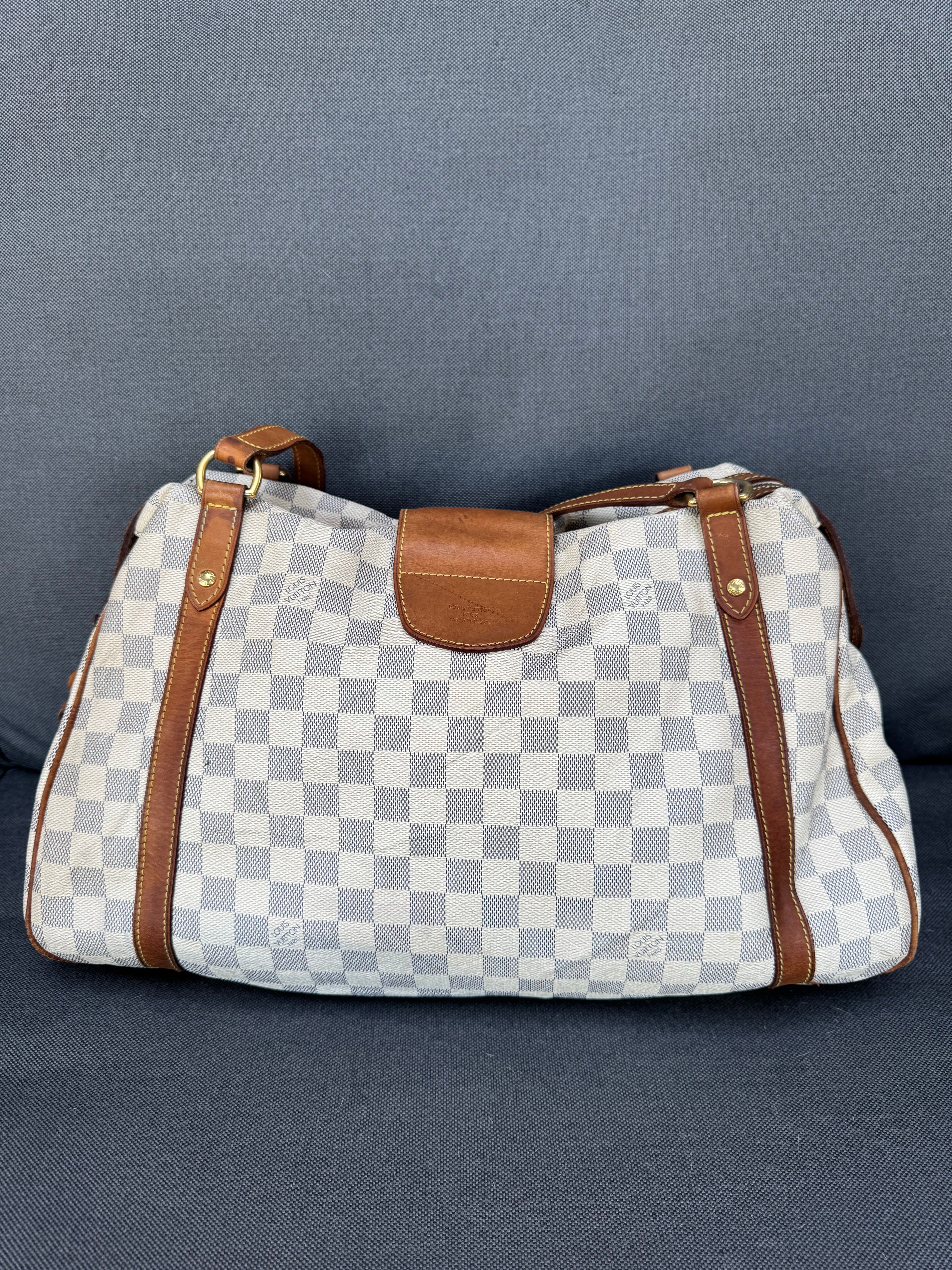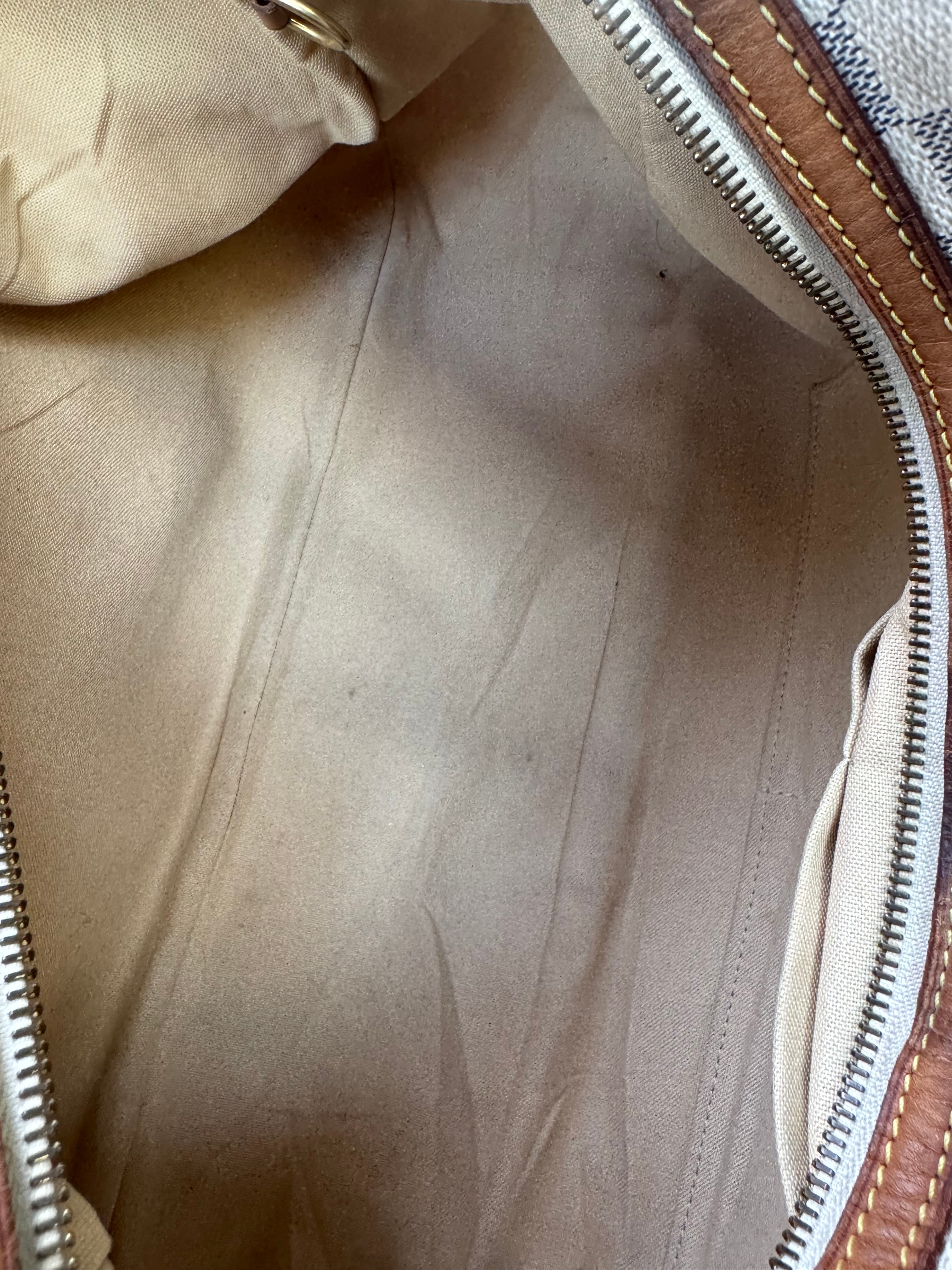 Brand:Louis Vuitton Model:shoulder bag Exterior material:canvas Exterior colour:white Print:check Interior material:fabric Closure:zip Hardware tone:gold Type:shoulder bag Accessories: Features: Serial number:present... Read more Read more