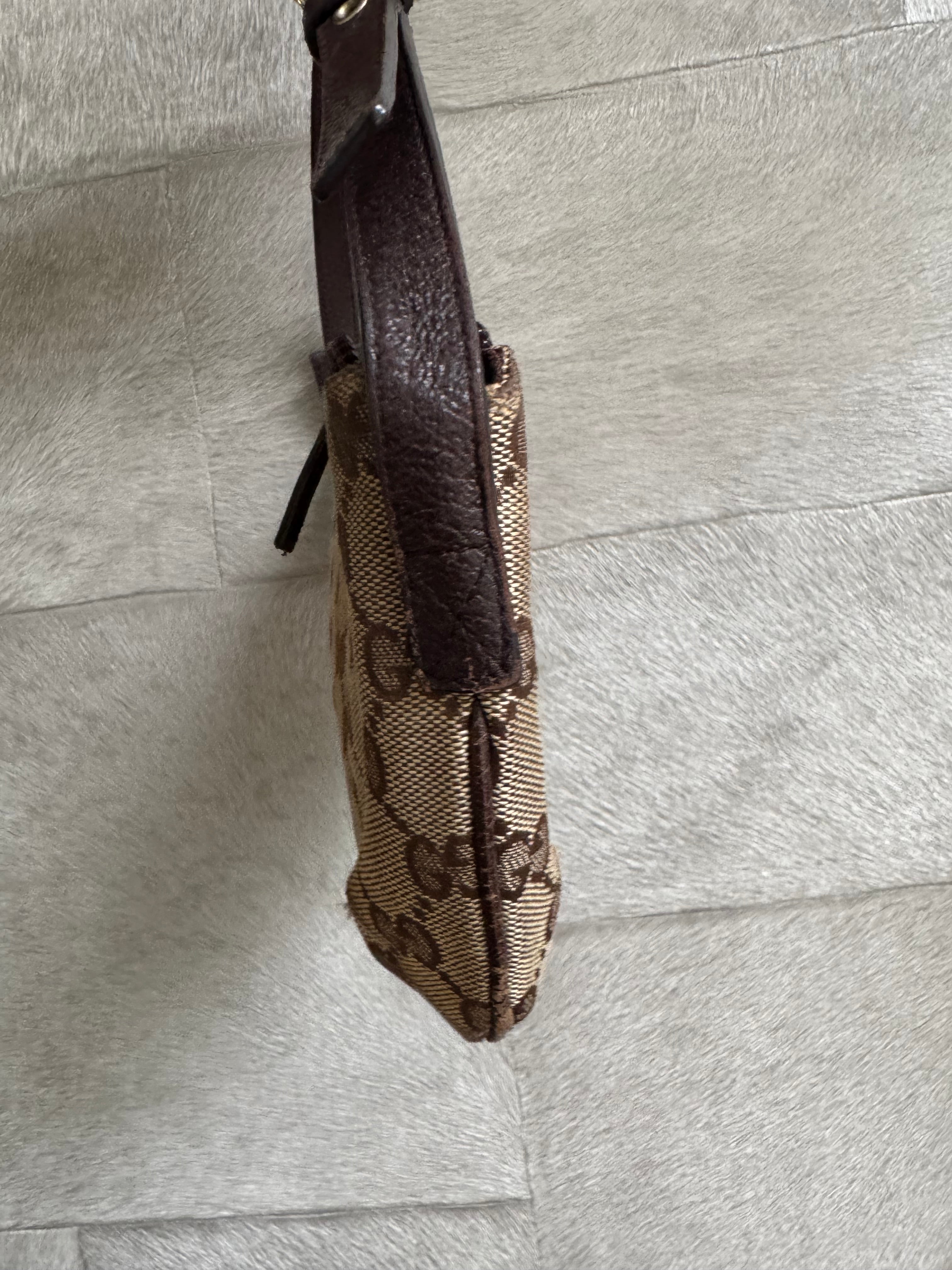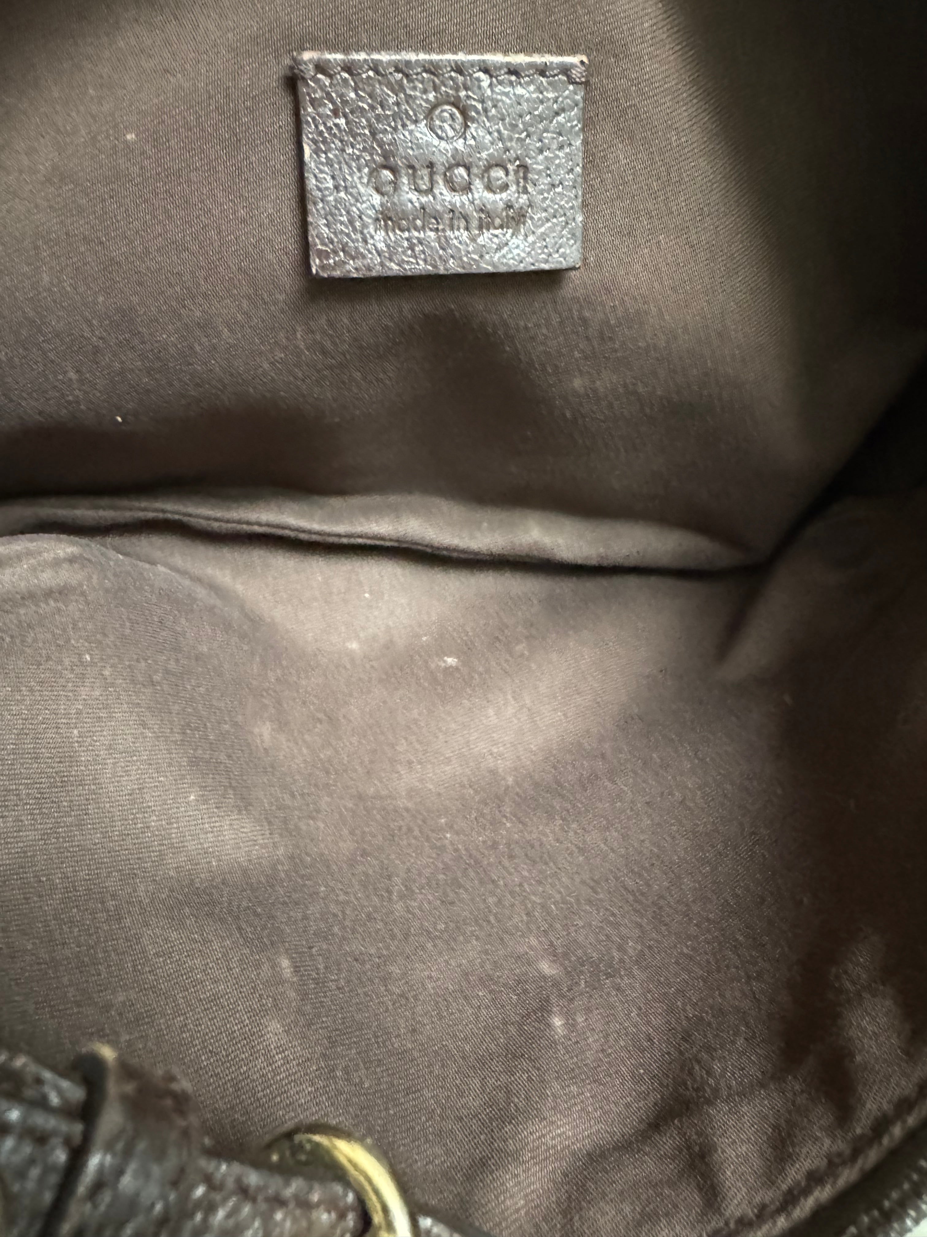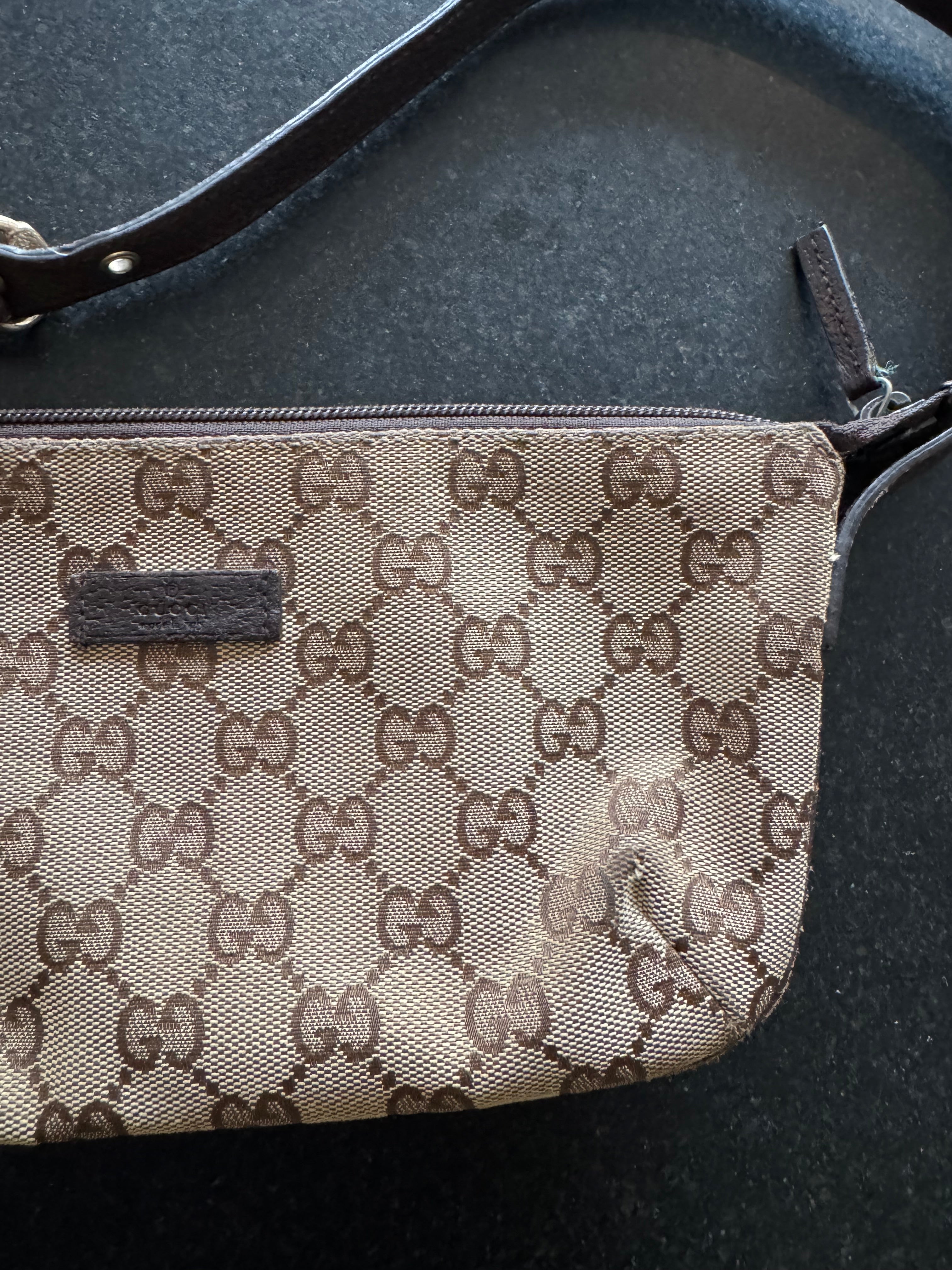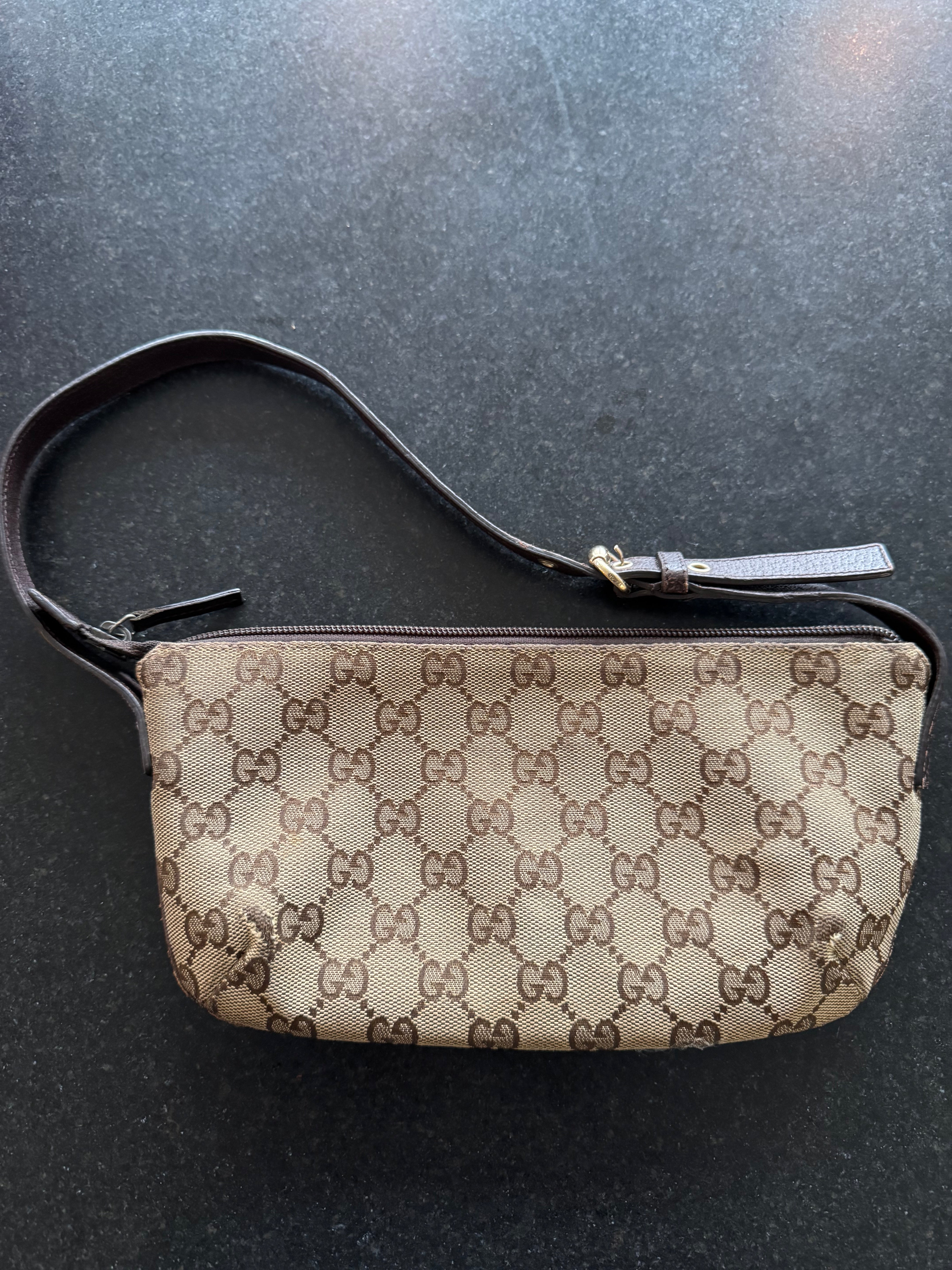 Brand:Gucci Model:Gucci mini bag Exterior material:cloth Exterior colour:brown Print:monogram Interior material:cloth Closure:zip Hardware tone: Type:shoulder bag Accessories: Features: Serial number:...