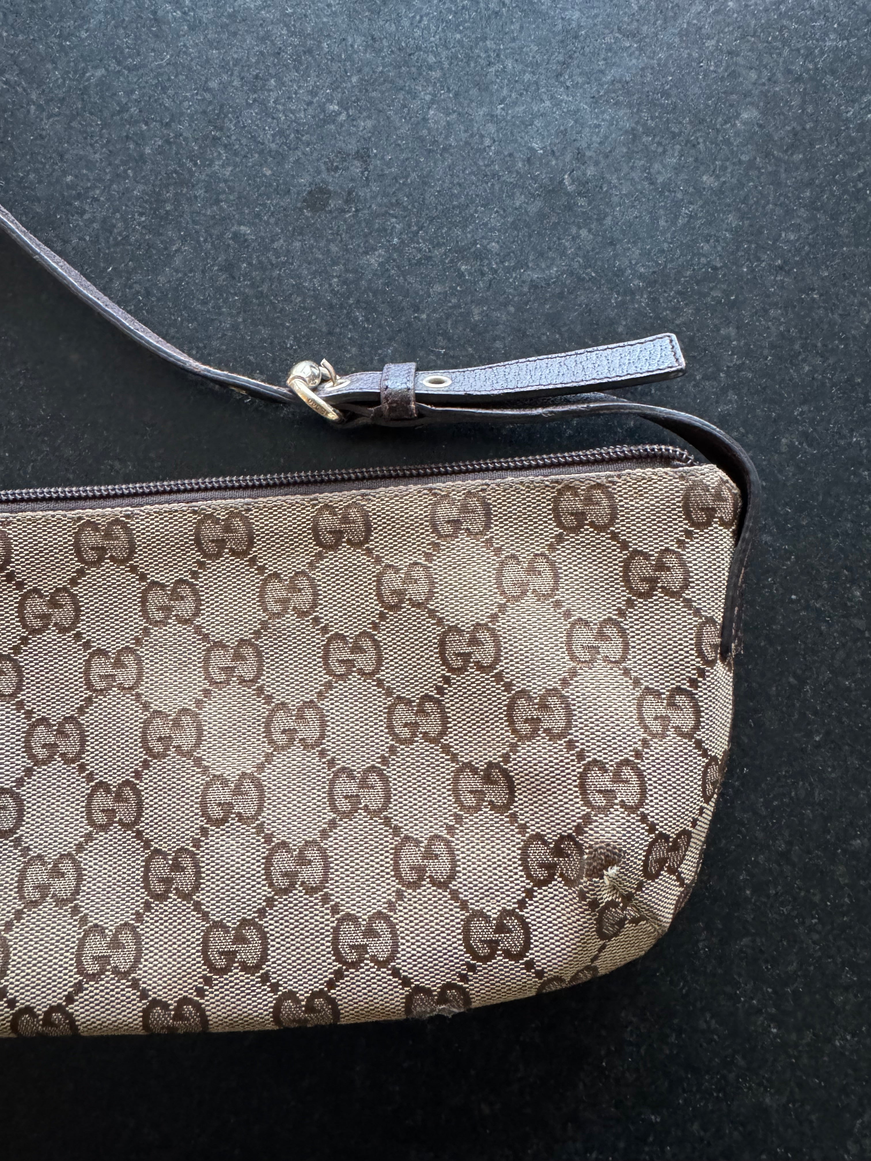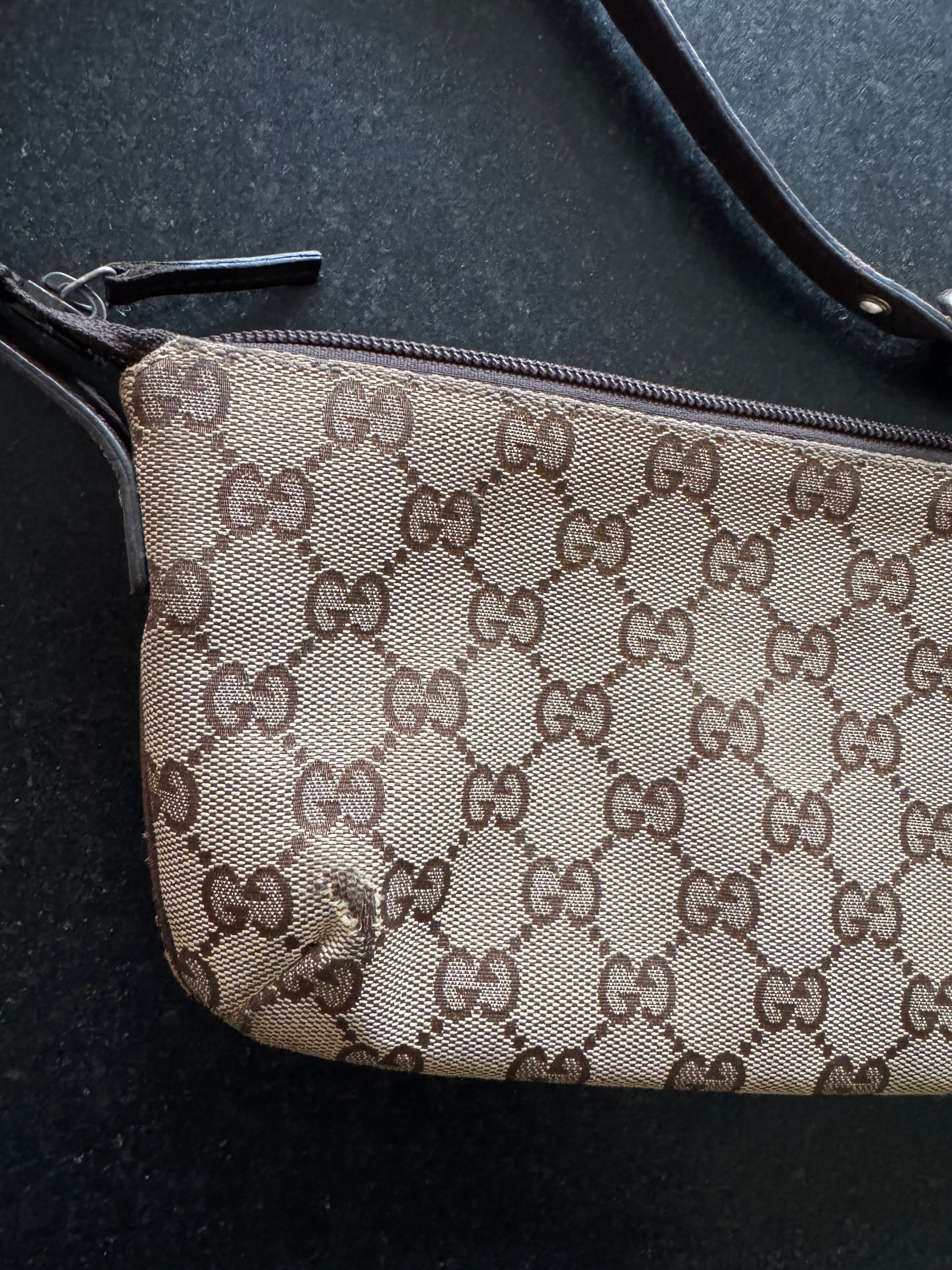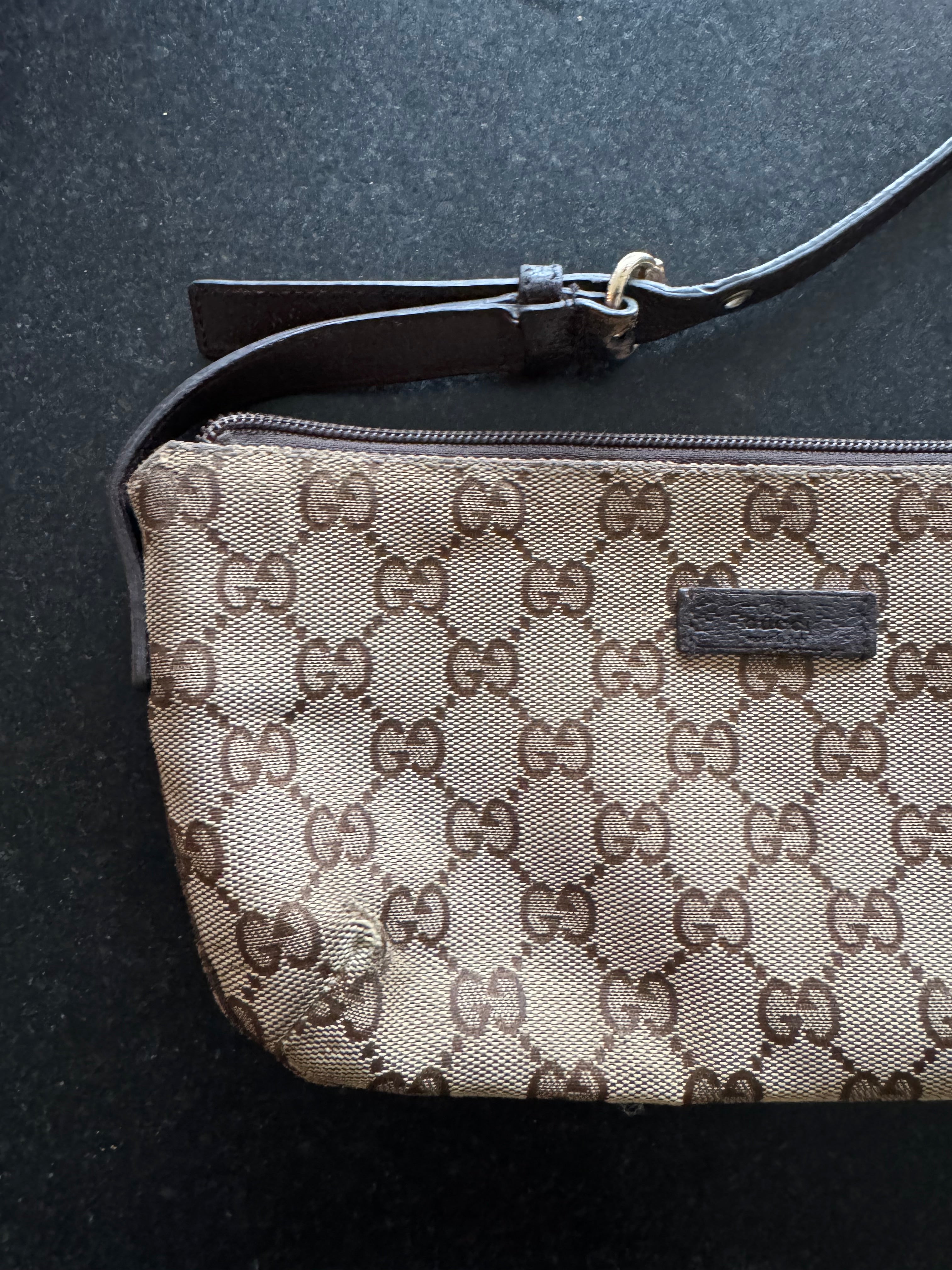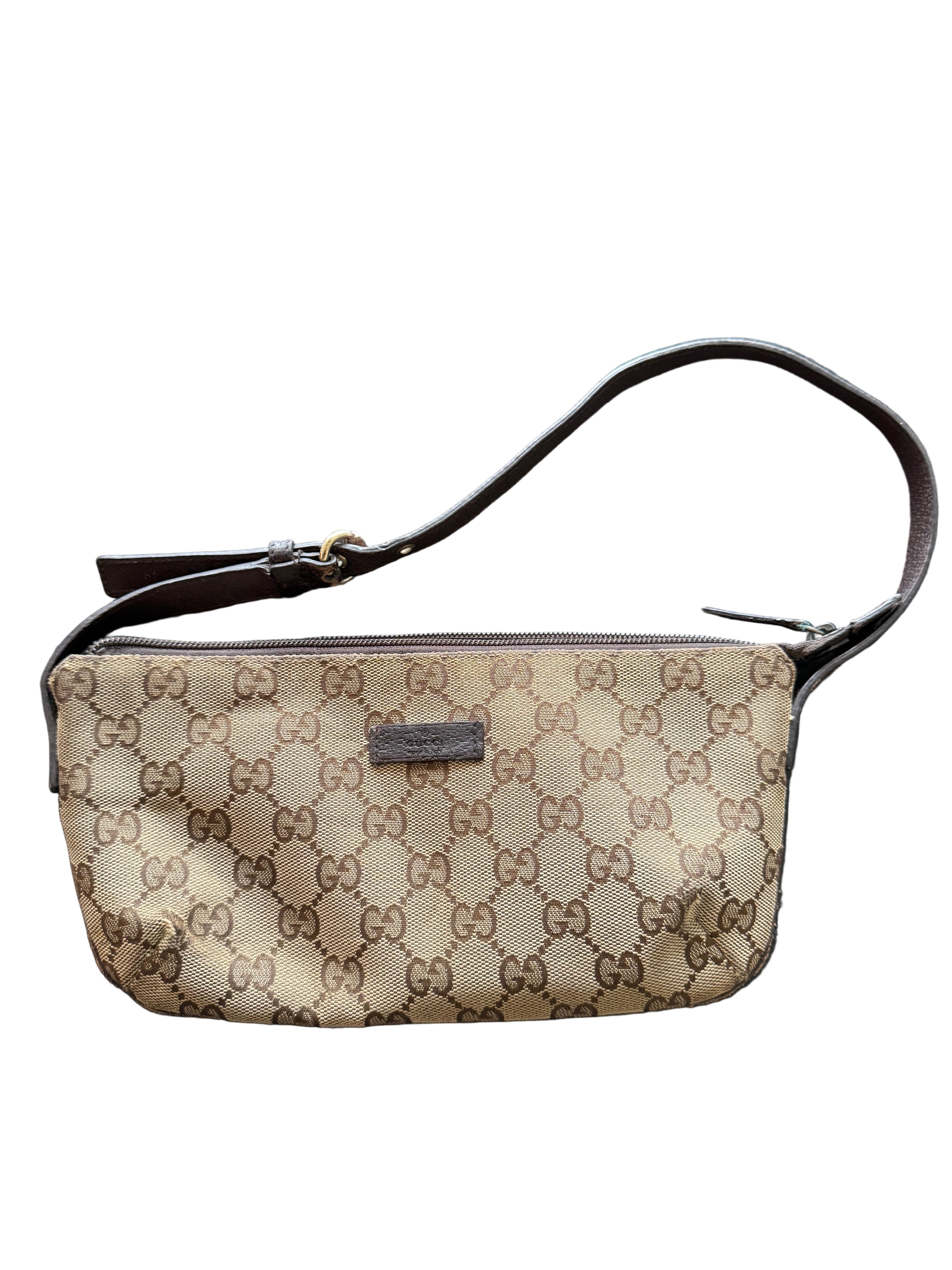Brand:Gucci Model:Gucci mini bag Exterior material:cloth Exterior colour:brown Print:monogram Interior material:cloth Closure:zip Hardware tone: Type:shoulder bag Accessories: Features: Serial number:...